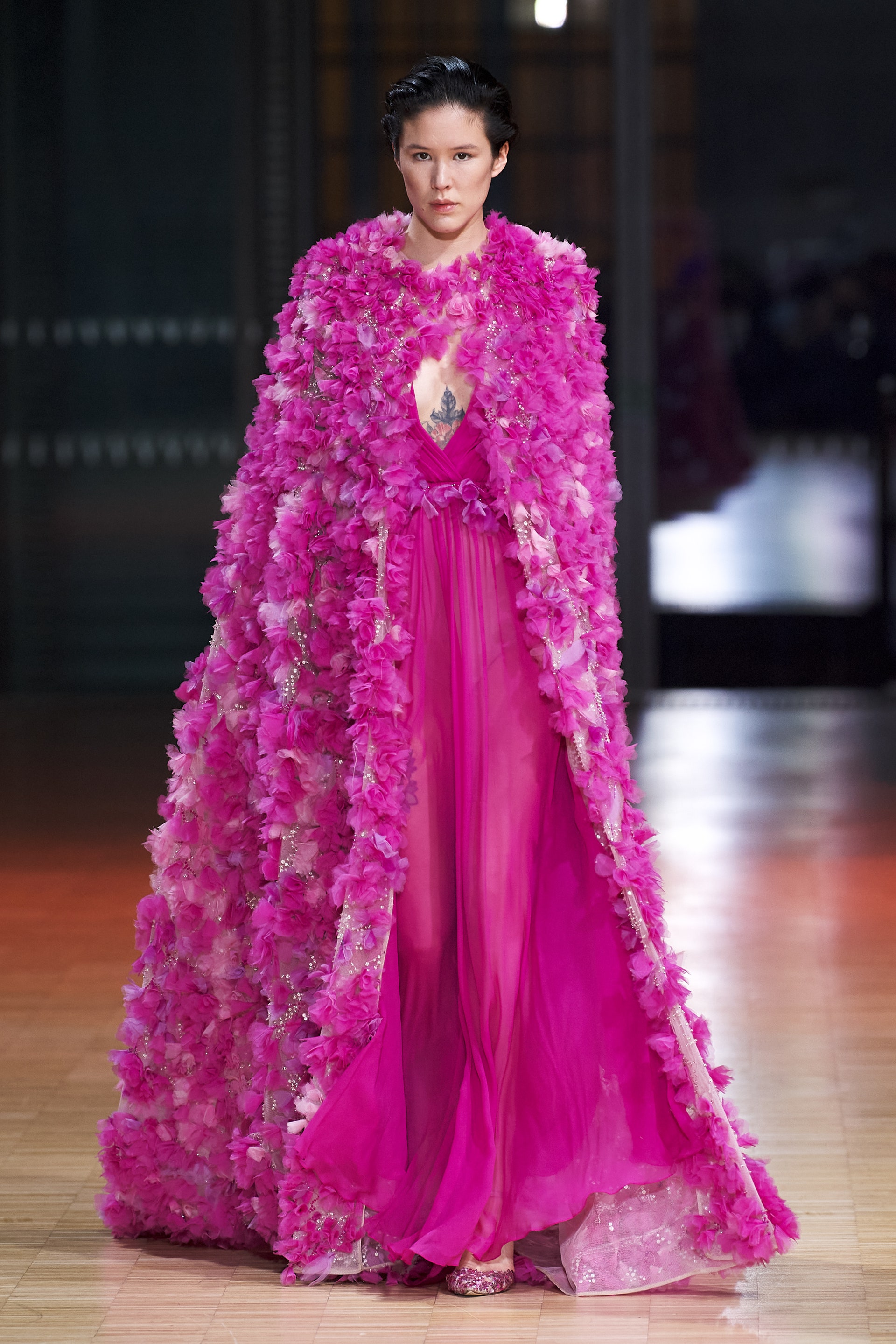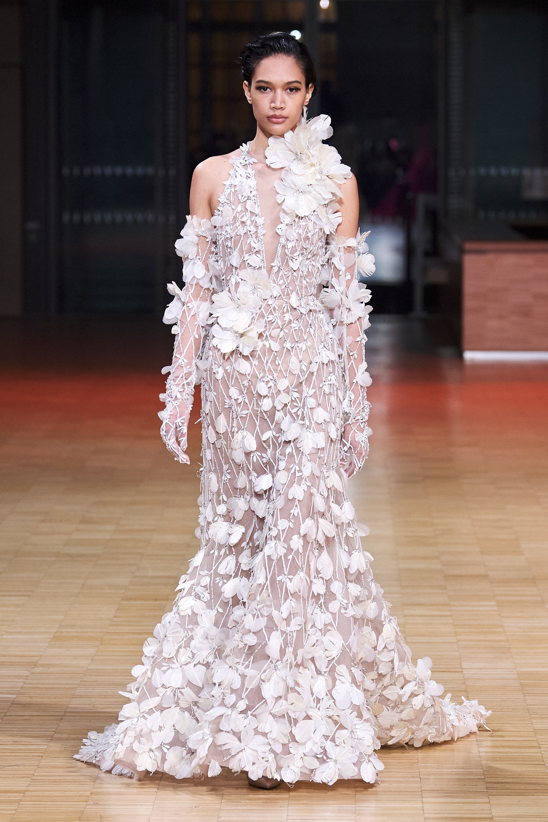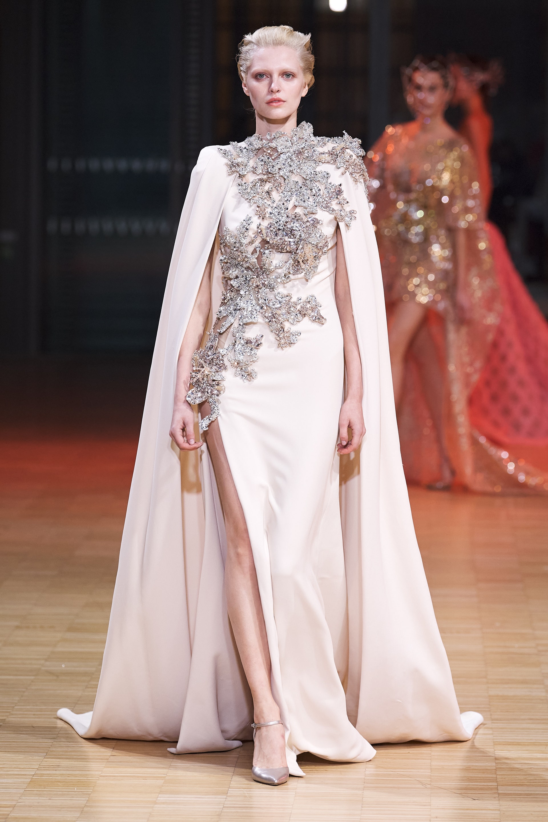 Ливанский дизайнер Эли Сааб впервые за два года вновь провел оффлайн-показ. Кажется логичным, что и заглавной темой весенней коллекции от-кутюр Эли Сааб выбрал радость, праздник и беспечность. Это выражено в легкомысленном и оптимистичном декоре из перьев, бисера и страз, однако настоящее буйство жизни и красок дизайнер заключил в скульптурных платьях из молочной органзы, расшитых мириадами цветочных аппликаций, — кажется, будто сама весна в образах моделей шоу расцвела на парижском подиуме.