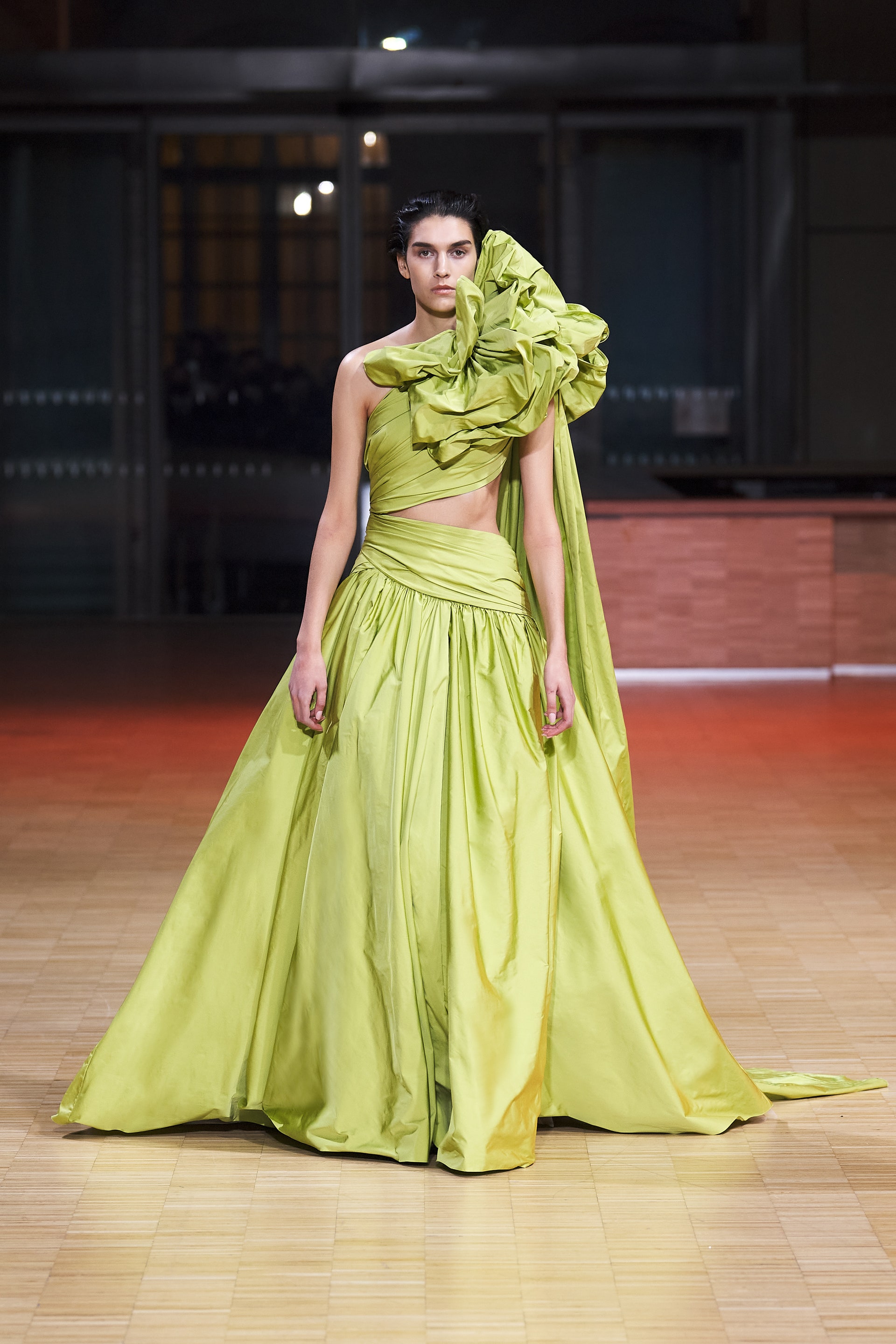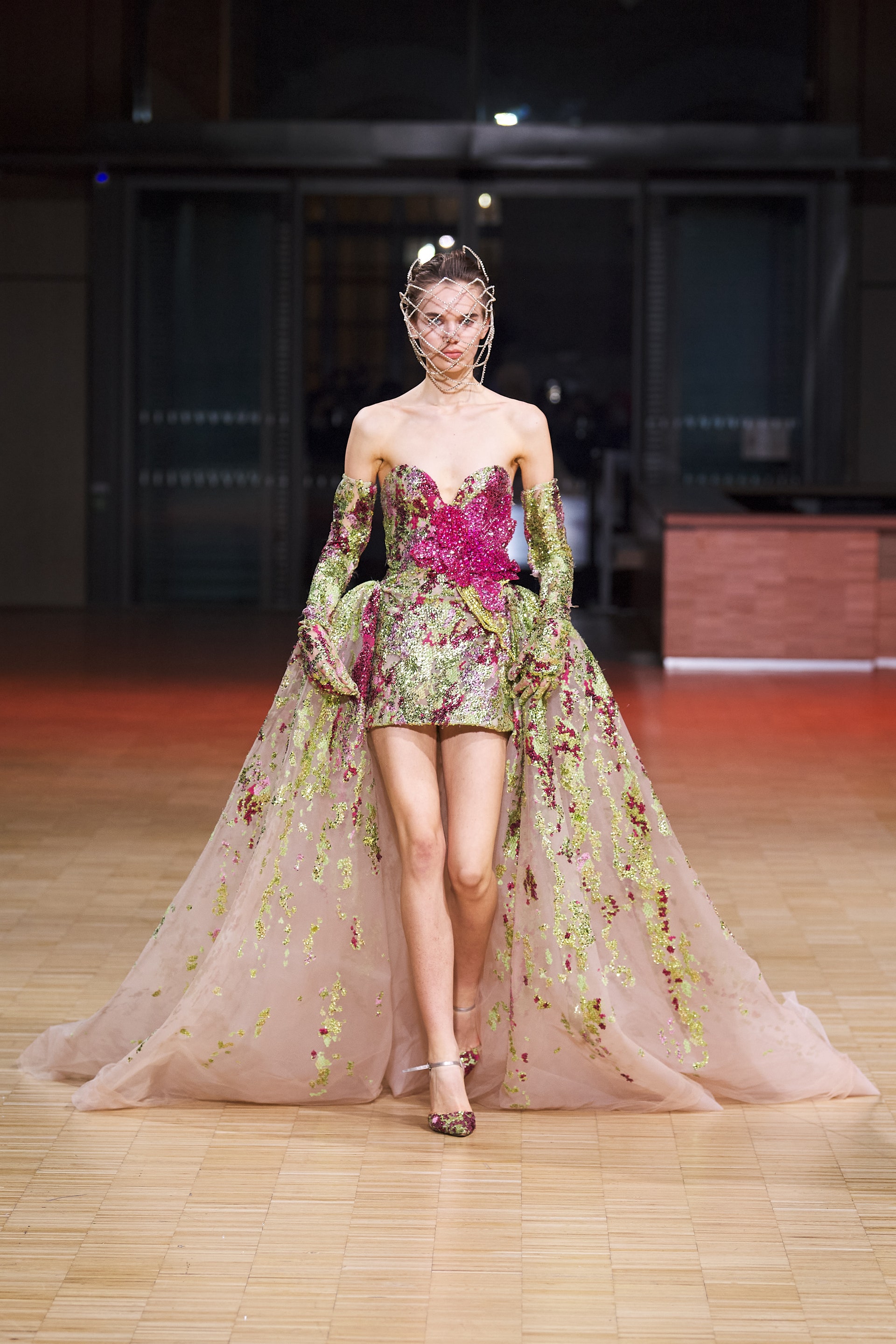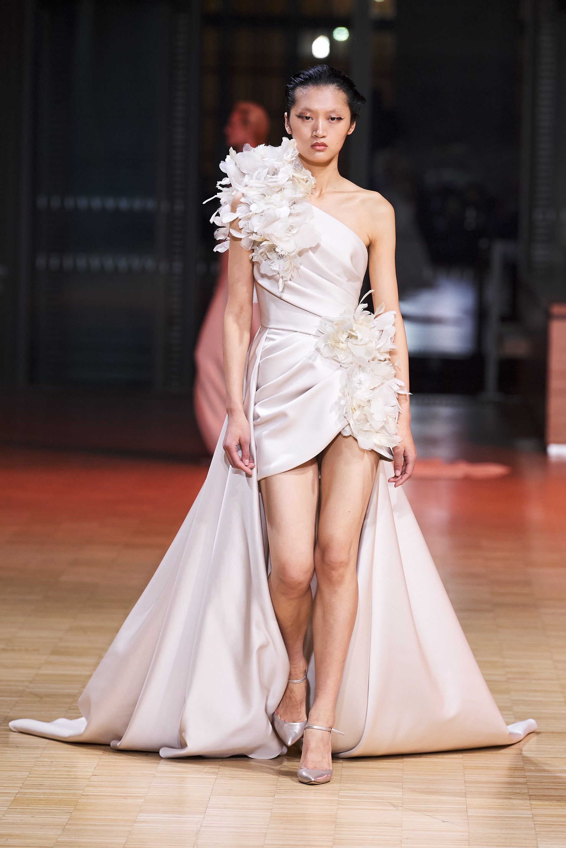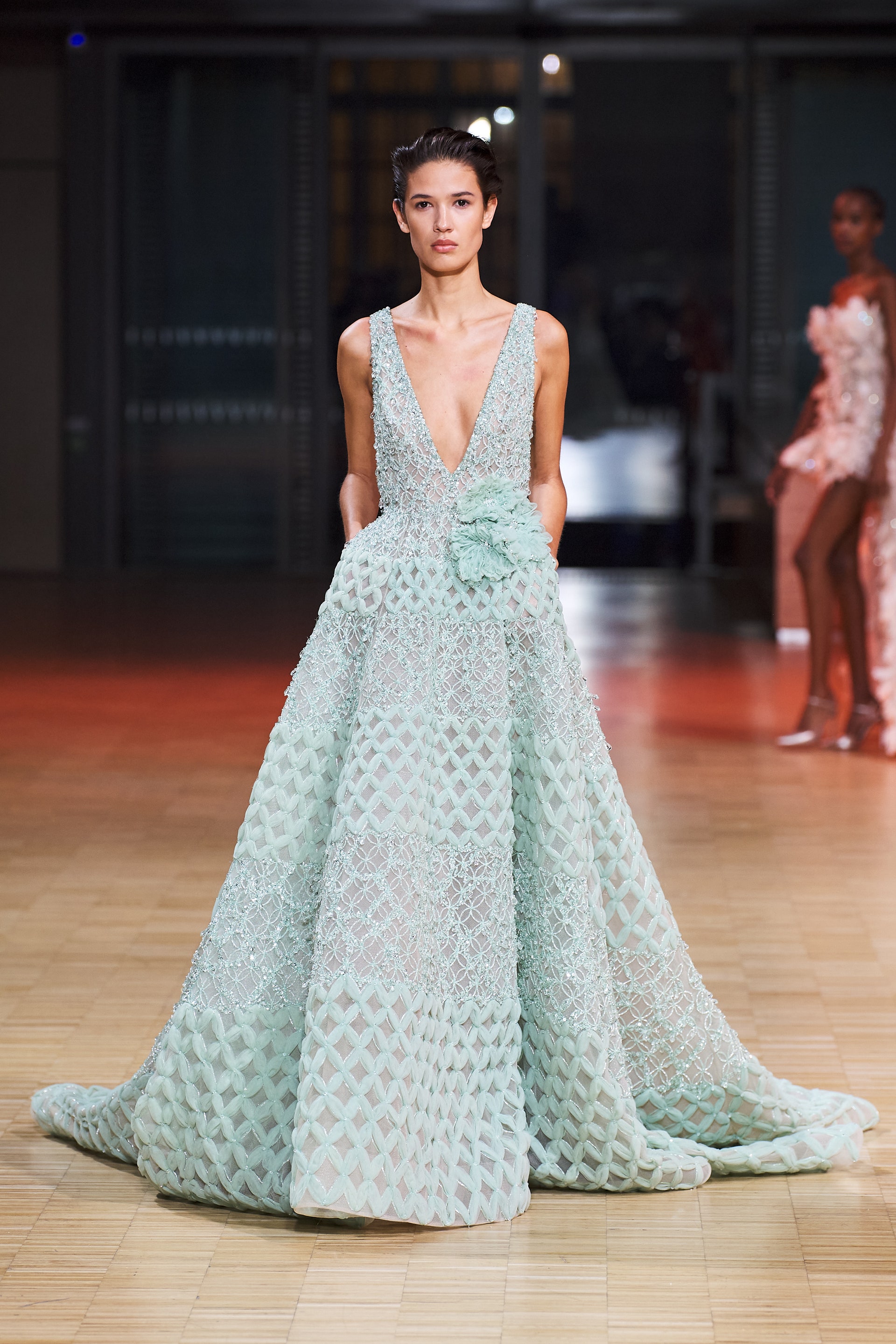 Ливанский дизайнер Эли Сааб впервые за два года вновь провел оффлайн-показ. Кажется логичным, что и заглавной темой весенней коллекции от-кутюр Эли Сааб выбрал радость, праздник и беспечность. Это выражено в легкомысленном и оптимистичном декоре из перьев, бисера и страз, однако настоящее буйство жизни и красок дизайнер заключил в скульптурных платьях из молочной органзы, расшитых мириадами цветочных аппликаций, — кажется, будто сама весна в образах моделей шоу расцвела на парижском подиуме.