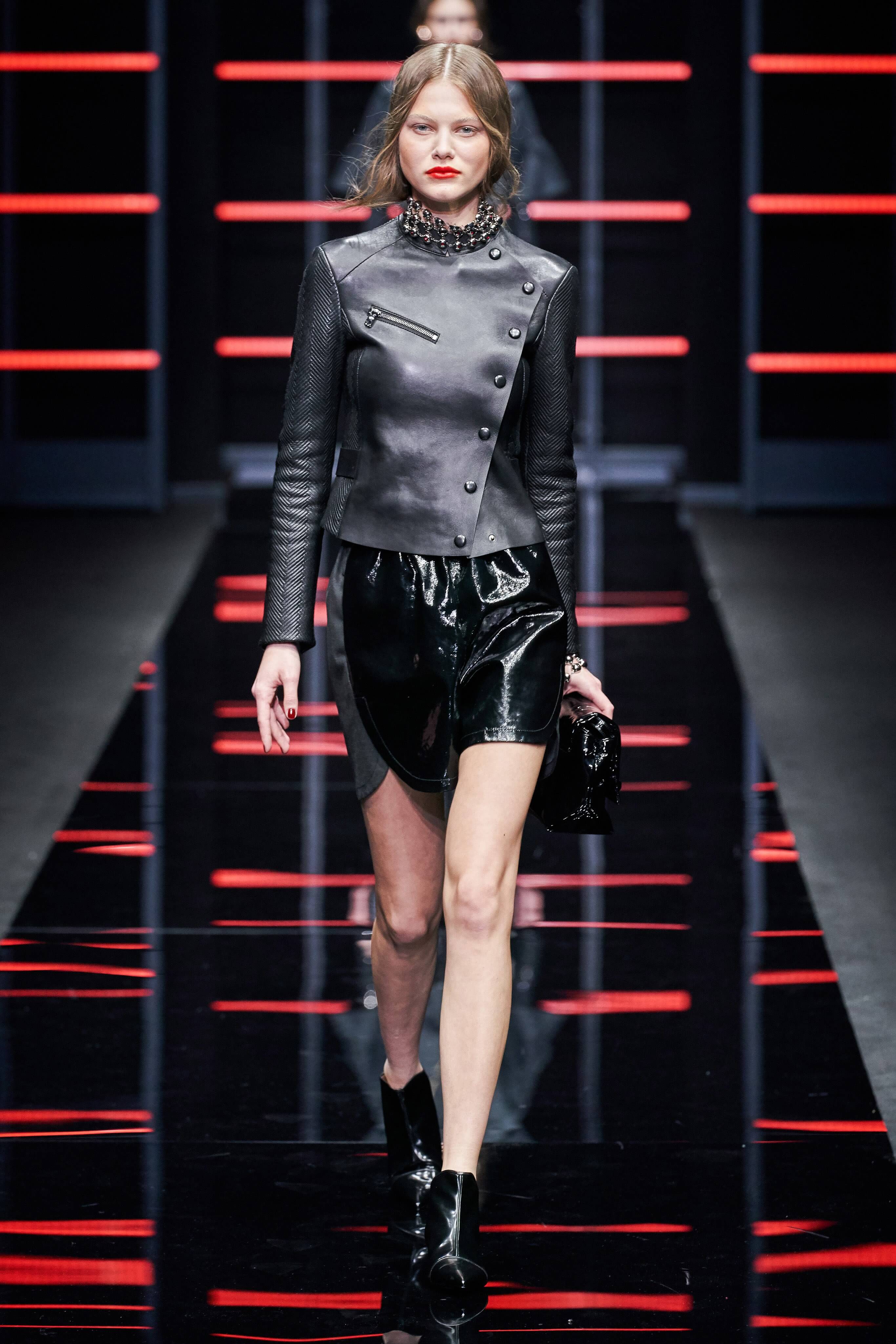 В новом сезоне Джорджо Армани исследует грань между строгой классикой и городским стилем, объединяя в коллекции контрастные друг другу береты и ультракороткие юбки, кокетливые платья и пальто в духе 60-х, винил и кожу.