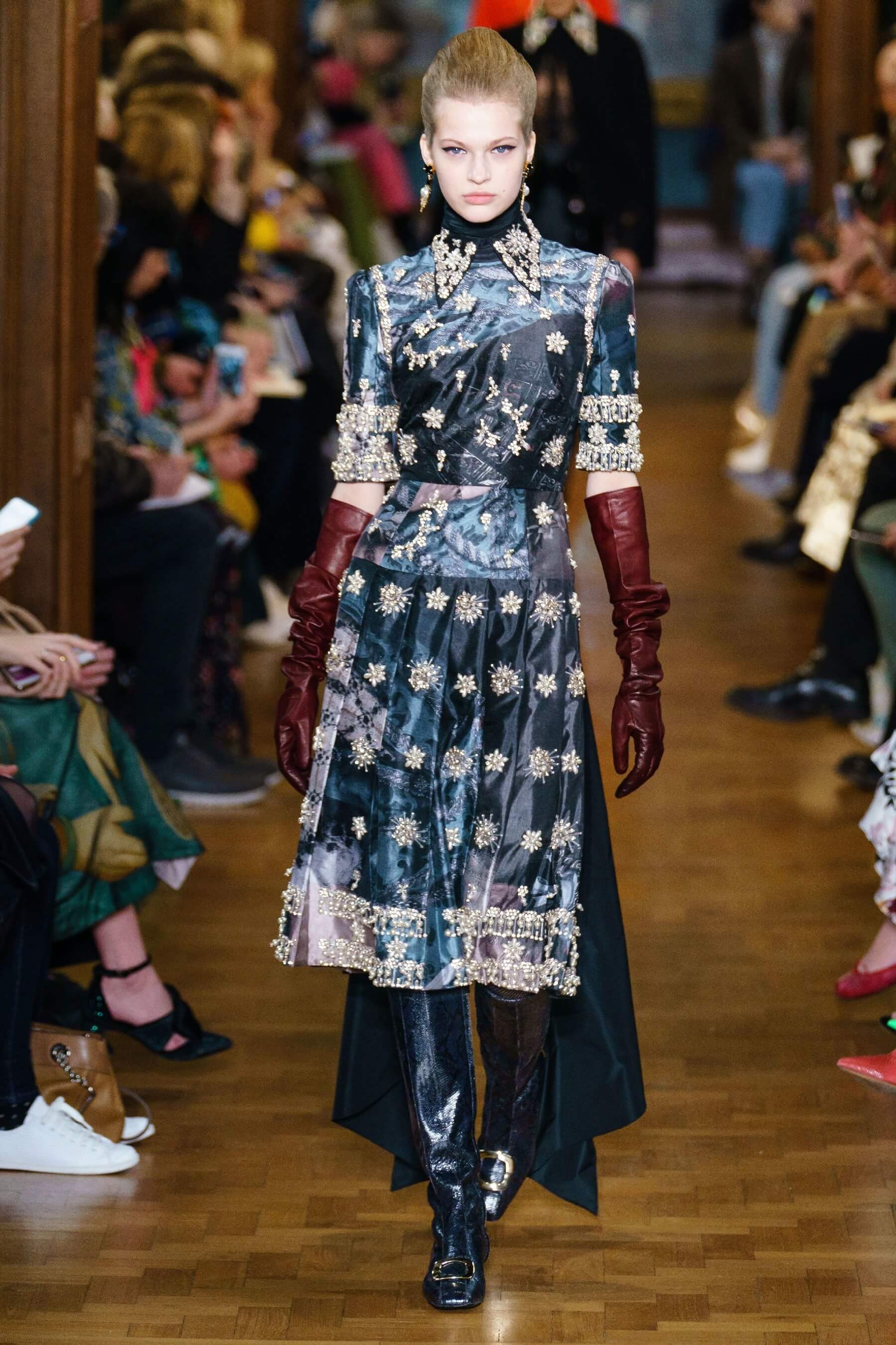 Эрдем Моралиоглу представил коллекцию-фантазию на тему гардероба итальянской принцессы Ориетты Дориа Памфили, которая в 60-х переехала в Лондон и усыновила двоих детей, обеспечив их титулами и привилегиями.