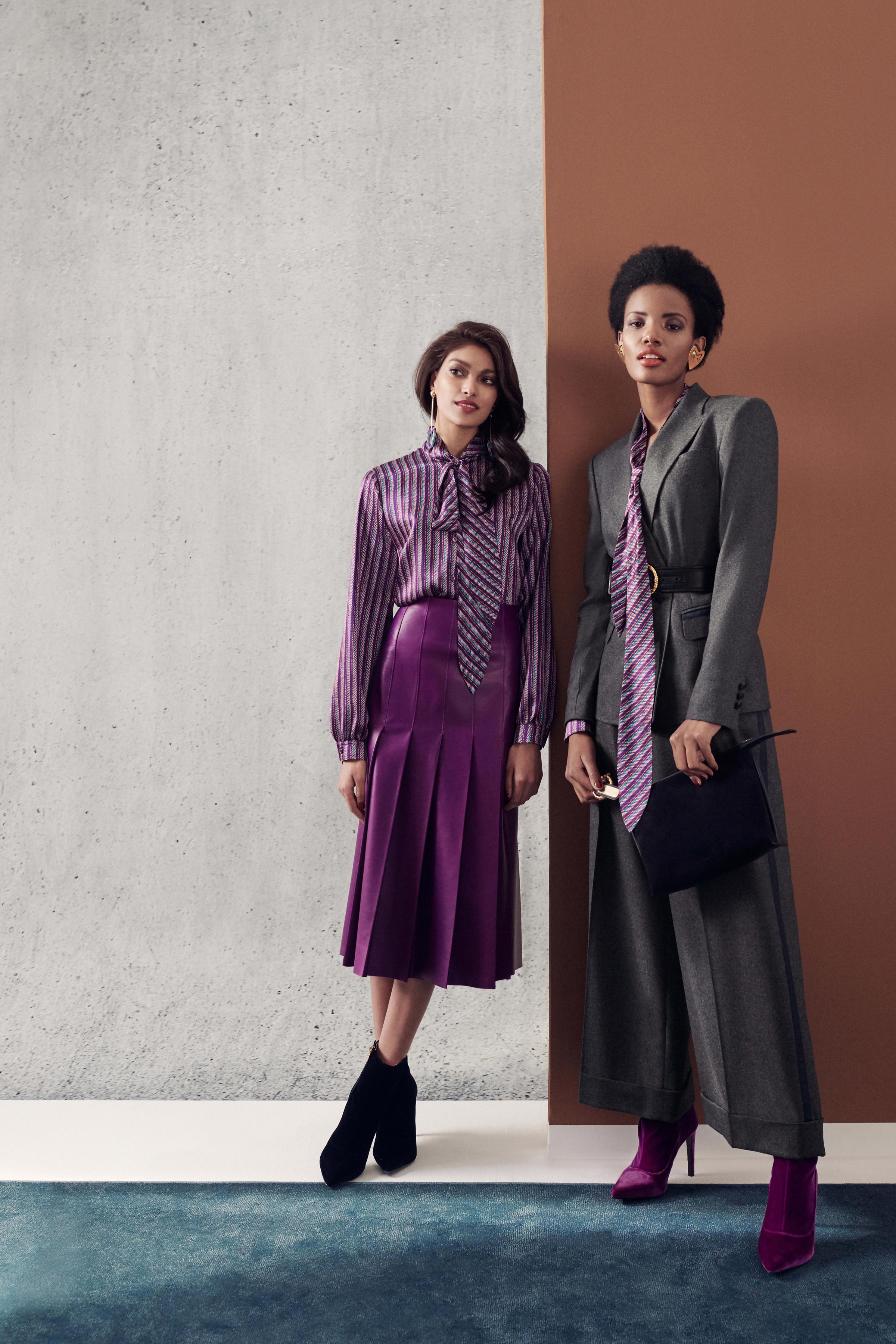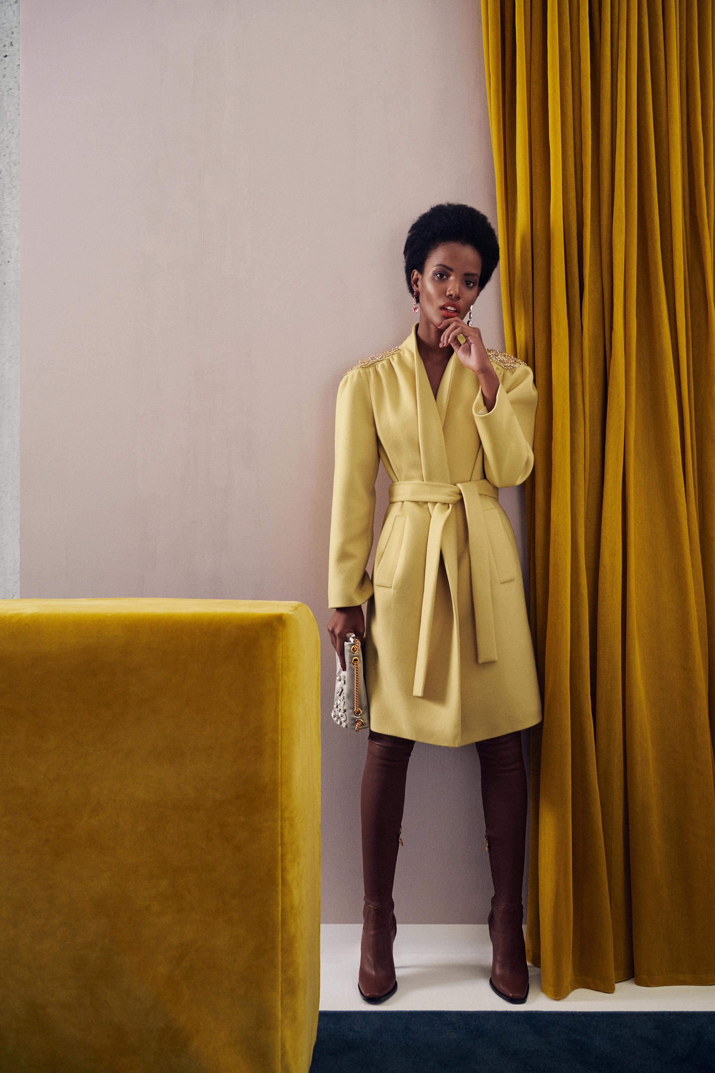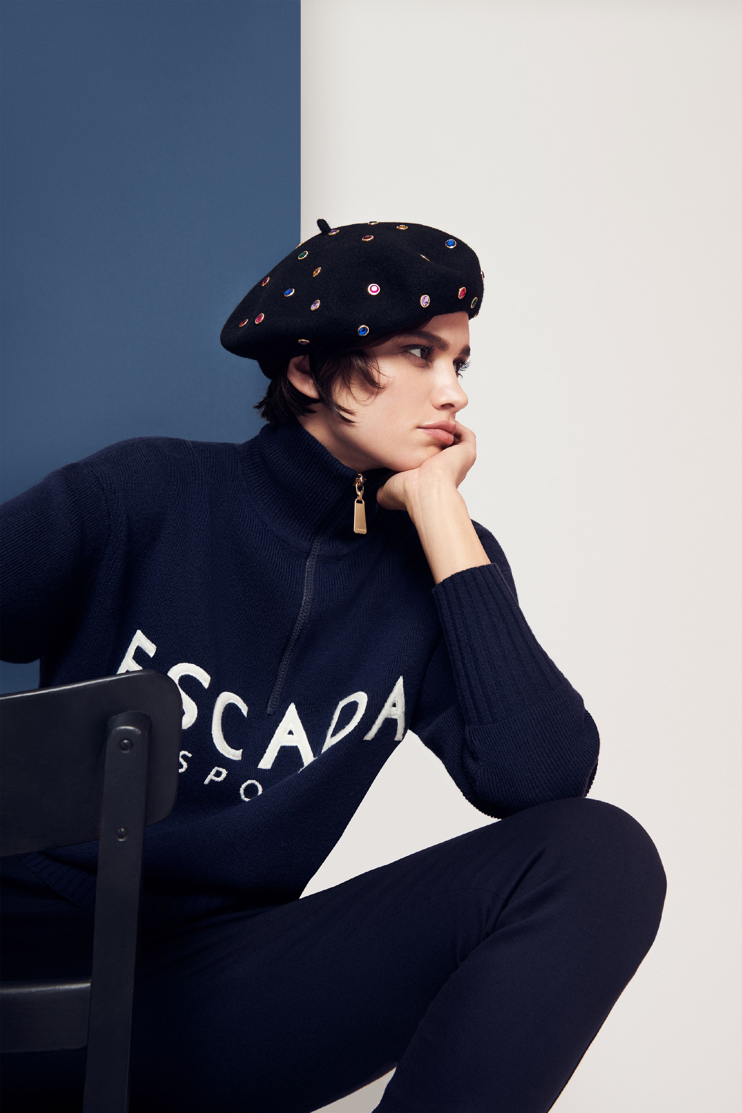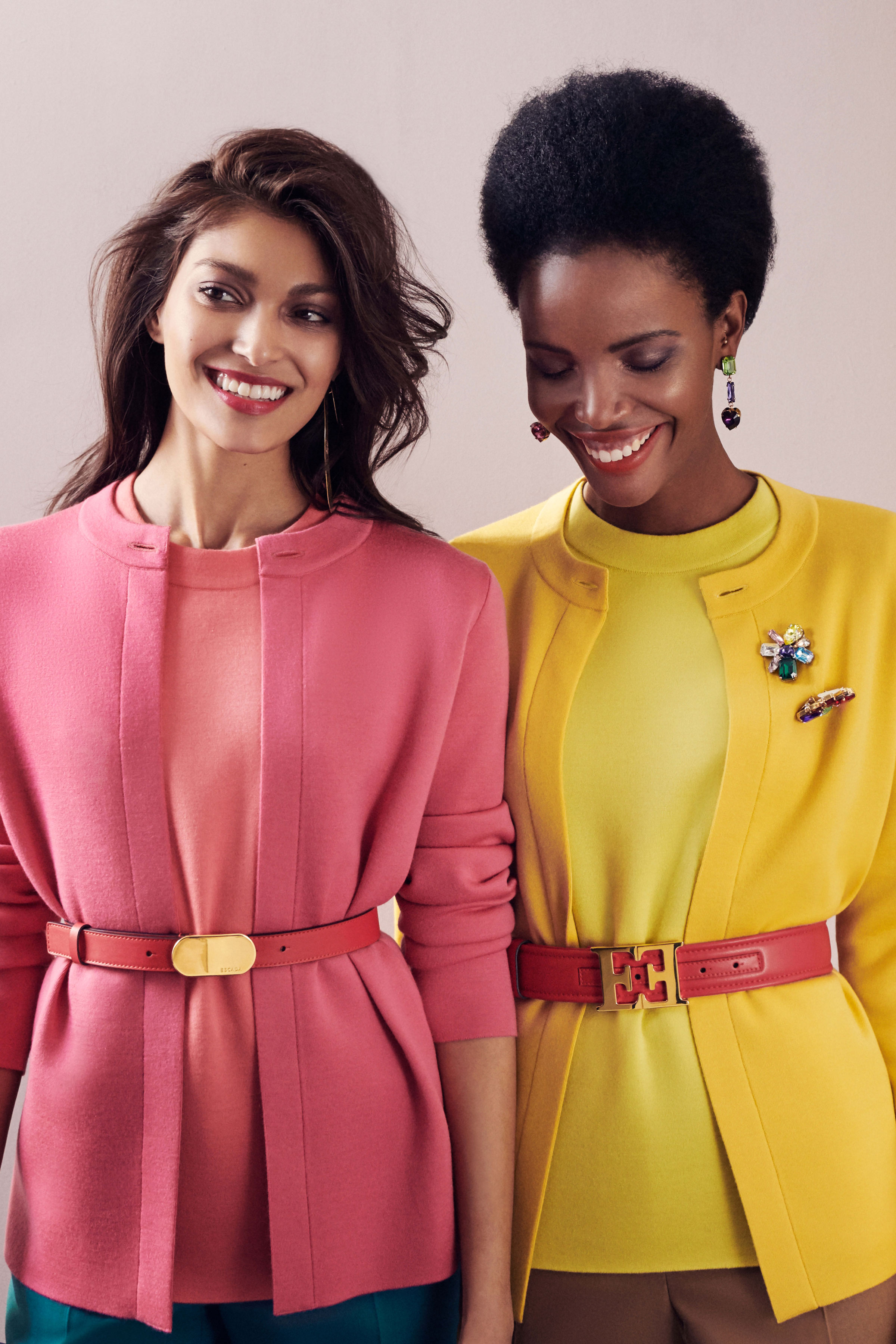 В коллекцию вошли три линии: главная, спортивная и аксессуары. Первая напоминает нам о том, что ключевой элемент гардероба Escada — строгий крой, но модели всегда выполнены в изысканном стиле, с мягкими плечами, достаточно простым силуэтом и оригинальной обработкой. Спортивная линия предлагает более современную и молодежную интерпретацию архивов. Здесь представлены классические темы наследия Escada, включая логотип и анималистический принт. В линии аксессуаров представлена сумка The Margaretha, вдохновением для которой послужил первый аромат бренда, а также большой выбор аксессуаров, созданных на основе прототипов из архивов.