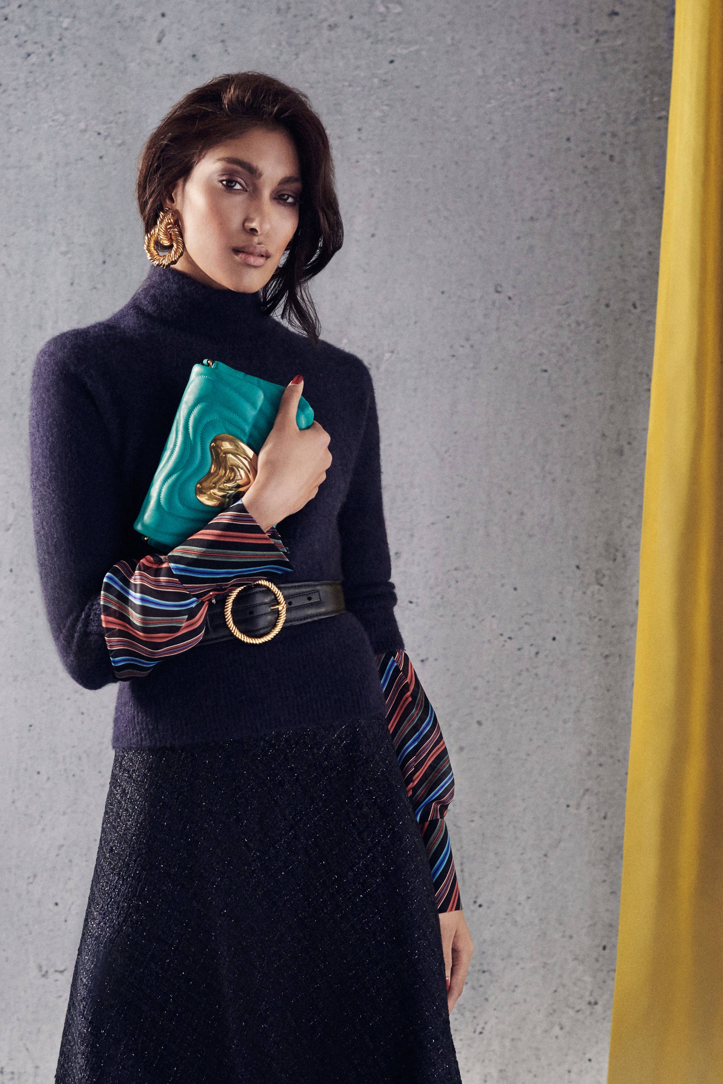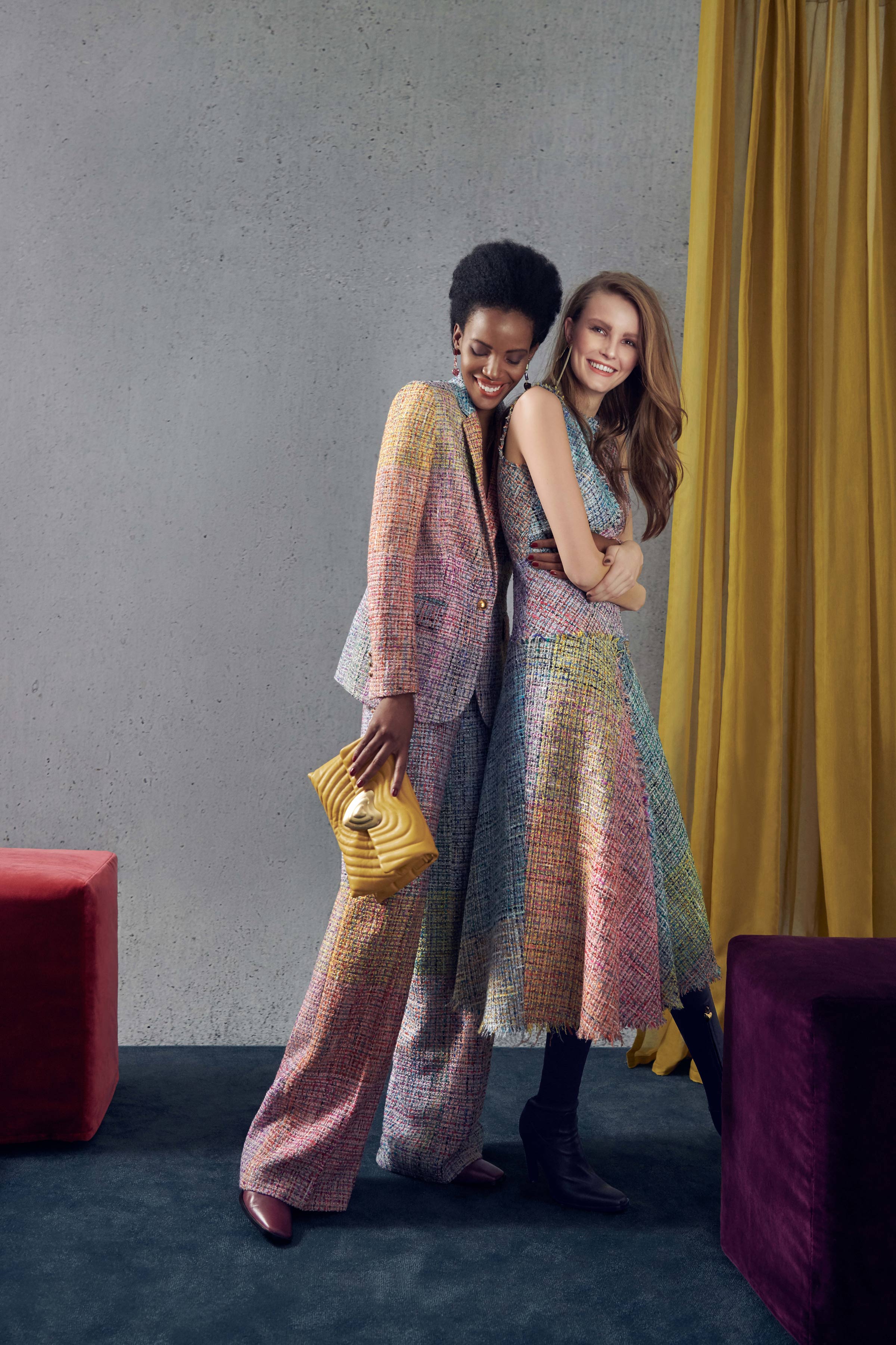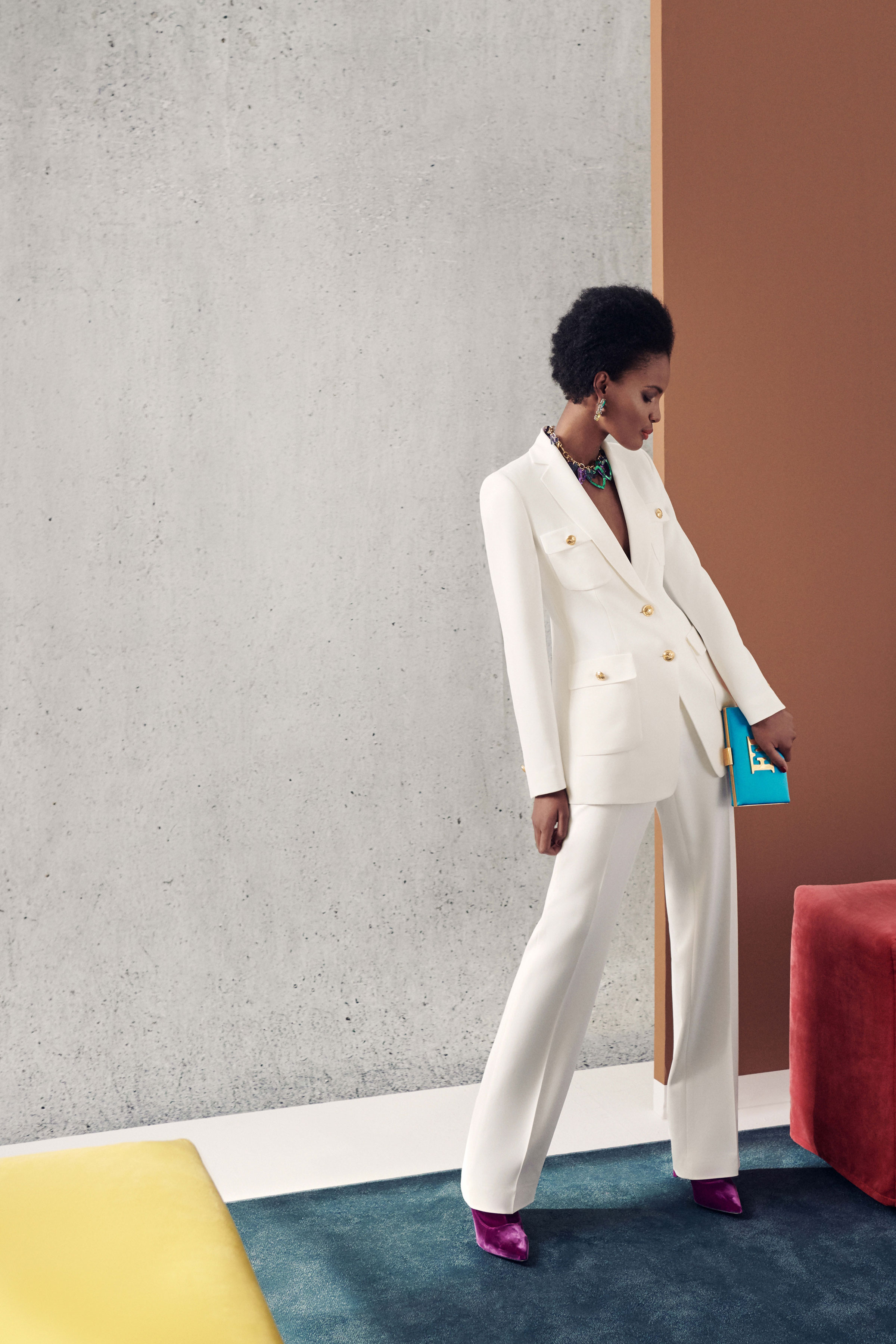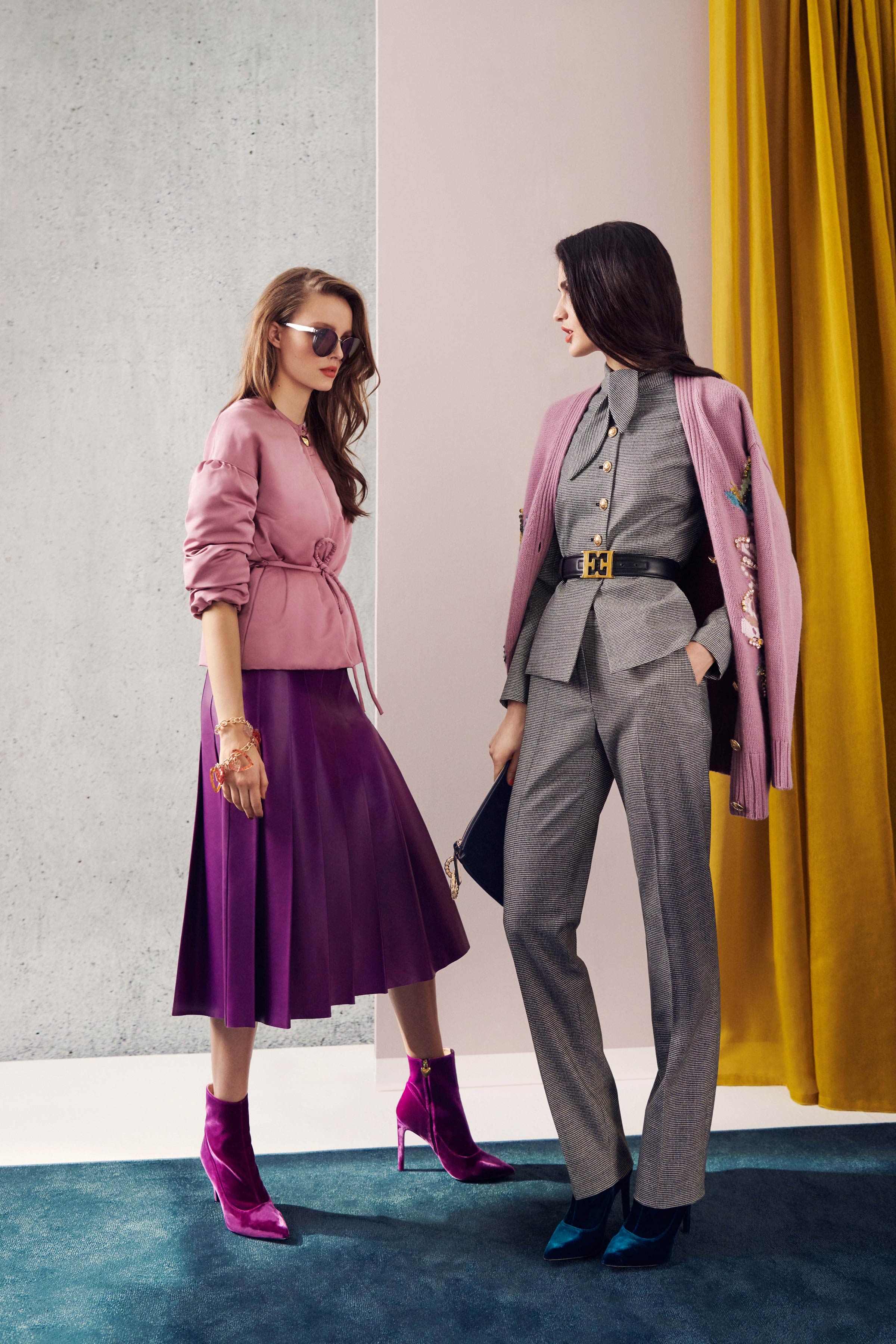 В коллекцию вошли три линии: главная, спортивная и аксессуары. Первая напоминает нам о том, что ключевой элемент гардероба Escada — строгий крой, но модели всегда выполнены в изысканном стиле, с мягкими плечами, достаточно простым силуэтом и оригинальной обработкой. Спортивная линия предлагает более современную и молодежную интерпретацию архивов. Здесь представлены классические темы наследия Escada, включая логотип и анималистический принт. В линии аксессуаров представлена сумка The Margaretha, вдохновением для которой послужил первый аромат бренда, а также большой выбор аксессуаров, созданных на основе прототипов из архивов.