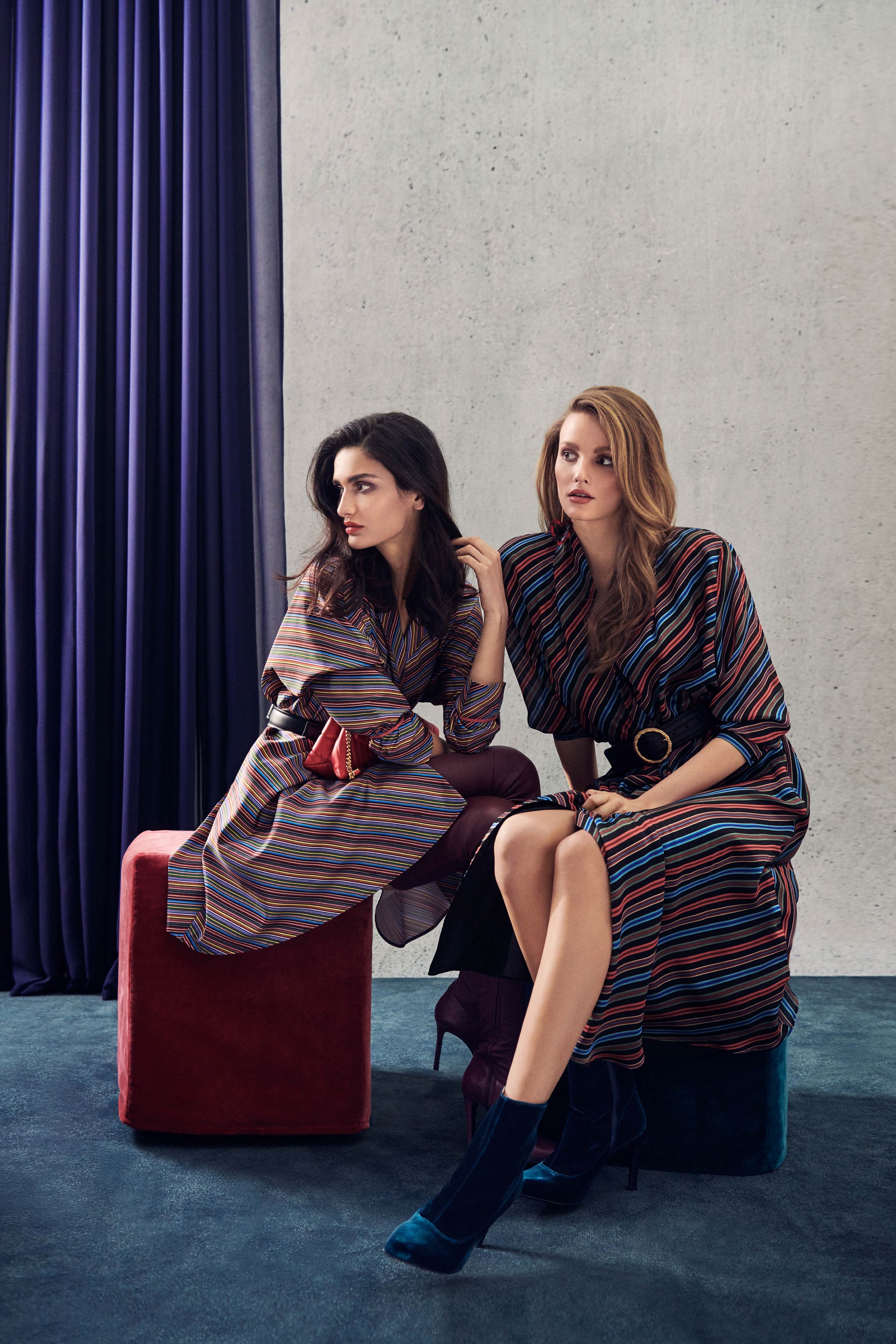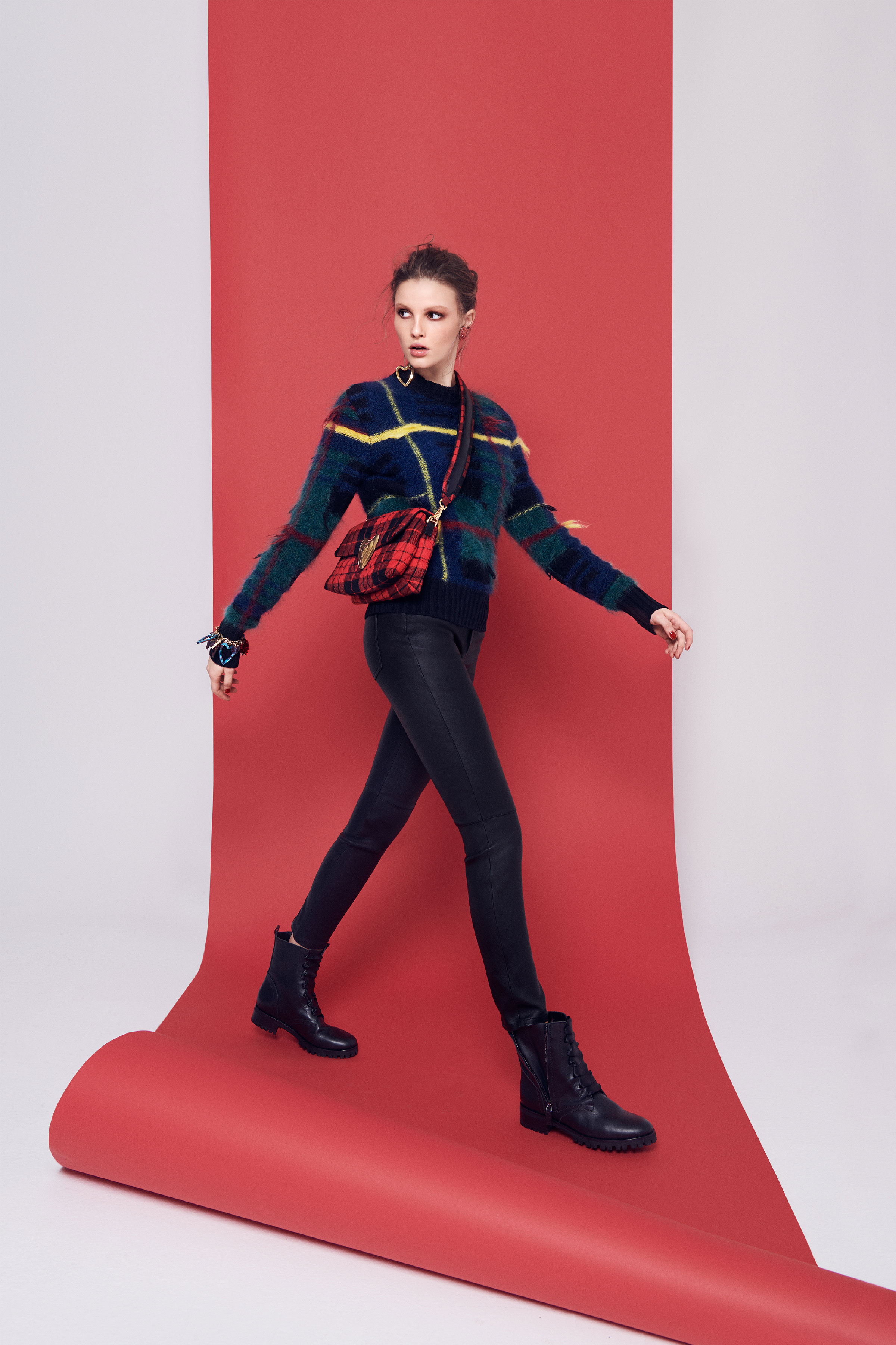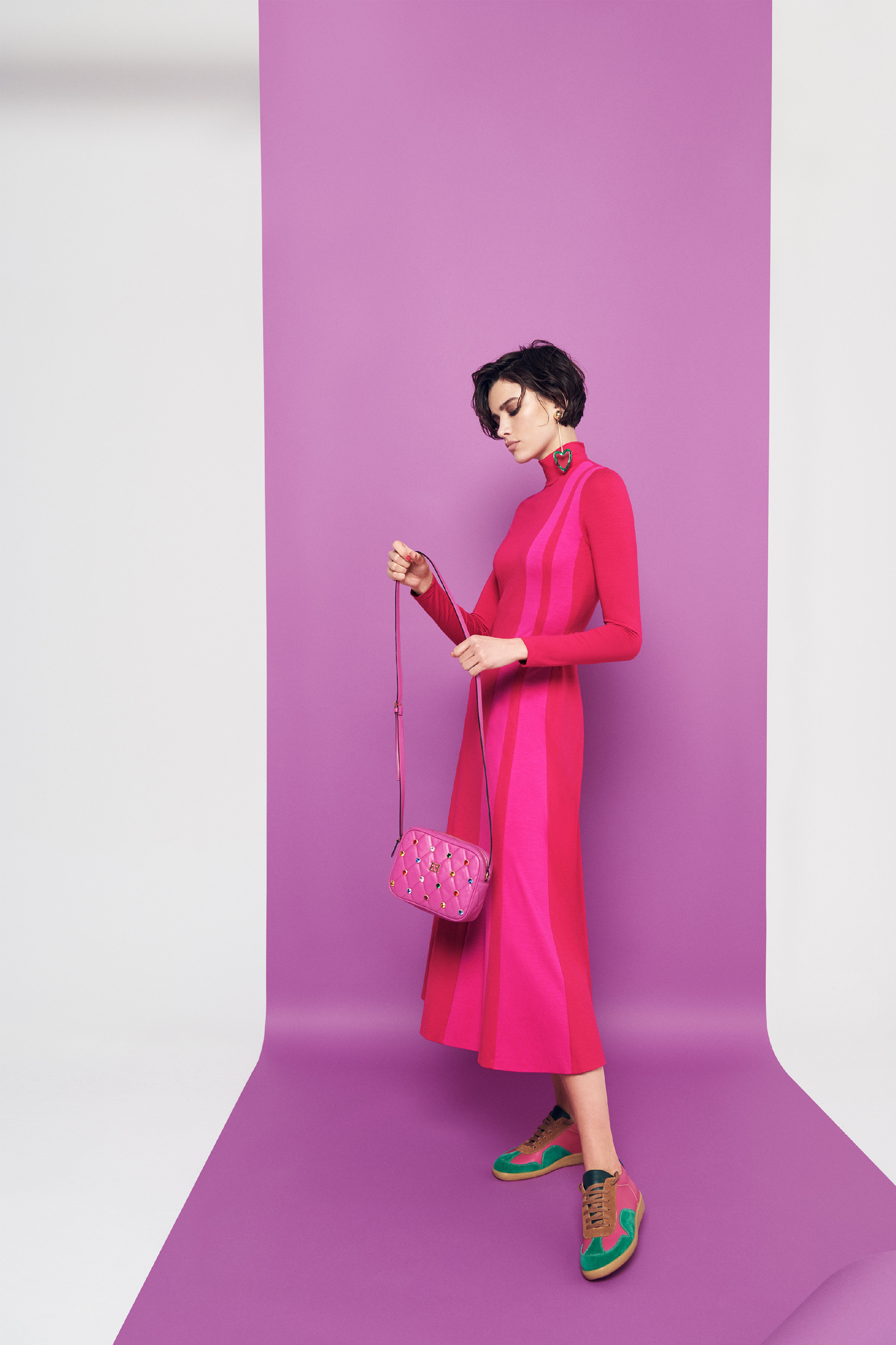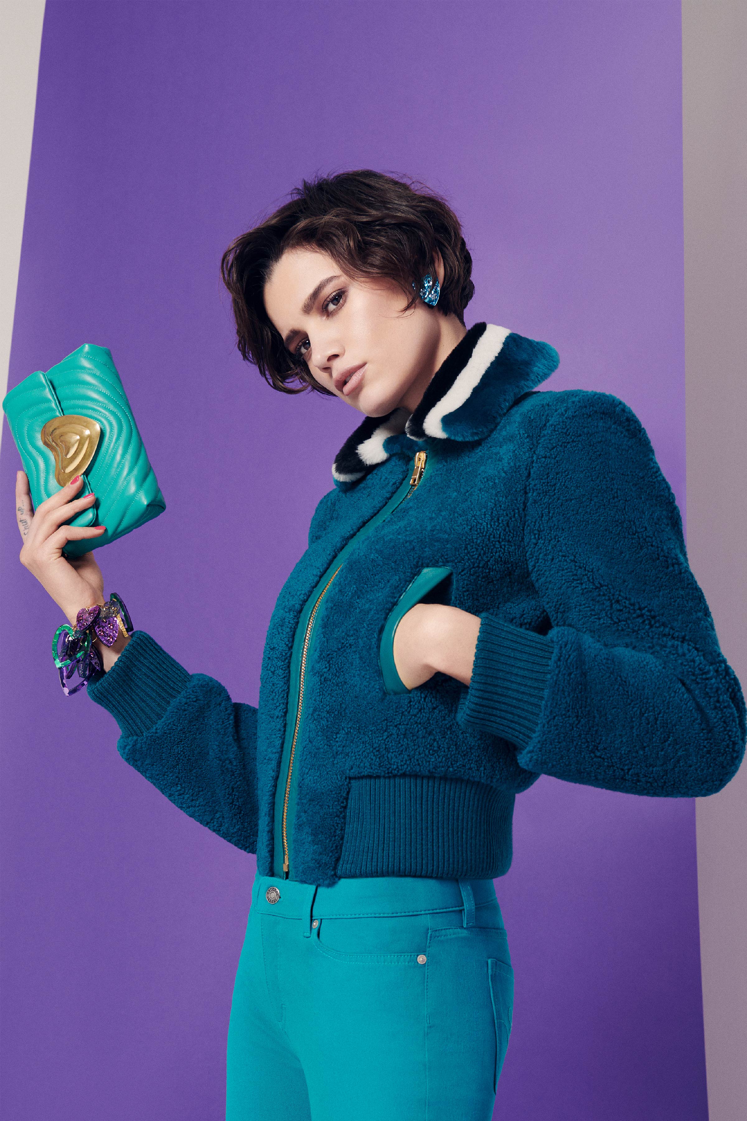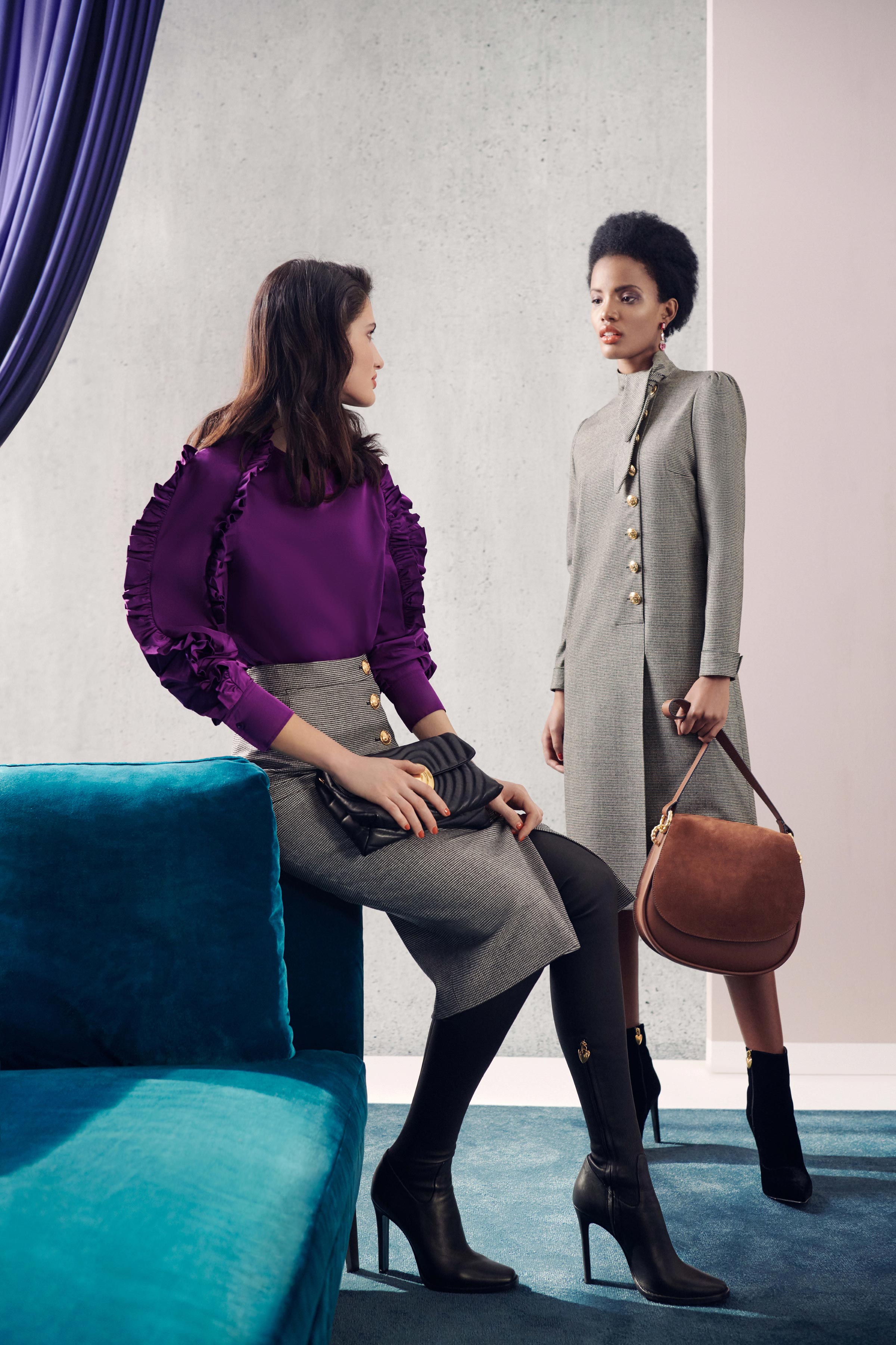 В коллекцию вошли три линии: главная, спортивная и аксессуары. Первая напоминает нам о том, что ключевой элемент гардероба Escada — строгий крой, но модели всегда выполнены в изысканном стиле, с мягкими плечами, достаточно простым силуэтом и оригинальной обработкой. Спортивная линия предлагает более современную и молодежную интерпретацию архивов. Здесь представлены классические темы наследия Escada, включая логотип и анималистический принт. В линии аксессуаров представлена сумка The Margaretha, вдохновением для которой послужил первый аромат бренда, а также большой выбор аксессуаров, созданных на основе прототипов из архивов.