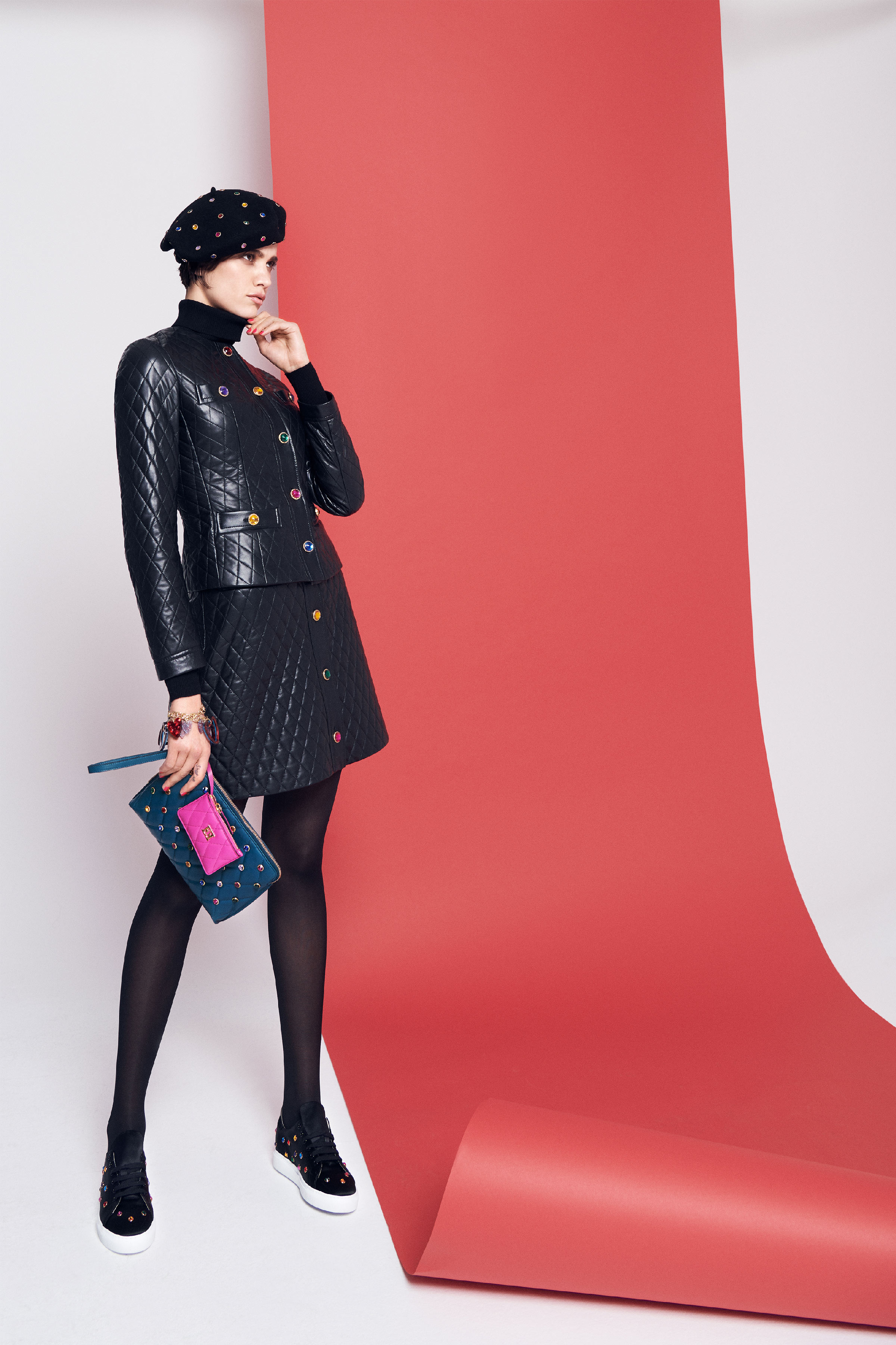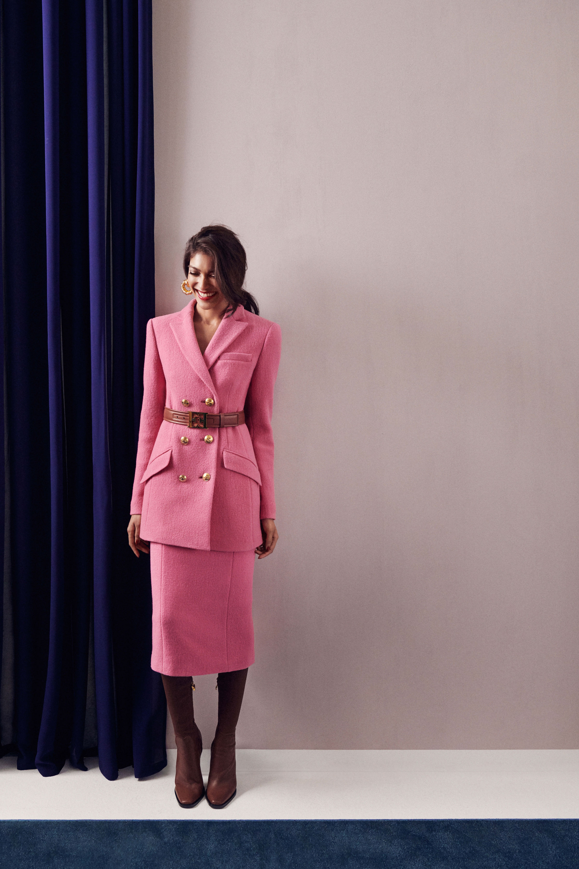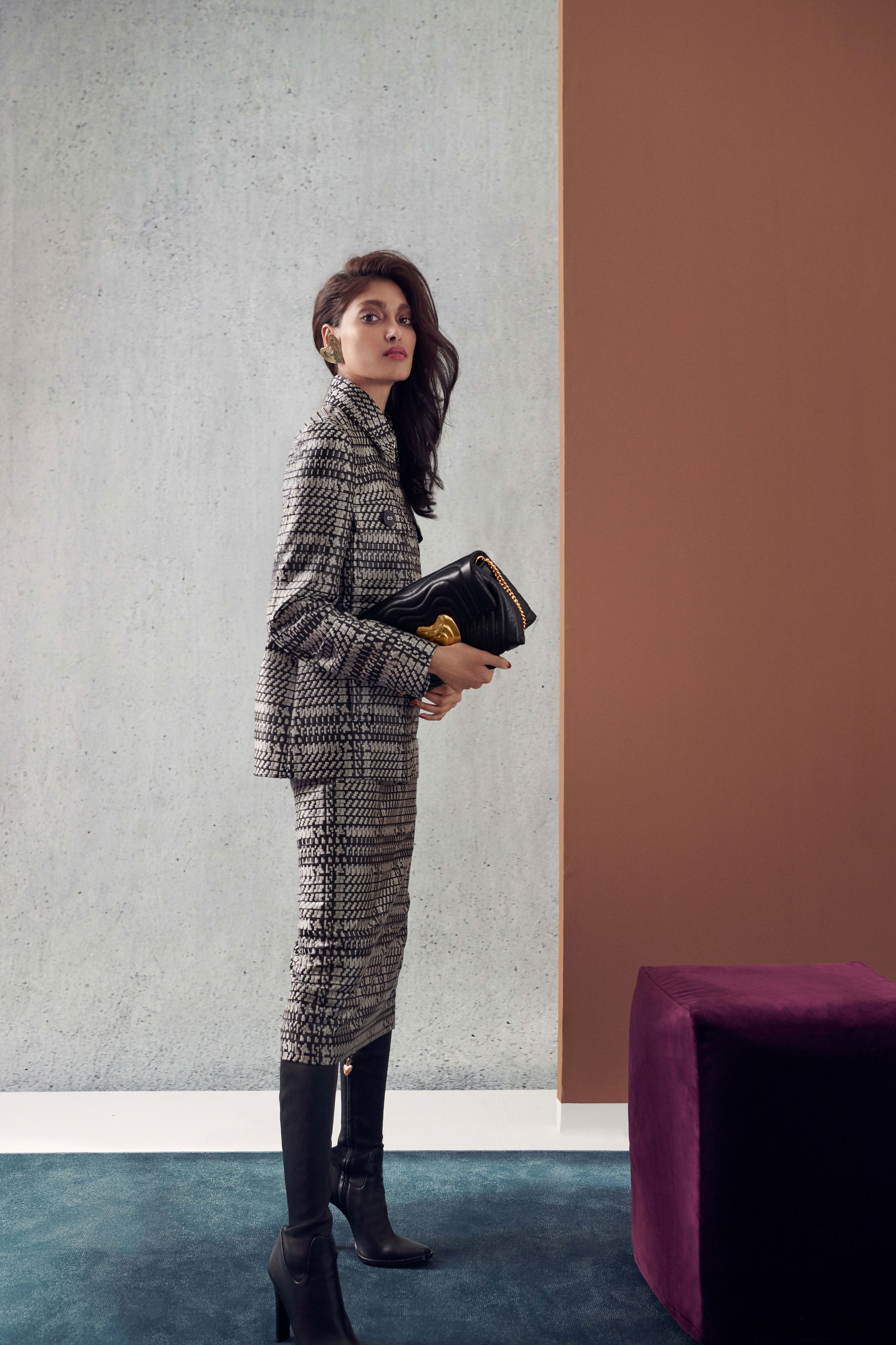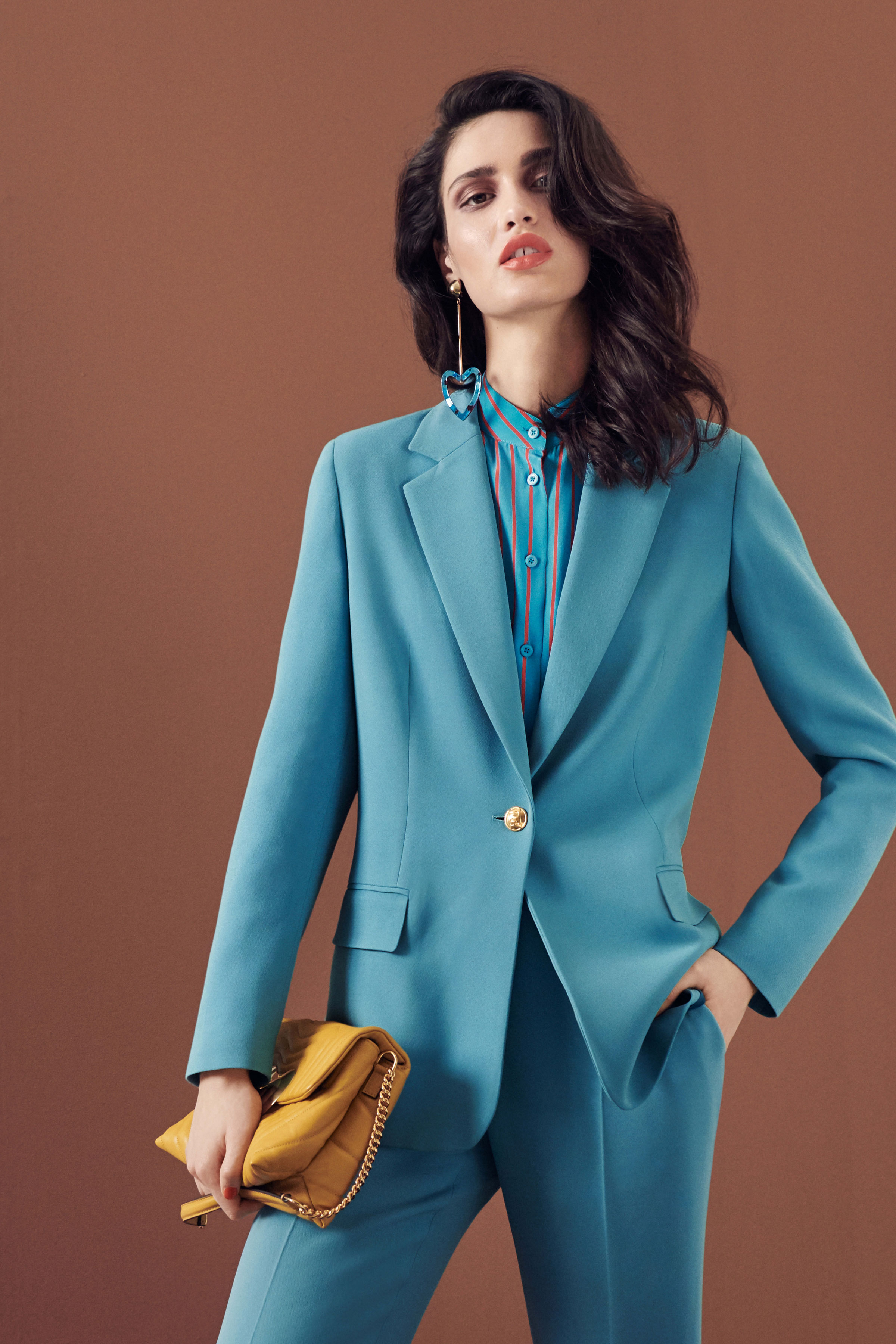 В коллекцию вошли три линии: главная, спортивная и аксессуары. Первая напоминает нам о том, что ключевой элемент гардероба Escada — строгий крой, но модели всегда выполнены в изысканном стиле, с мягкими плечами, достаточно простым силуэтом и оригинальной обработкой. Спортивная линия предлагает более современную и молодежную интерпретацию архивов. Здесь представлены классические темы наследия Escada, включая логотип и анималистический принт. В линии аксессуаров представлена сумка The Margaretha, вдохновением для которой послужил первый аромат бренда, а также большой выбор аксессуаров, созданных на основе прототипов из архивов.