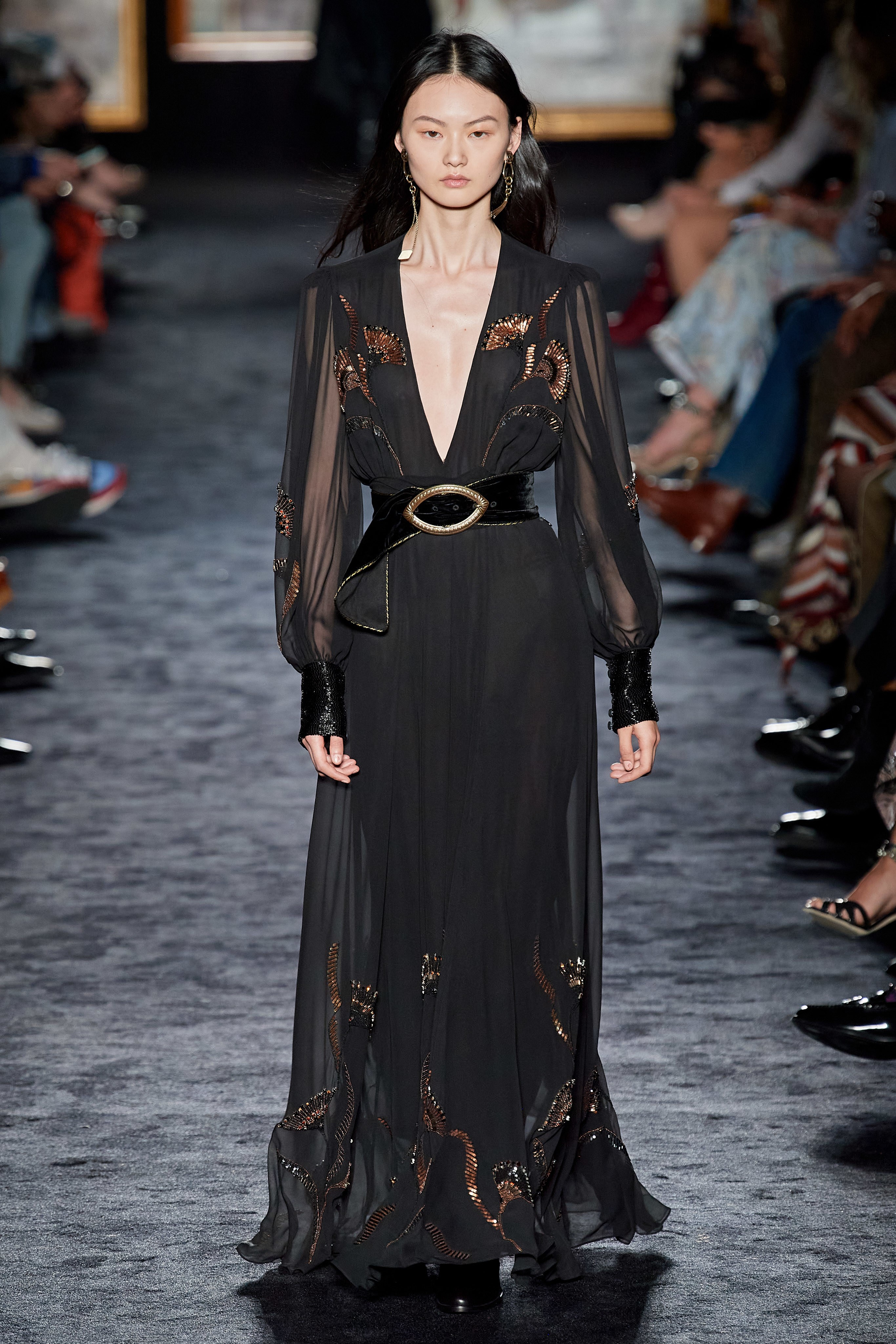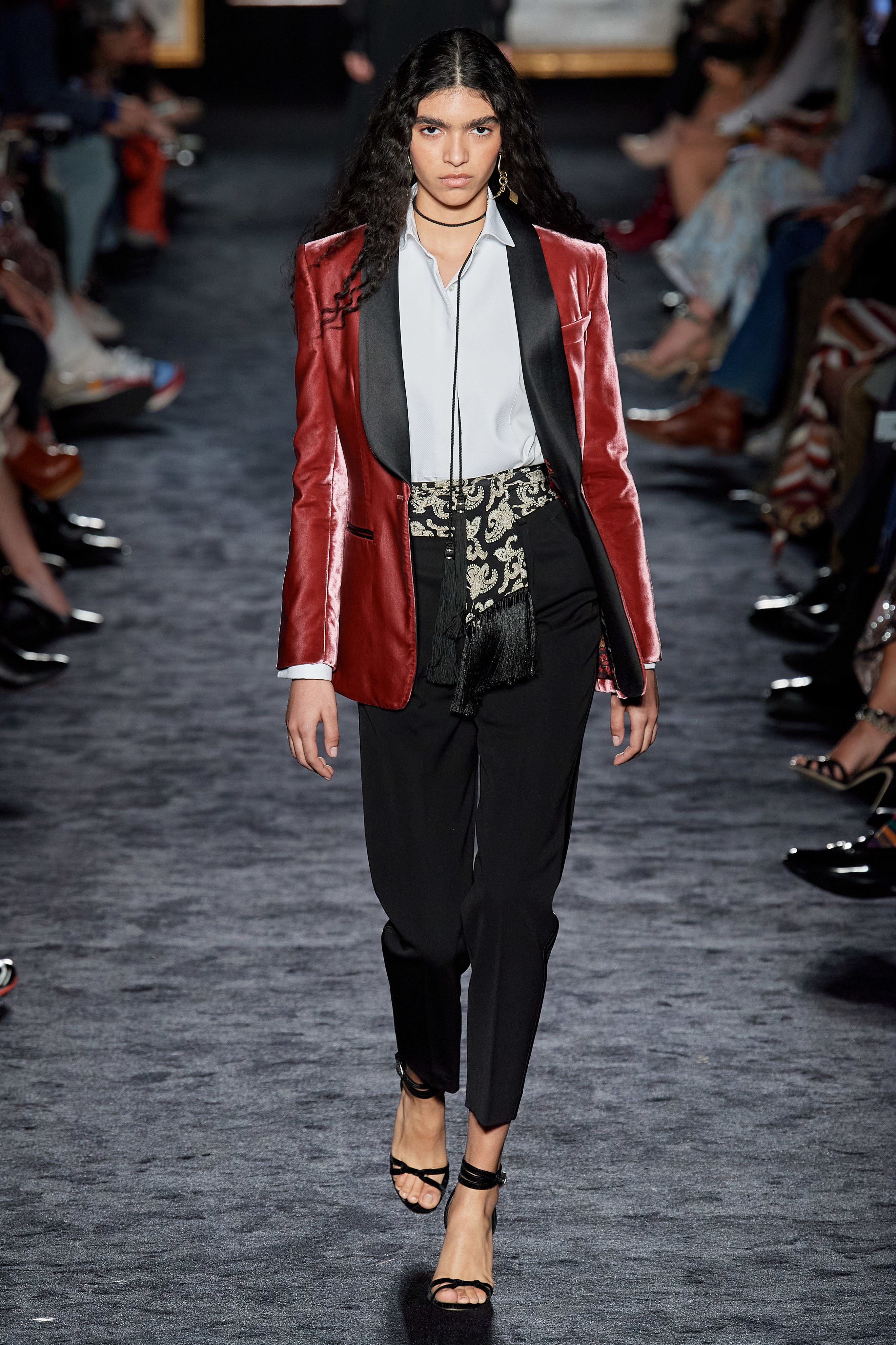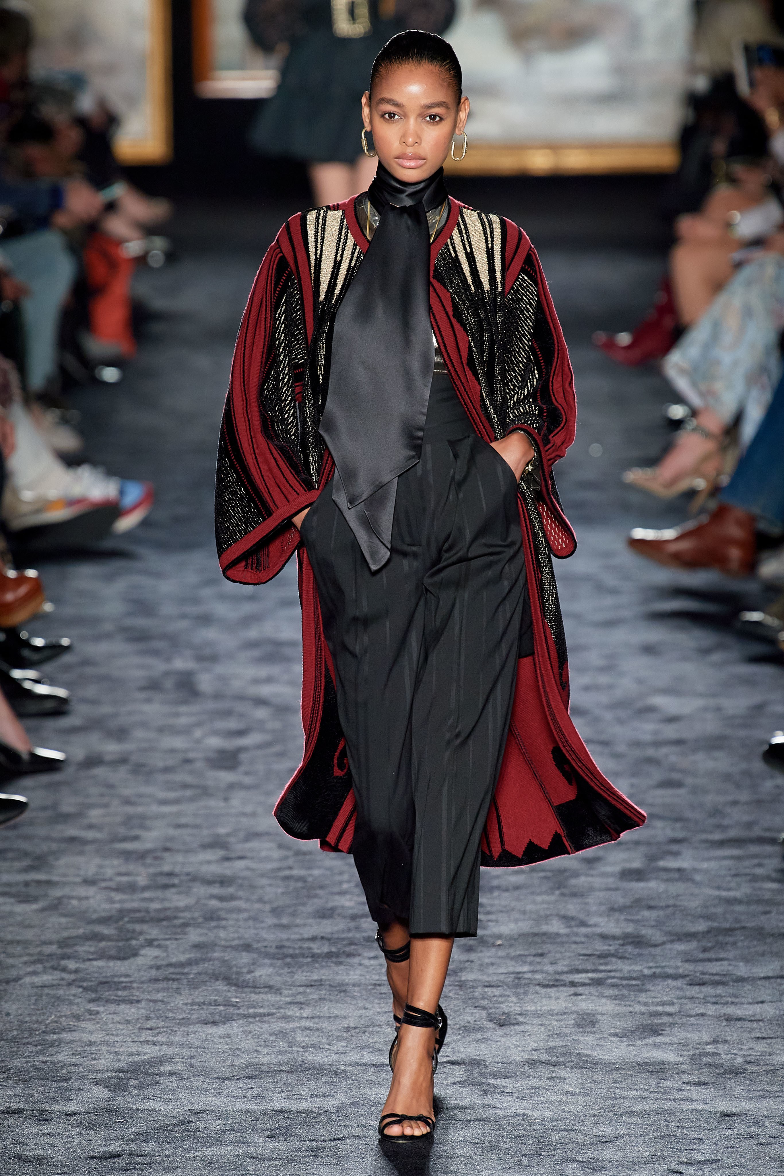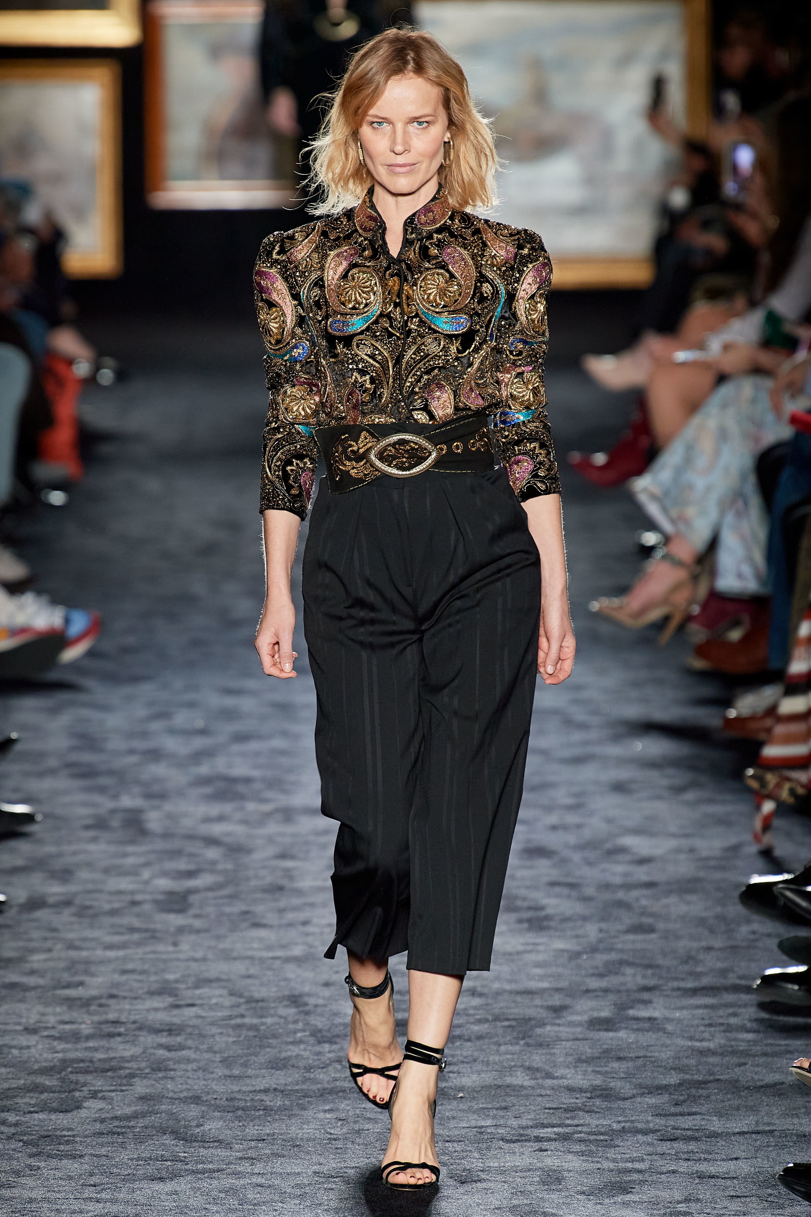 Ключевые элементы: брюки-кюлоты, пальто, шубы и табарды с вышивкой, роскошные макси, платья, шёлковые блузы, узорчатые брючные костюмы.
