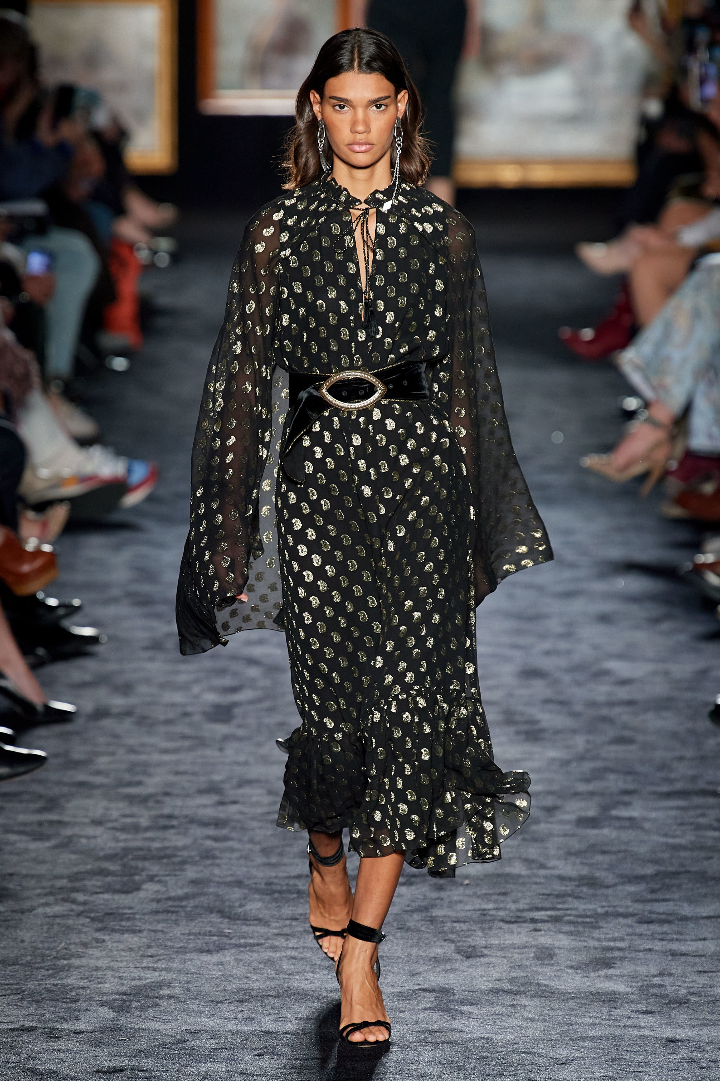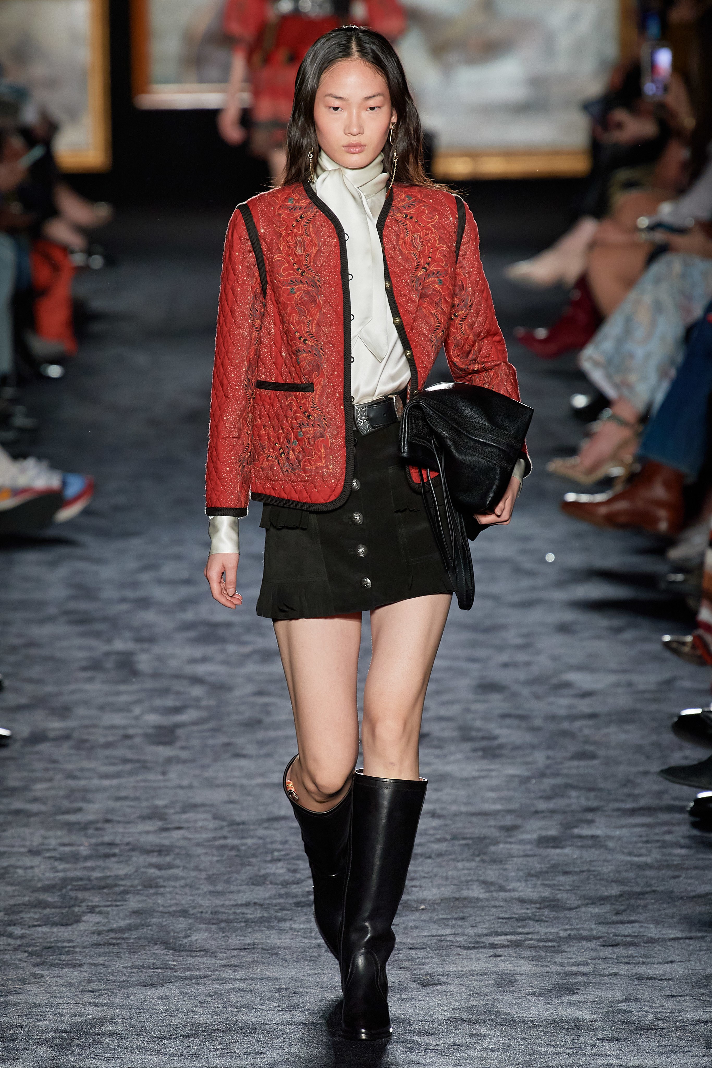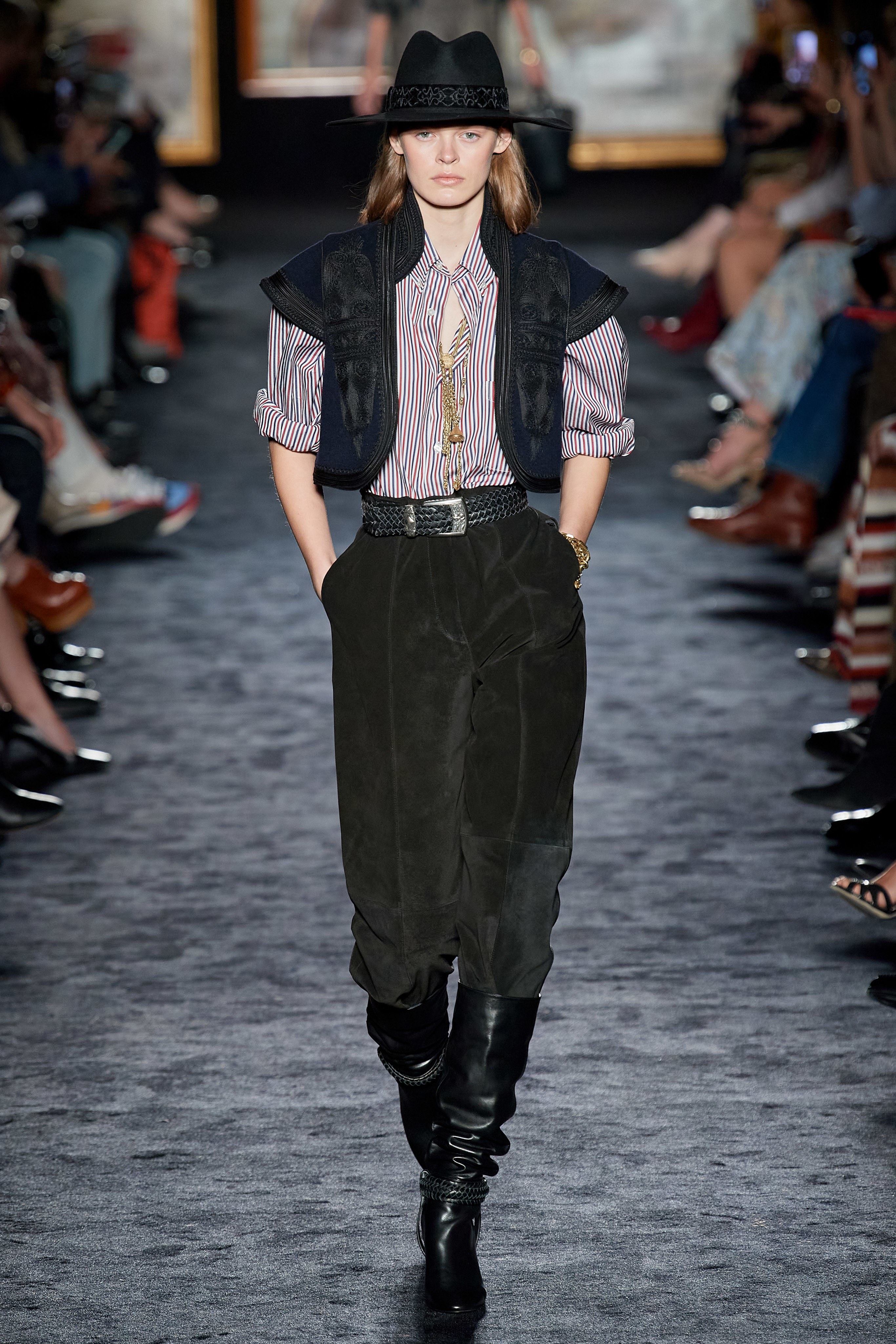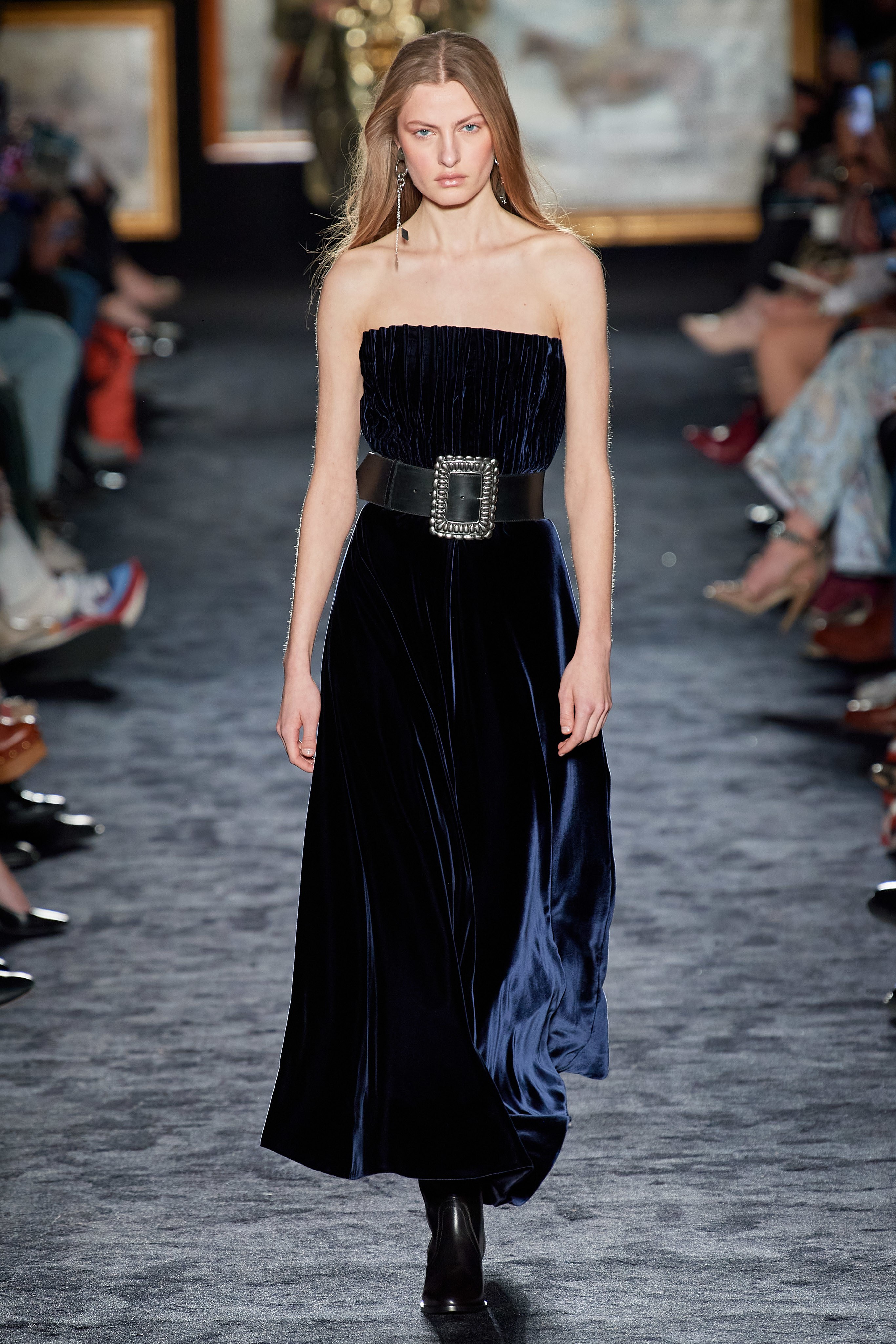 Ключевые элементы: брюки-кюлоты, пальто, шубы и табарды с вышивкой, роскошные макси, платья, шёлковые блузы, узорчатые брючные костюмы.