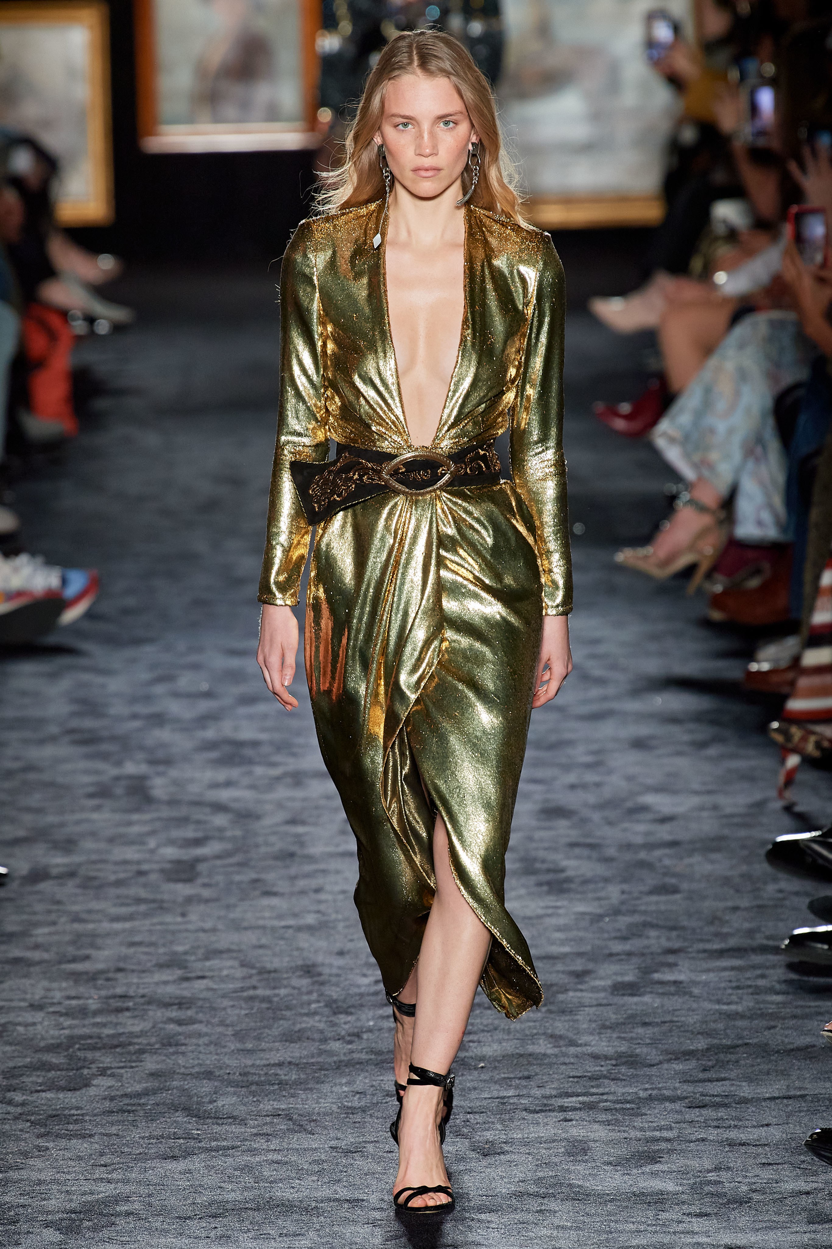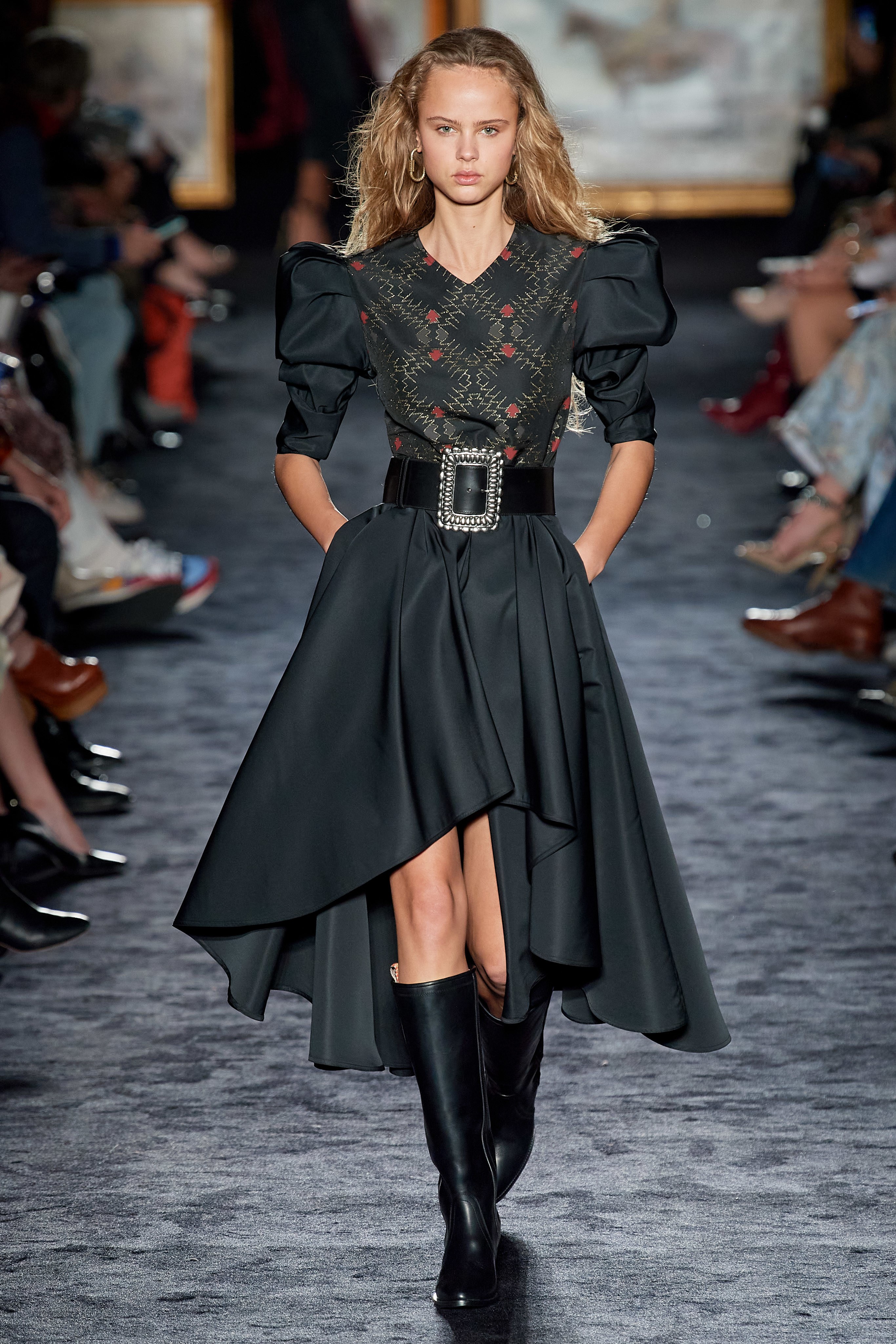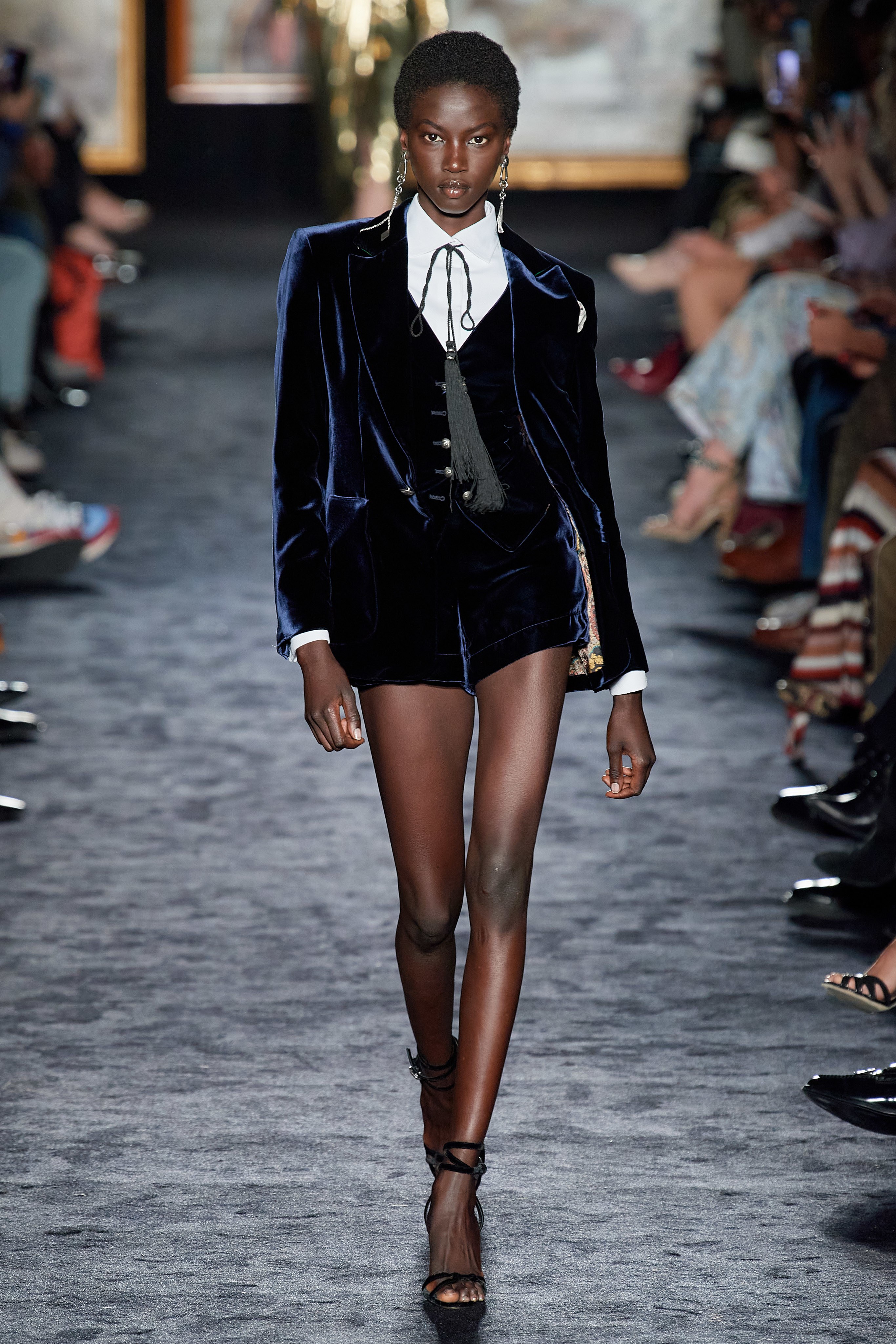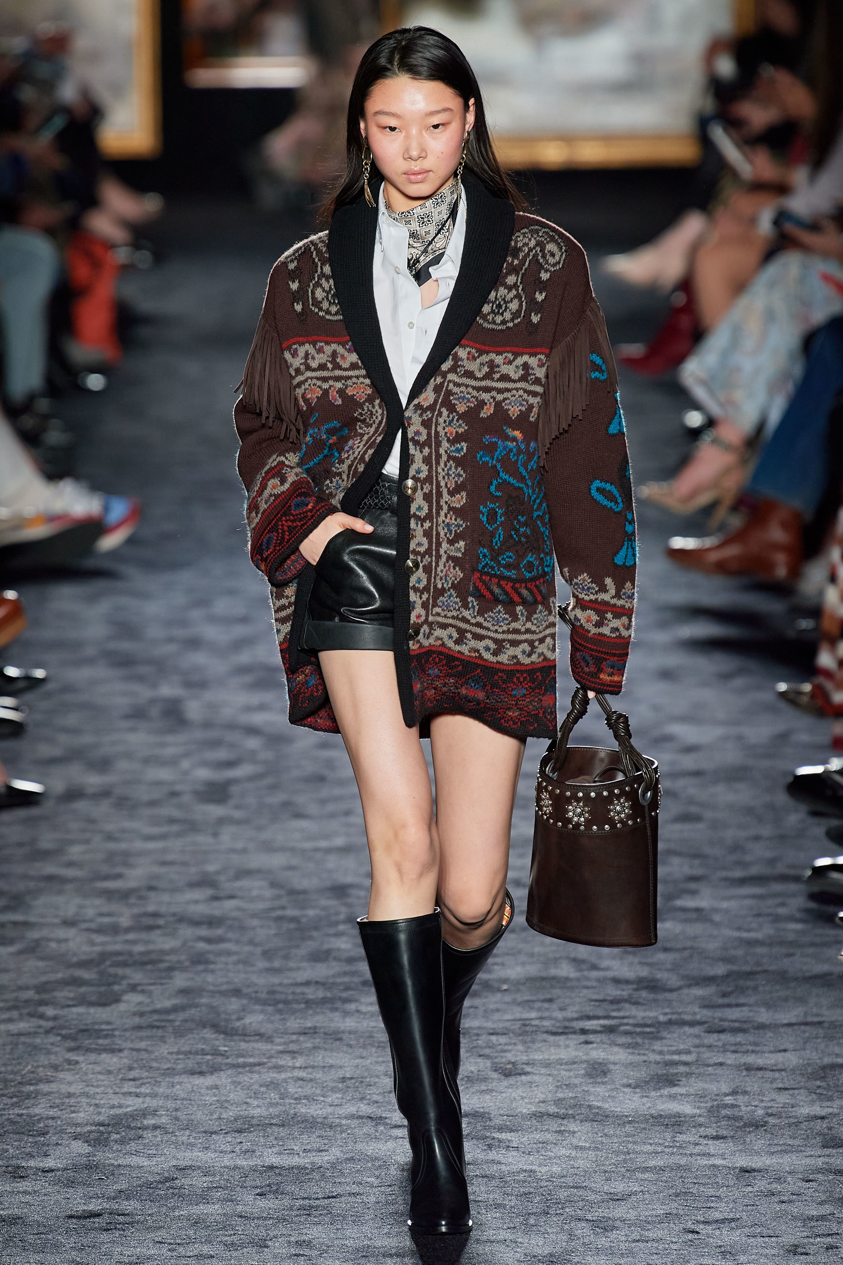 Ключевые элементы: брюки-кюлоты, пальто, шубы и табарды с вышивкой, роскошные макси, платья, шёлковые блузы, узорчатые брючные костюмы.