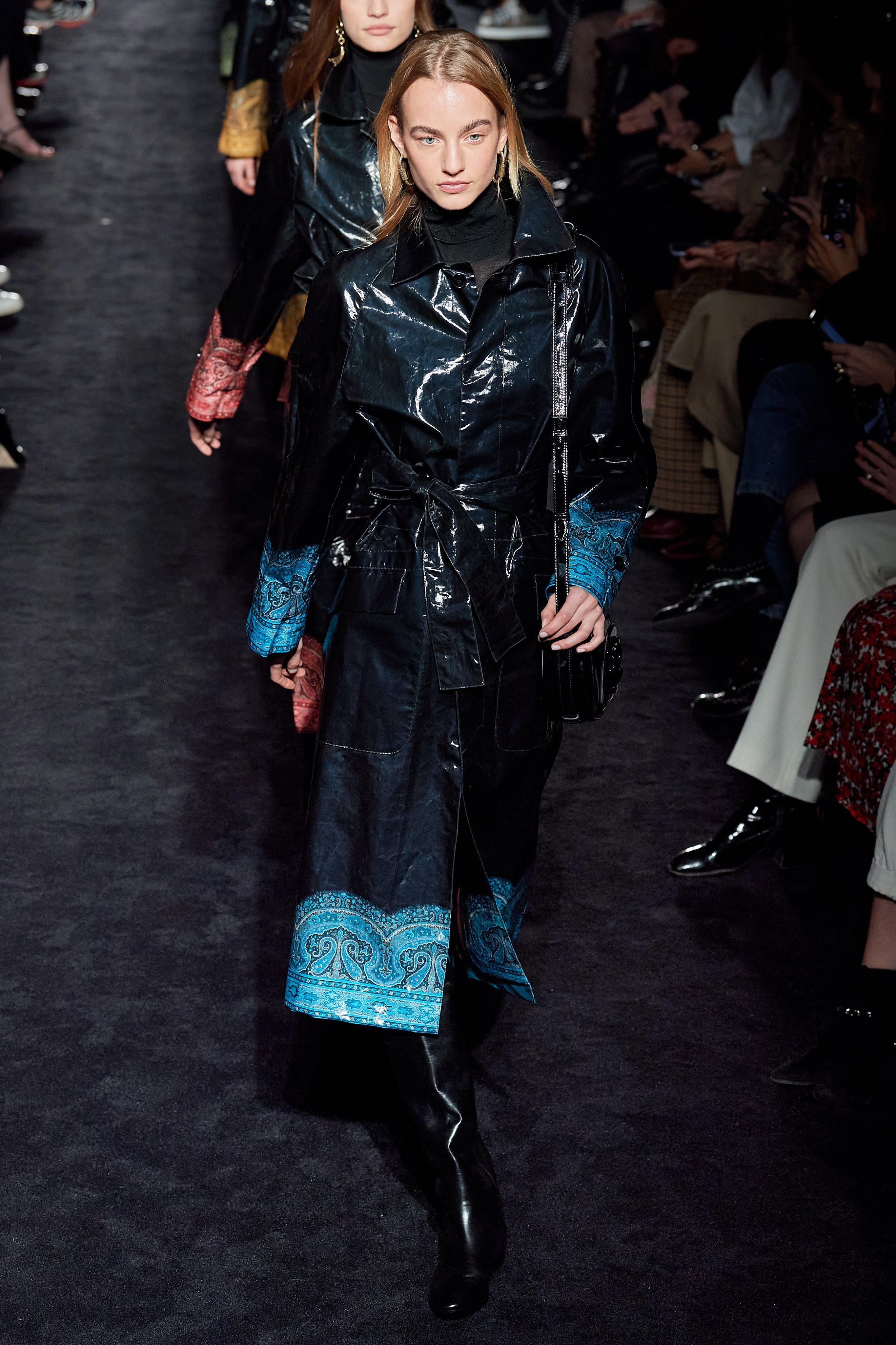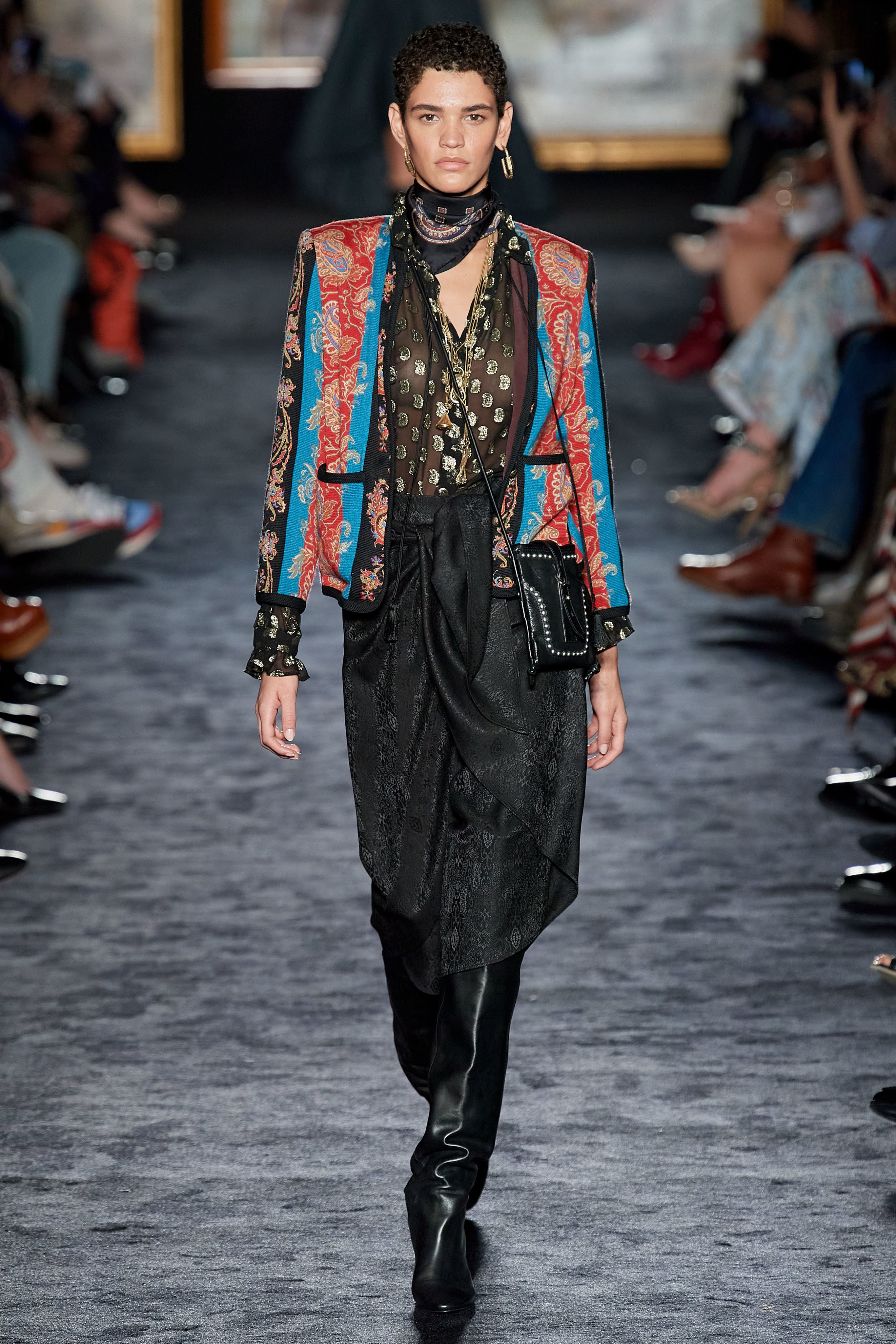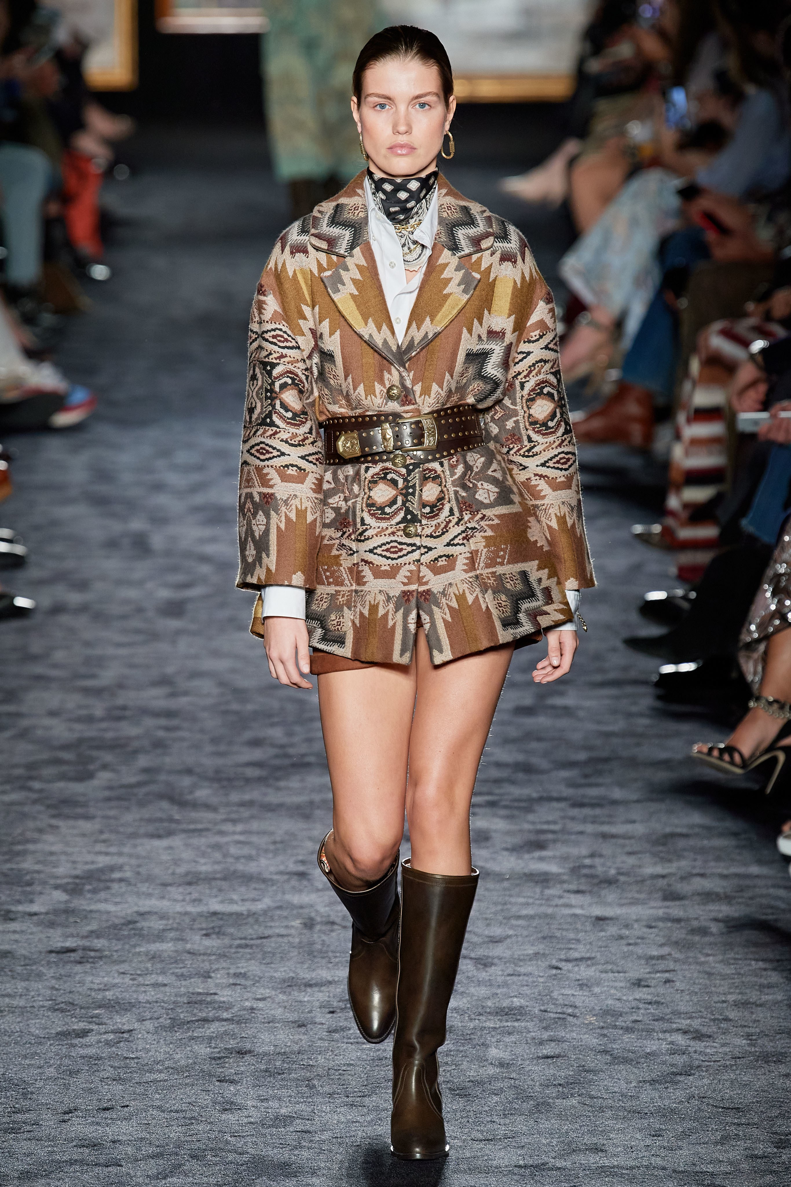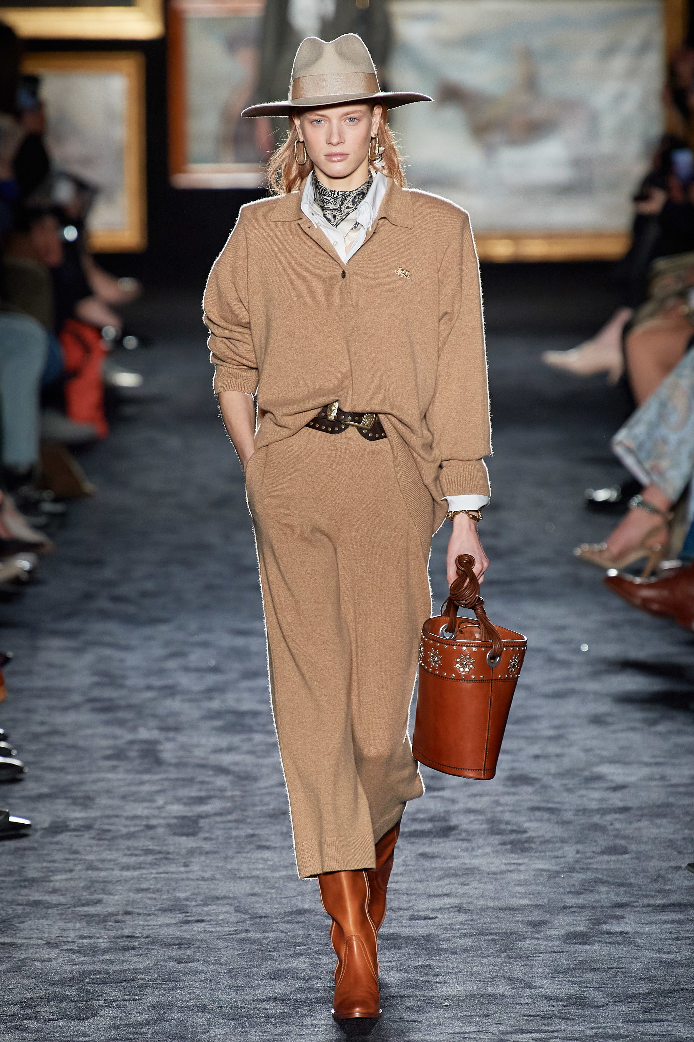 Креативный директор бренда Вероника Этро представила осеннюю коллекцию. Шоу прошло в консерватории Джузеппе Верди. Осень от Etro - это эффектные платья в мексиканском стиле с богатой вышивкой, уютные пончо и элегантные костюмы на манер жокейских. Нежные шёлковые блузы со стойками-бантами можно носить с вязаными жилетами, как показала дизайнер, а брючные костюмы в клетку вместе с нарядным плащом.