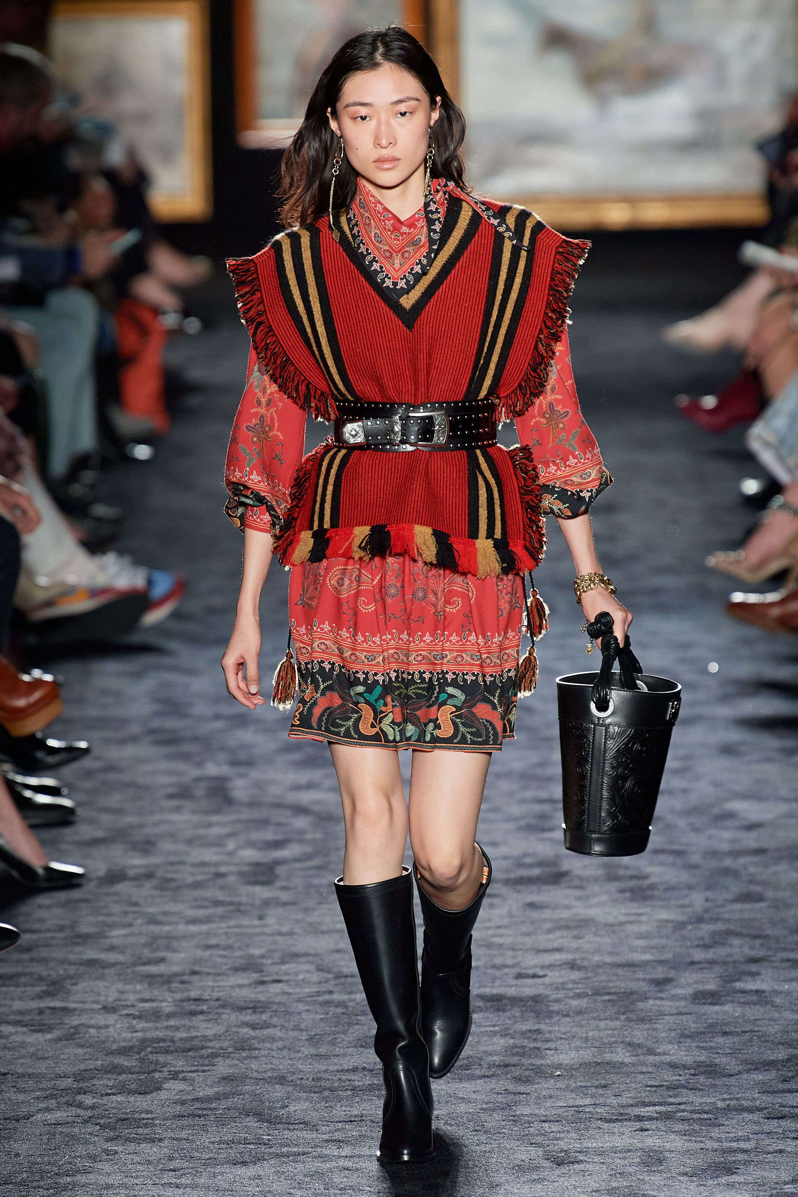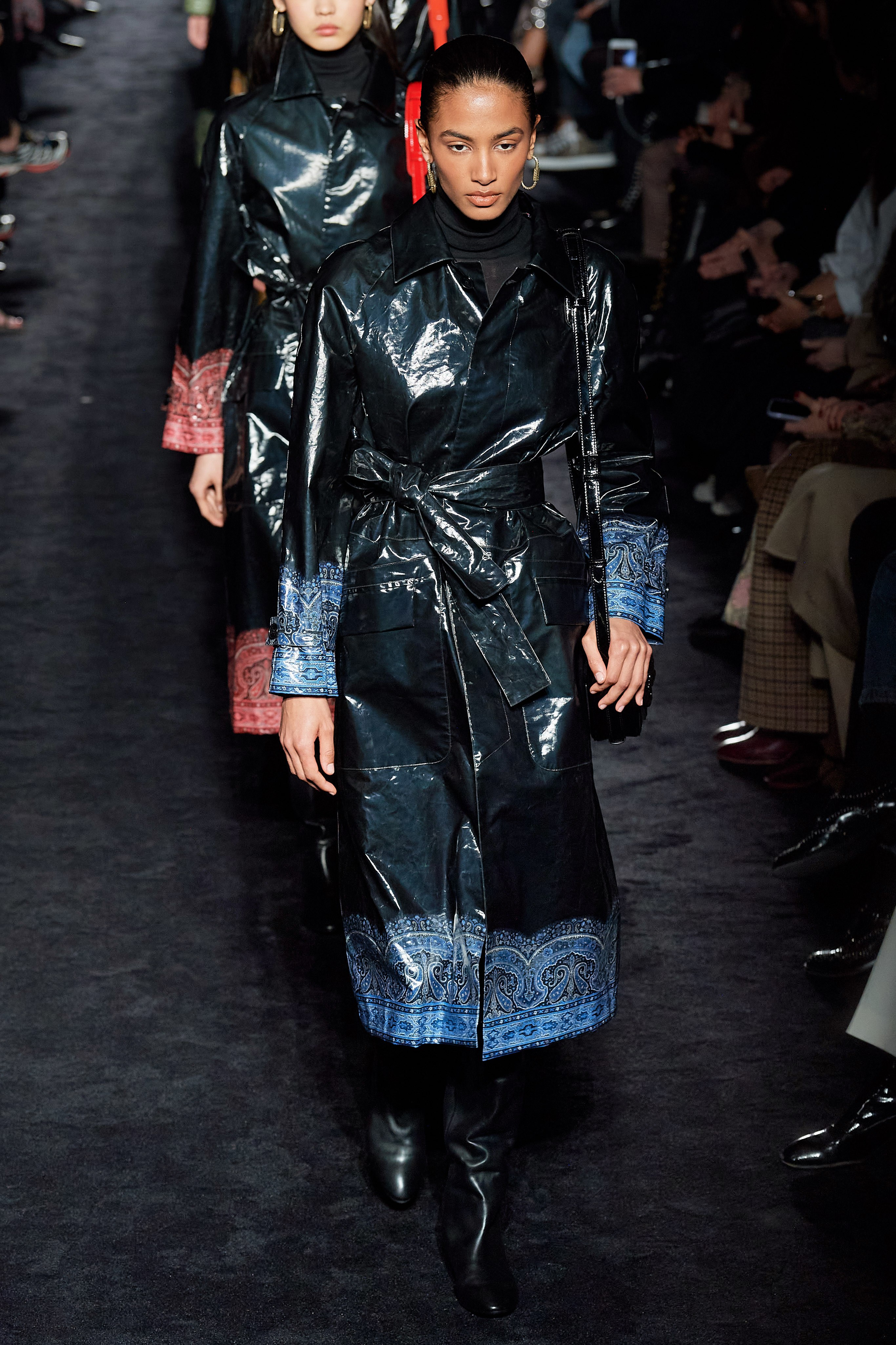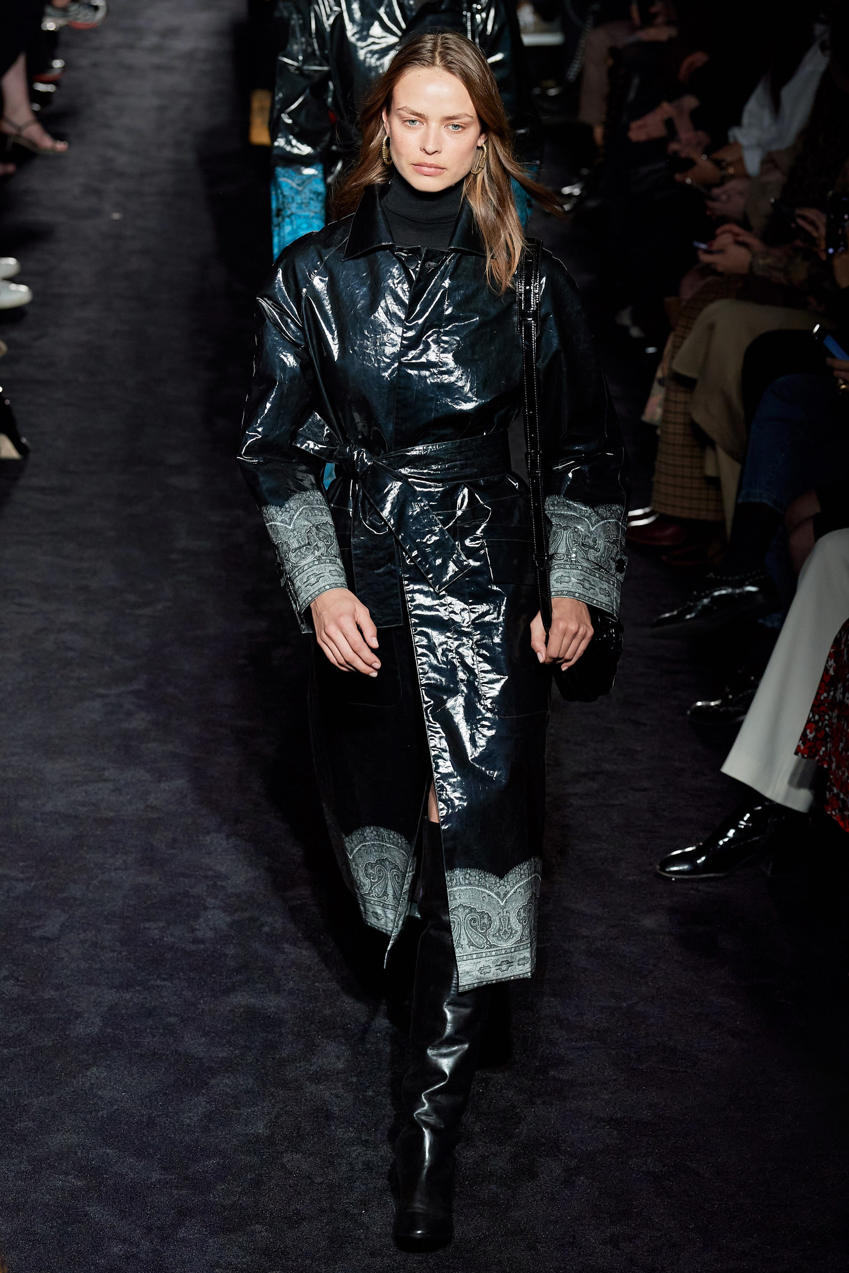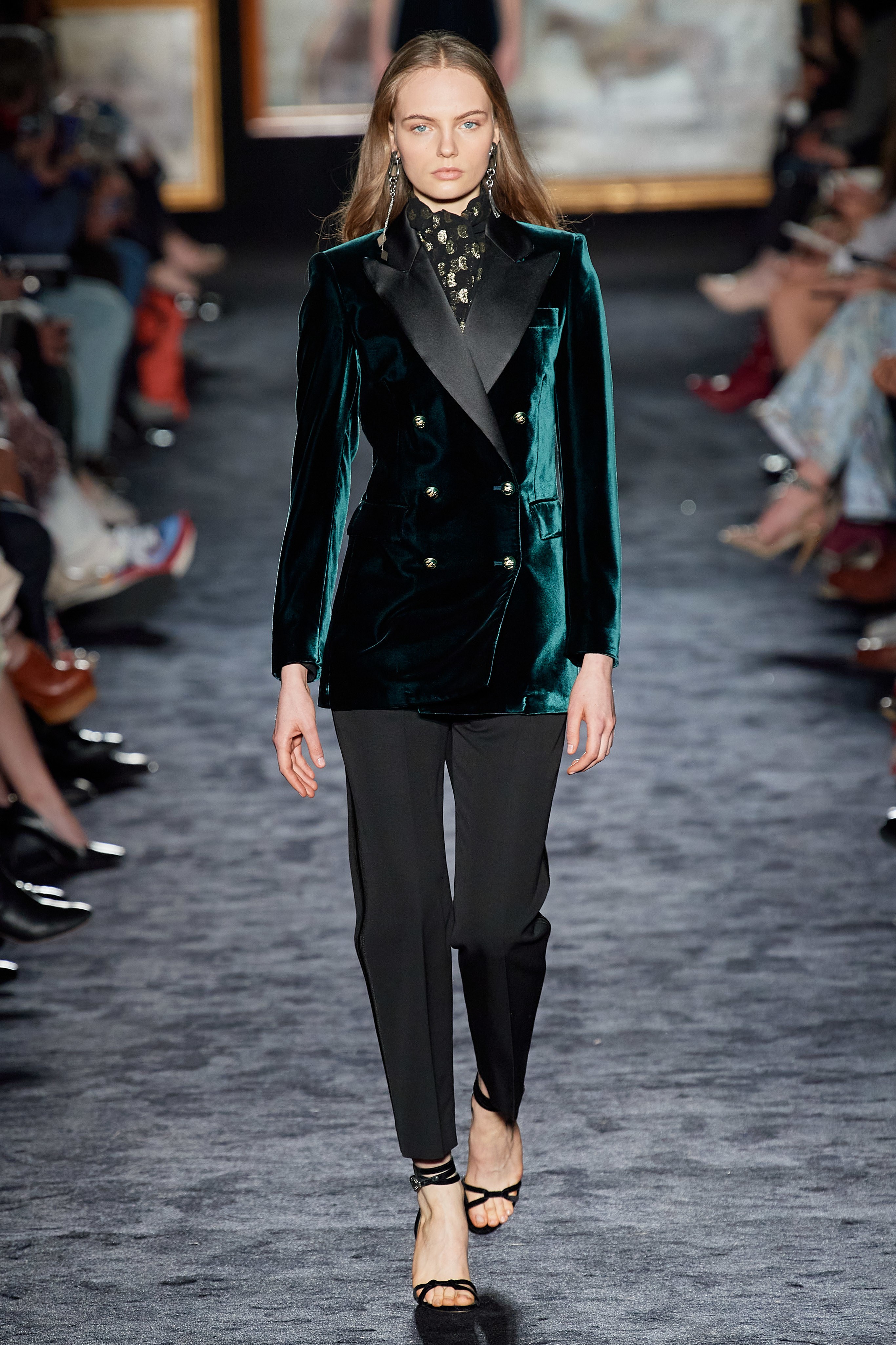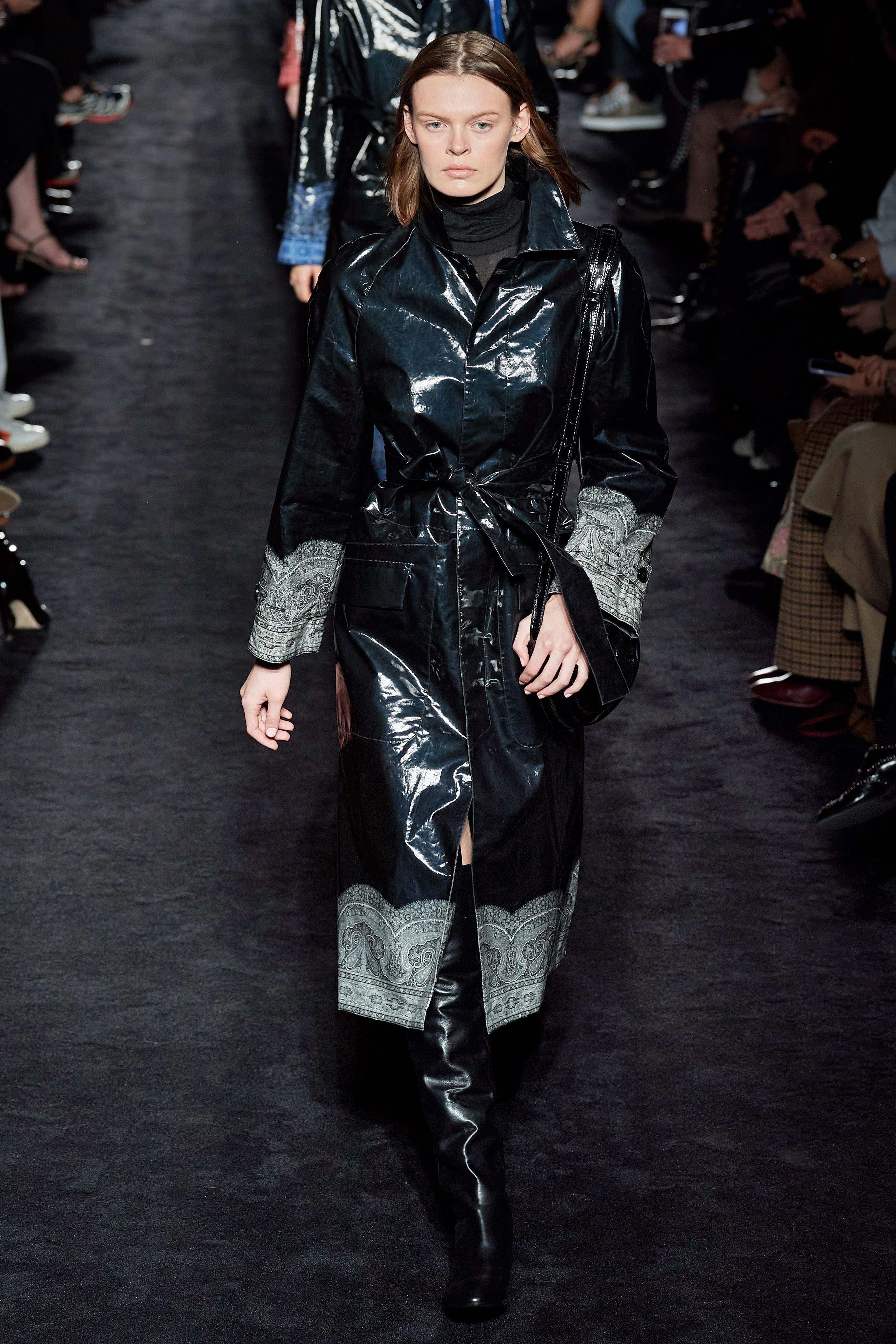 Креативный директор бренда Вероника Этро представила осеннюю коллекцию. Шоу прошло в консерватории Джузеппе Верди. Осень от Etro - это эффектные платья в мексиканском стиле с богатой вышивкой, уютные пончо и элегантные костюмы на манер жокейских. Нежные шёлковые блузы со стойками-бантами можно носить с вязаными жилетами, как показала дизайнер, а брючные костюмы в клетку вместе с нарядным плащом.