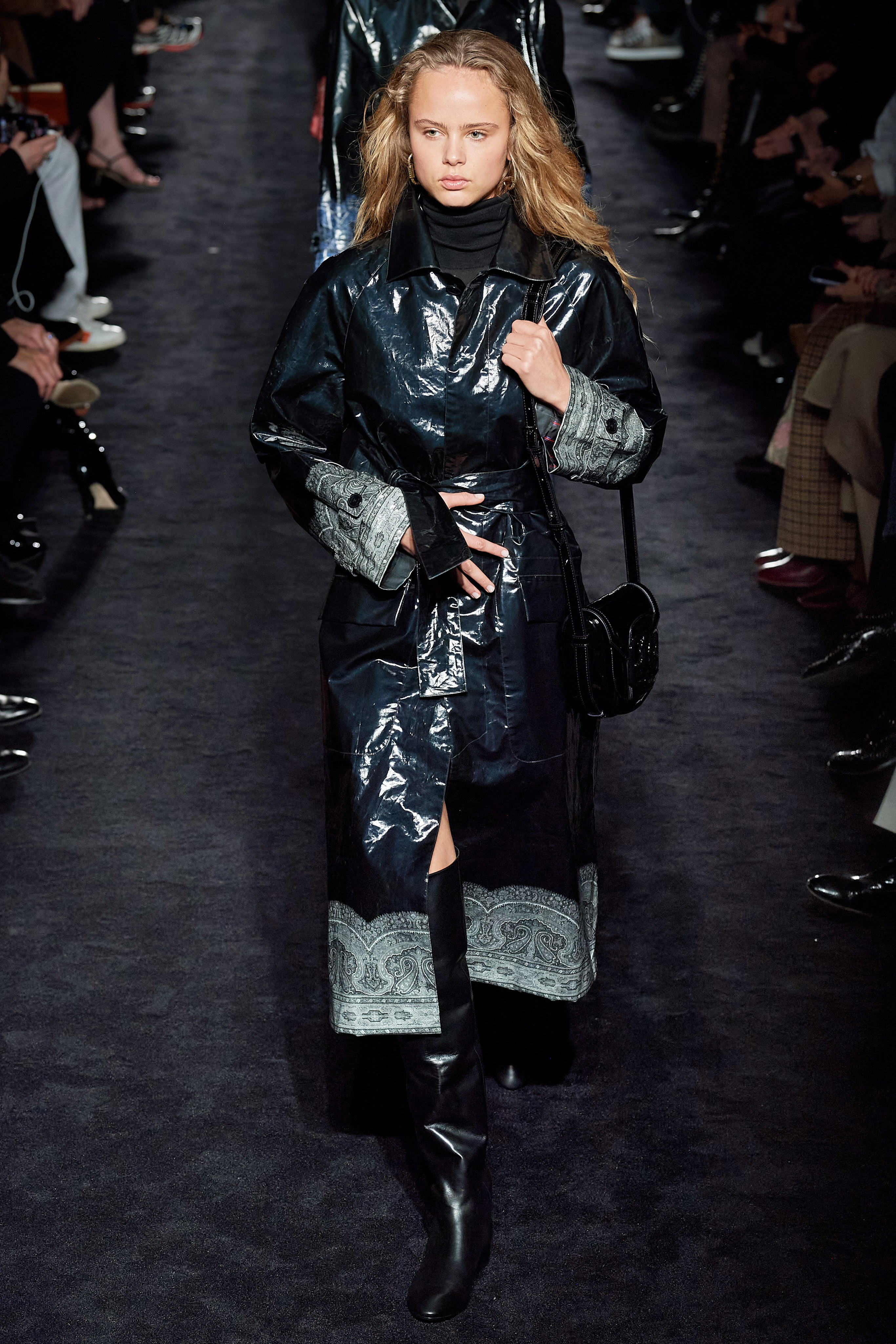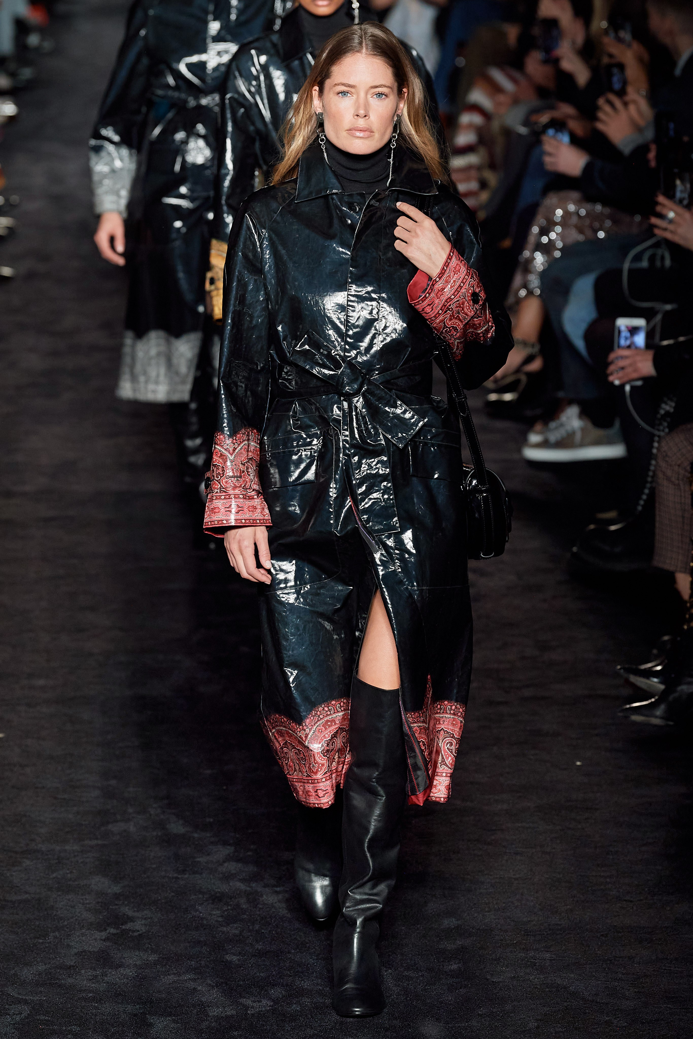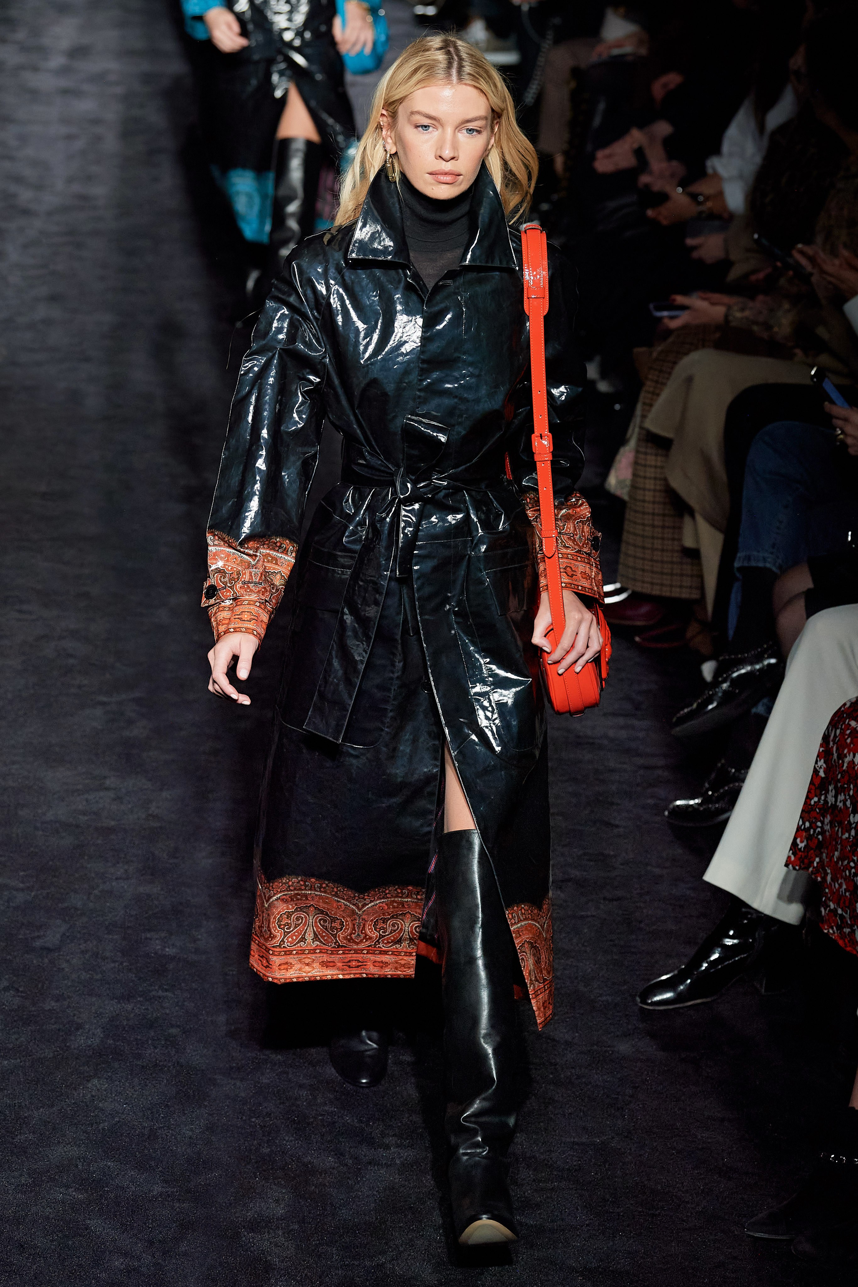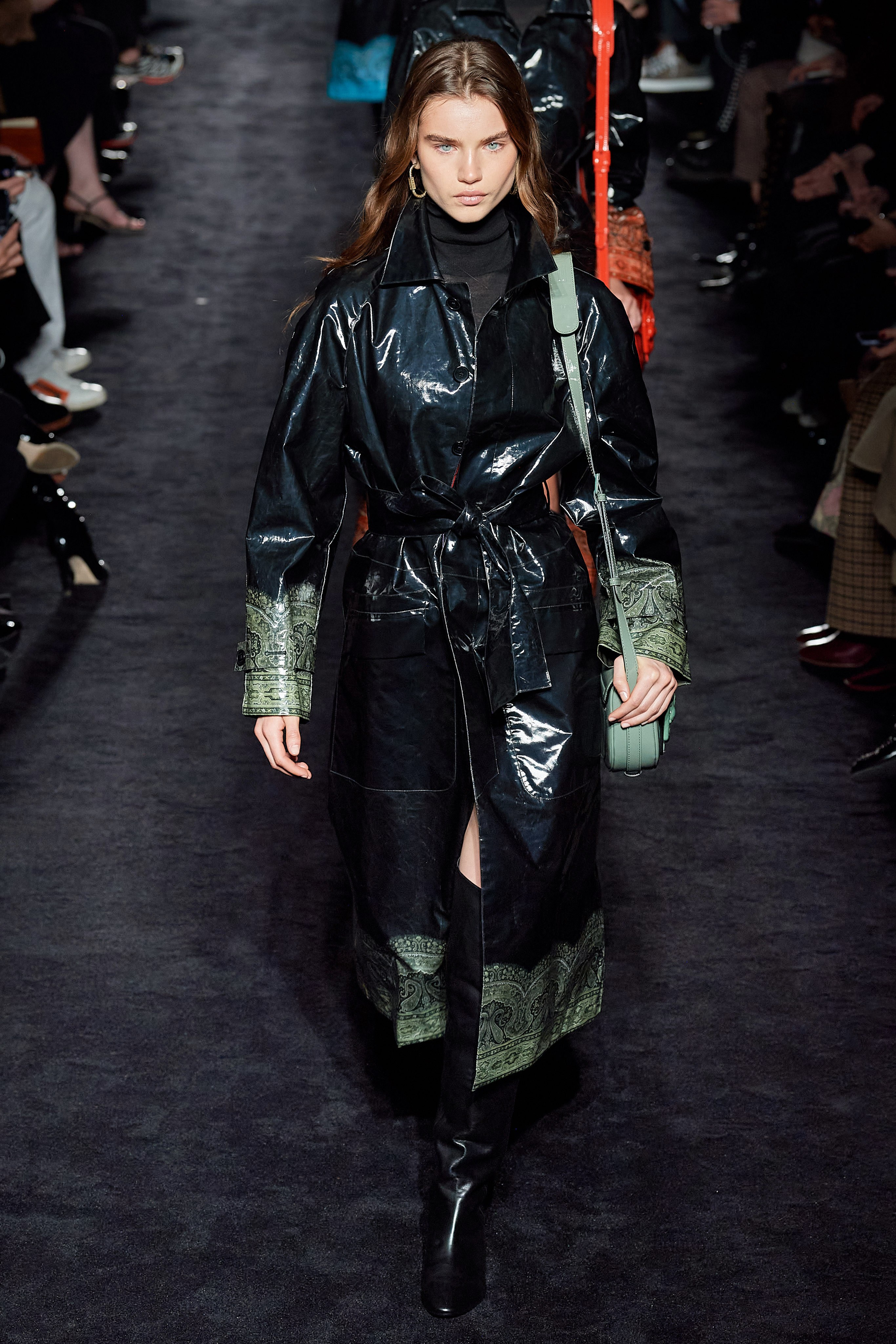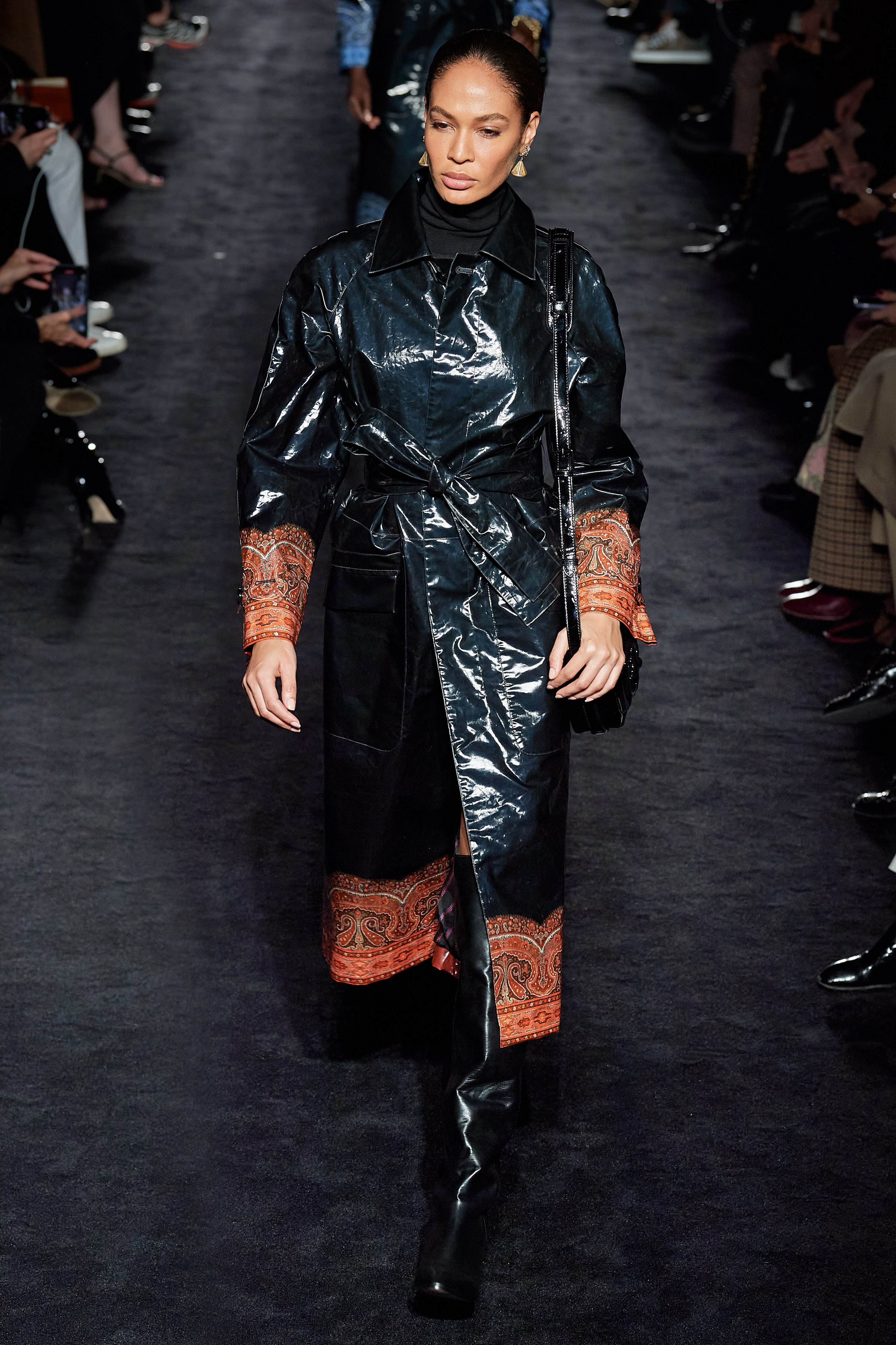 Креативный директор бренда Вероника Этро представила осеннюю коллекцию. Шоу прошло в консерватории Джузеппе Верди. Осень от Etro - это эффектные платья в мексиканском стиле с богатой вышивкой, уютные пончо и элегантные костюмы на манер жокейских. Нежные шёлковые блузы со стойками-бантами можно носить с вязаными жилетами, как показала дизайнер, а брючные костюмы в клетку вместе с нарядным плащом.
