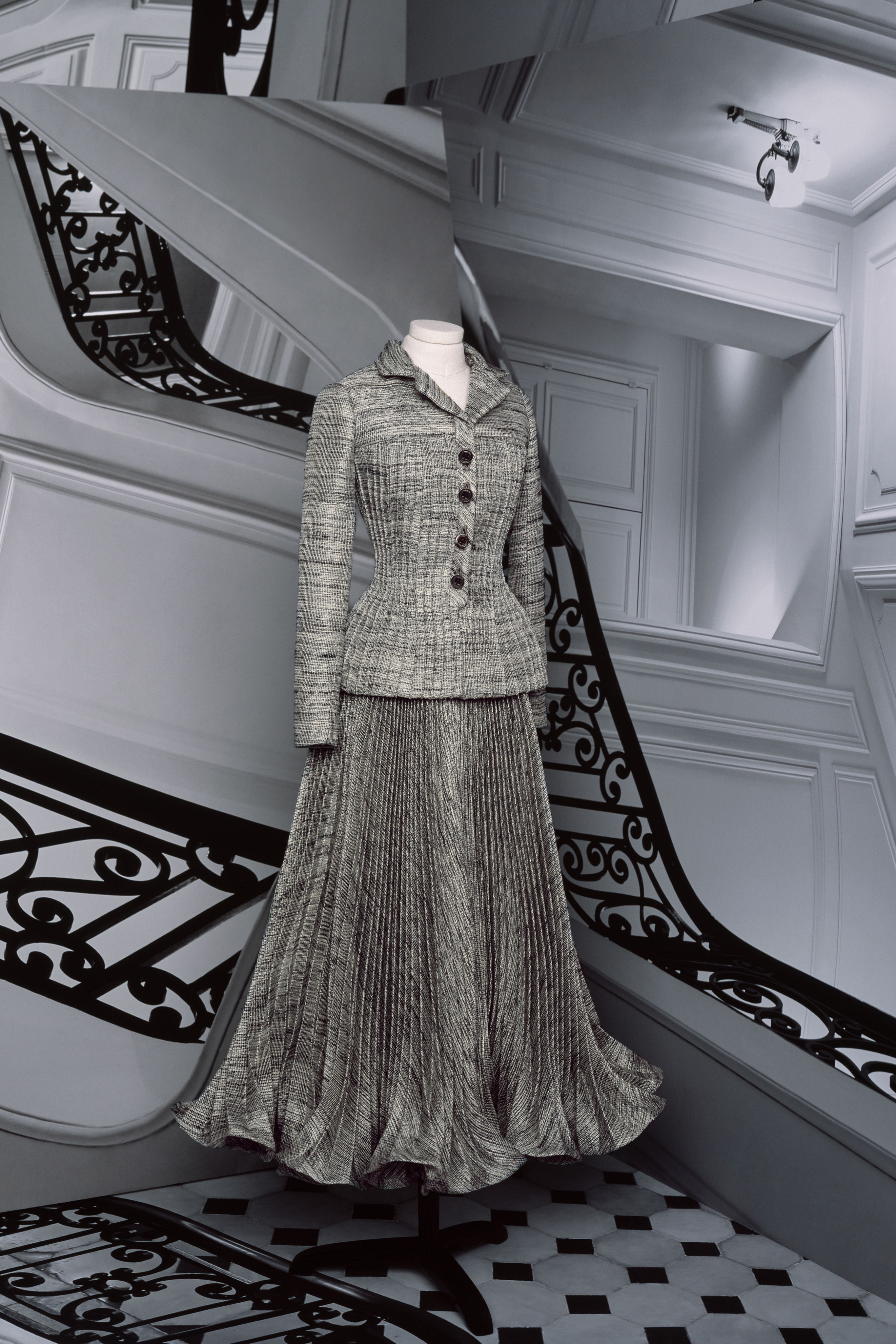 В 1945 году в Париже проходила выставка Théâtre de la Mode, на которой кутюрье и модные дома представили свои новые коллекции одежды — глоток свежего воздуха для общества после изнурительной войны. Выставку основал модельер Люсьен Лелонг, у которого работал молодой Кристиан Диор.