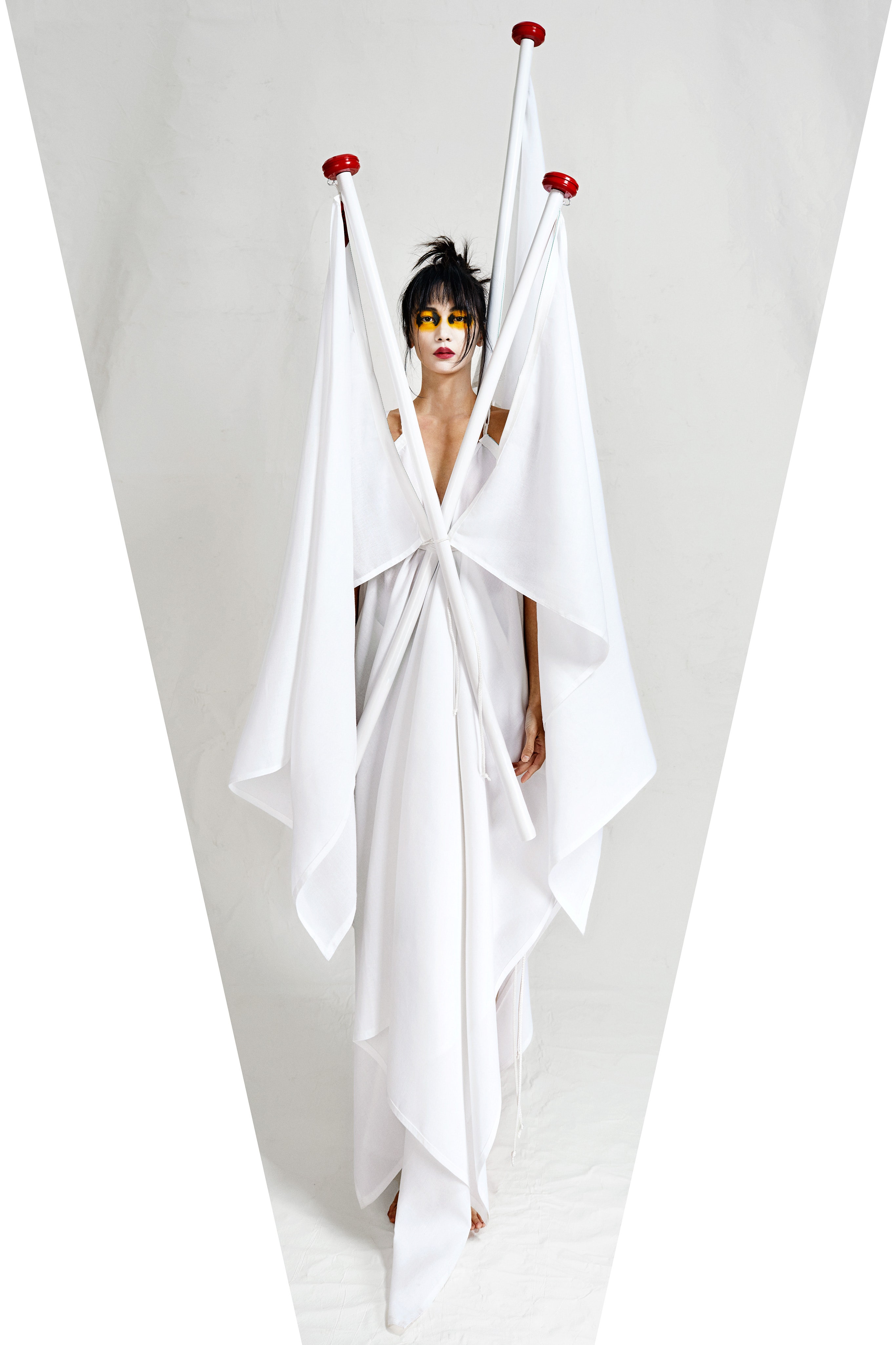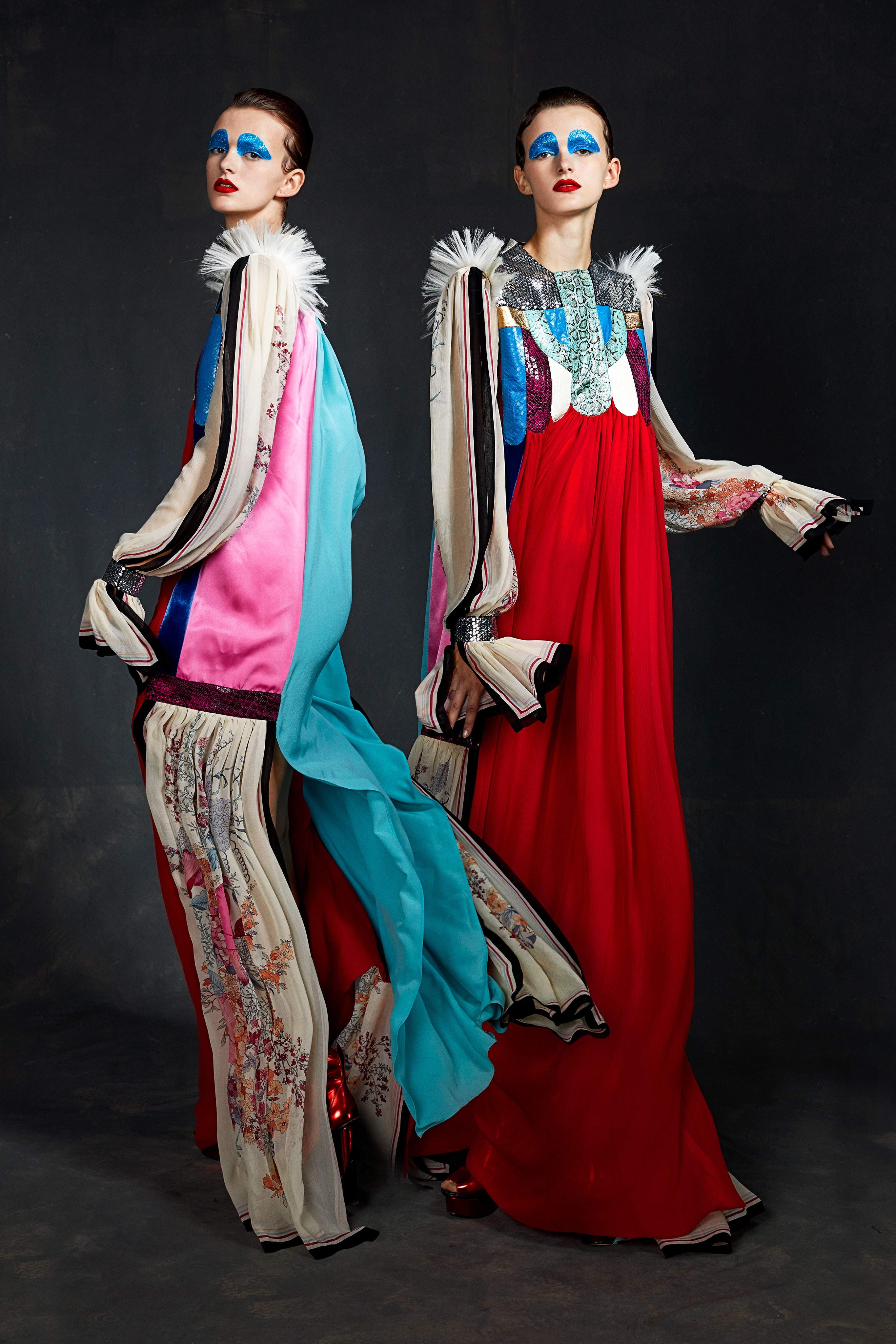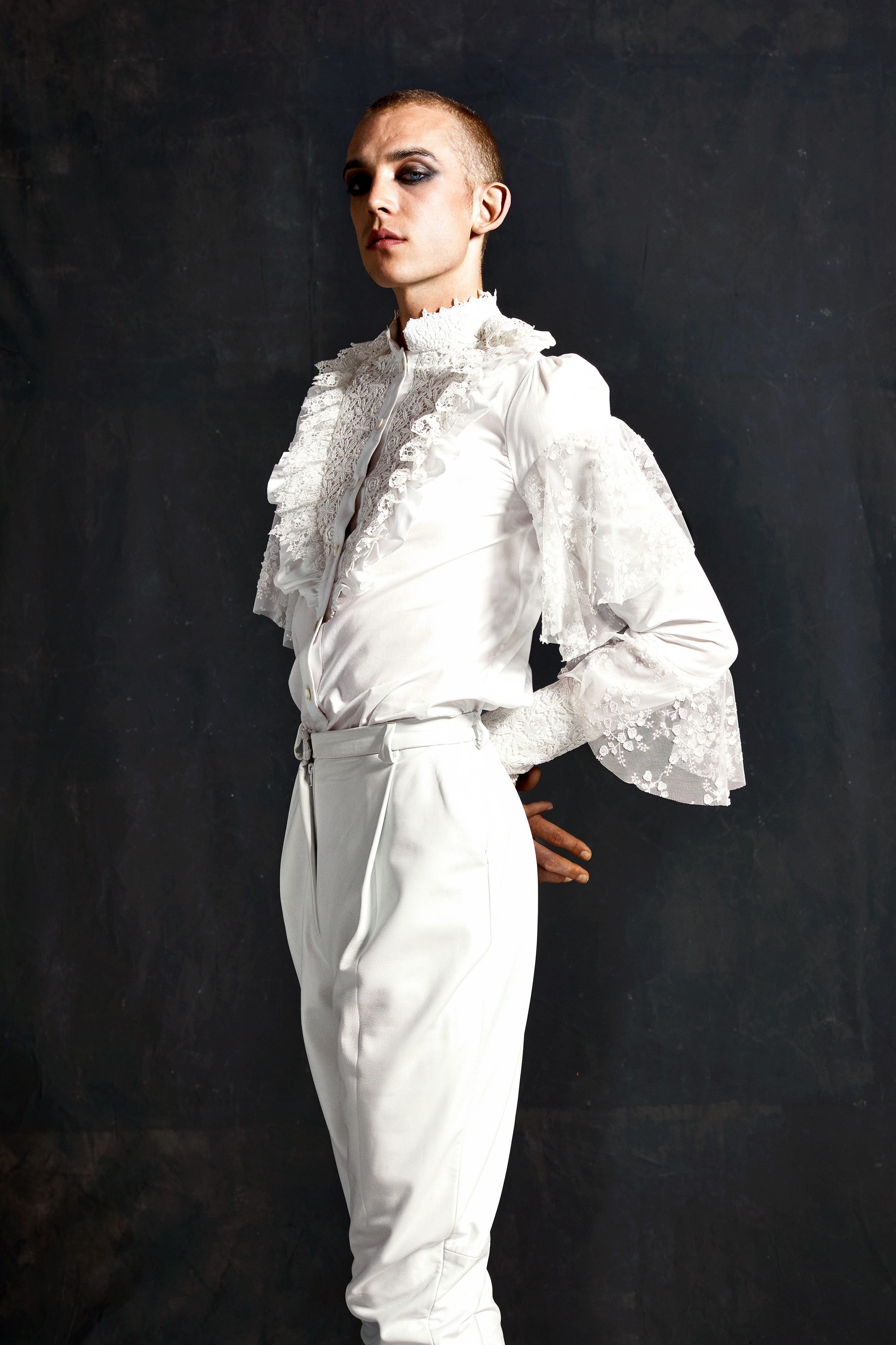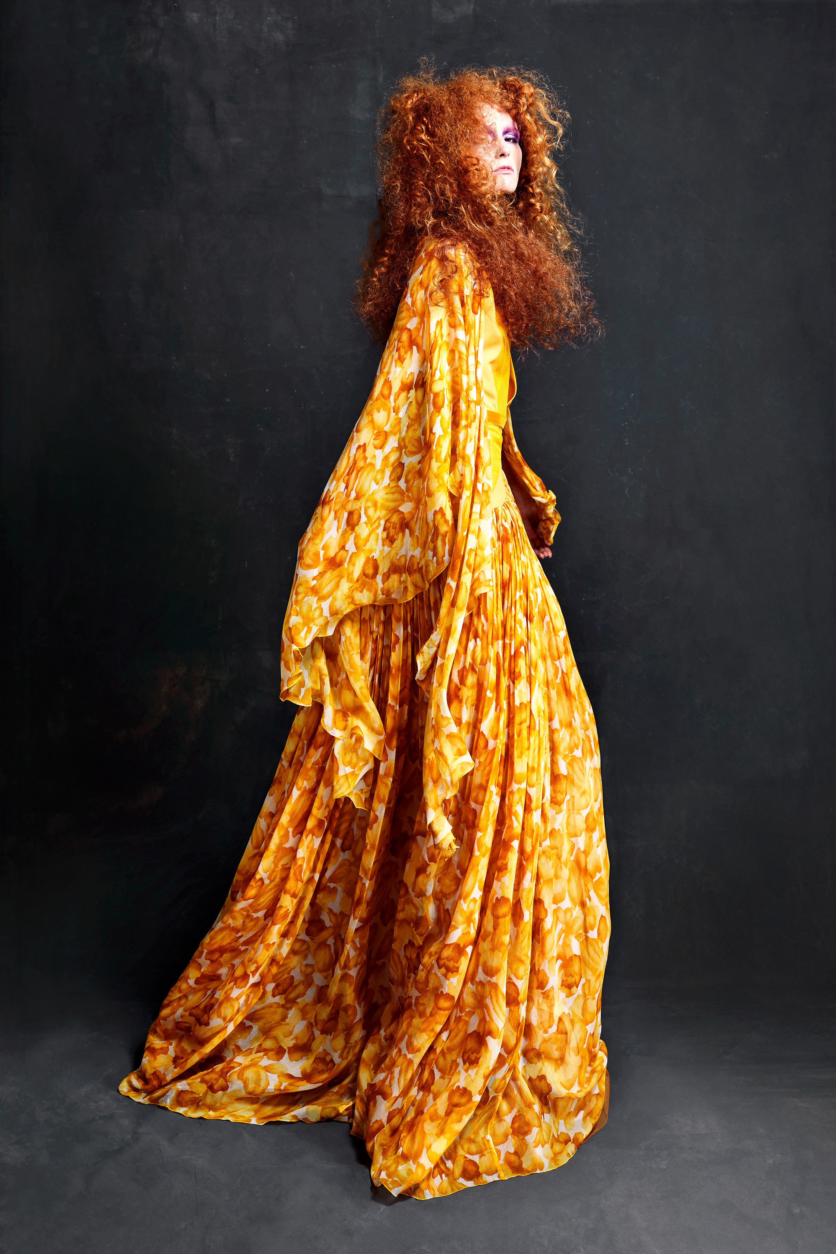 Дизайнер твёрдо уверен в том, что современная мода должна объединять в себе принципы устойчивости, качество и любовь к деталям. Так, ван дер Кемп создал 28 кутюрных нарядов из производственных остатков прошлых коллекций. Каждая вещь выглядит как произведение искусства, а в ключевых образах коллекции угадываются отсылки к культовым фигурам популярной культуры: например, алый фрак, дополненный широкополой шляпой, навевает ассоциации с певцом Боем Джорджем, воздушное платье в мелкий цветок напоминает о культовой артистке Кейт Буш, а остроугольные кимоно-палатки выглядят как прямая цитата образов Сьюзи Сью.