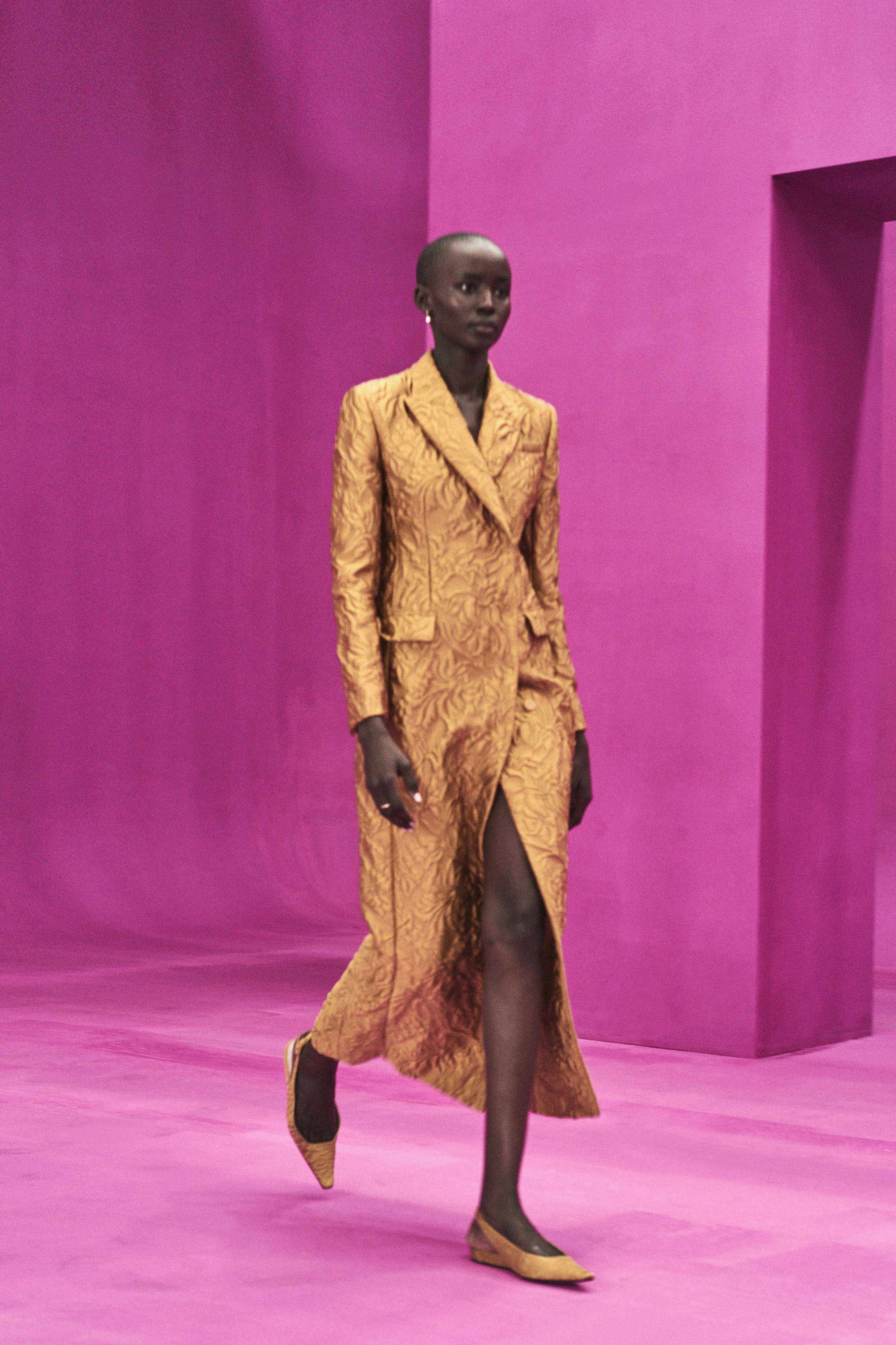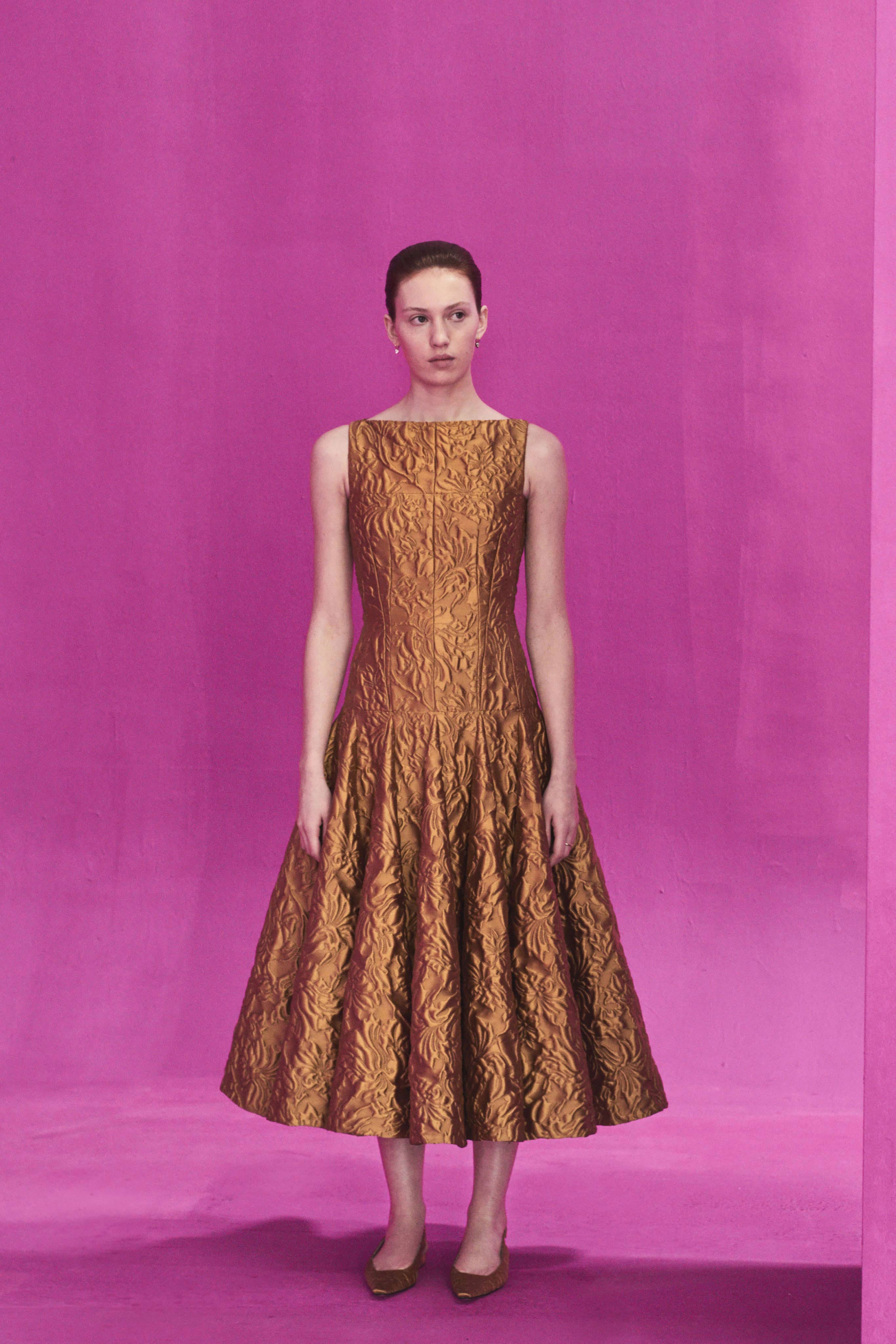 На Неделе моды в Лондоне прошел показ коллекции Эмилии Викстед, чьи платья и изящные пальто так любит герцогиня Кембриджская Кейт. Безупречный крой дизайнер дополняет мягкими фактурами, плавно повторяющими форму тела: шерстью, кашемиром, хлопком и плотным джерси. Будущая осень по версии Викстед окрашена в теплые глиняные оттенки, цвет камней на солнце и тона забродивших винных ягод. В силуэтах, всегда точных и чистых, появилась антиутопическая элегантность: комбинезоны со шлейфами похожи на парадную униформу космического флота, а женственные блузы в цветочный принт выполнены с гипертрофированными манжетами. Знаковые платья миди скромных силуэтов разбавили золотистые и медные наряды, напоминающие облачения экипажа звездолета, юбка "рыбий хвост" и строгая блуза защитного цвета и вовсе выглядят модной версией военной формы. Однако наравне с межгалактическим милитари Эмилия Викстед ведет повествование и о ностальгии, отведя особое место в коллекции утонченным платьям с открытой линией плеча и деликатными цветочными узорами, совсем как у героинь Одри Хепберн в творениях Юбера Живанши.