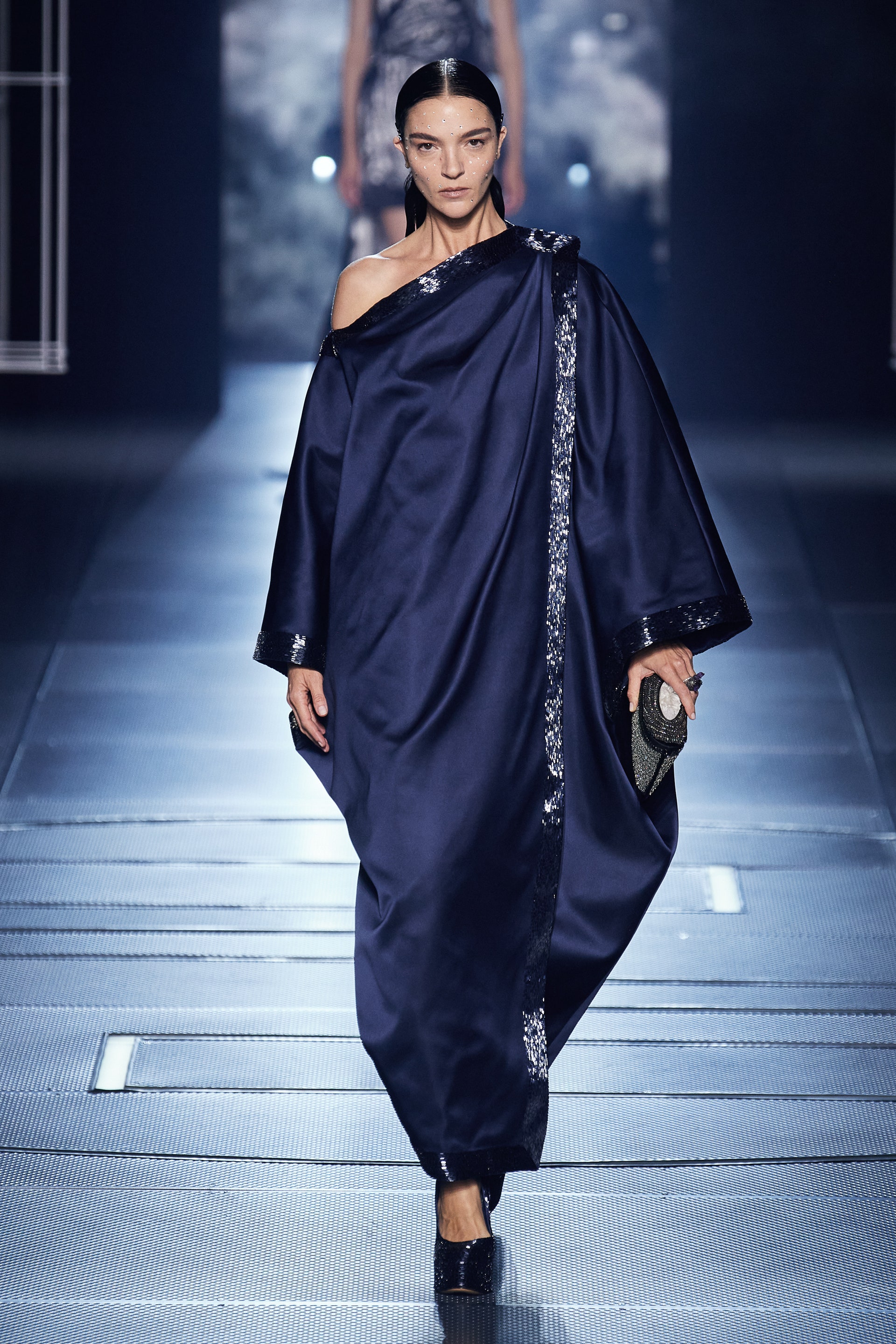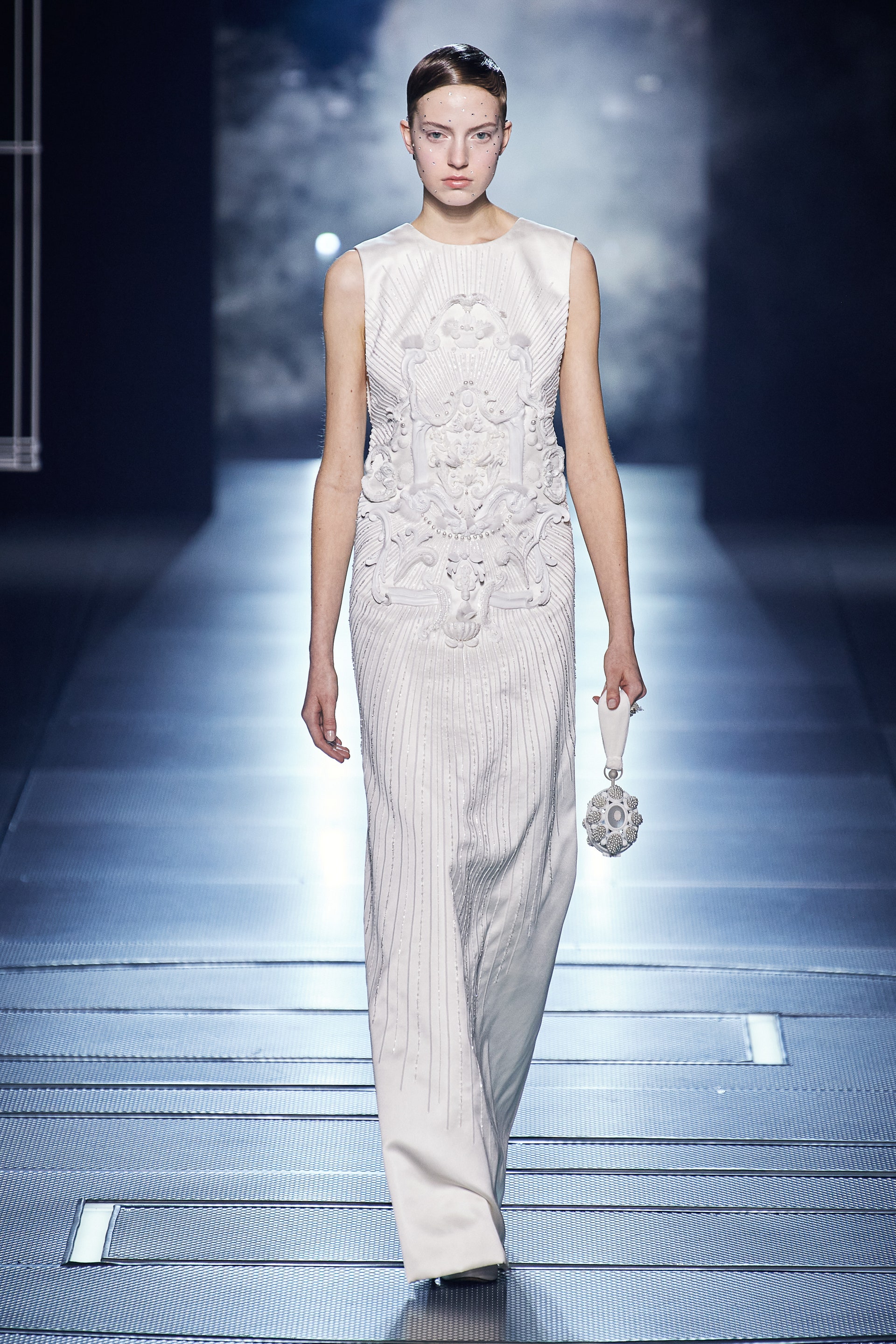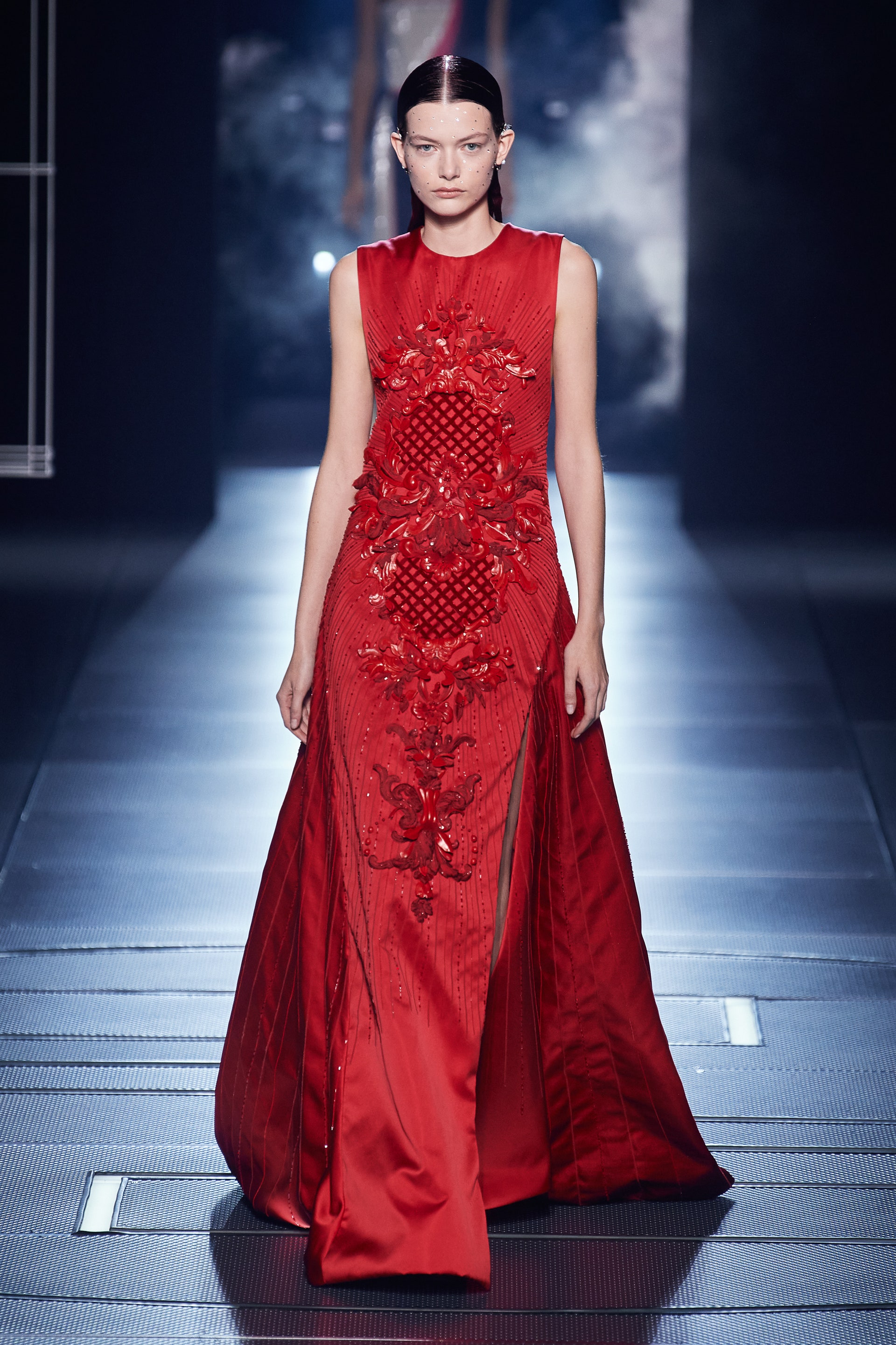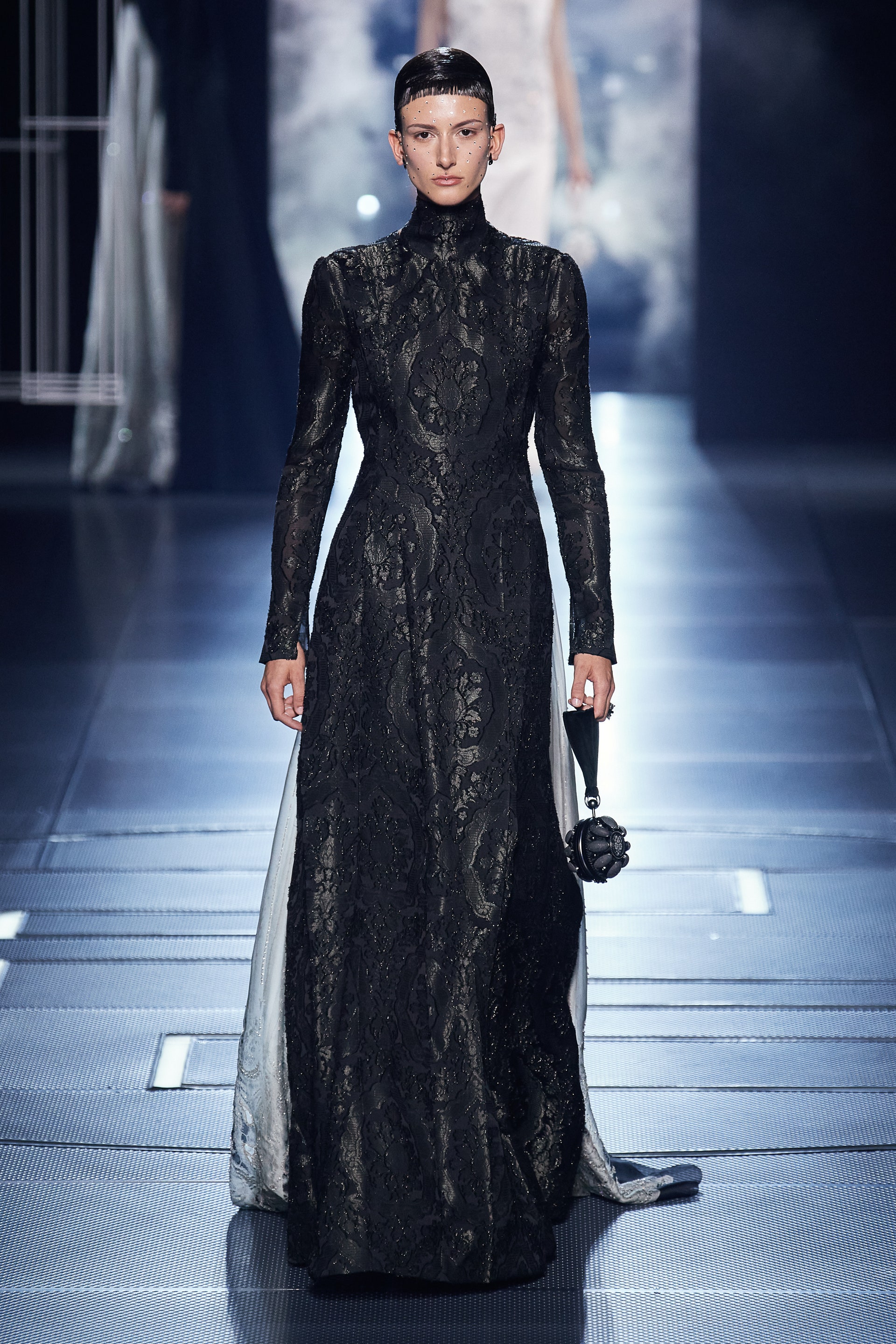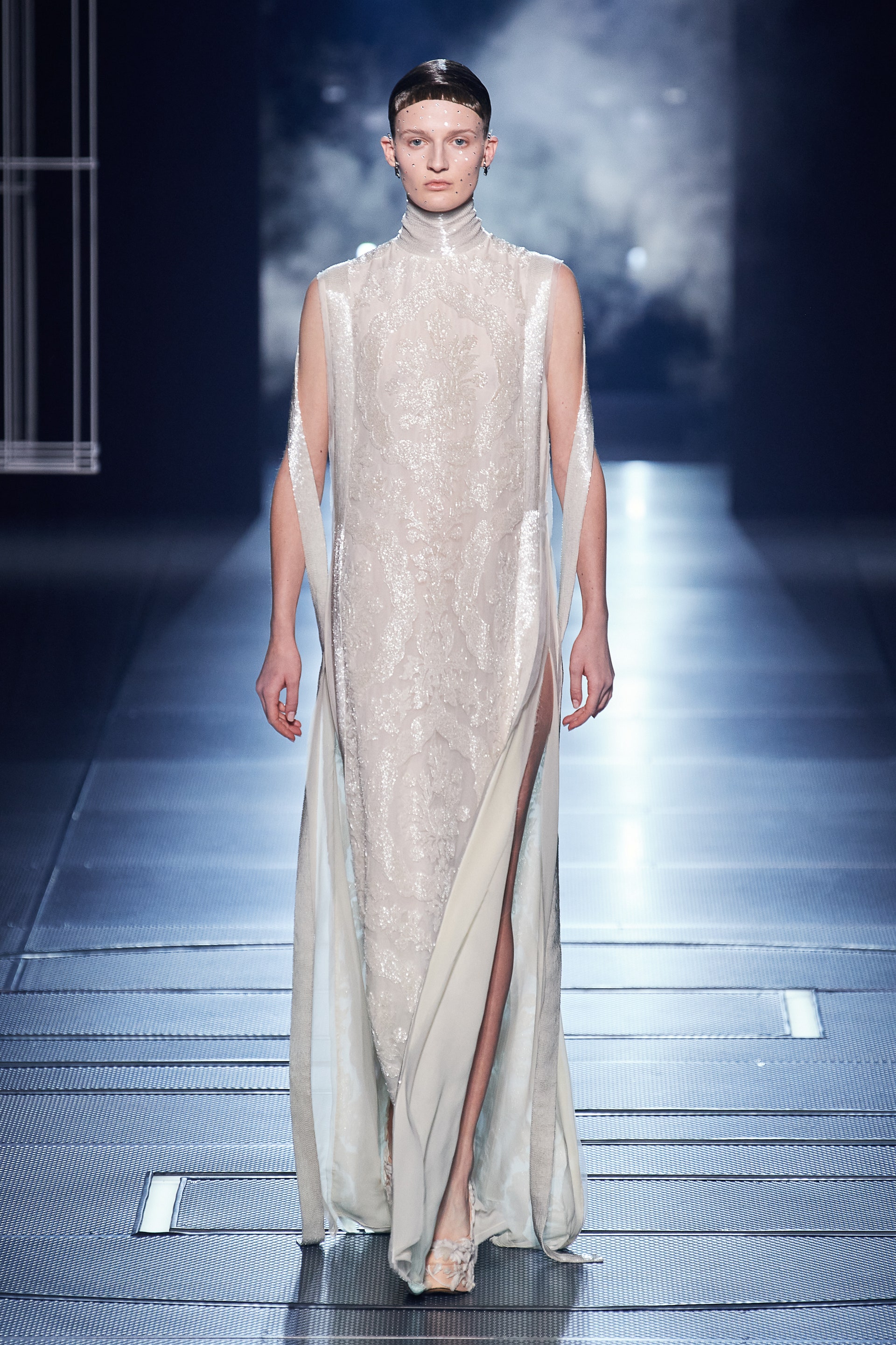 Ким Джонс представил третью коллекцию от-кутюр для дома Fendi. И снова посвятил её Риму, на этот раз перенеся древний город в космическое будущее. Роскошные патрицианки Fendi обрели инопланетные черты и даже лунный оттенок кожи. Наряды в новой коллекции также отражают идею Джонса о сплетении древнеримских ритуальных таинств, мистическом городе и его жителях. На платья из бархата и струящегося атласа вручную нанесены принты с эскизами статуй, стоящих возле штаб-квартиры Fendi, а на пламенно-красных и белоснежных нарядах при помощи сложных ручных техник расположены орнаментальные вышивки и аппликации. Космический романтизм удался Джонсу безупречно. В кутюрных нарядах Fendi легко представить членов вселенского триумвирата или магистериума. В научно-фантастических вымыслах мода всегда находит воплощение в античном наследии.