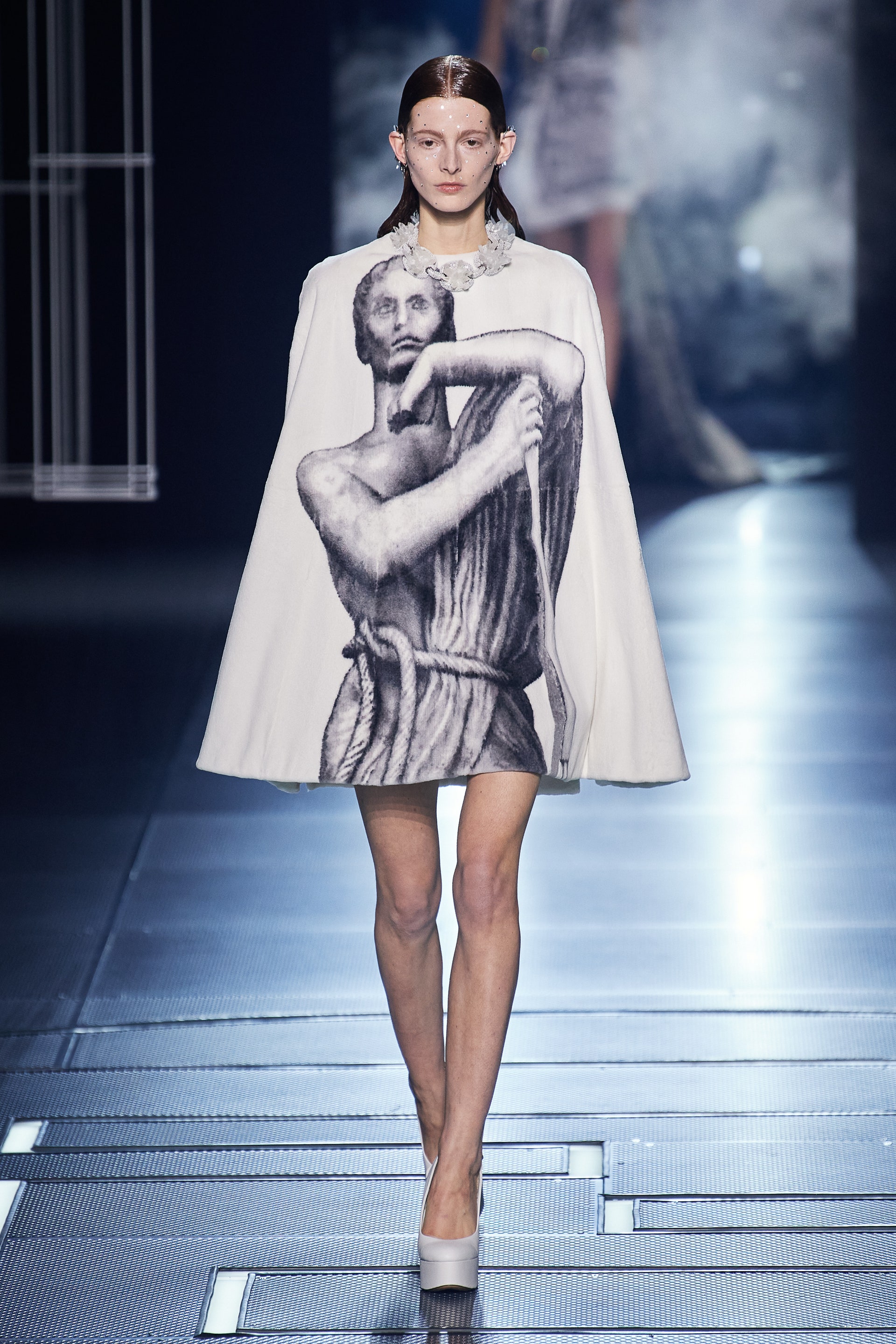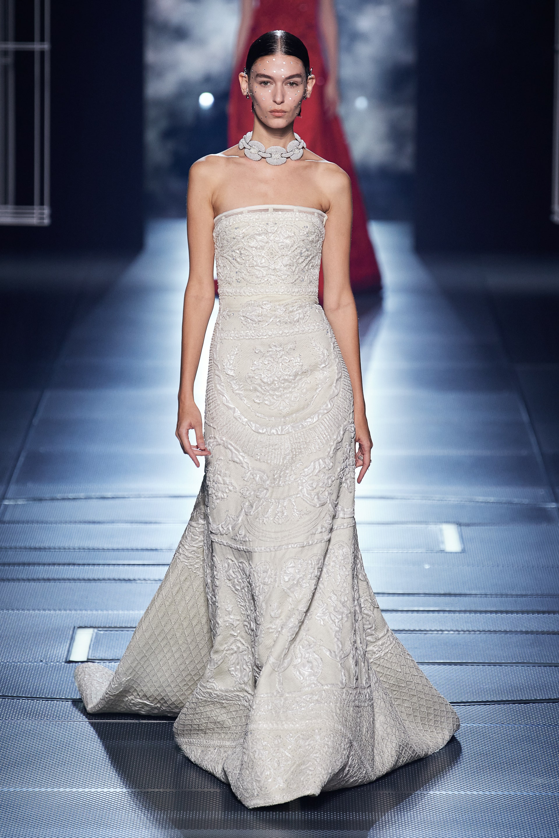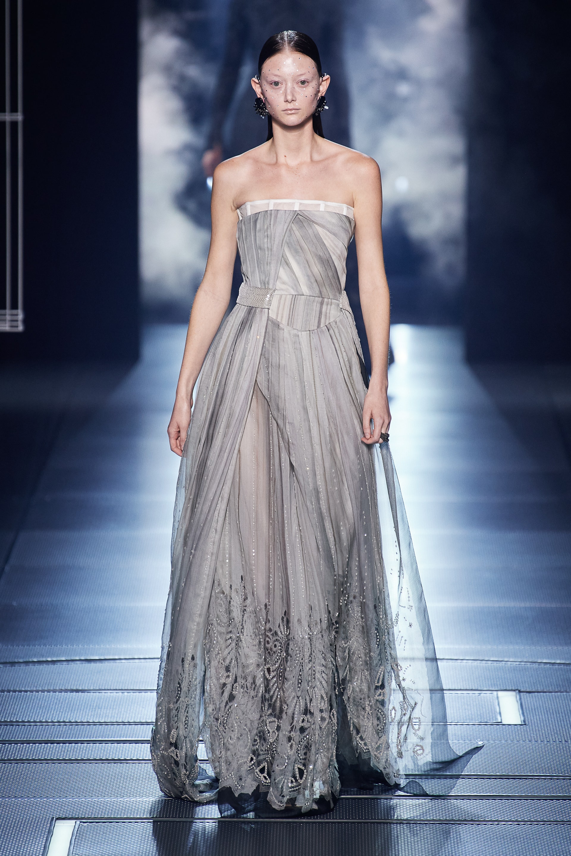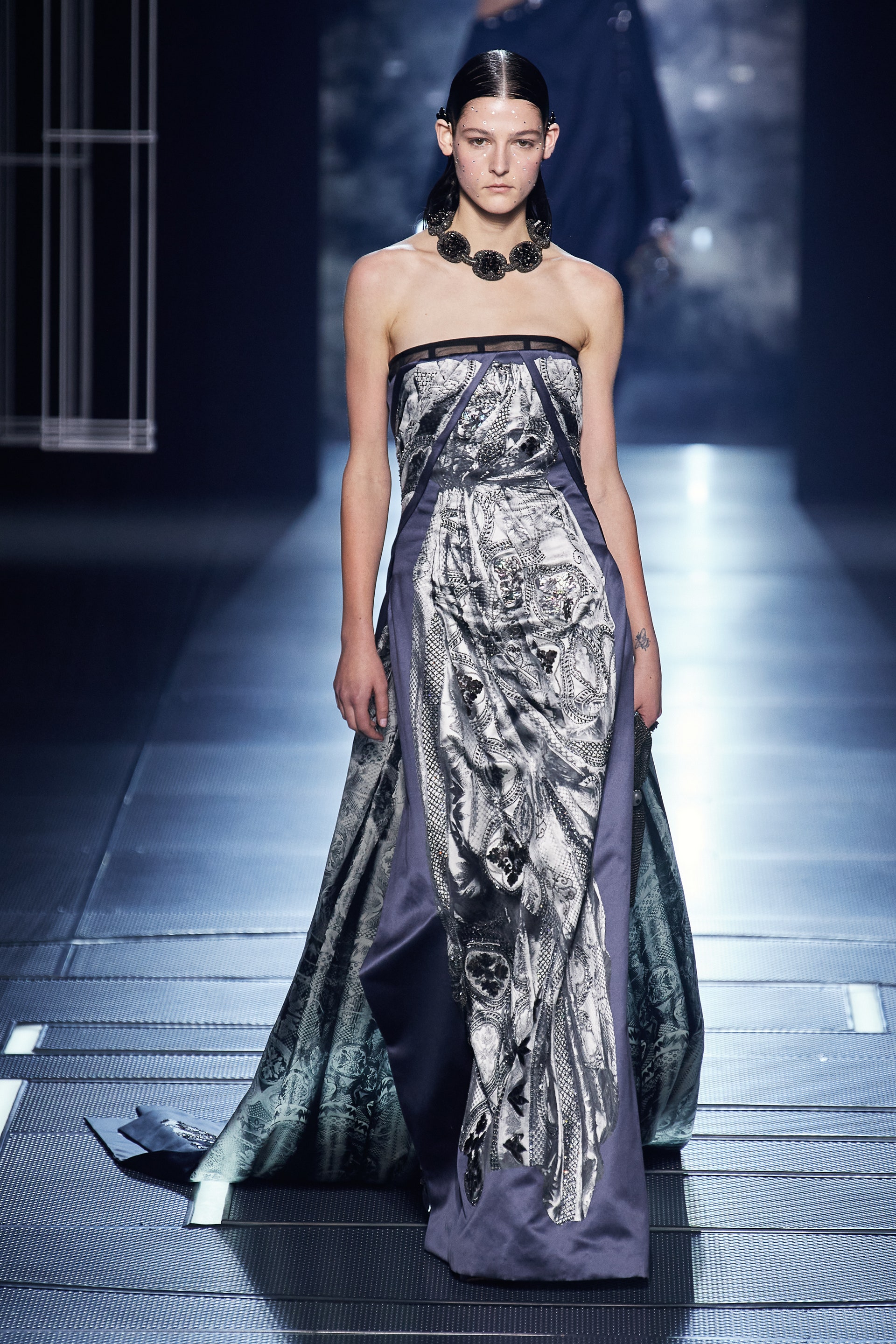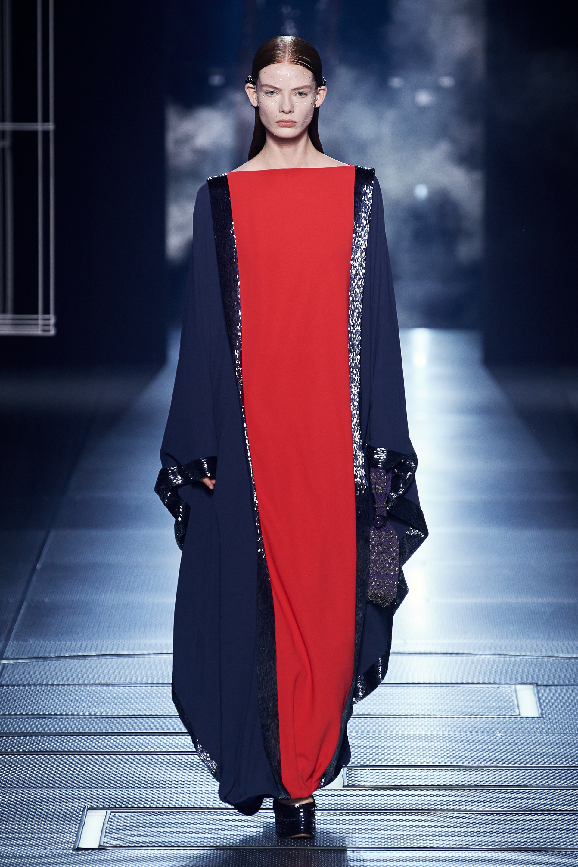 Ким Джонс представил третью коллекцию от-кутюр для дома Fendi. И снова посвятил её Риму, на этот раз перенеся древний город в космическое будущее. Роскошные патрицианки Fendi обрели инопланетные черты и даже лунный оттенок кожи. Наряды в новой коллекции также отражают идею Джонса о сплетении древнеримских ритуальных таинств, мистическом городе и его жителях. На платья из бархата и струящегося атласа вручную нанесены принты с эскизами статуй, стоящих возле штаб-квартиры Fendi, а на пламенно-красных и белоснежных нарядах при помощи сложных ручных техник расположены орнаментальные вышивки и аппликации. Космический романтизм удался Джонсу безупречно. В кутюрных нарядах Fendi легко представить членов вселенского триумвирата или магистериума. В научно-фантастических вымыслах мода всегда находит воплощение в античном наследии.