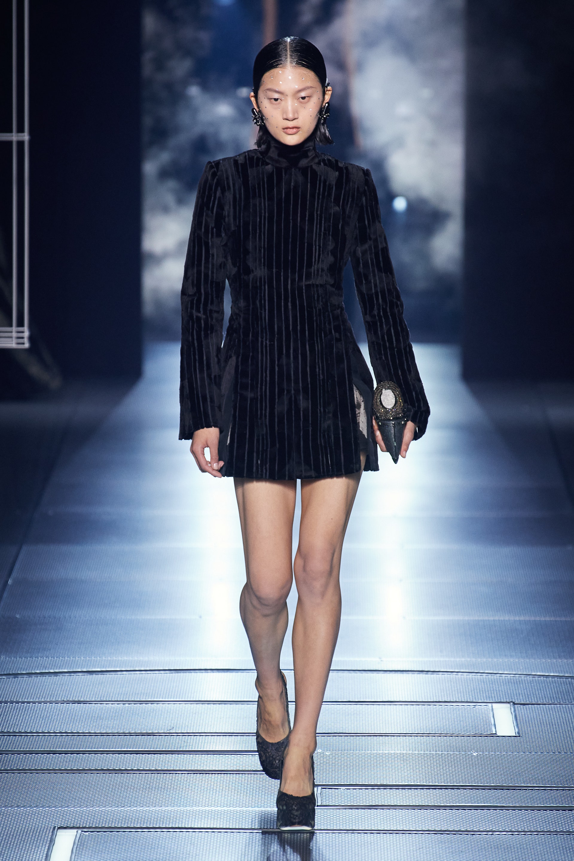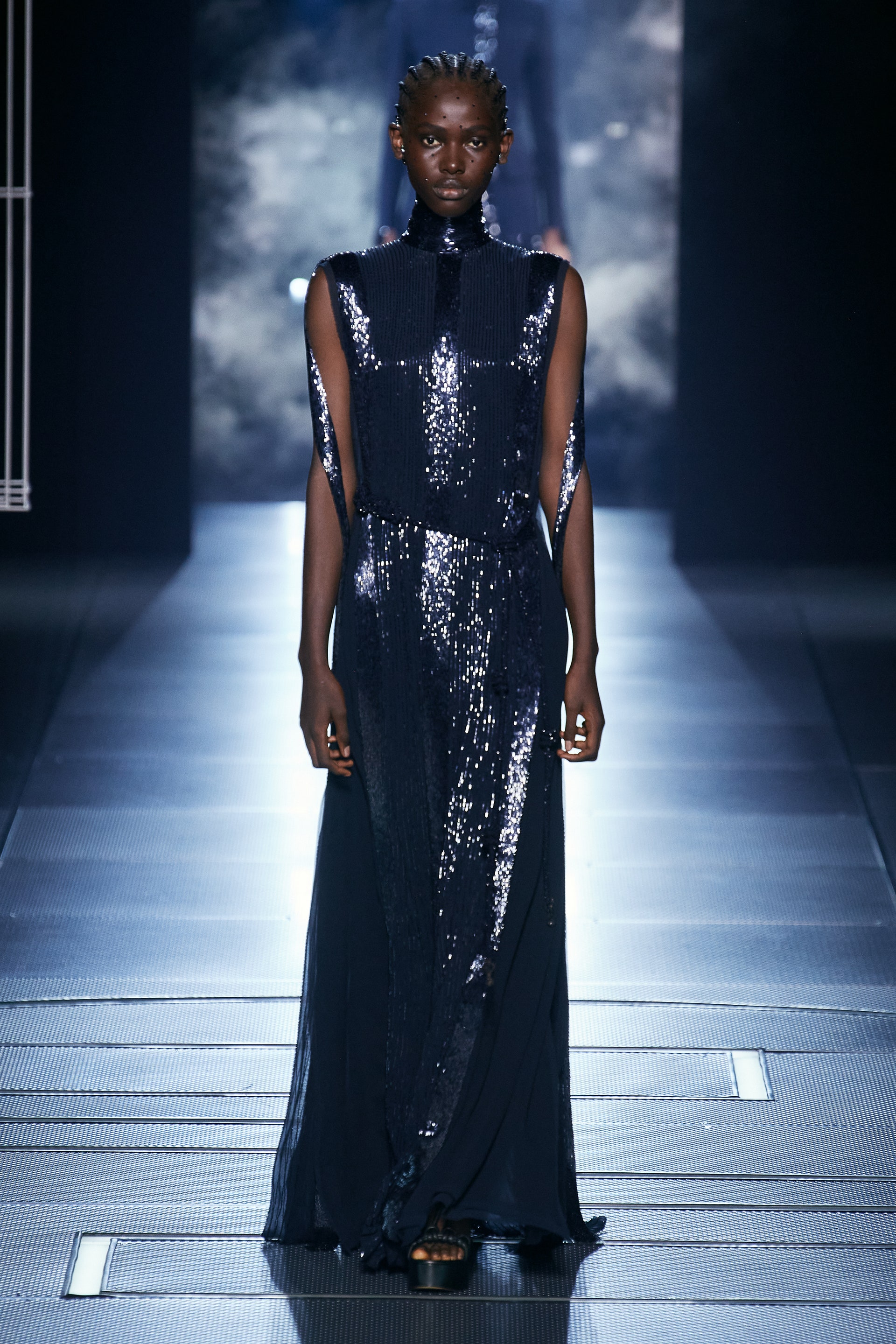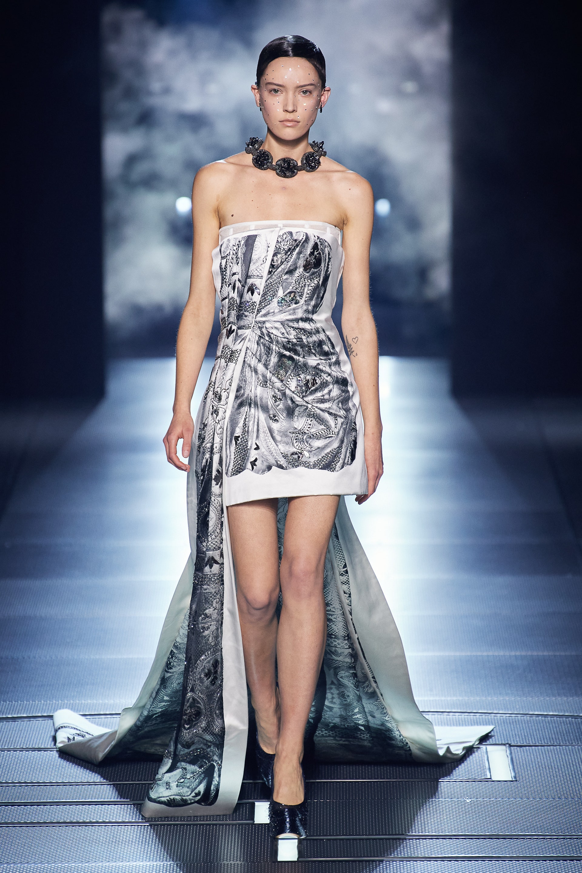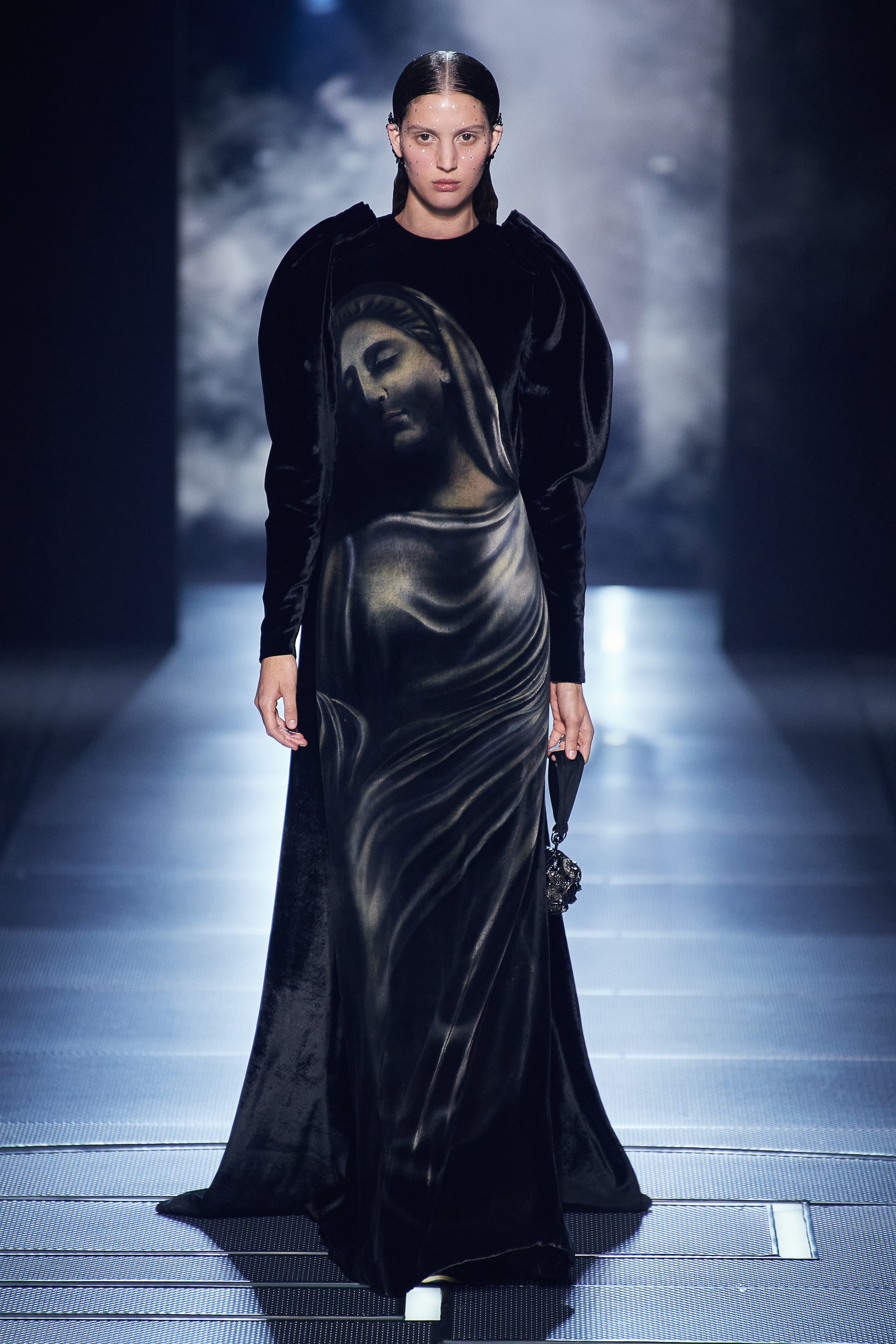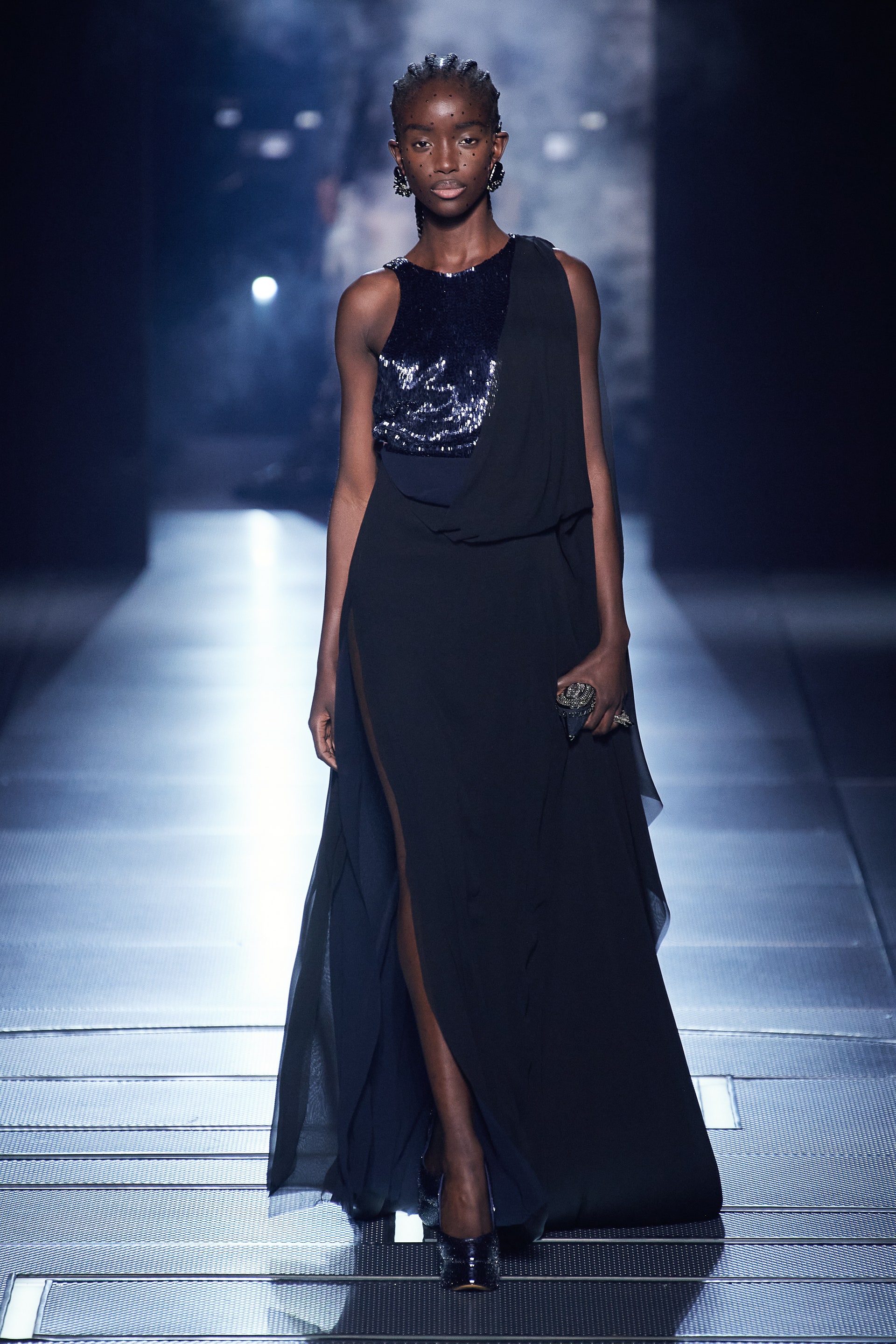 Ким Джонс представил третью коллекцию от-кутюр для дома Fendi. И снова посвятил её Риму, на этот раз перенеся древний город в космическое будущее. Роскошные патрицианки Fendi обрели инопланетные черты и даже лунный оттенок кожи. Наряды в новой коллекции также отражают идею Джонса о сплетении древнеримских ритуальных таинств, мистическом городе и его жителях. На платья из бархата и струящегося атласа вручную нанесены принты с эскизами статуй, стоящих возле штаб-квартиры Fendi, а на пламенно-красных и белоснежных нарядах при помощи сложных ручных техник расположены орнаментальные вышивки и аппликации. Космический романтизм удался Джонсу безупречно. В кутюрных нарядах Fendi легко представить членов вселенского триумвирата или магистериума. В научно-фантастических вымыслах мода всегда находит воплощение в античном наследии.