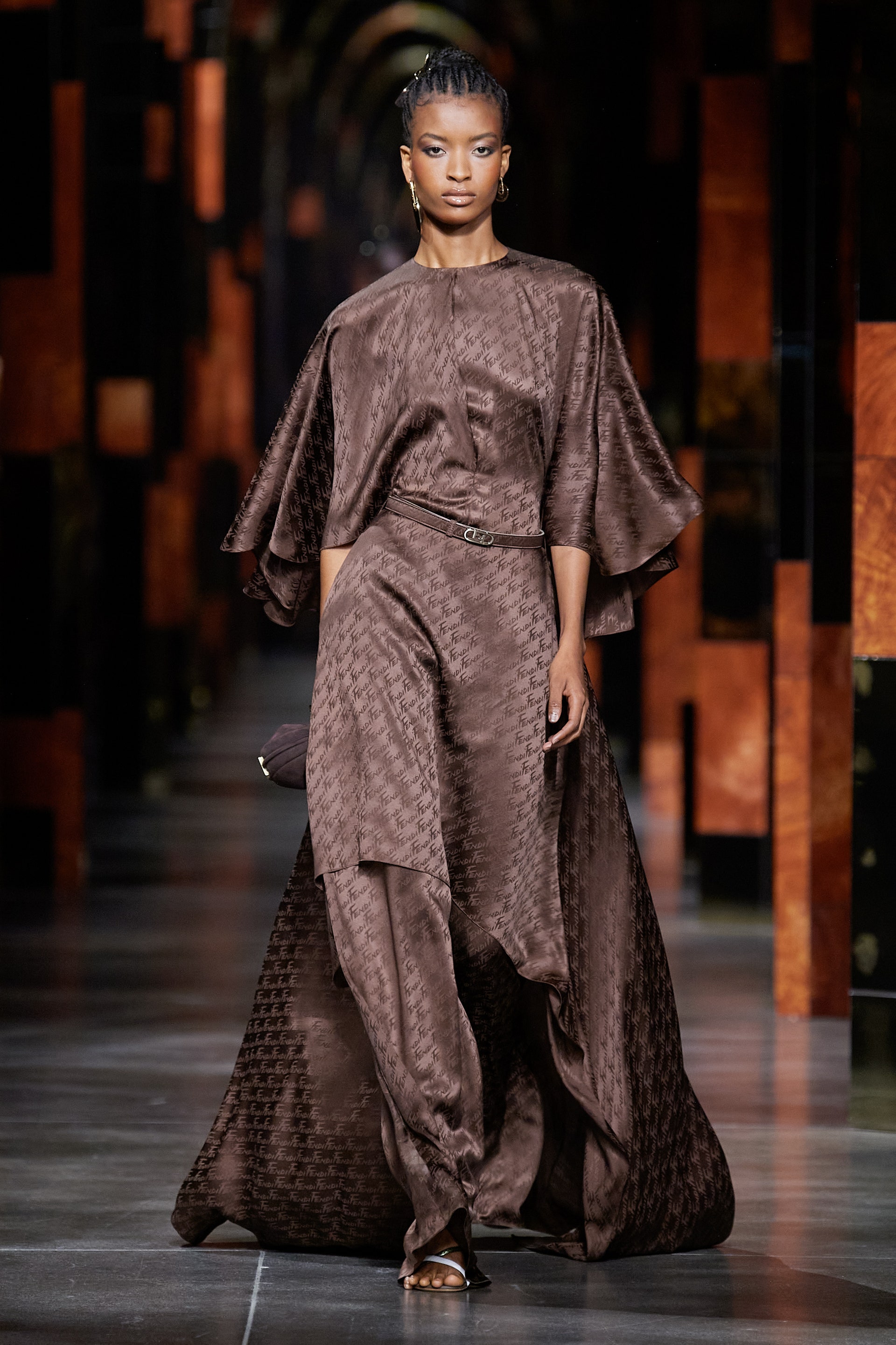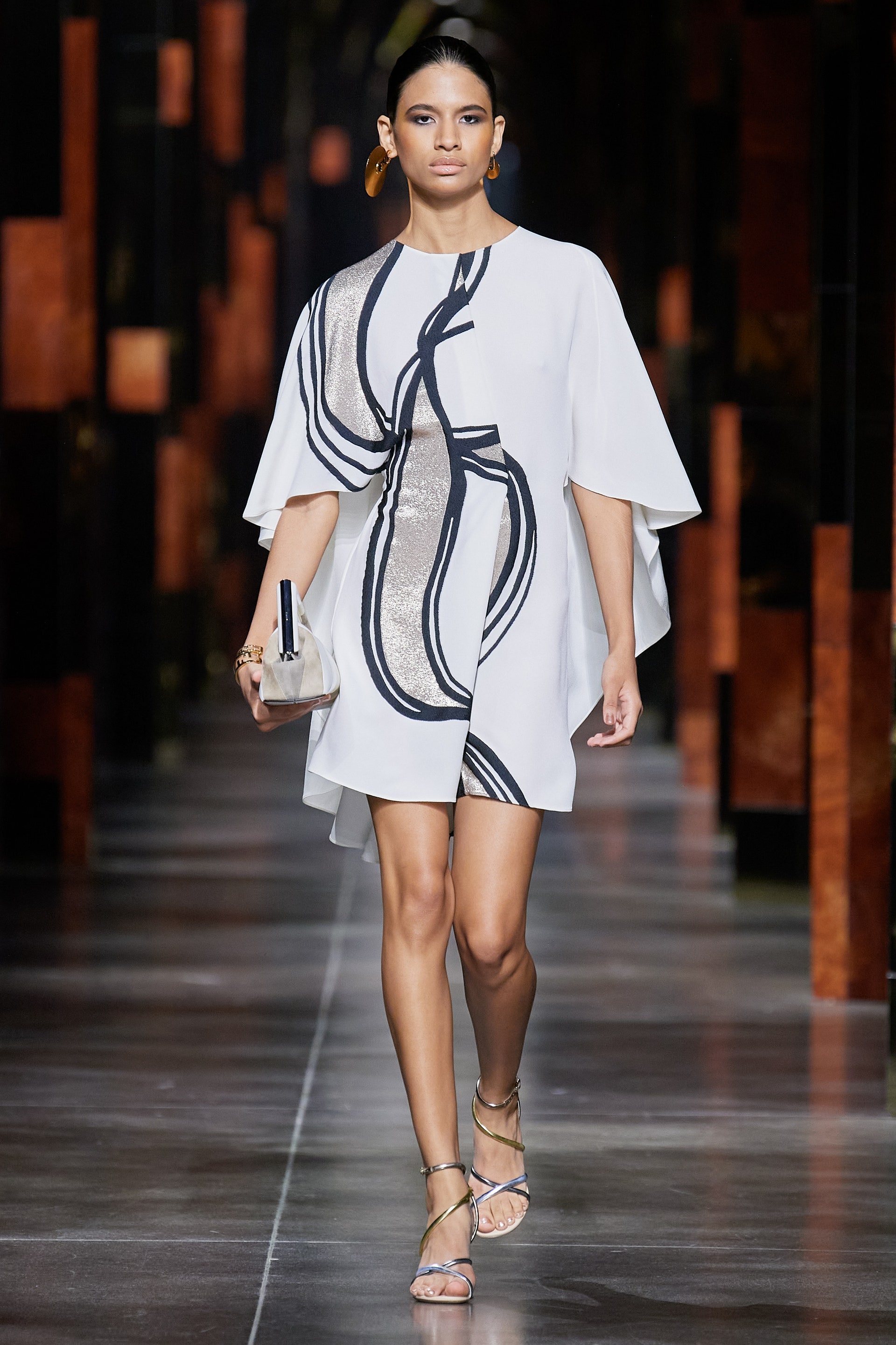 Ким Джонс открыл череду показов на миланской Неделе моды весенним шоу. На подиуме в римском Палаццо делла Сивильта модели буквально скользили в шелковых платьях макси, струящихся костюмах из блестящей парчи и сатина, мягких шубах и белоснежных тренчах. Вещи коллекции украсили принты с фрагментами работ иллюстратора Антонио Лопеса. Графический портрет актрисы Джейн Форт с алыми губами разместился на облегающих платьях мини, пальто с остроконечными лацканами и стриженых шубах, выполненных в технике интарсии.