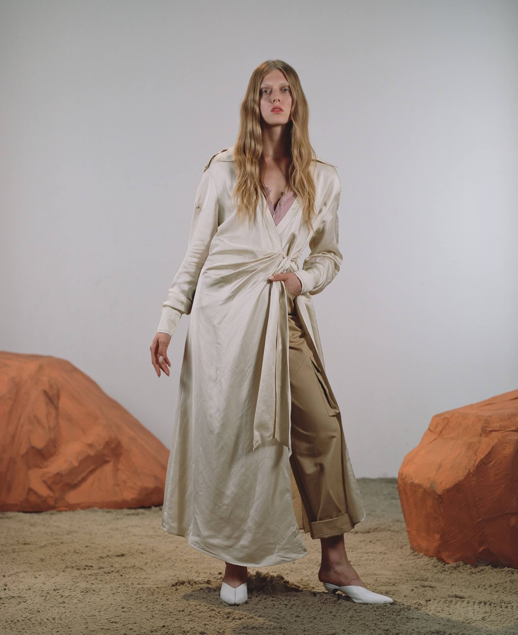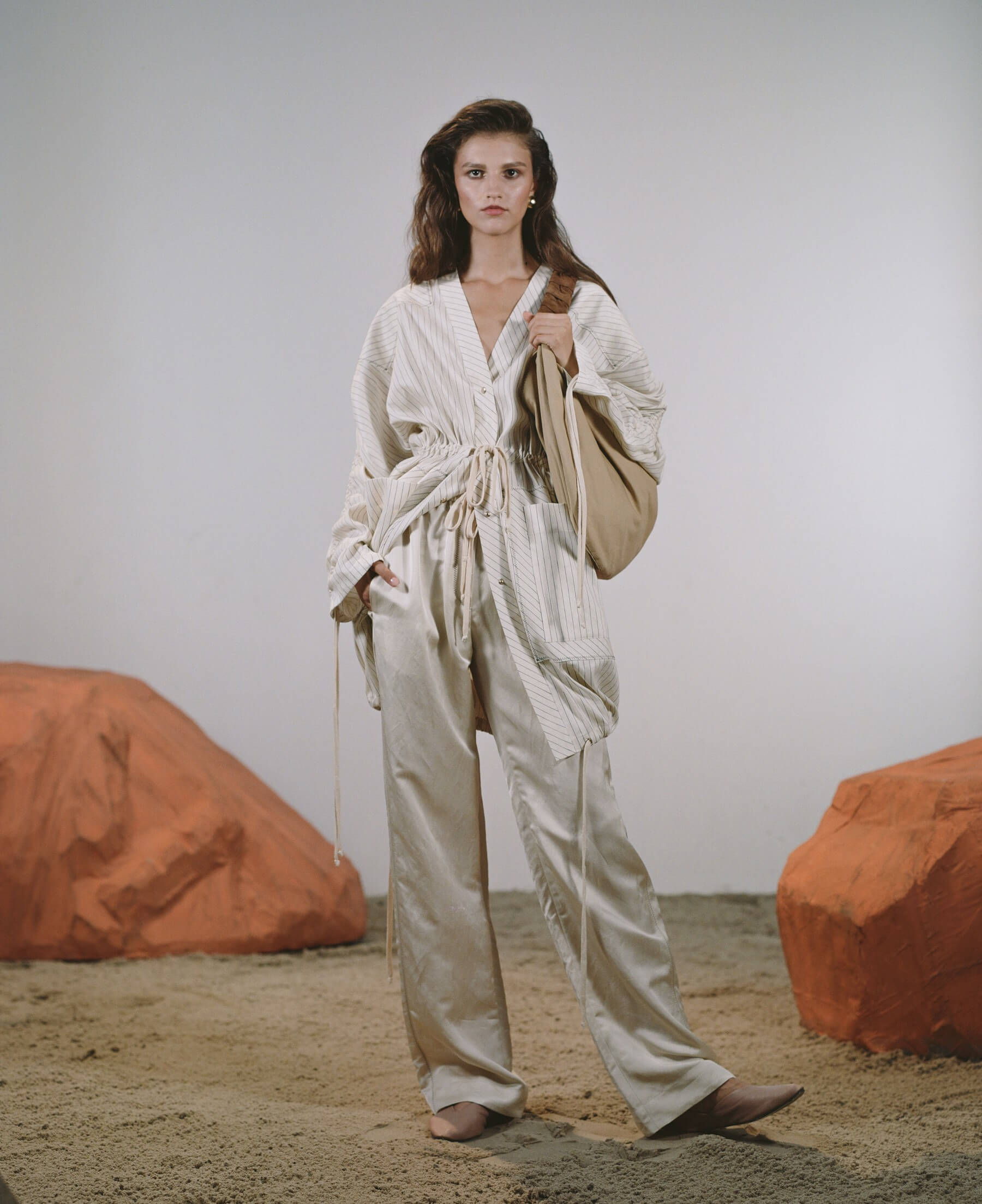 Бренд FLOW the Label представил новую коллекцию, в которой дизайнер Катя Баланюк воплотила фантазии о путешествии в жаркую африканскую пустыню. В продолжение вариаций на тему повседневной одежды Катя сделала ставку на ощущение свободы и лёгкости — об этом говорят лёгкие ткани песочных и бежевых оттенков, хлопок цвета слоновой кости, кулисы, хомуты и капюшоны, а также грубые объёмные сумки — всё как для комфортного путешествия в далёкие края и напоминает одежды ближневосточных кочевников.