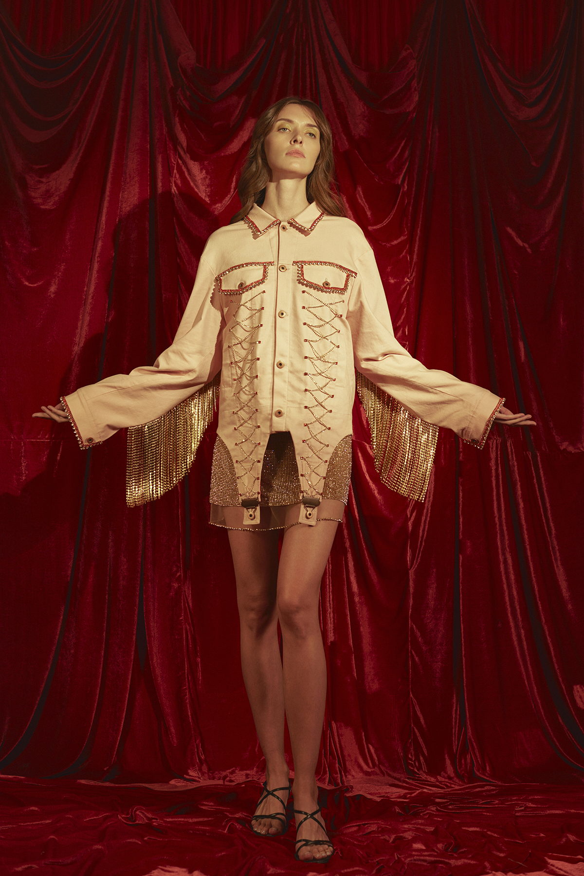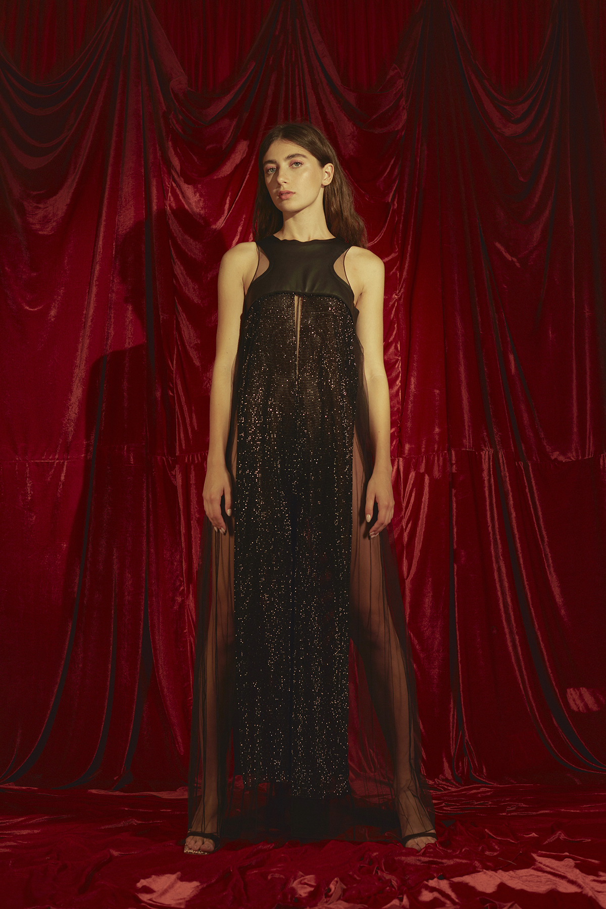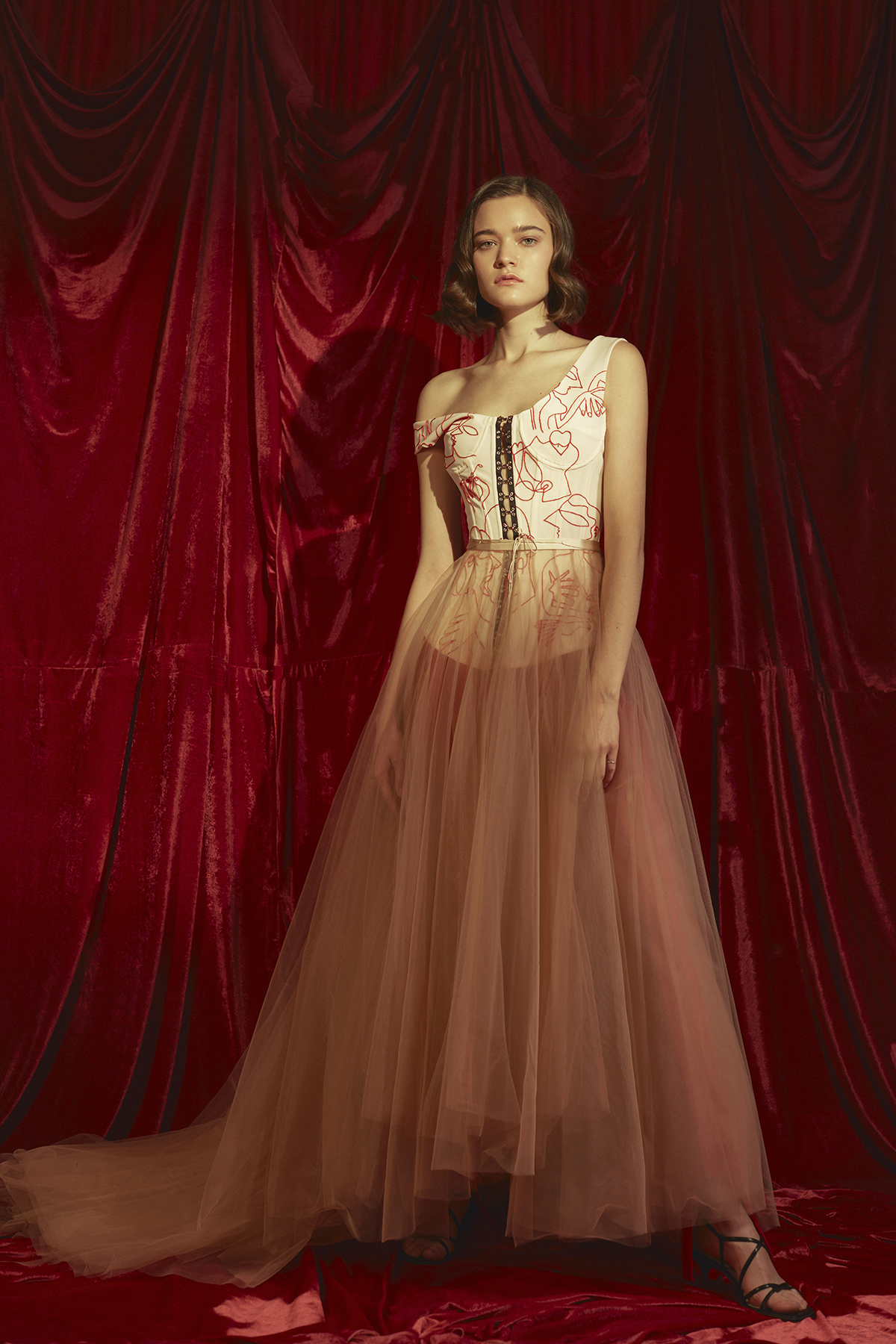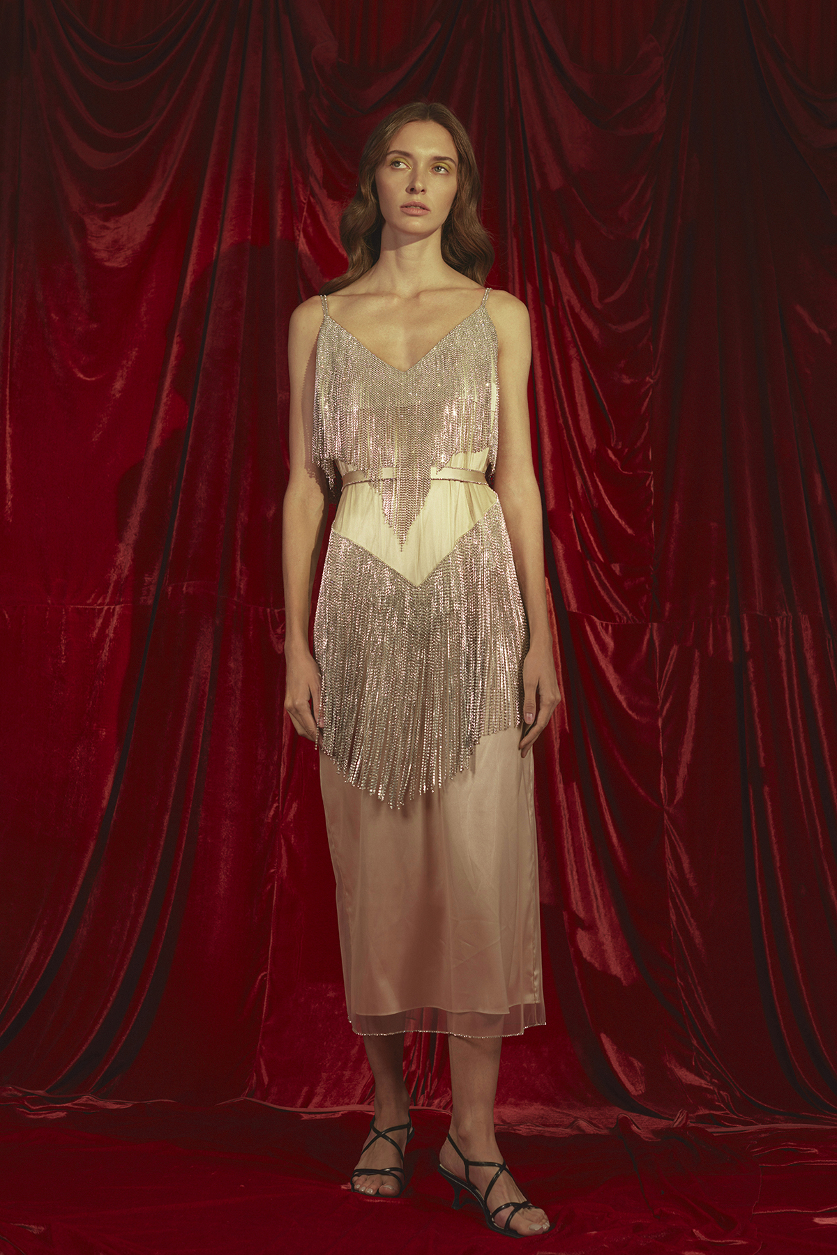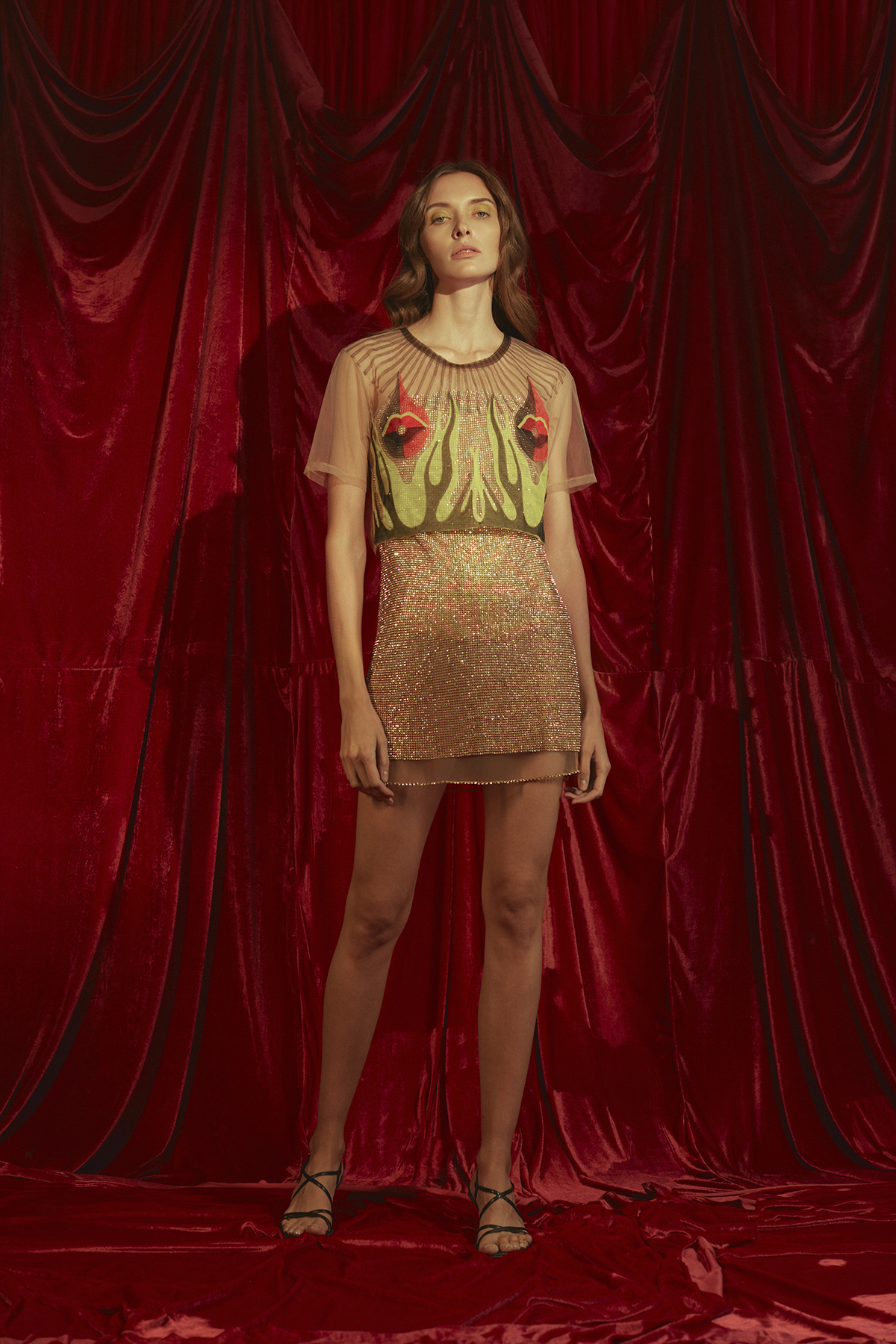В этом году бренд отпраздновал пятилетие, и во многом это событие определило наполнение коллекции. Она состоит из бестселлеров и знаковых элементов: корсетов, полупрозрачных фактур, масок, поясов для чулок, мини-платьев, мерцающих текстур. Вещи дополнены вышивкой и кристаллами.