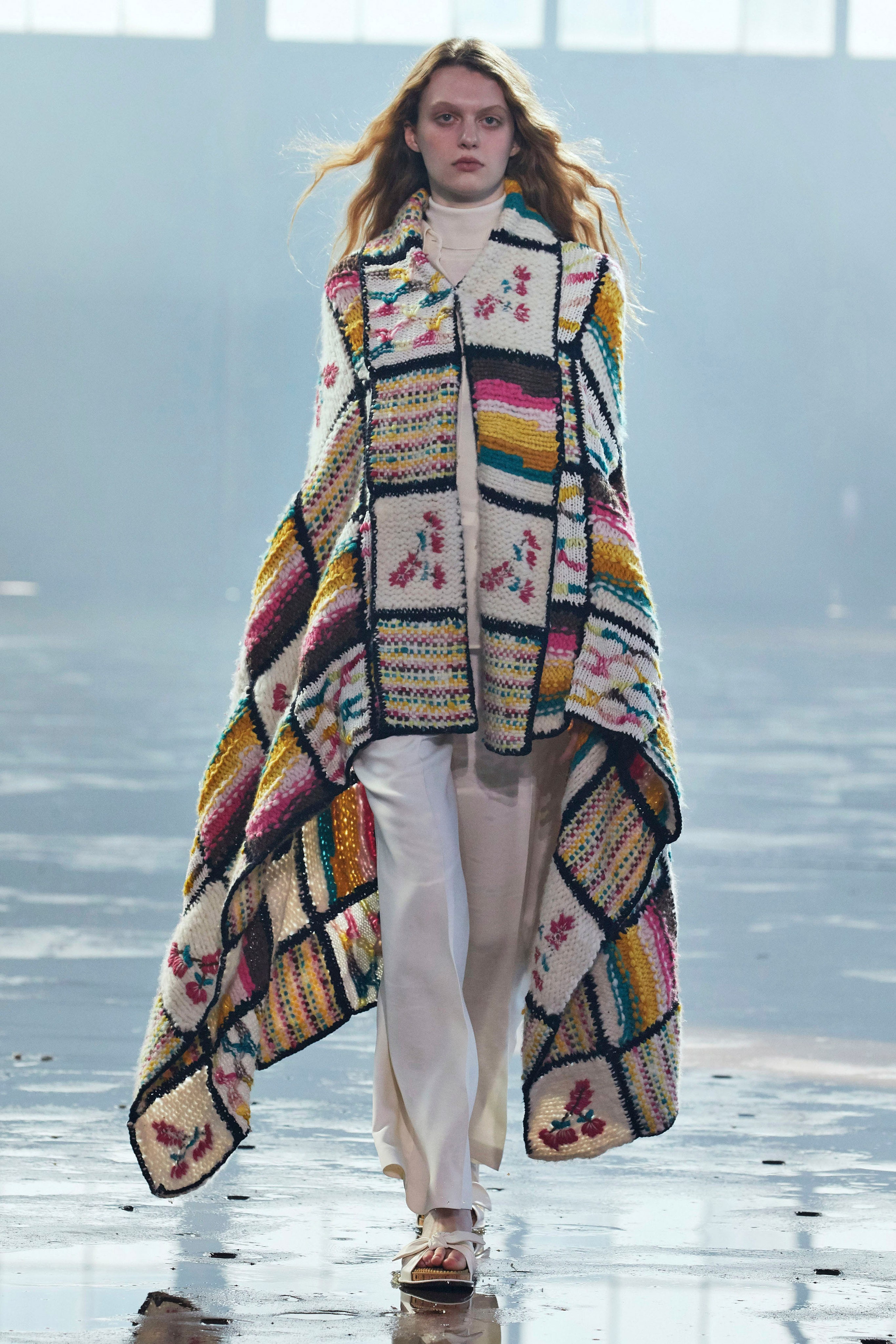 Естествоиспытатель, эрудит и мистик, монахиня из Бингена была самой образованной женщиной своей эпохи, опередив время на несколько столетий и умом являясь скорее человеком эпохи Возрождения. Отклик в сердце дизайнера получили и глубокие познания Хильдегарды в травах и ботанических формах. Так, на вязаных юбках миди, просторных накидках-руанах и свитерах распустились объемные бутоны роз, фиалок и десятков других цветов, над формой которых работала 12-летняя дочь дизайнера.
