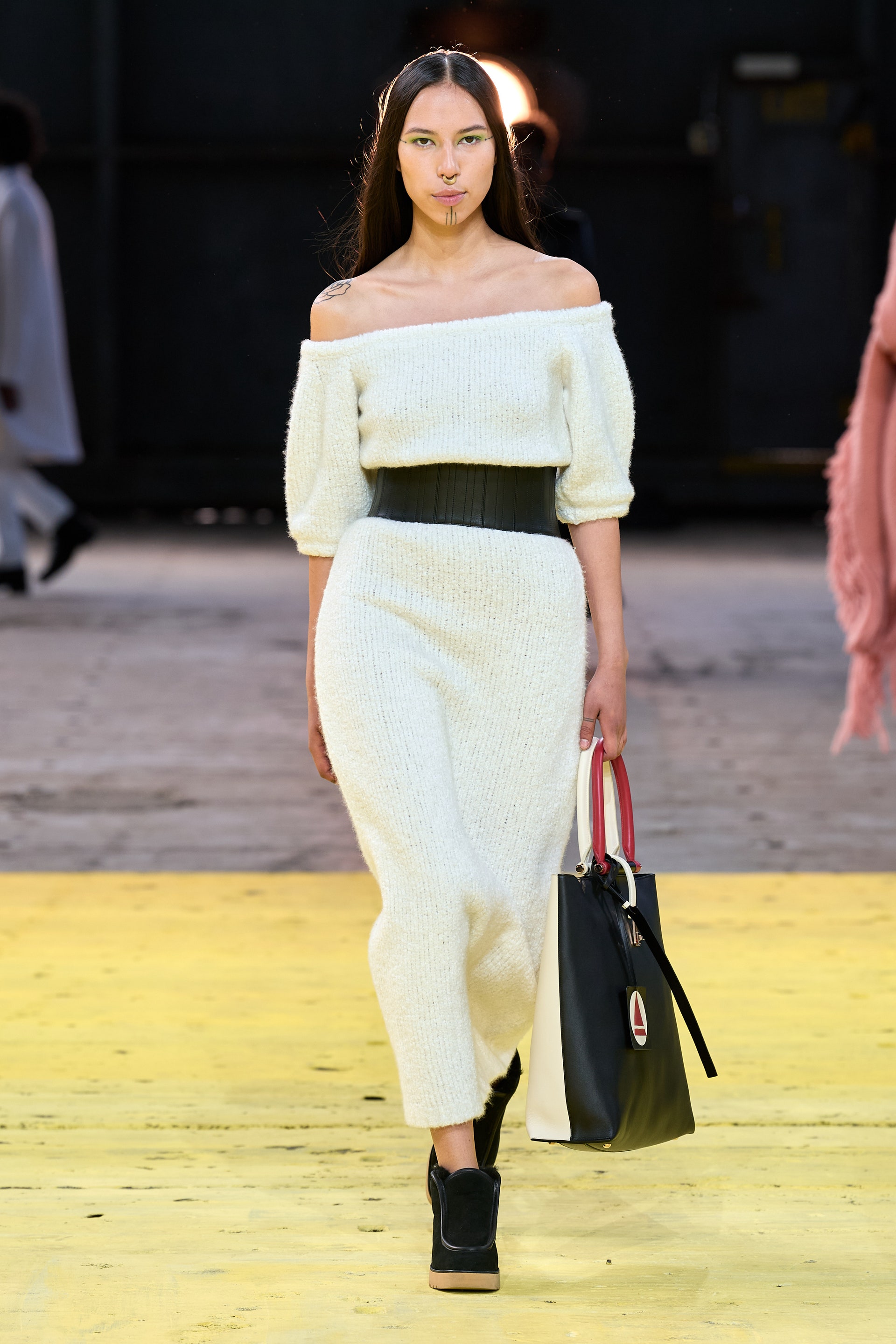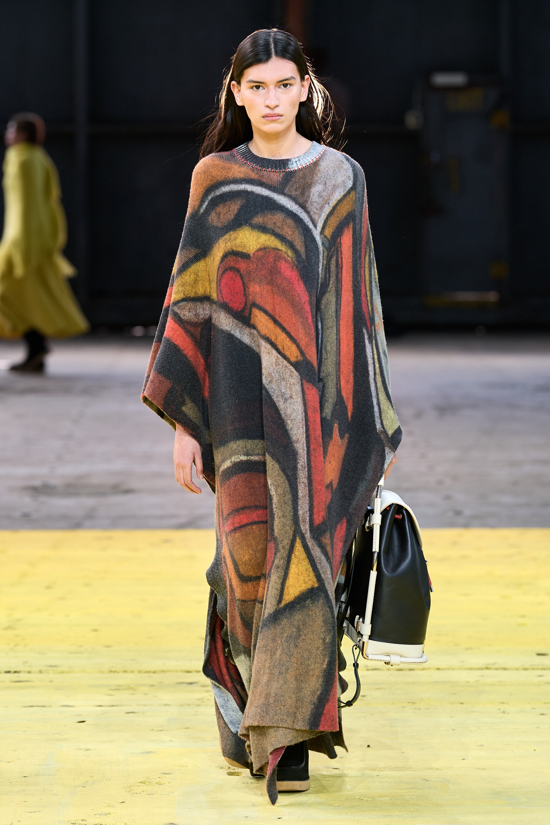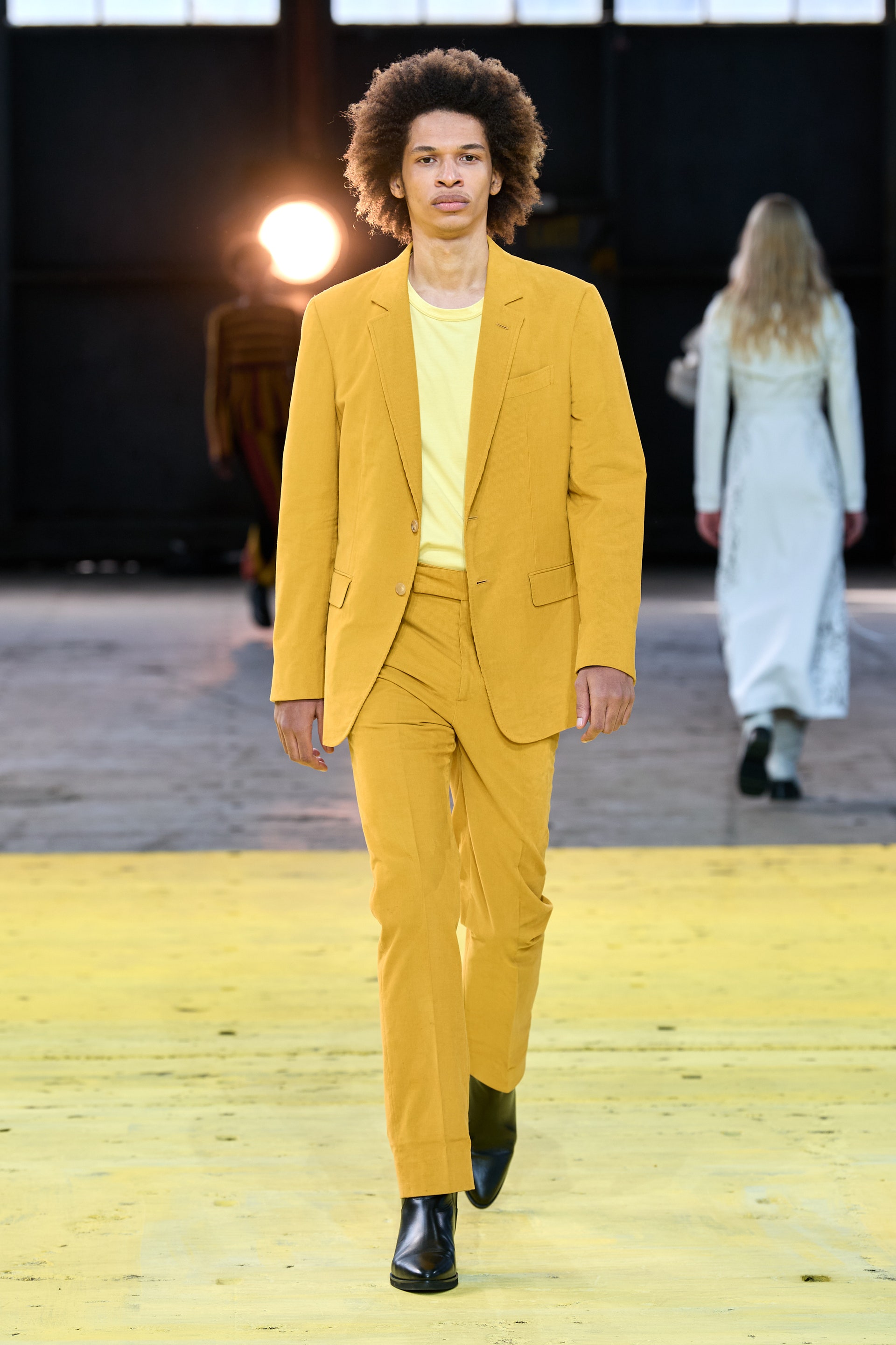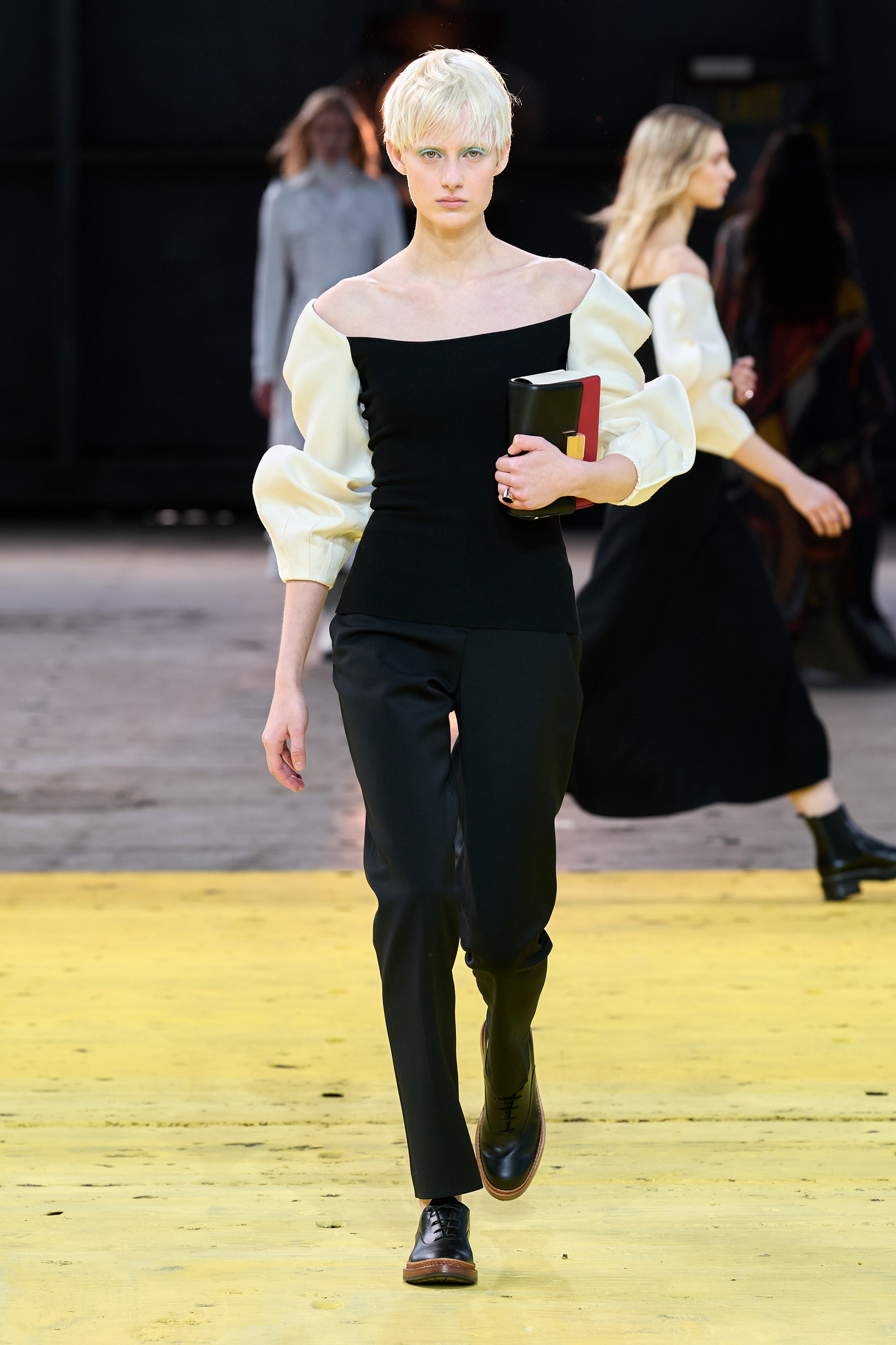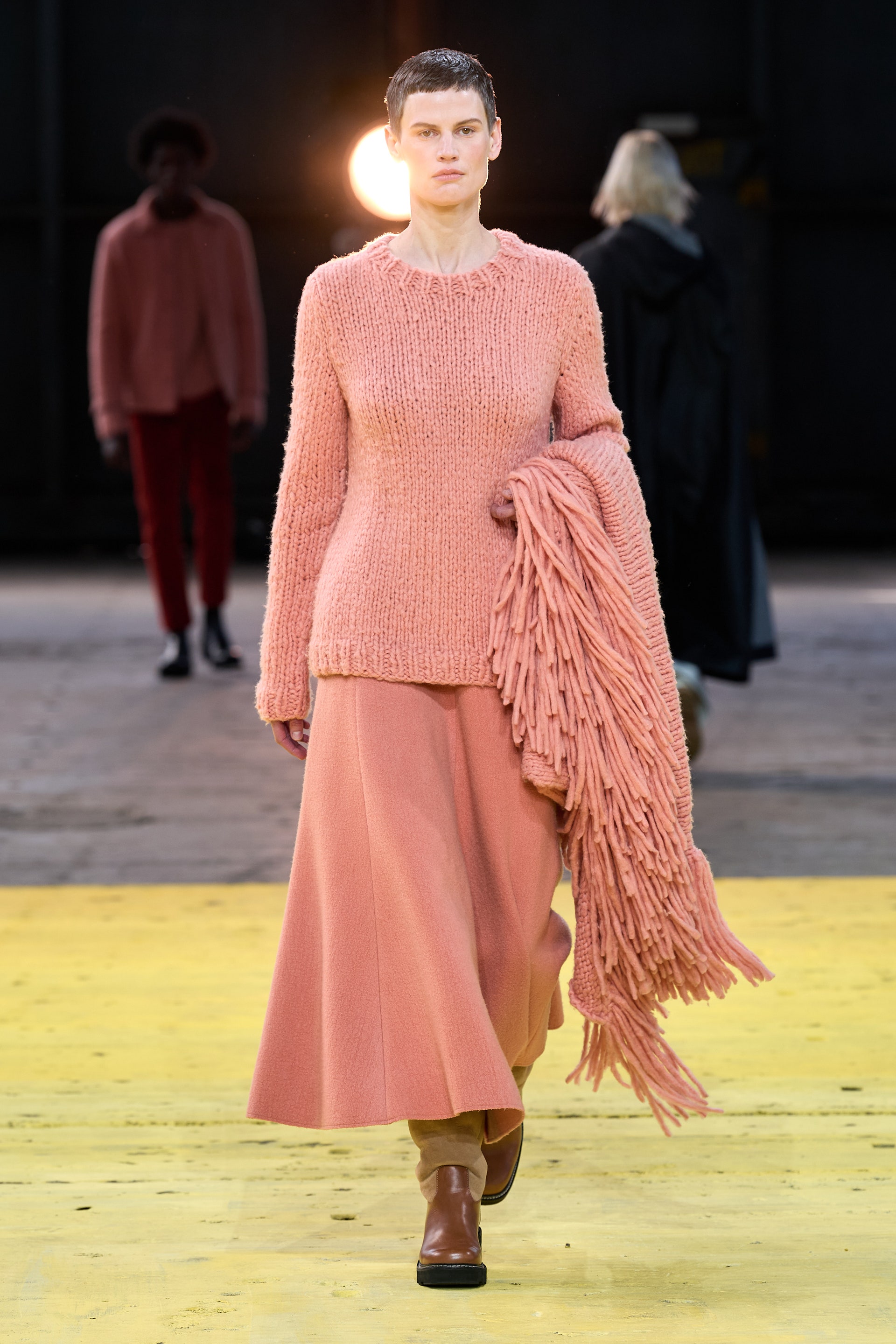 Дофаминовый гардероб остается одним из главных трендов последних сезонов. Оптимистичные оттенки и уверенные силуэты помогают справляться с плохим настроением и поддерживать веру в будущее. В новой коллекции Габриэлы Херст есть все для этого: пончо и плащи солнечного желтого цвета, пудрово-розовые юбки и свитеры. Цвета, материалы и силуэты на подиуме были одинаковыми для мужчин и женщин: пушистые шарфы, элегантные пальто и брючные костюмы, универсальные куртки прямого кроя. В качестве аксессуаров Херст представила линию сумок и клатчей в виде раскрытых книг в прочных переплетах.