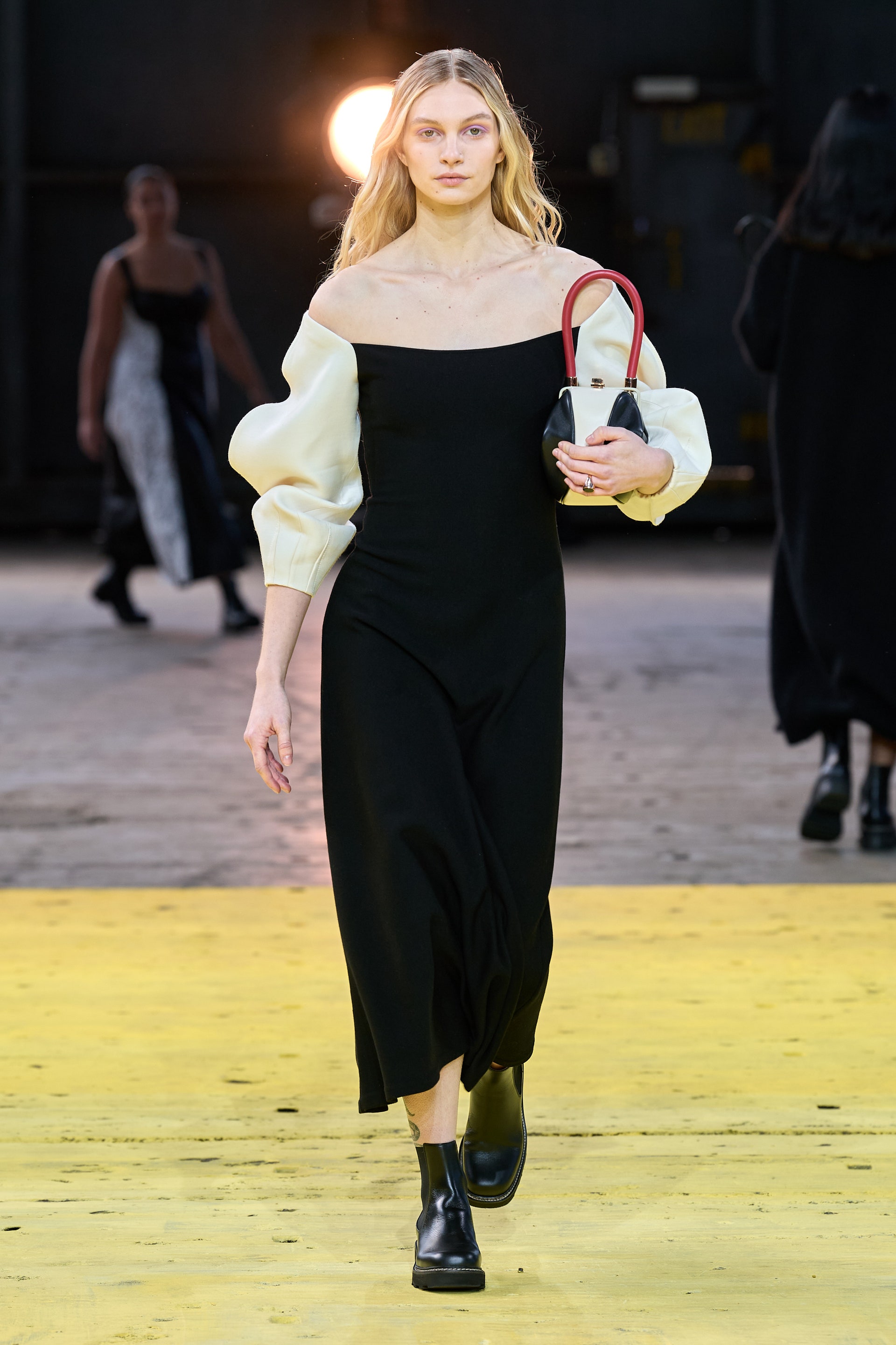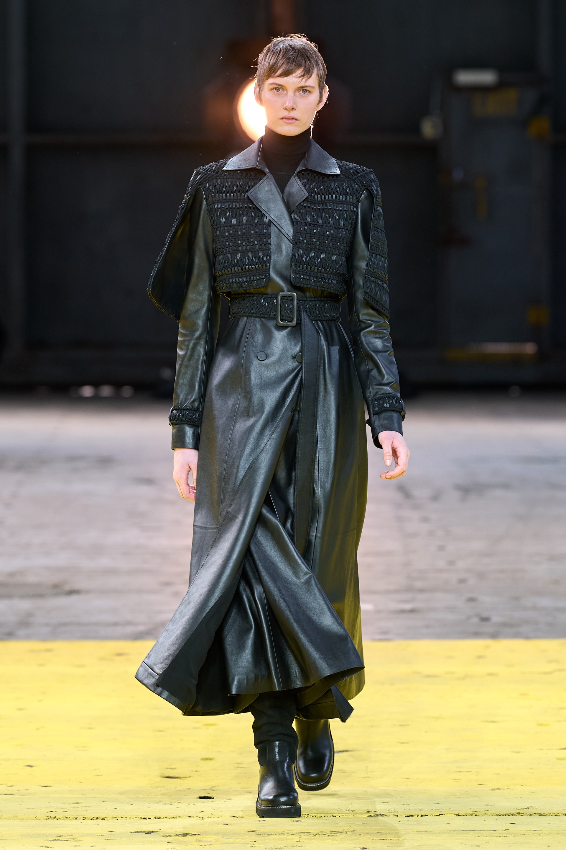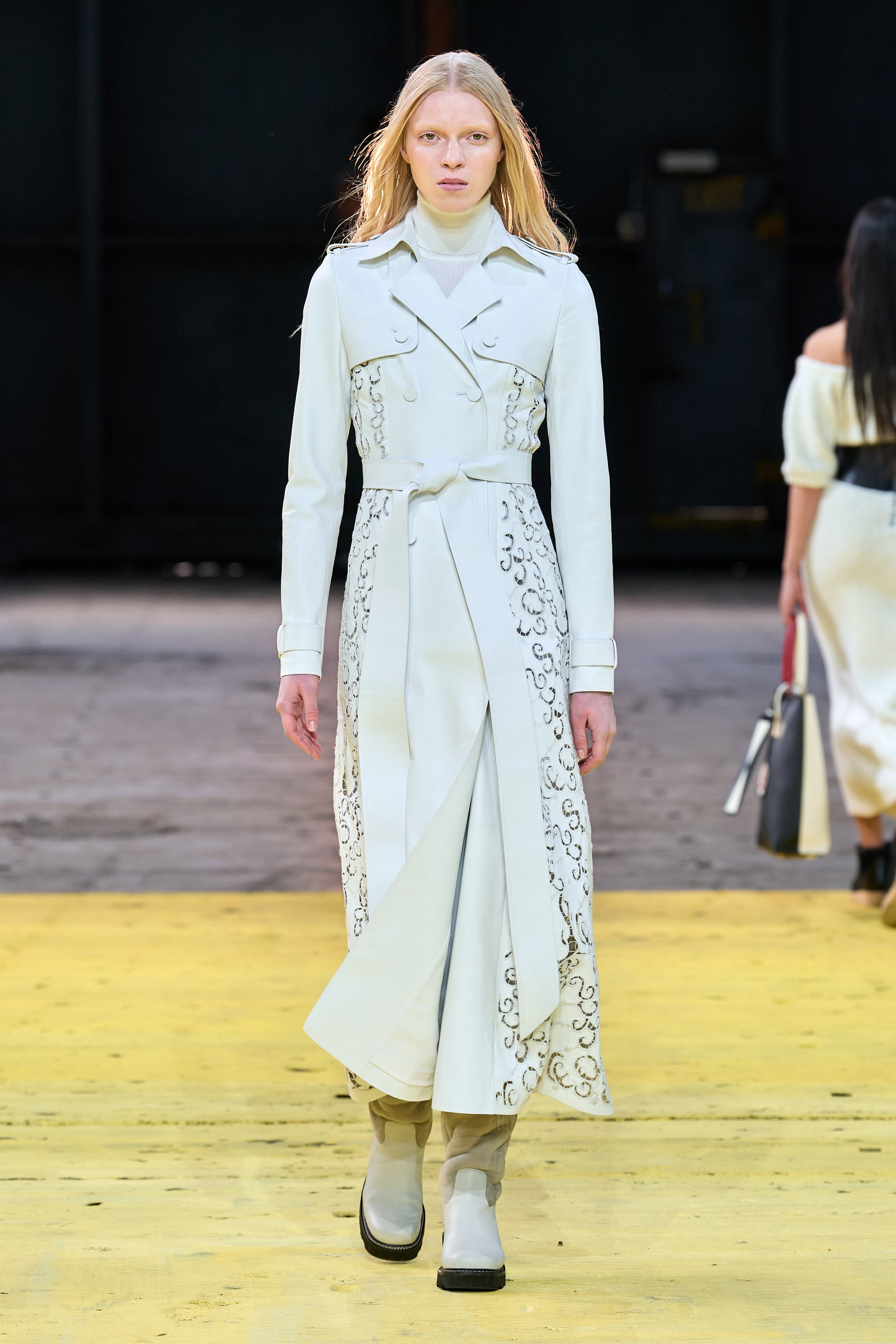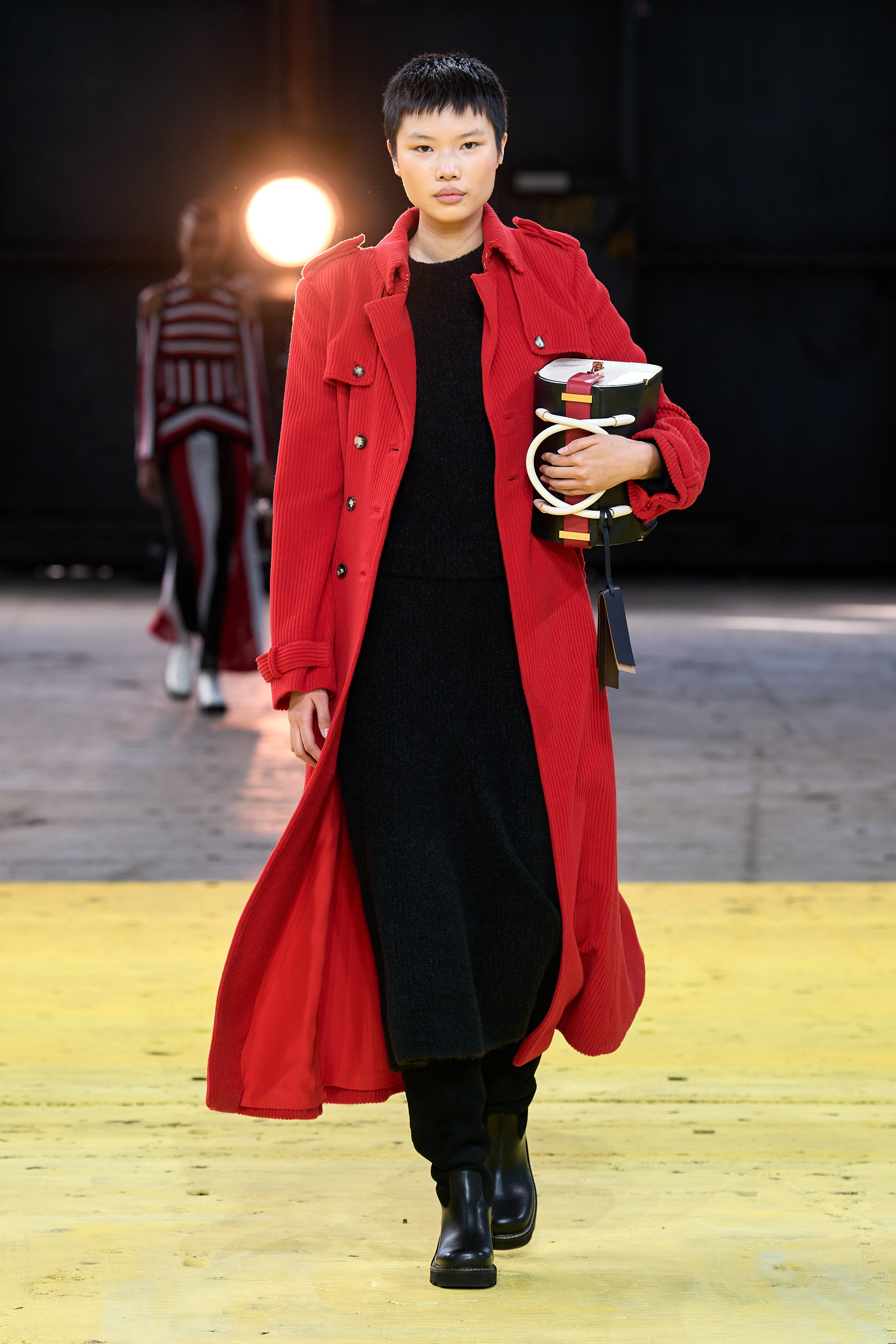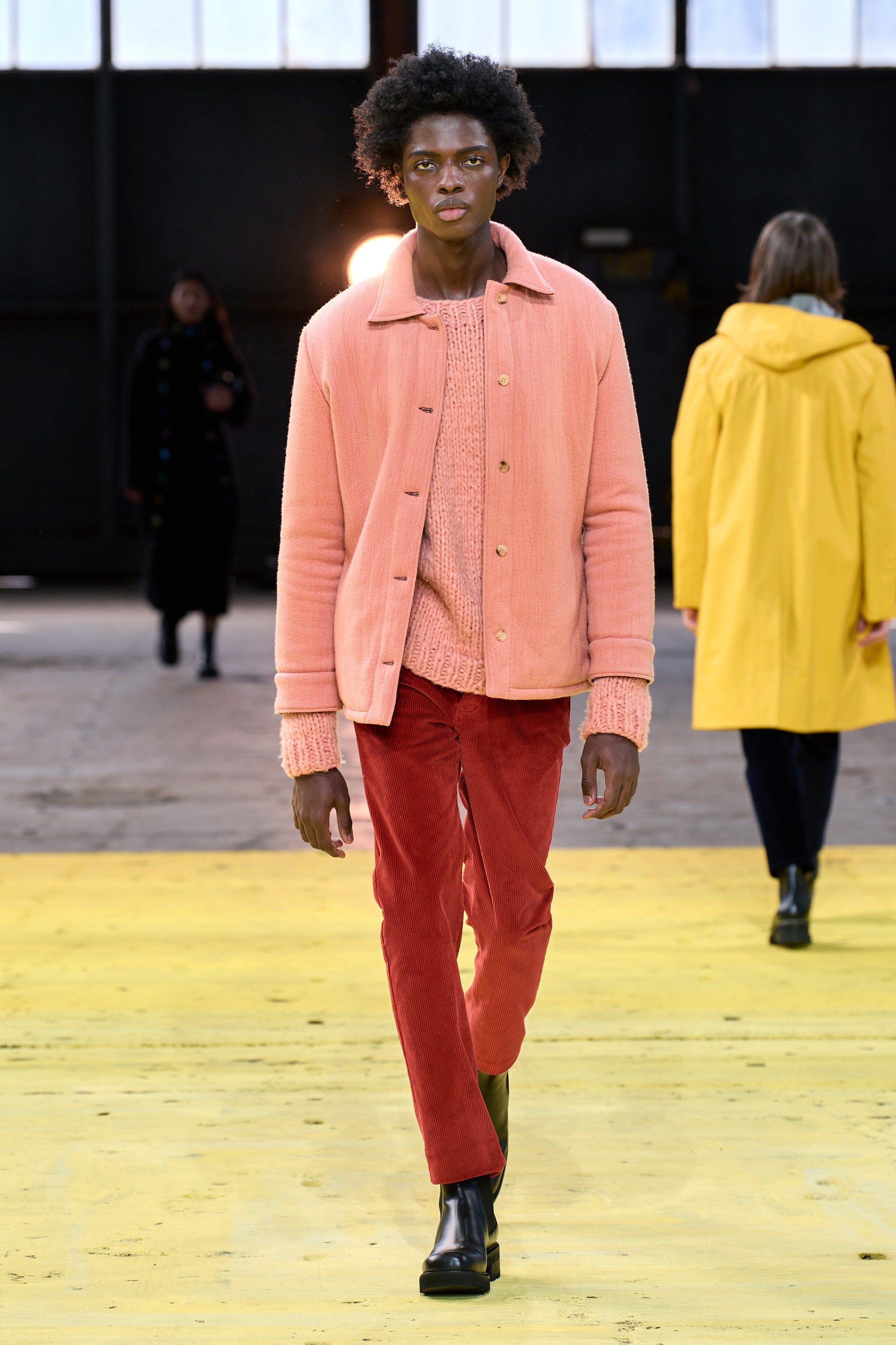 Дофаминовый гардероб остается одним из главных трендов последних сезонов. Оптимистичные оттенки и уверенные силуэты помогают справляться с плохим настроением и поддерживать веру в будущее. В новой коллекции Габриэлы Херст есть все для этого: пончо и плащи солнечного желтого цвета, пудрово-розовые юбки и свитеры. Цвета, материалы и силуэты на подиуме были одинаковыми для мужчин и женщин: пушистые шарфы, элегантные пальто и брючные костюмы, универсальные куртки прямого кроя. В качестве аксессуаров Херст представила линию сумок и клатчей в виде раскрытых книг в прочных переплетах.