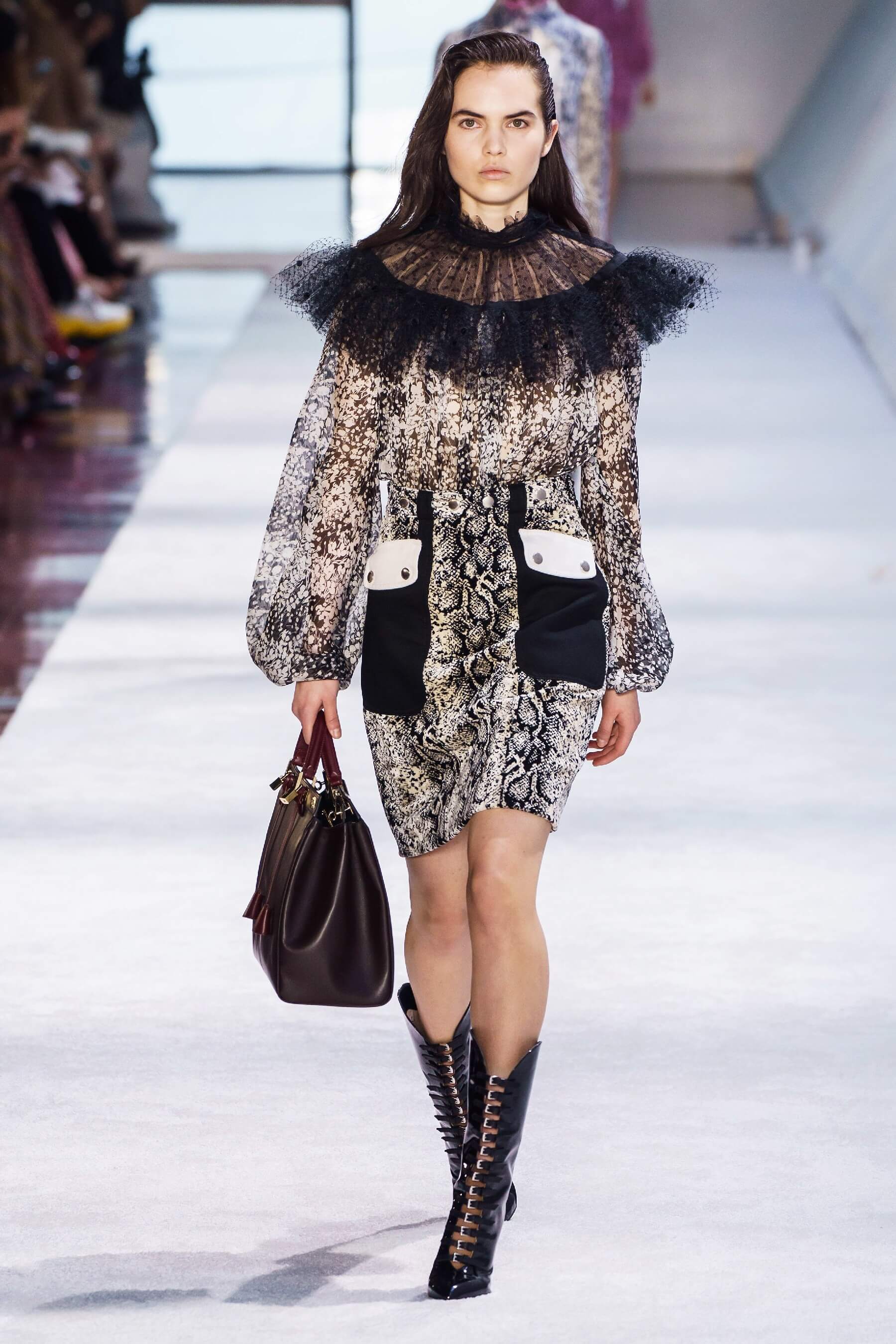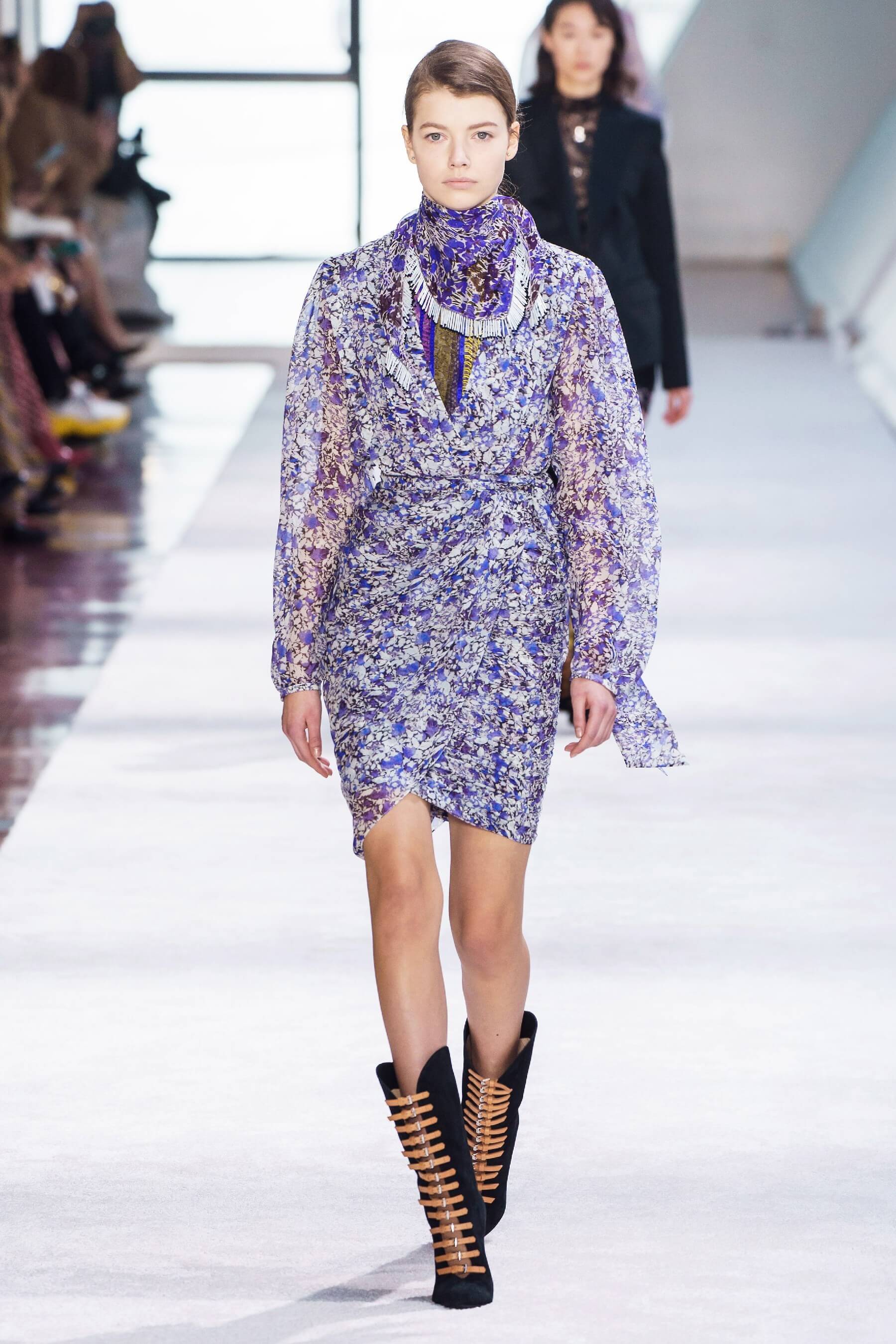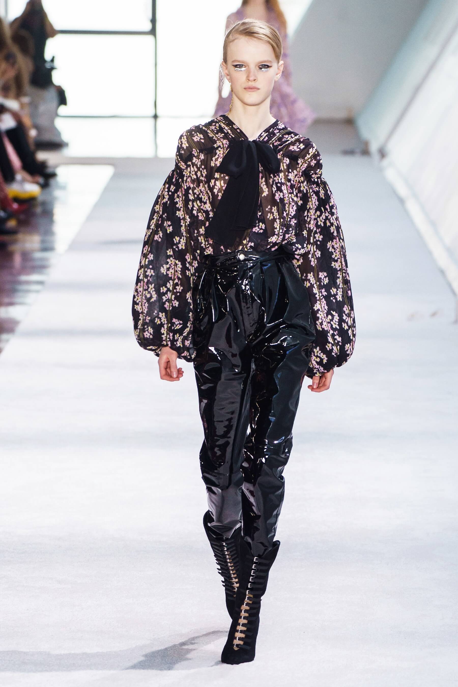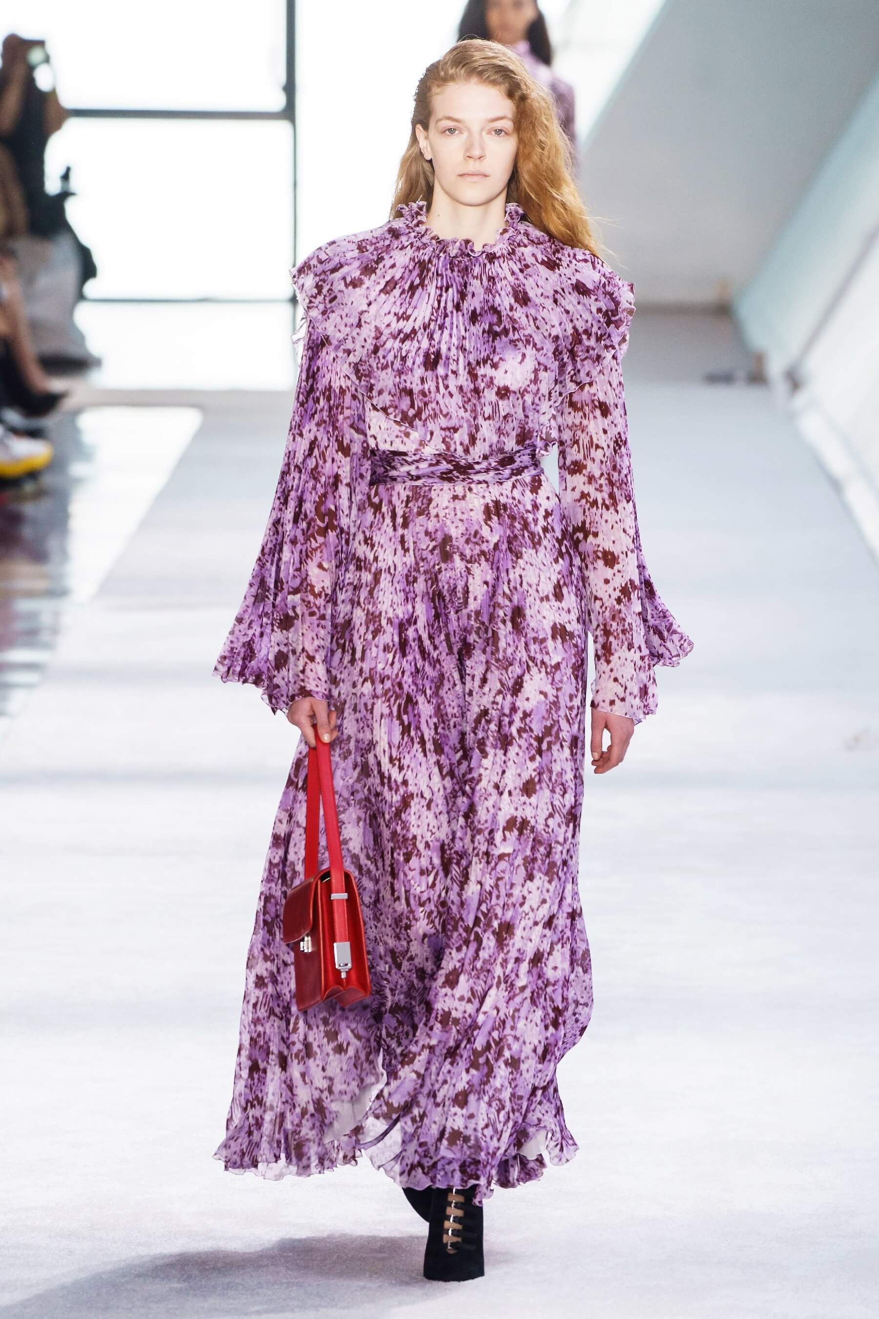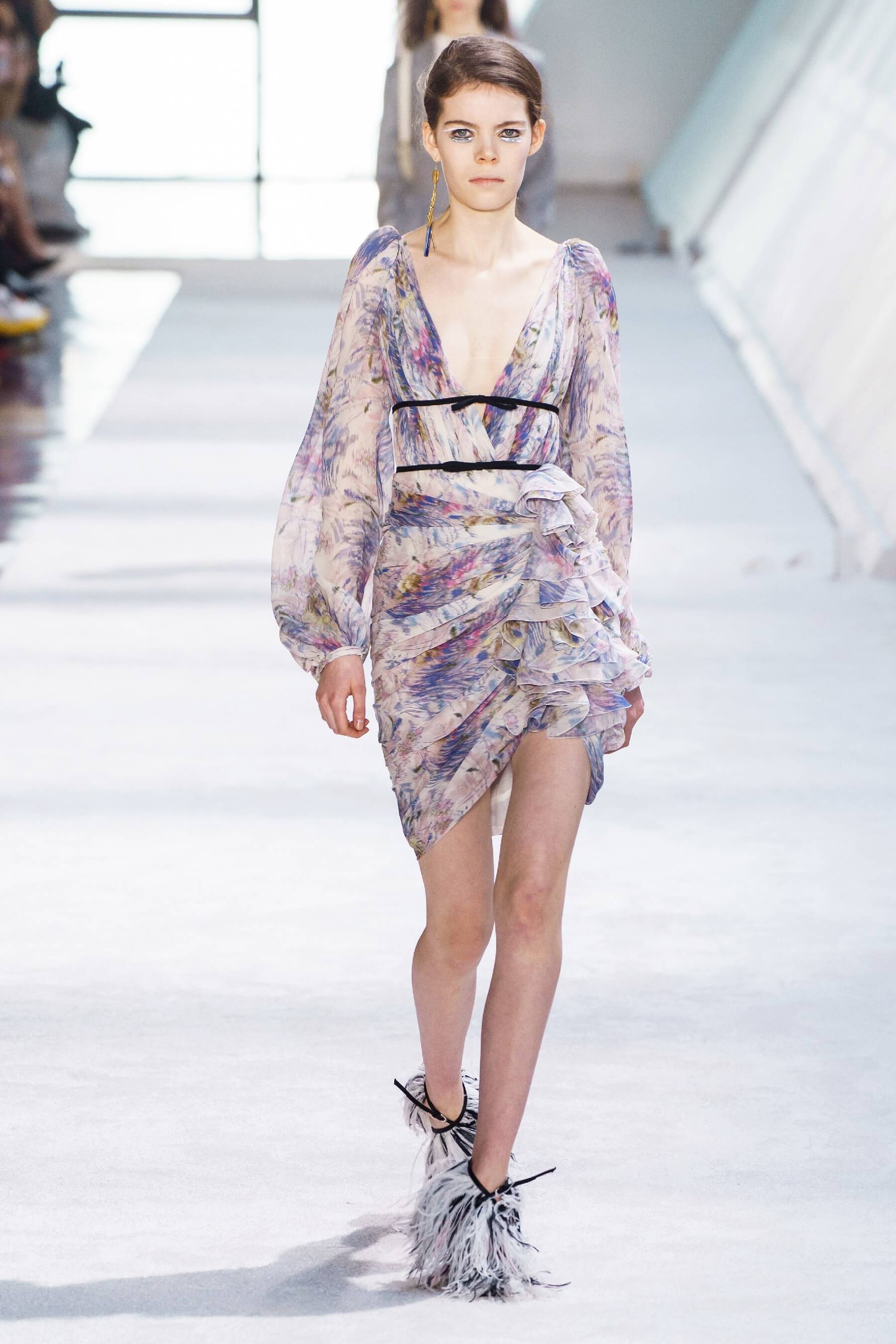Будущей осенью, какой бы ветер ни дул, дизайнер предлагает носить богемные наряды из тончайших слоёв шелка и тюля, расцвеченных то мириадами мелких цветов, то фрагментами экспрессионистских картин вроде "Сада в Живерни" Клода Моне. Рукава в коллекции приподняты и объёмны, как в нарядах конца 19 — начала 20 века, на блузах расположилась вышивка, а дополняют всё кожаные косухи, пальто в змеиный принт и лаковые блестящие брюки.