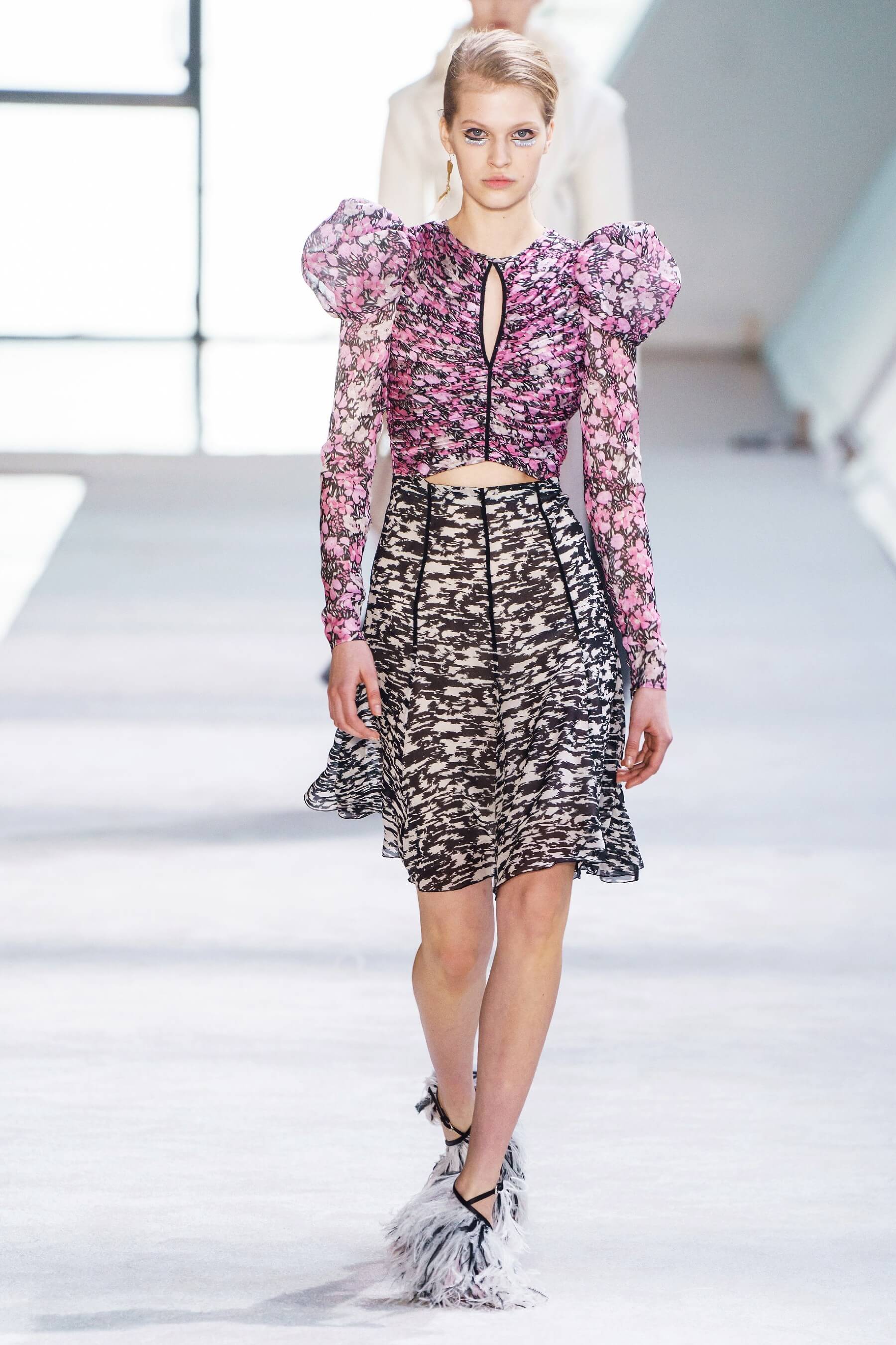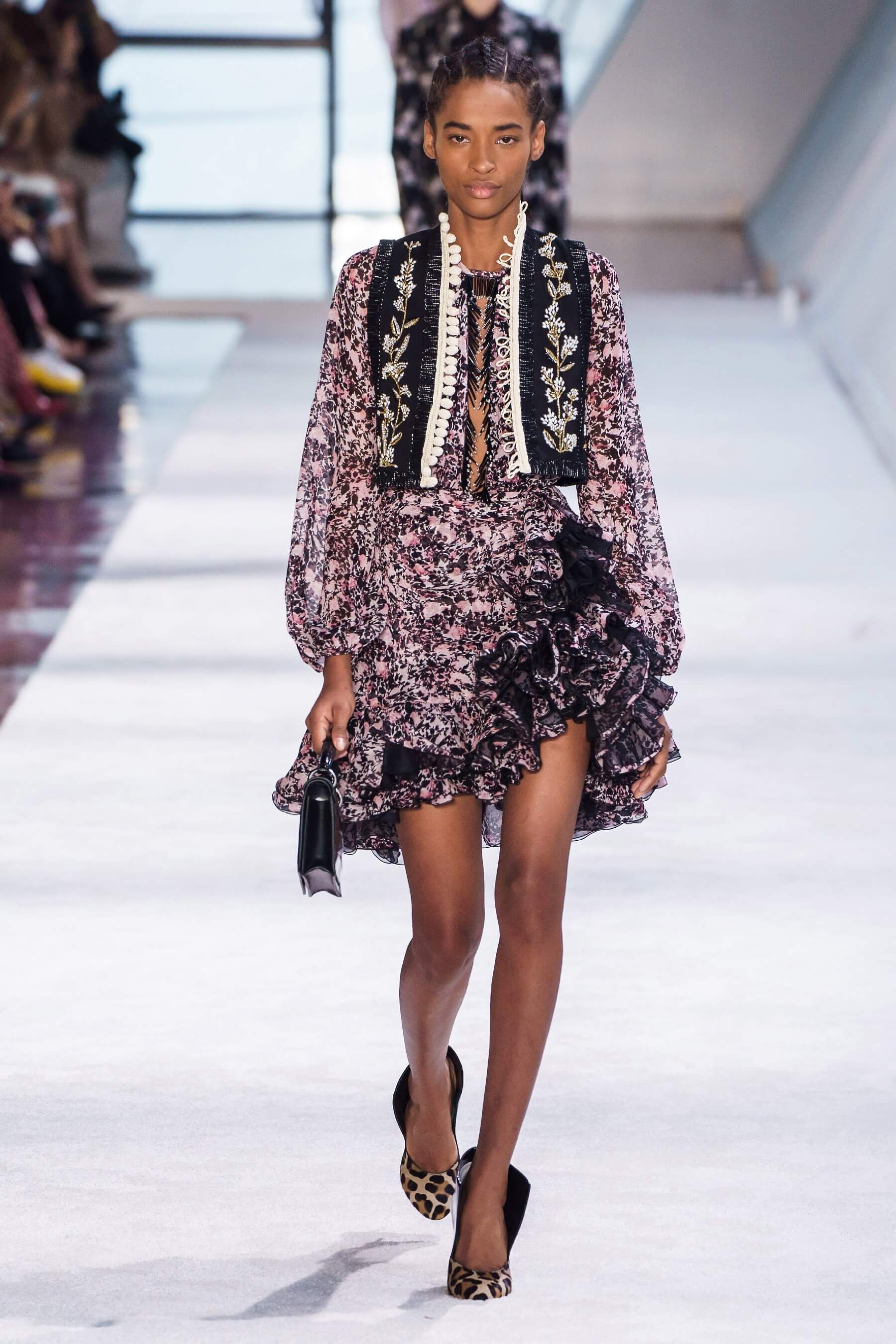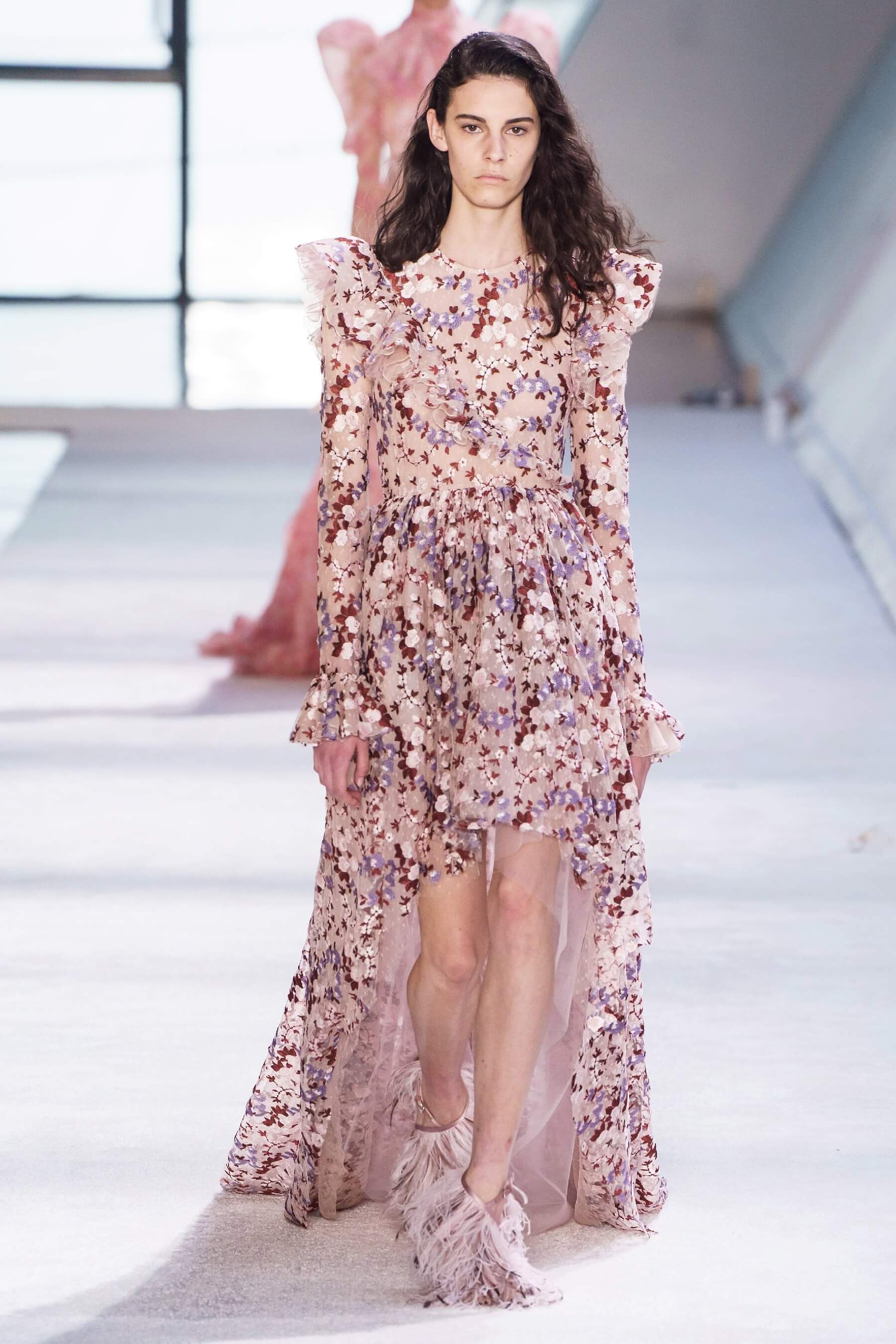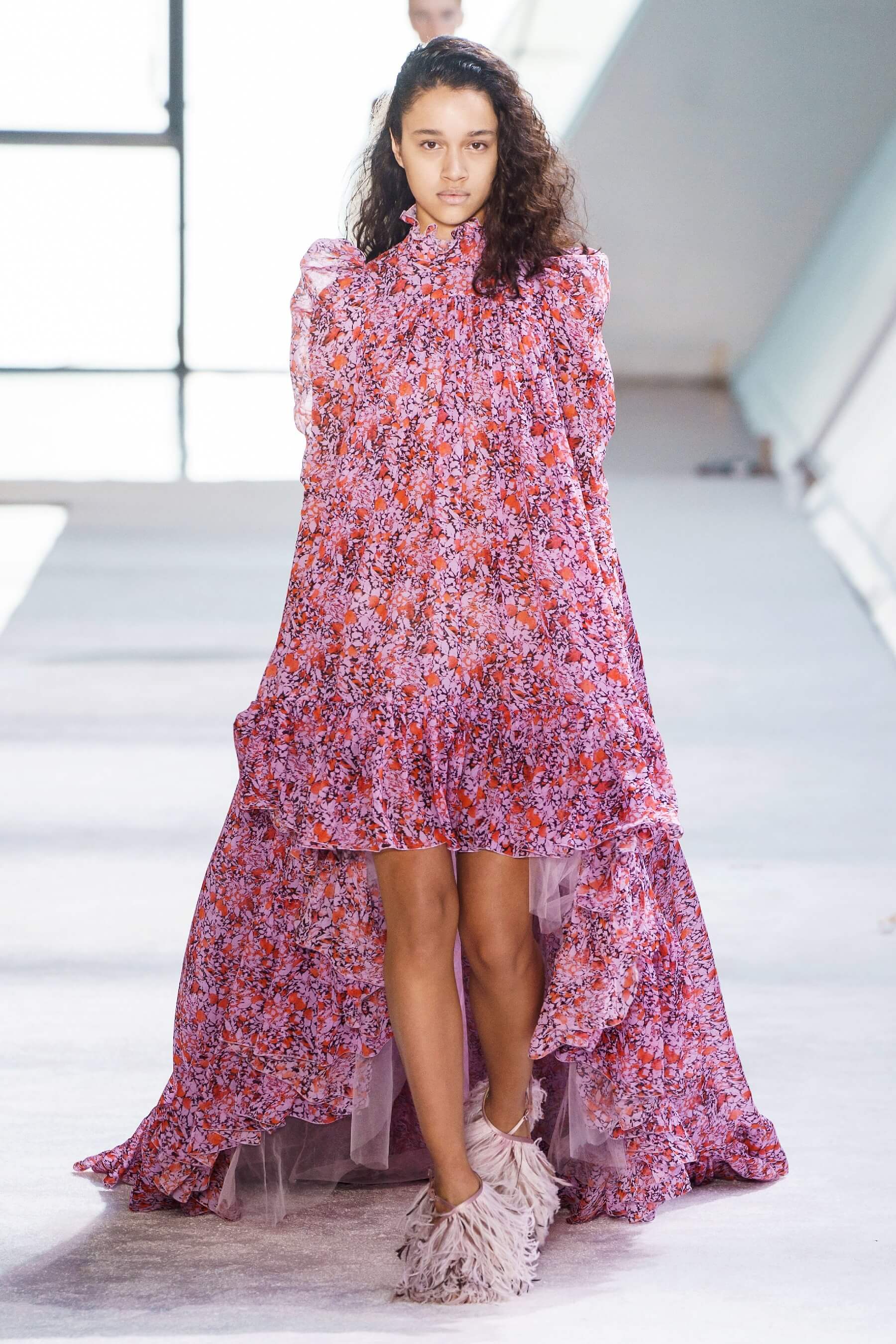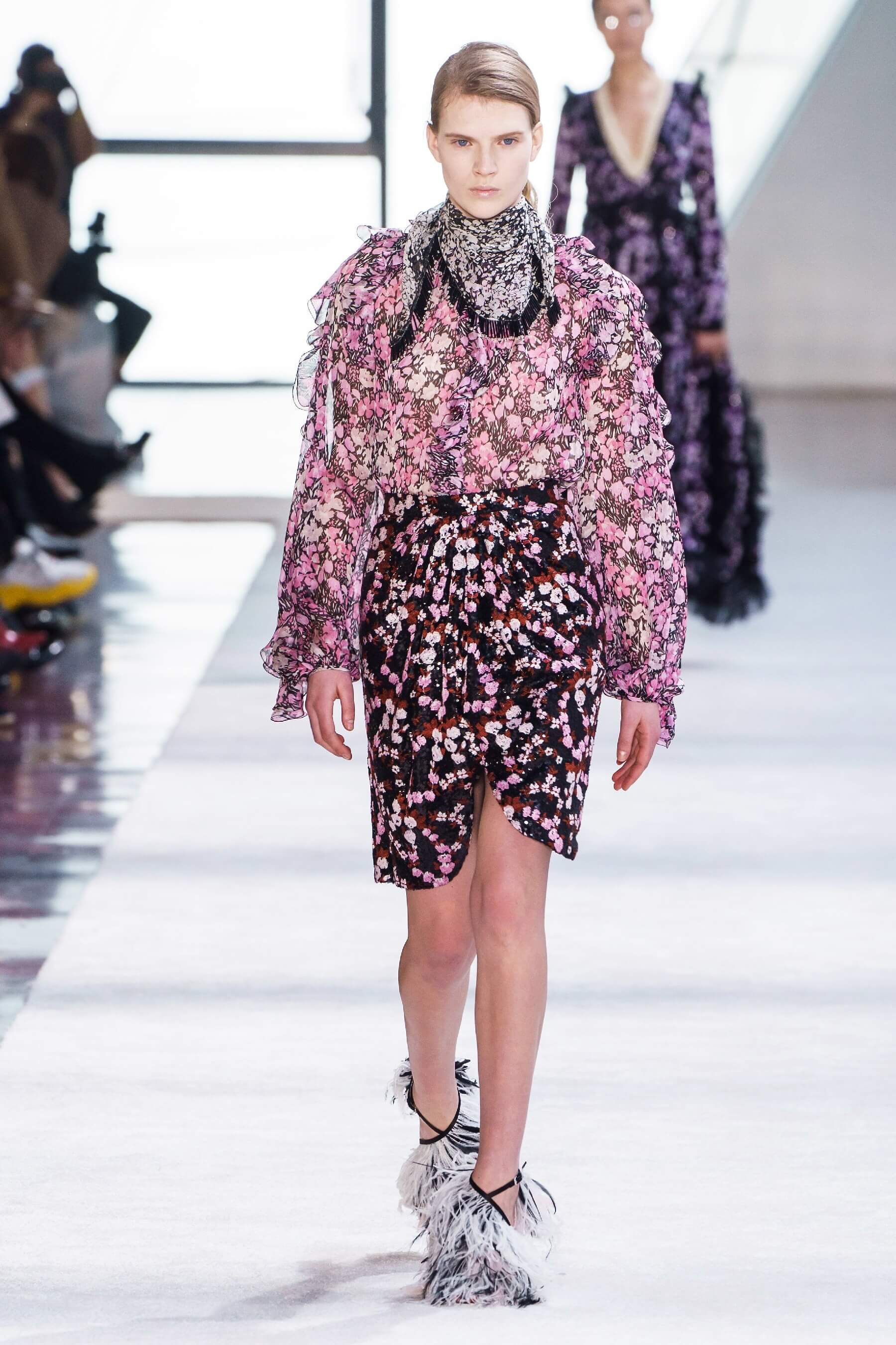 Будущей осенью, какой бы ветер ни дул, дизайнер предлагает носить богемные наряды из тончайших слоёв шелка и тюля, расцвеченных то мириадами мелких цветов, то фрагментами экспрессионистских картин вроде "Сада в Живерни" Клода Моне. Рукава в коллекции приподняты и объёмны, как в нарядах конца 19 — начала 20 века, на блузах расположилась вышивка, а дополняют всё кожаные косухи, пальто в змеиный принт и лаковые блестящие брюки.
