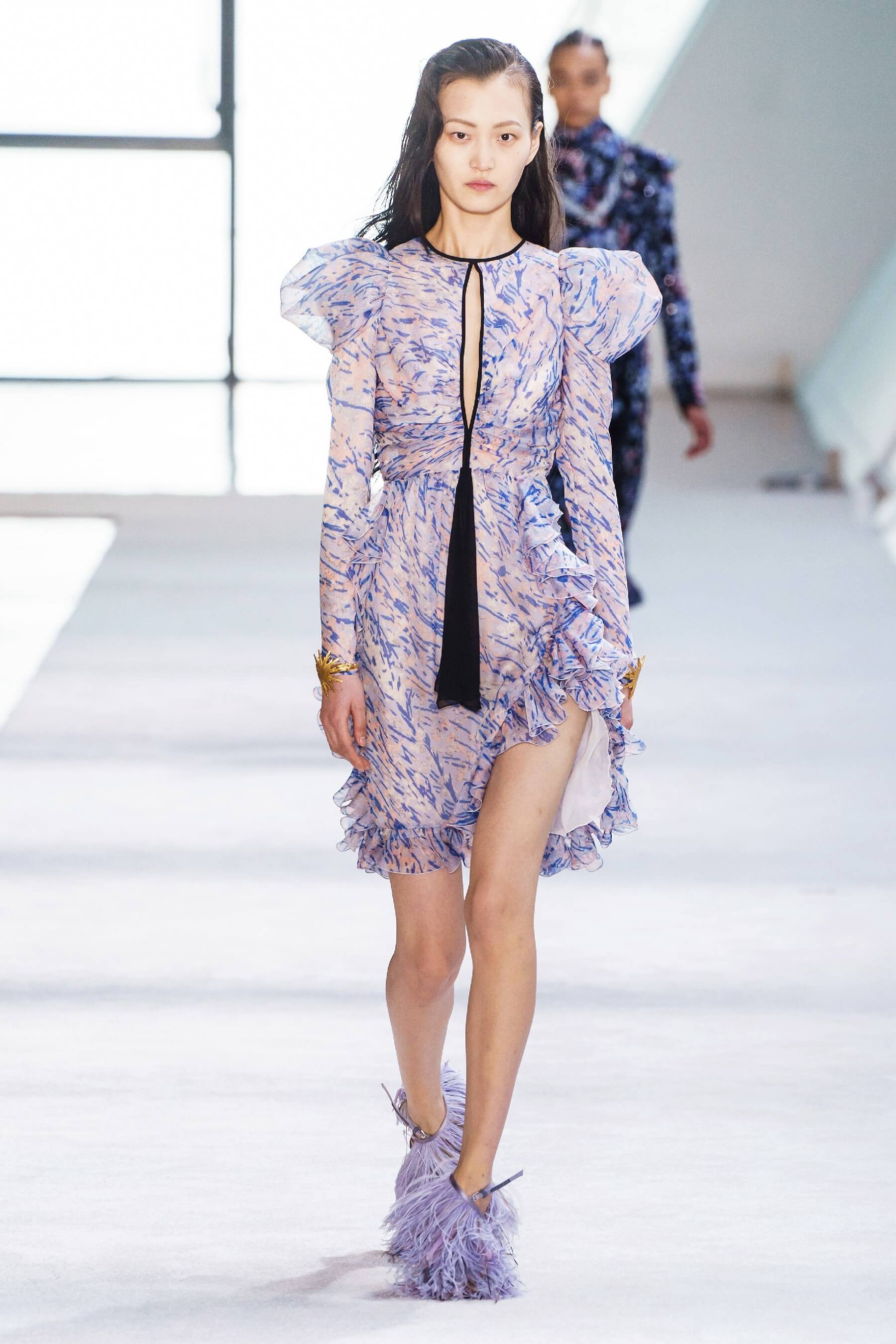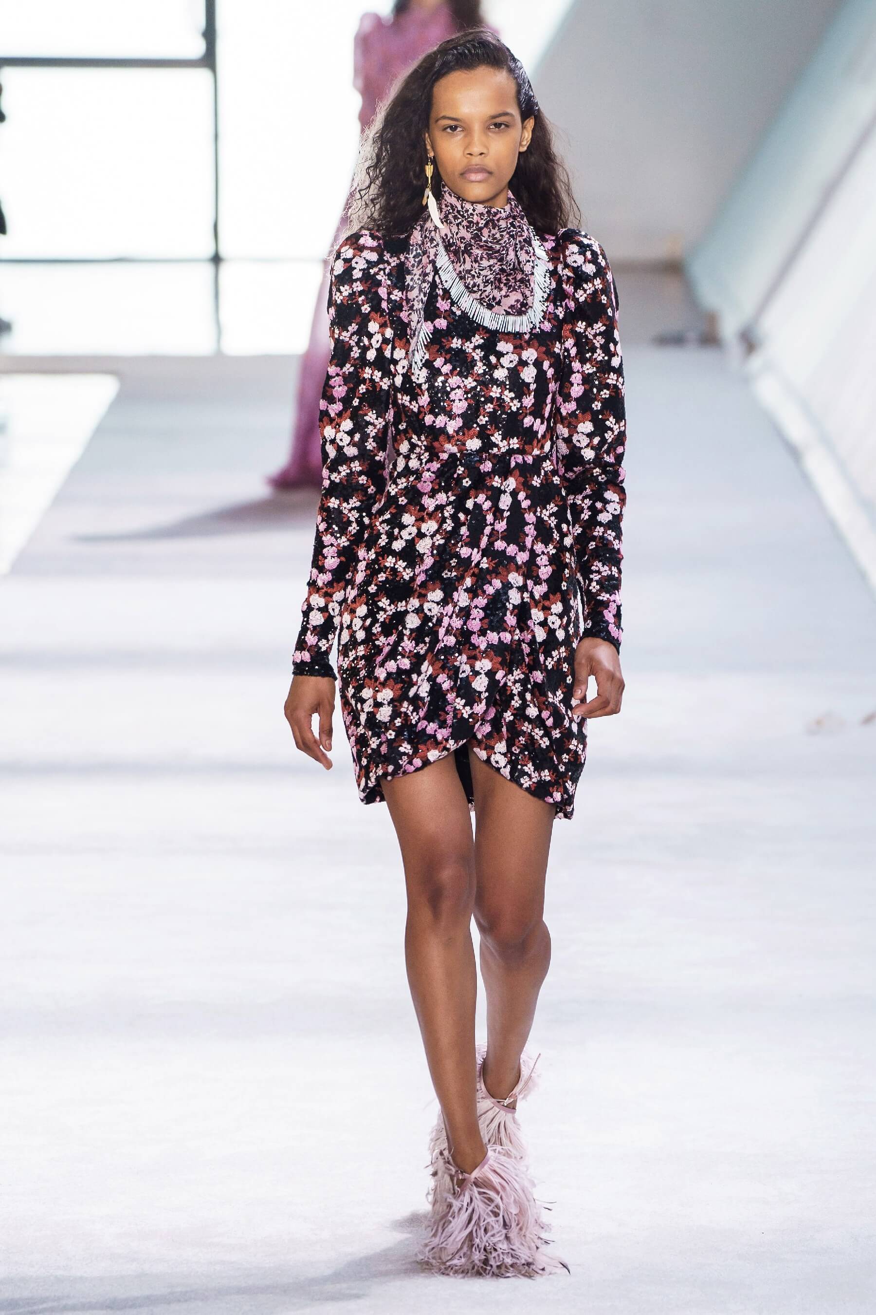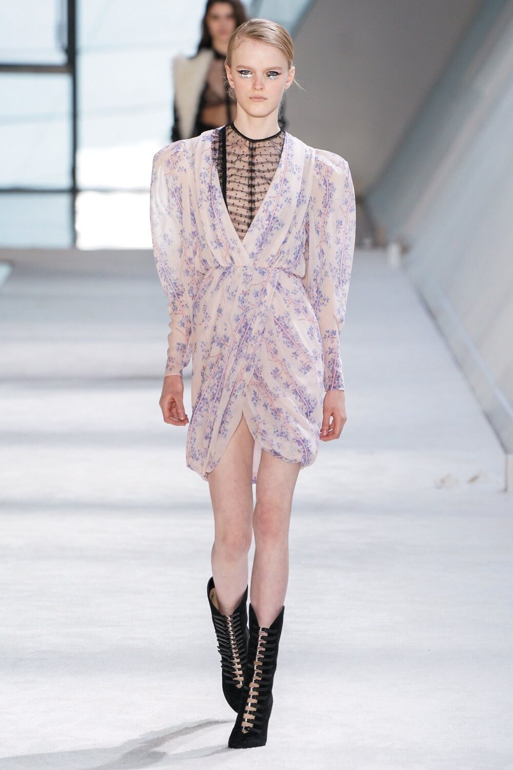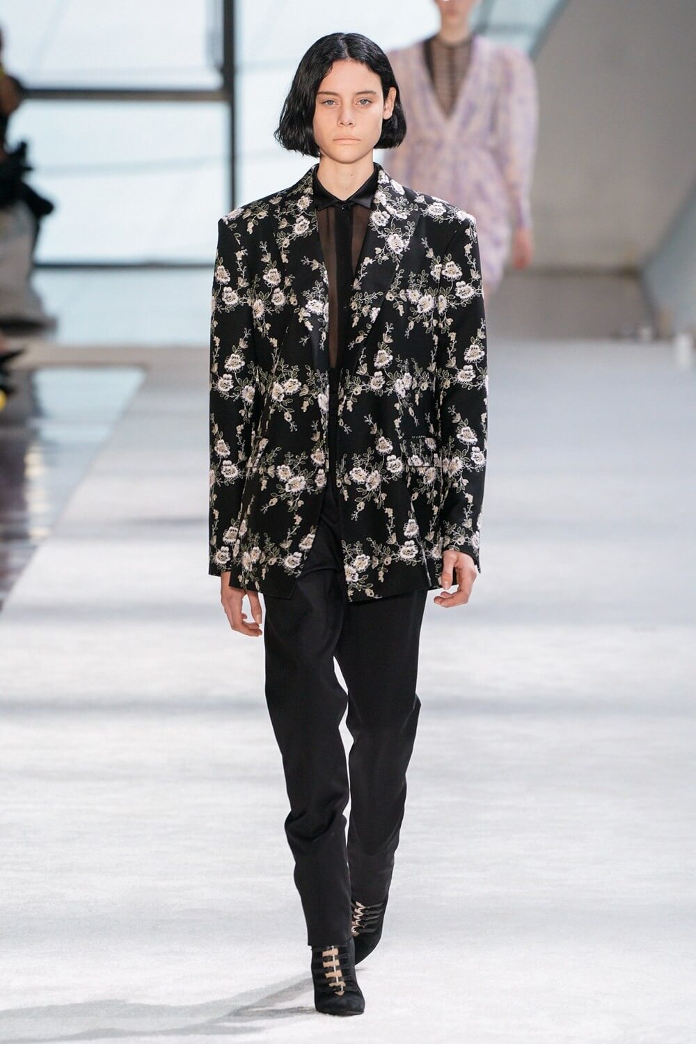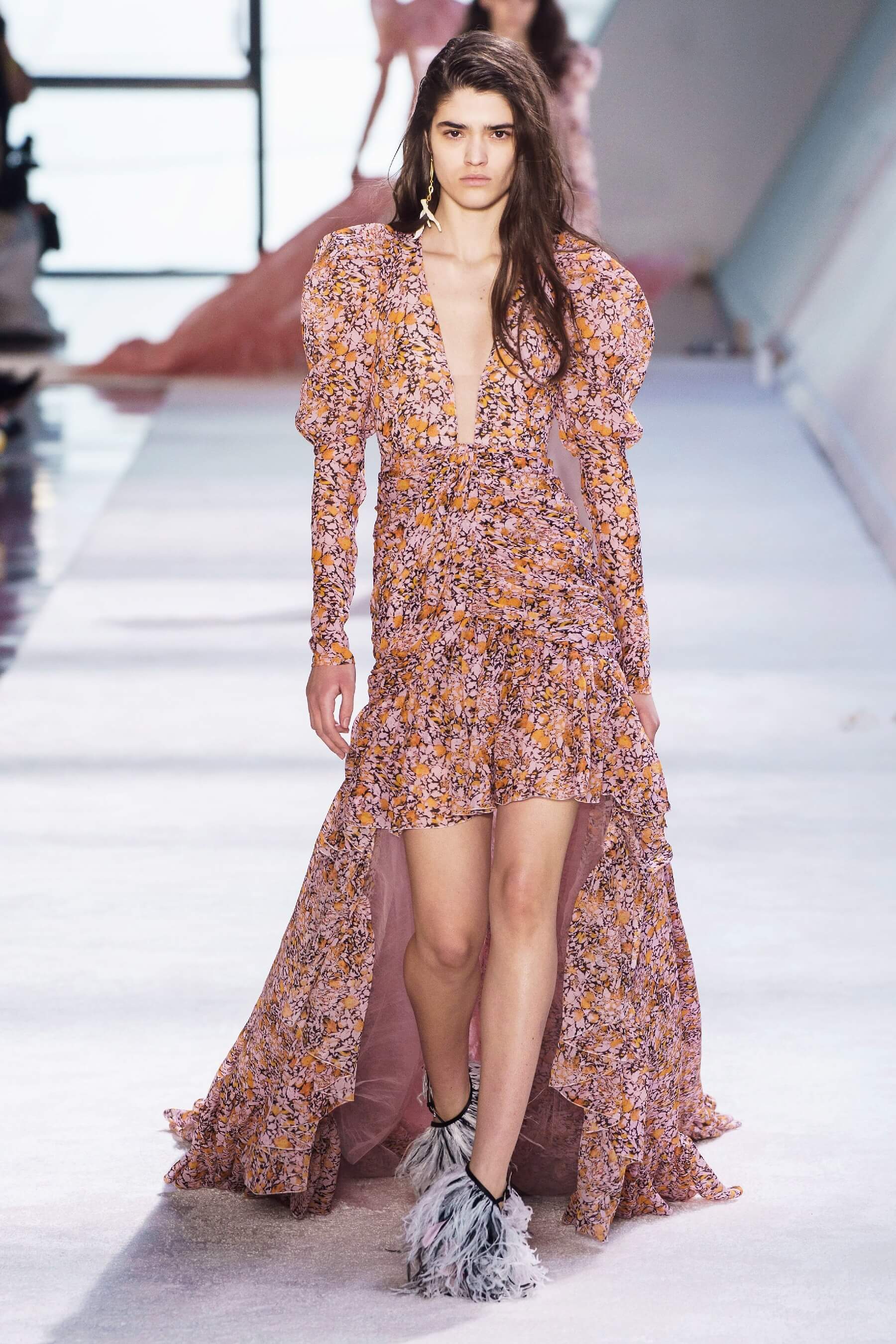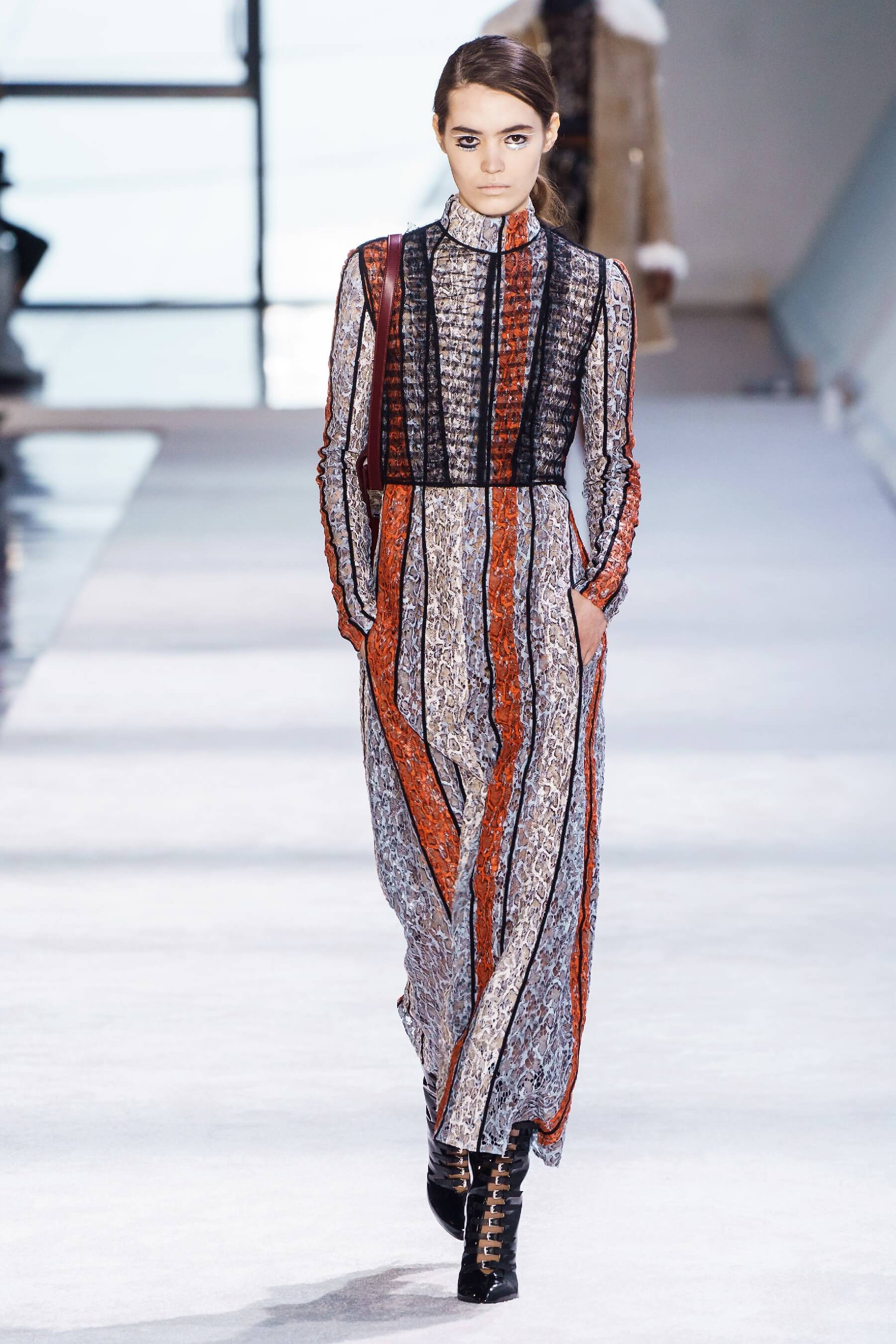 Будущей осенью, какой бы ветер ни дул, дизайнер предлагает носить богемные наряды из тончайших слоёв шелка и тюля, расцвеченных то мириадами мелких цветов, то фрагментами экспрессионистских картин вроде "Сада в Живерни" Клода Моне. Рукава в коллекции приподняты и объёмны, как в нарядах конца 19 — начала 20 века, на блузах расположилась вышивка, а дополняют всё кожаные косухи, пальто в змеиный принт и лаковые блестящие брюки.