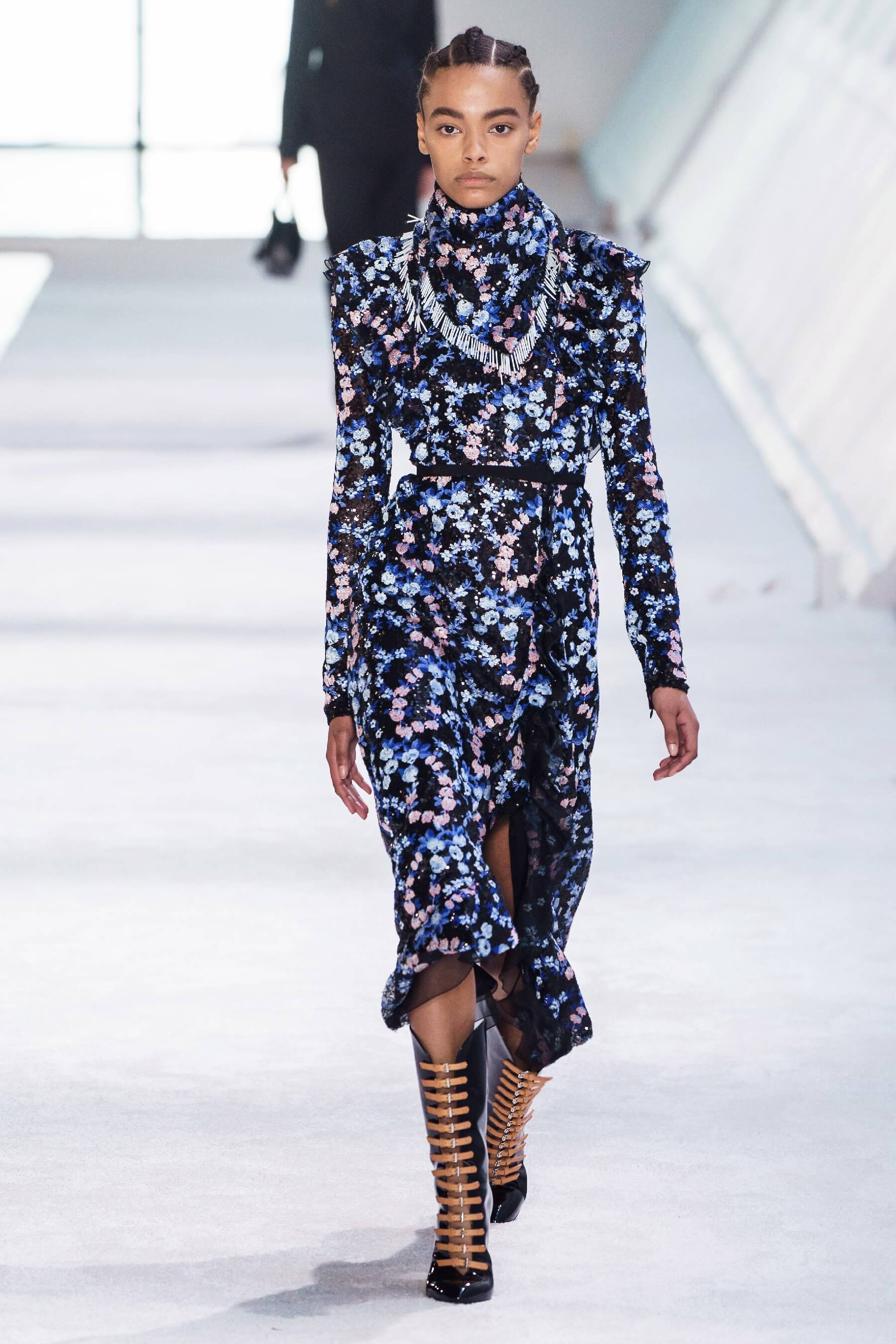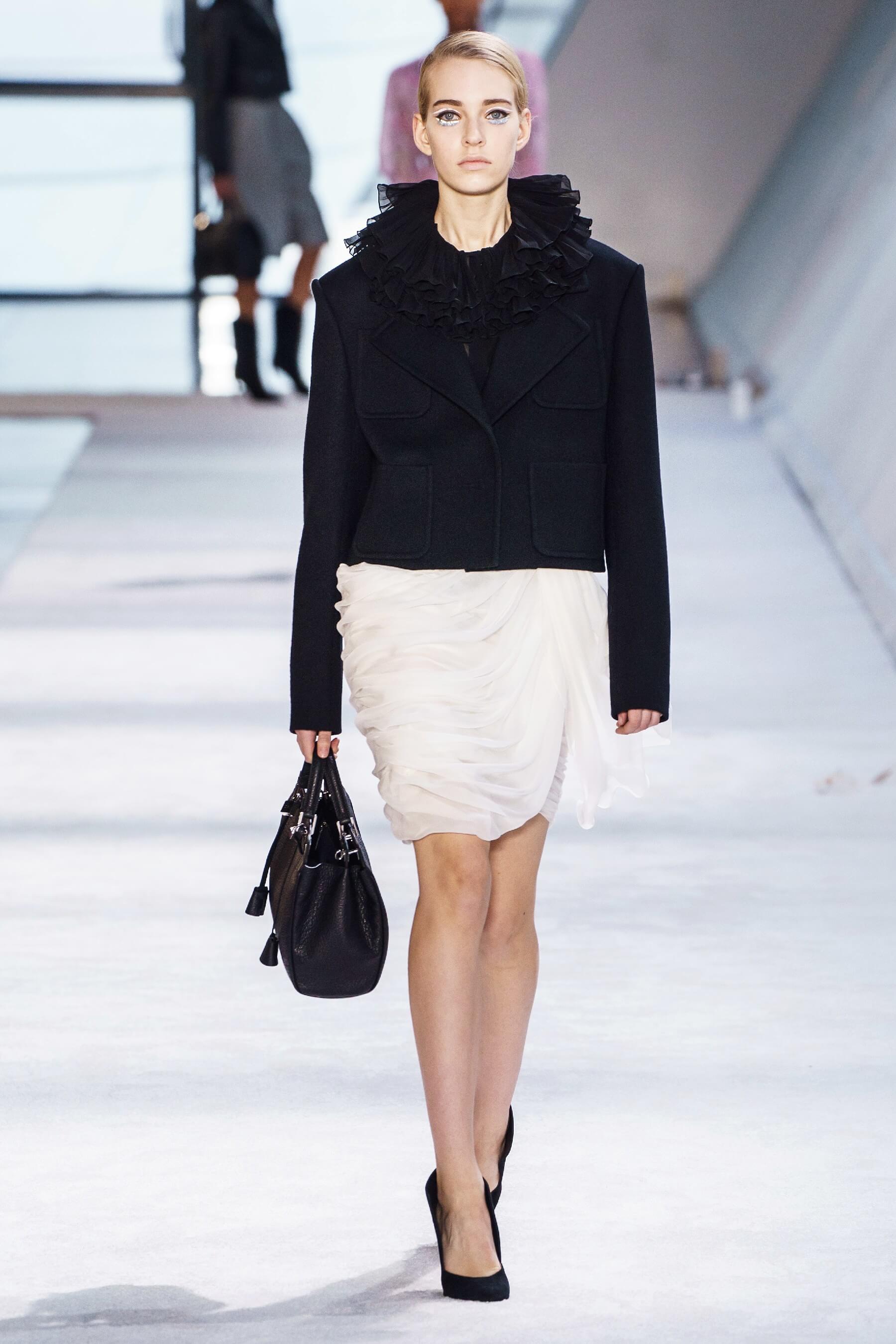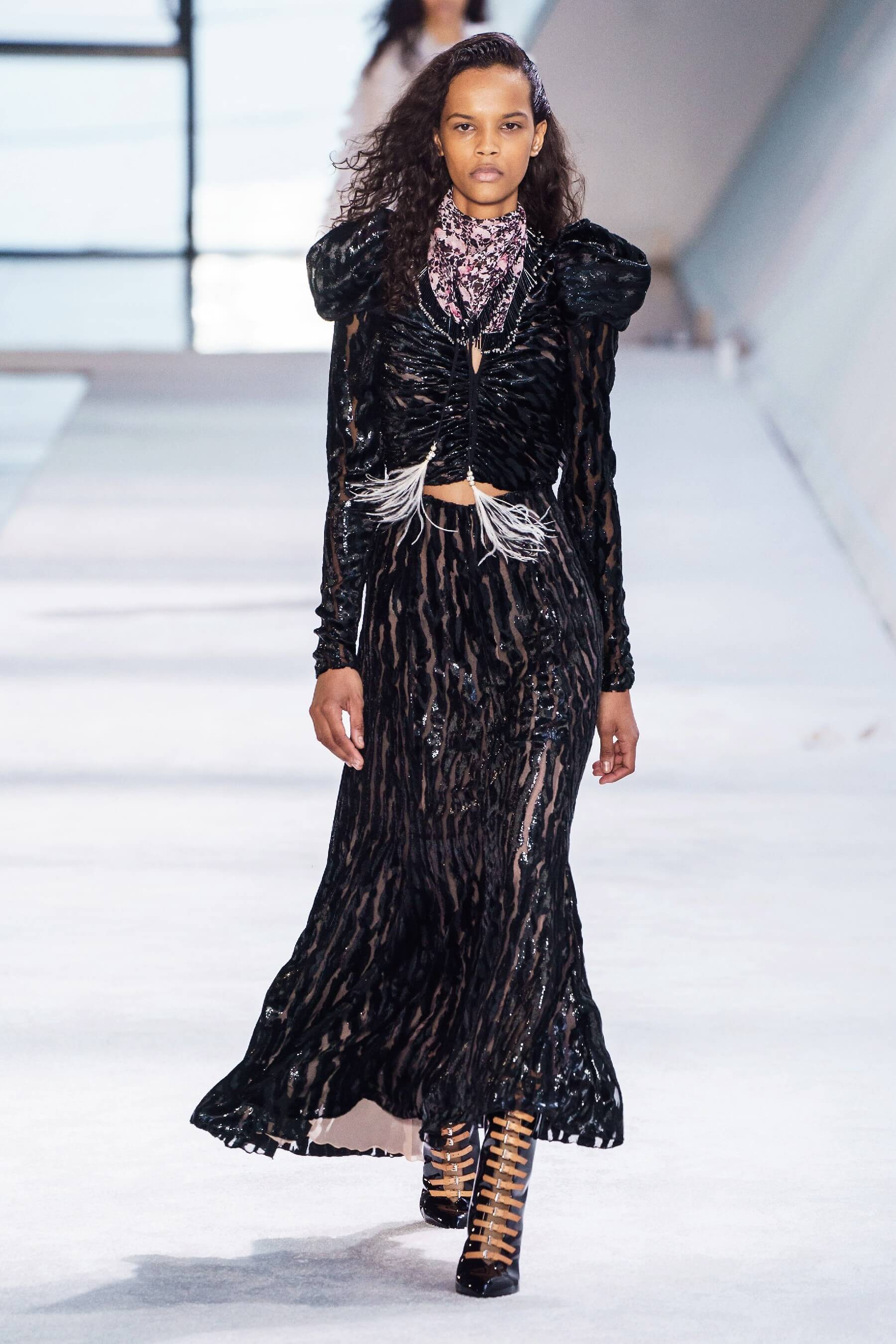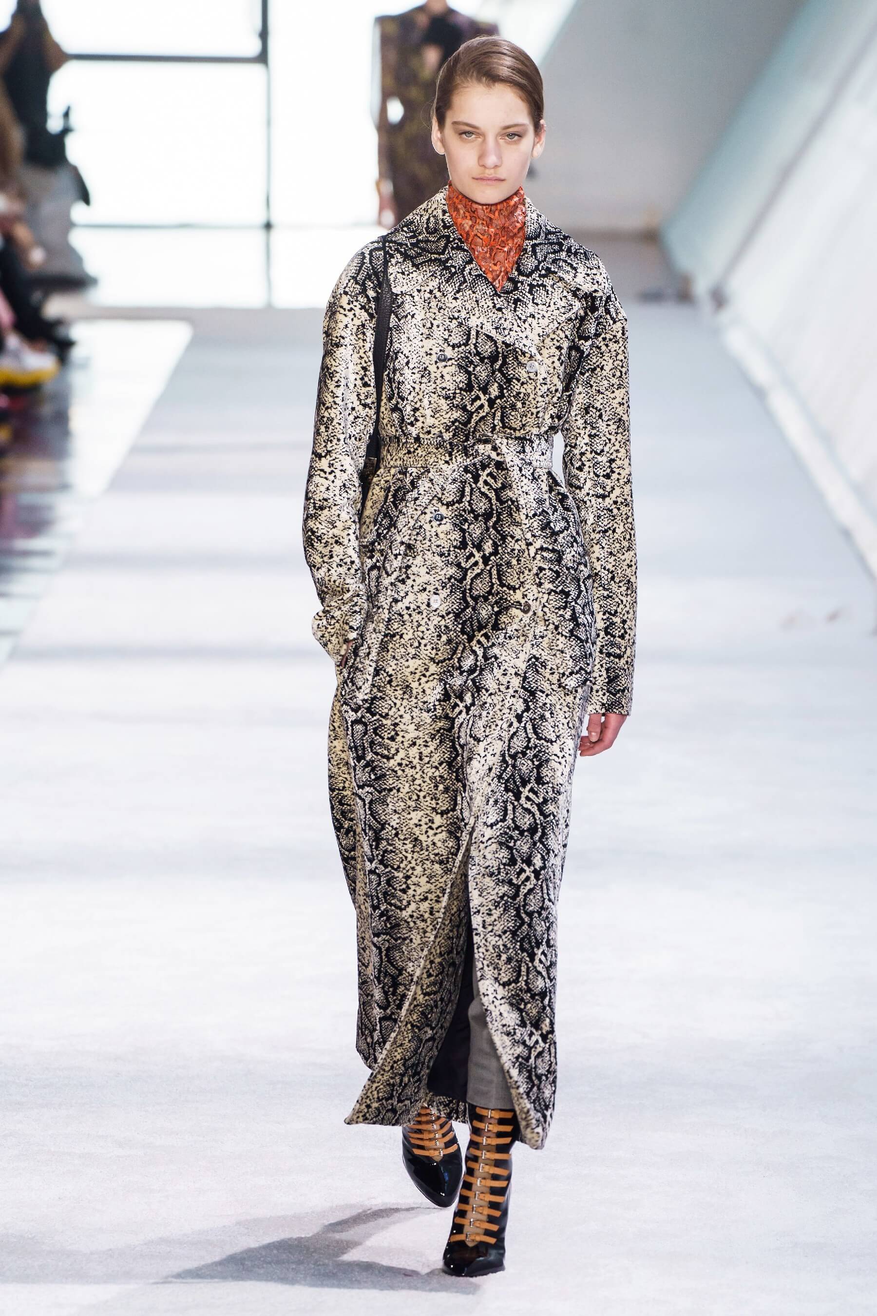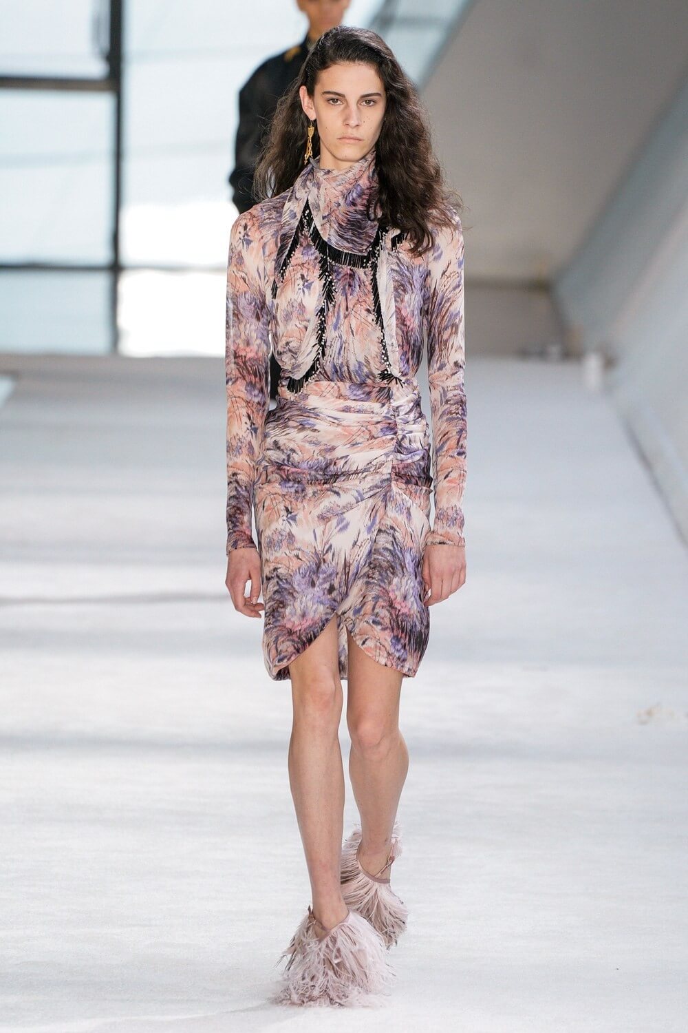 Будущей осенью, какой бы ветер ни дул, дизайнер предлагает носить богемные наряды из тончайших слоёв шелка и тюля, расцвеченных то мириадами мелких цветов, то фрагментами экспрессионистских картин вроде "Сада в Живерни" Клода Моне. Рукава в коллекции приподняты и объёмны, как в нарядах конца 19 — начала 20 века, на блузах расположилась вышивка, а дополняют всё кожаные косухи, пальто в змеиный принт и лаковые блестящие брюки.
