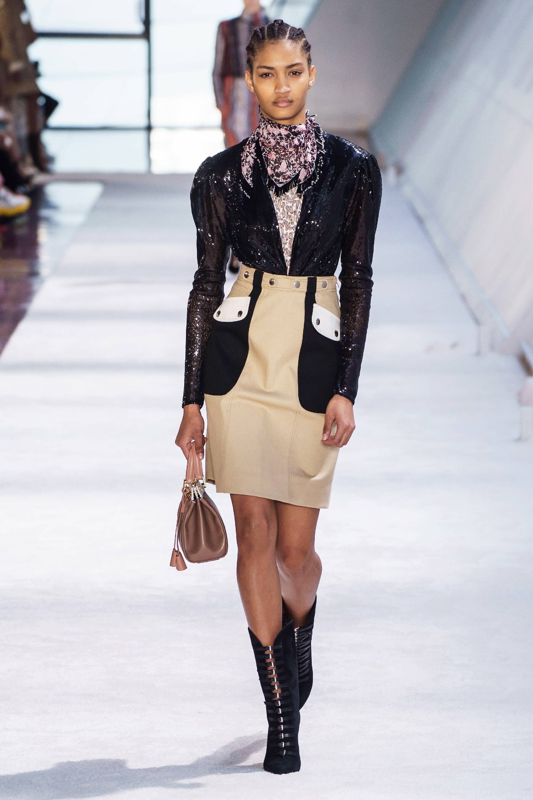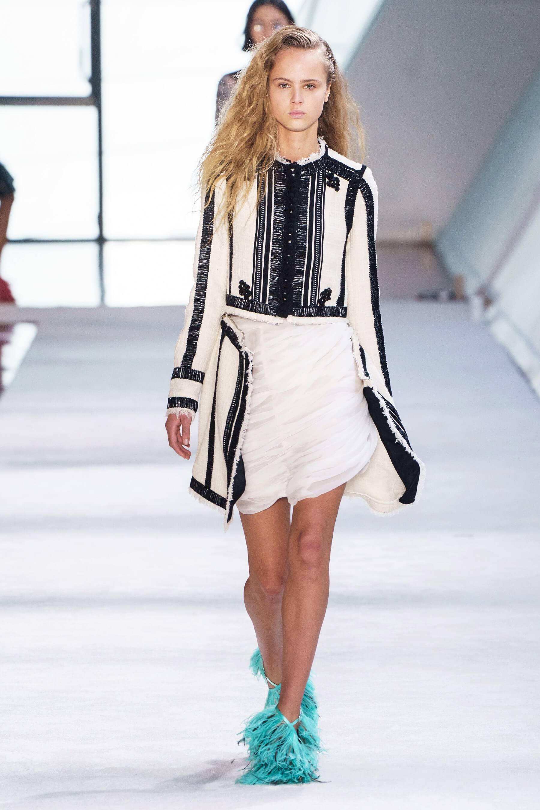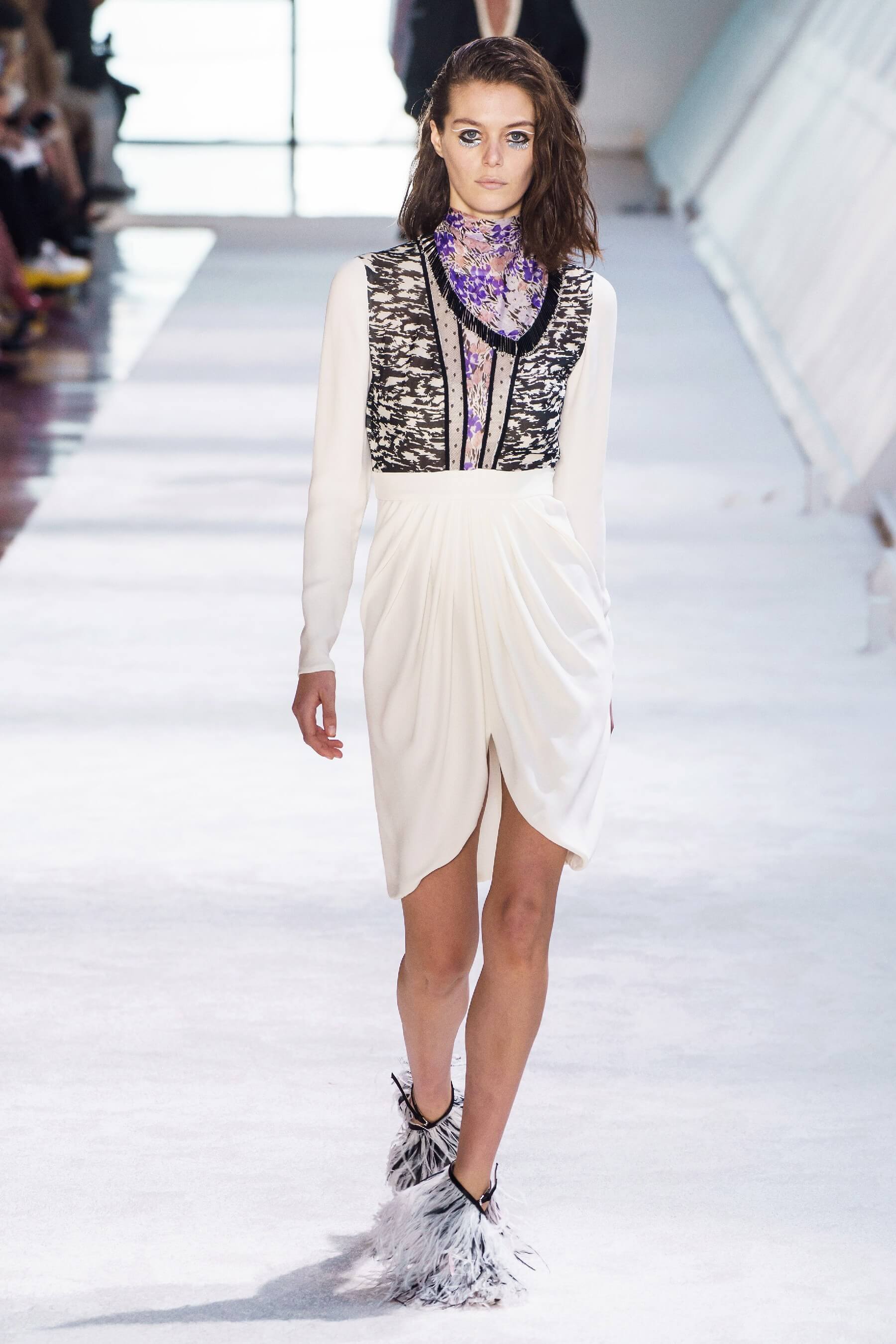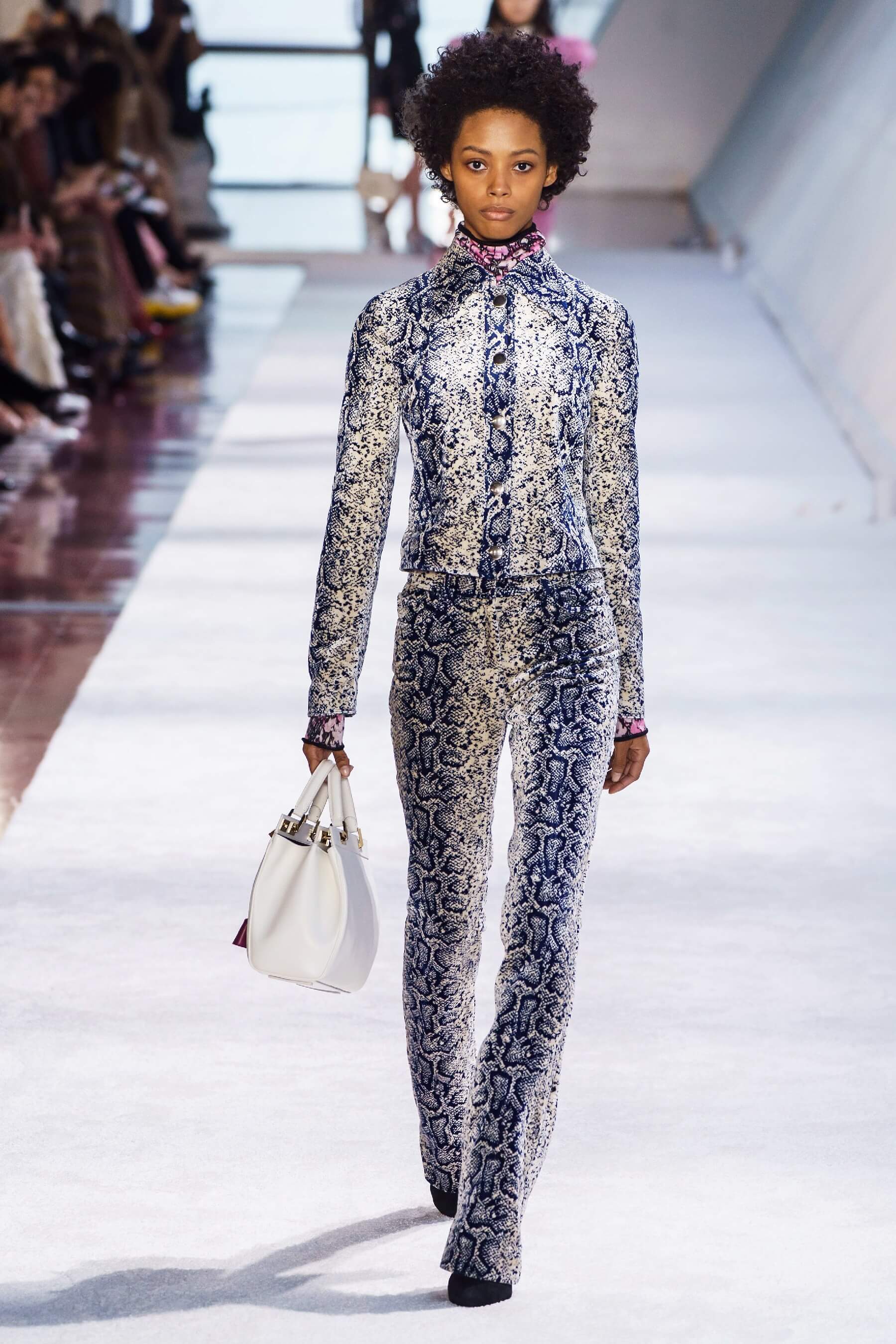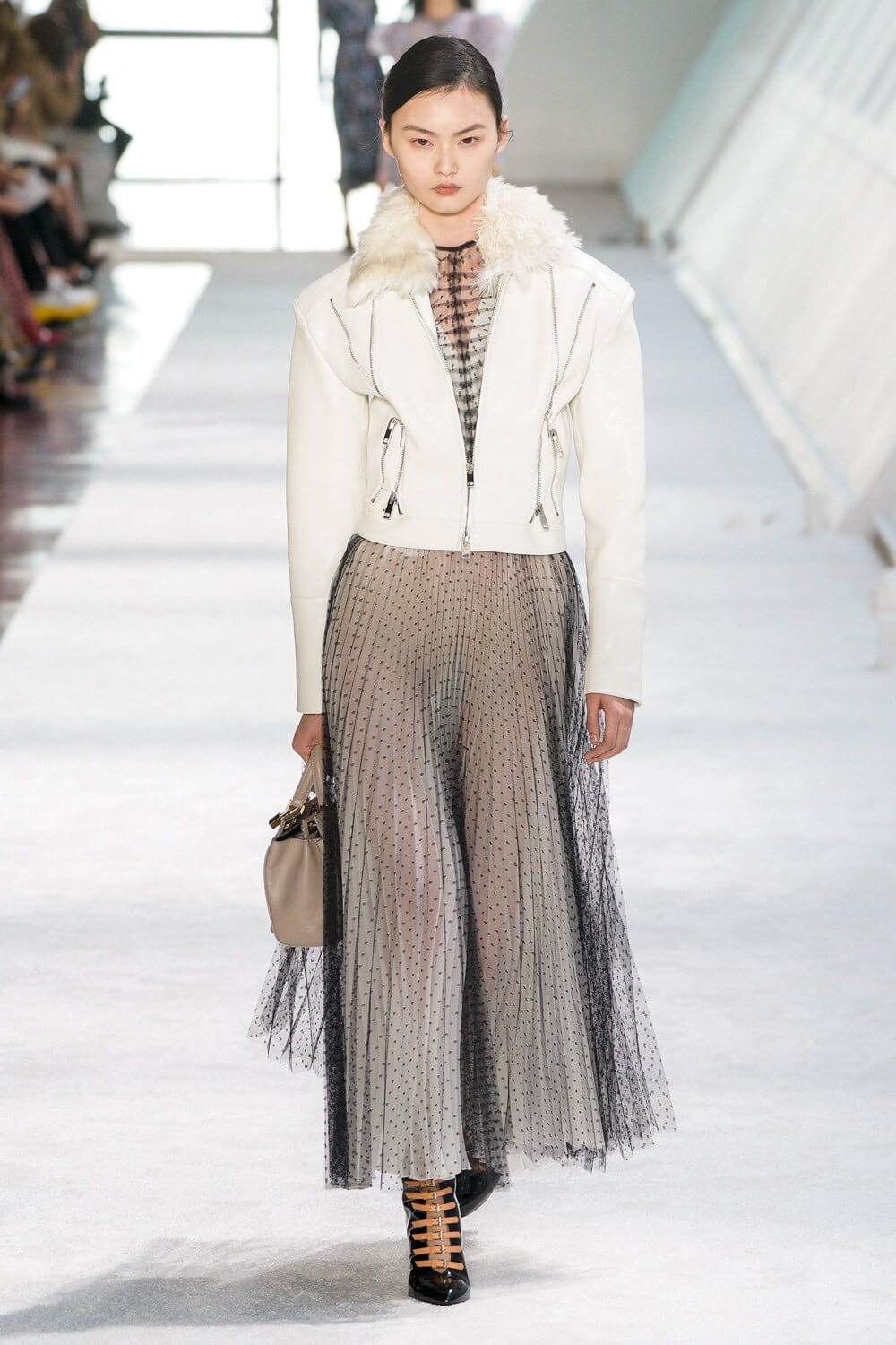 Будущей осенью, какой бы ветер ни дул, дизайнер предлагает носить богемные наряды из тончайших слоёв шелка и тюля, расцвеченных то мириадами мелких цветов, то фрагментами экспрессионистских картин вроде "Сада в Живерни" Клода Моне. Рукава в коллекции приподняты и объёмны, как в нарядах конца 19 — начала 20 века, на блузах расположилась вышивка, а дополняют всё кожаные косухи, пальто в змеиный принт и лаковые блестящие брюки.
