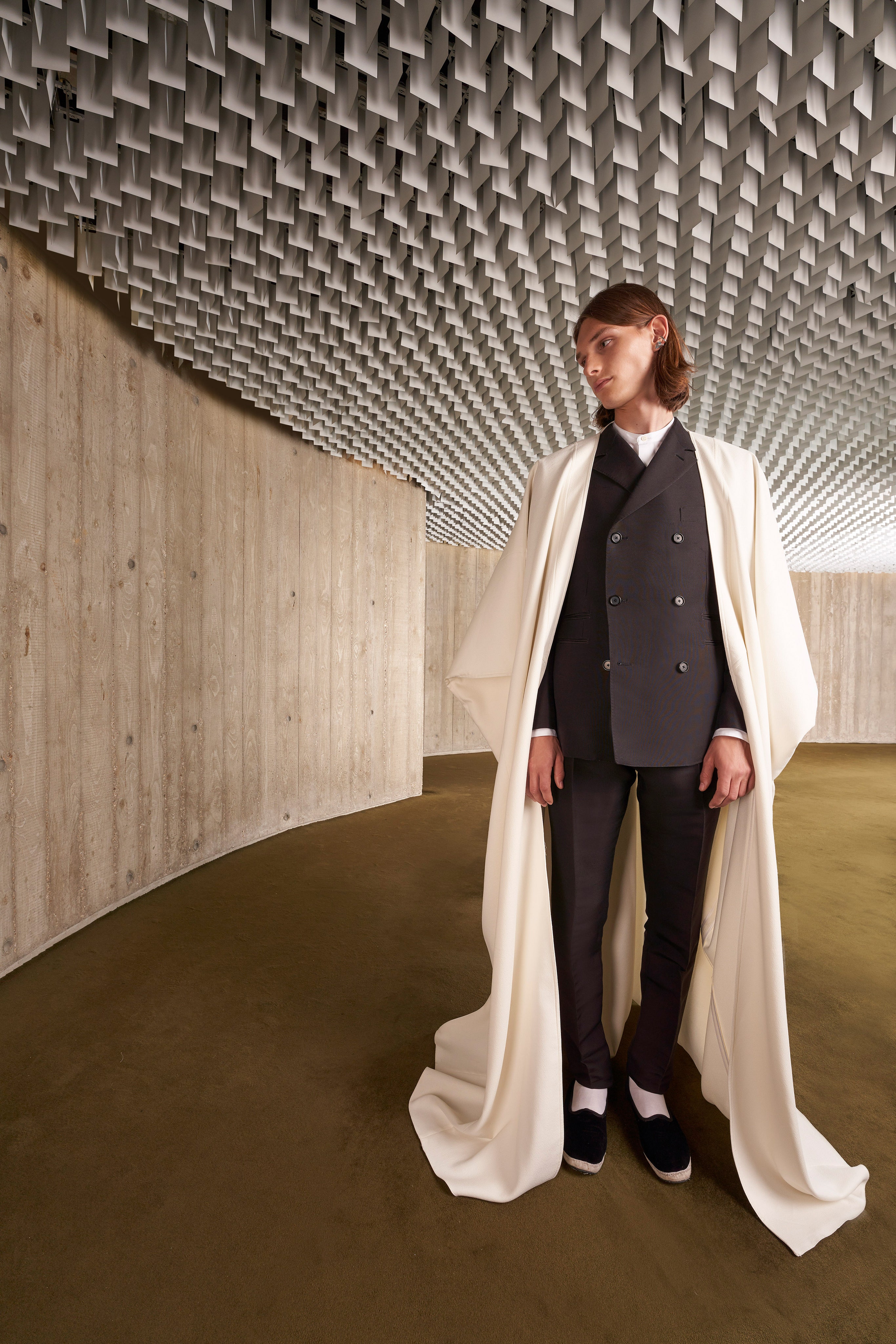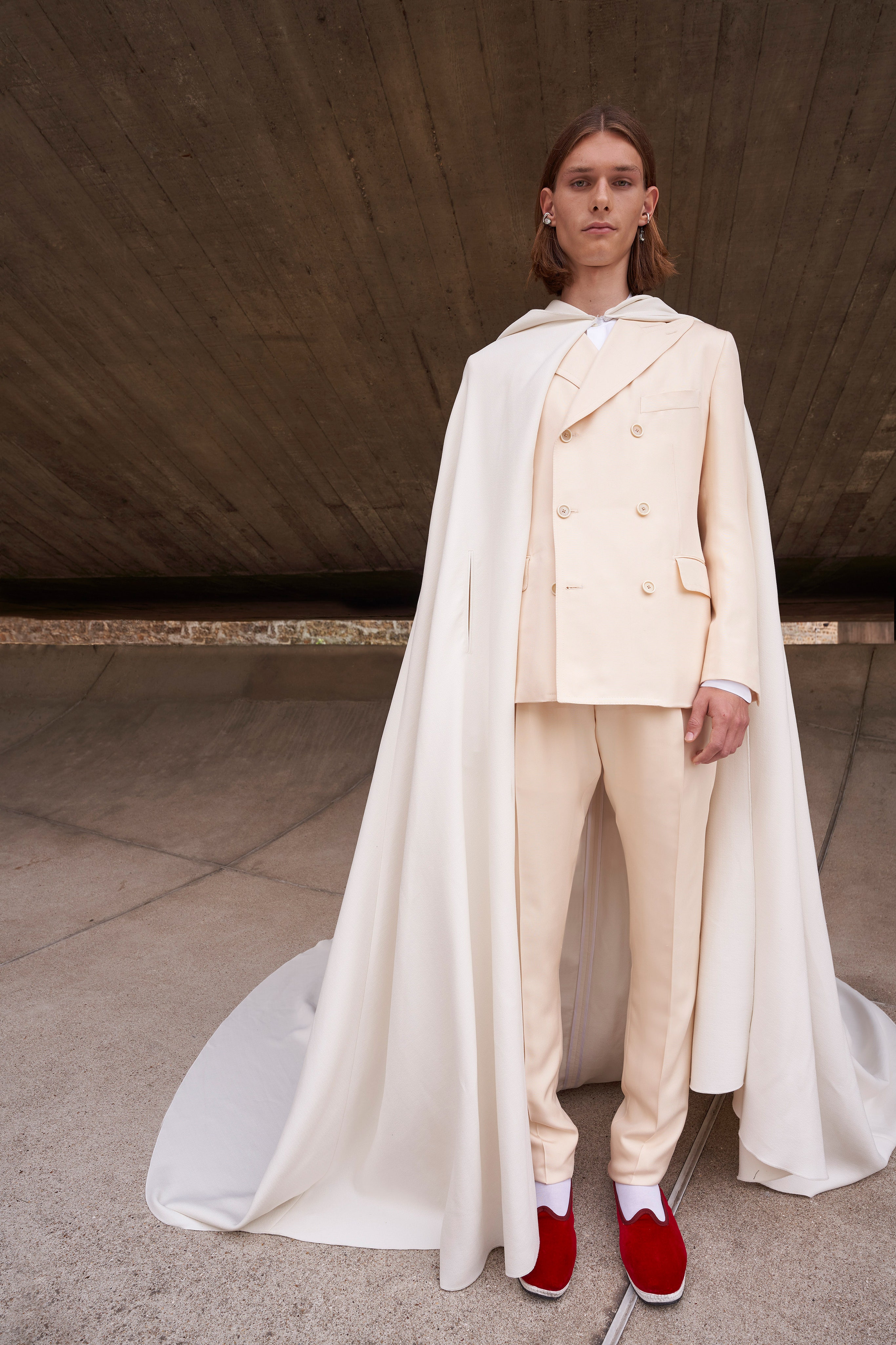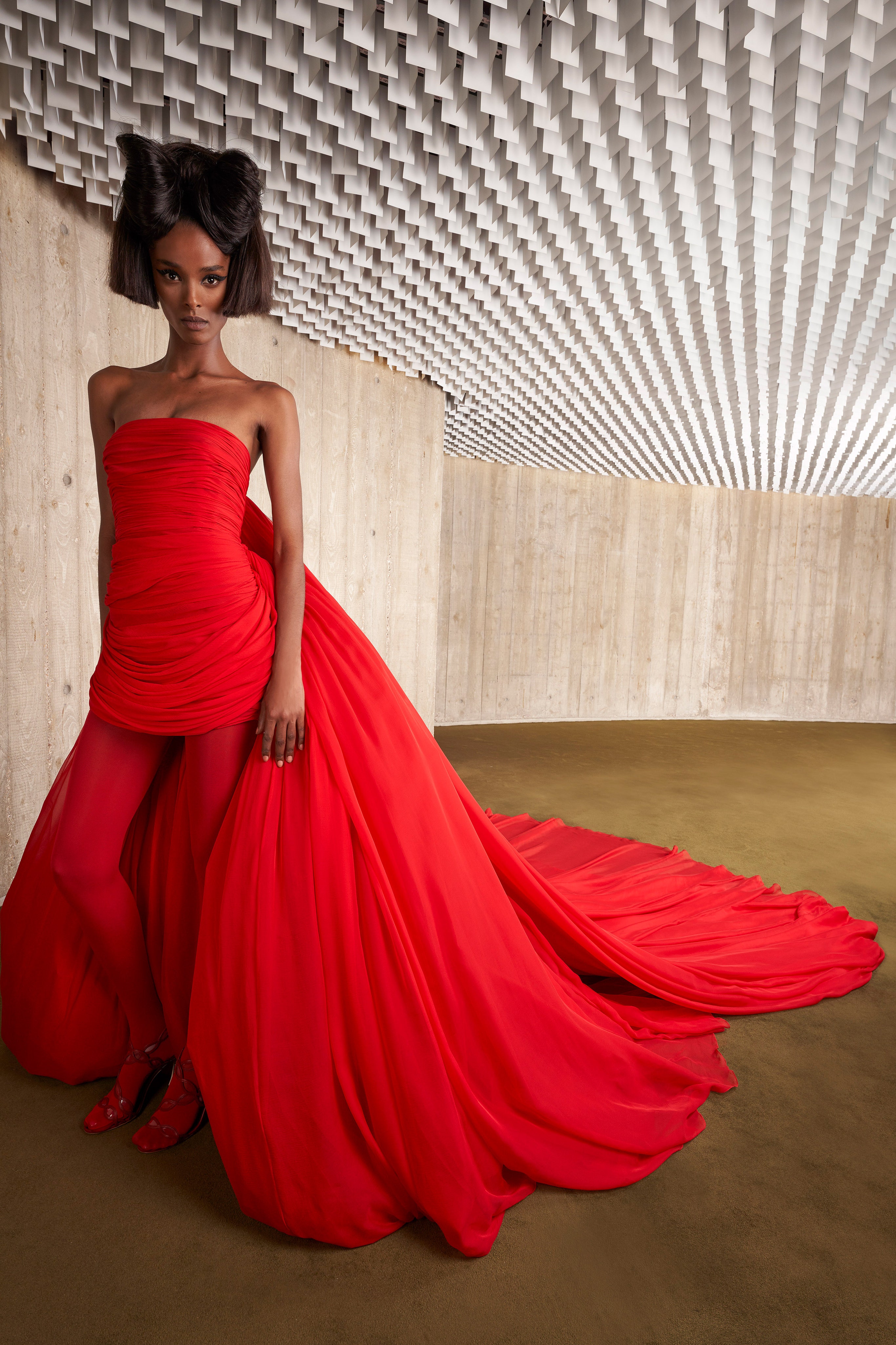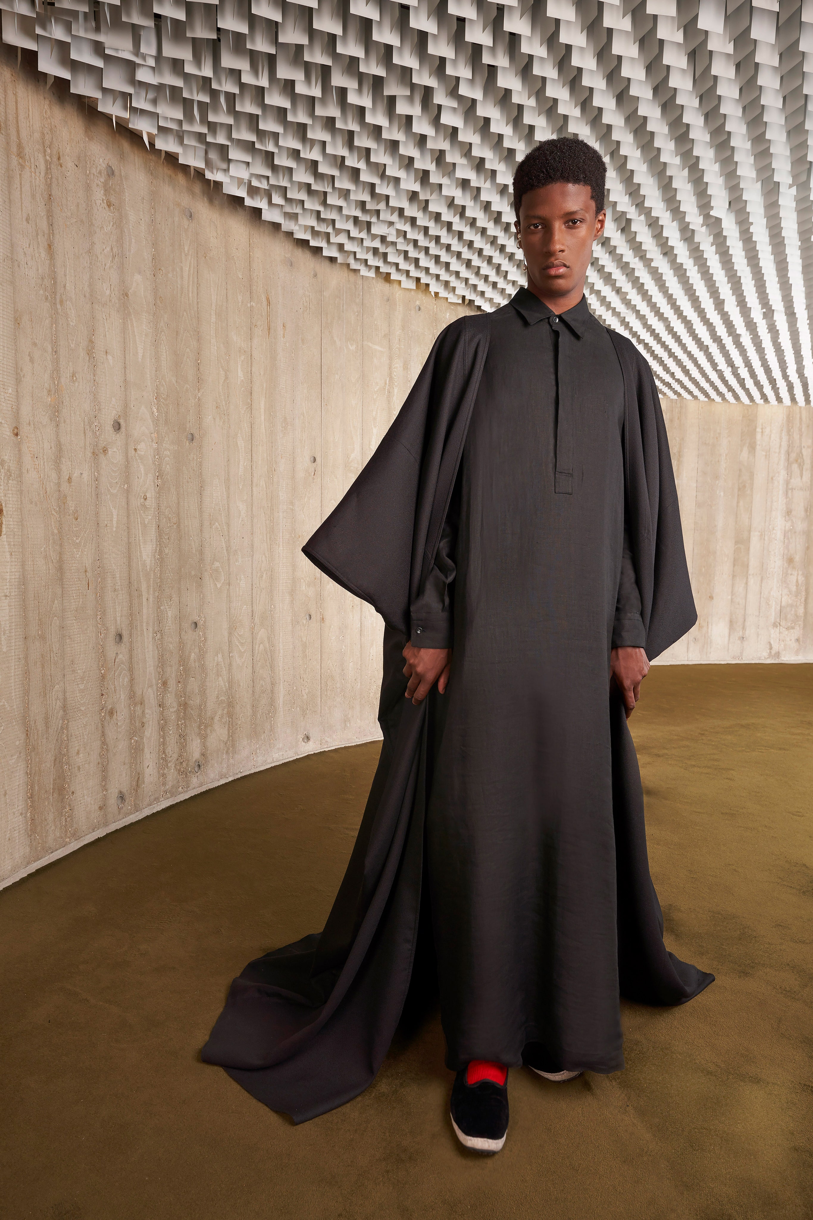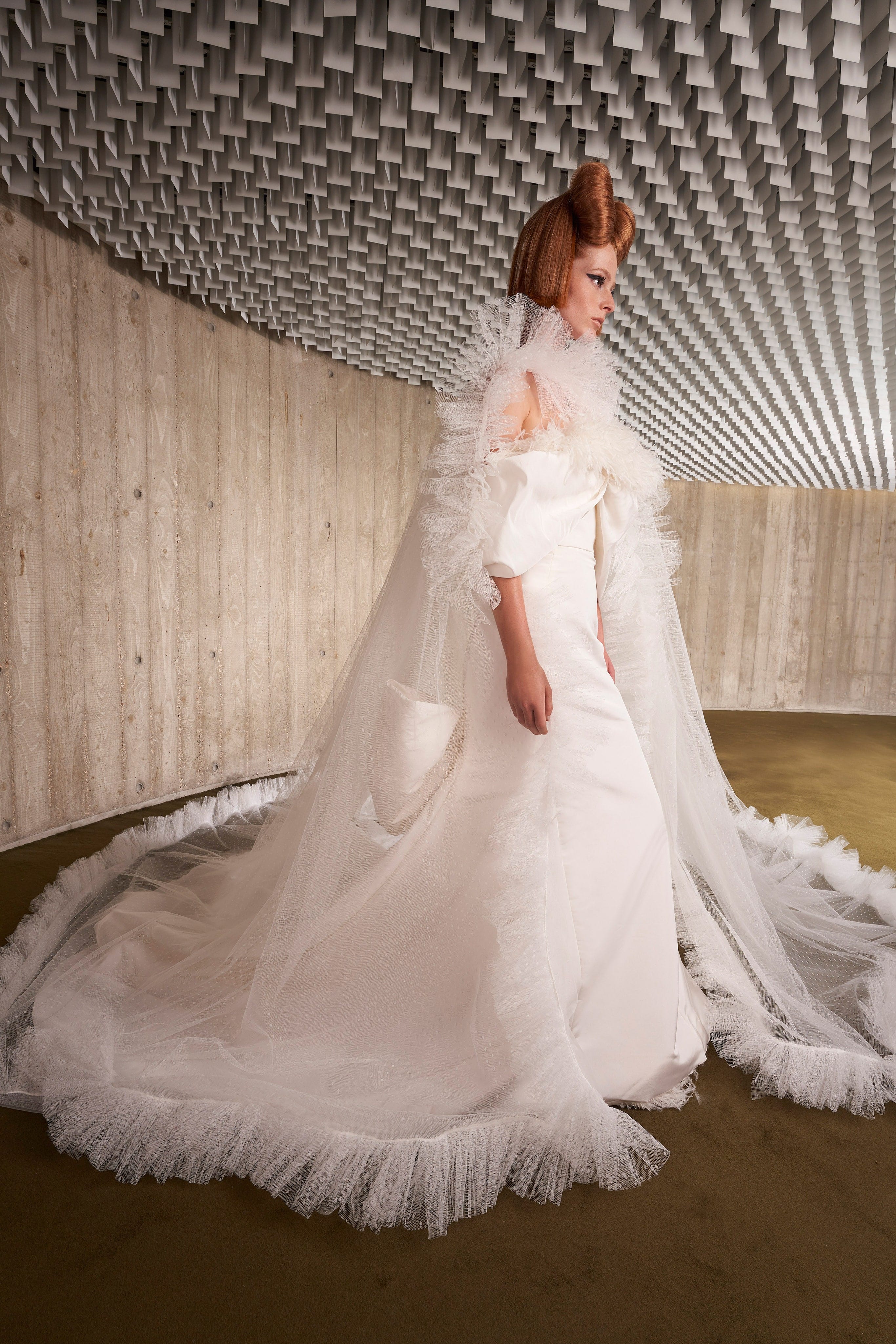 В подтверждение ностальгического и вместе с тем фантазийного настроя Валли, образы моделей отсылают к эксцентричной моде конца 60-х — начала 70-х, когда блеск и гламур ночных клубов были в самом расцвете. Объемные укладки в виде бантов и рогов очевидно повторяли пышность платьев, неизменно сотканных из облаков тюля. В коллекции также чувствуется мотив непредсказуемости и той дурманящей легкости, почти граничащей со сладкой меланхолией, о которой размечтался дизайнер: это и небрежно драпированные платья, и мужские костюмы, прикрытые накидками, в лучших традициях моды в духе Джорджа Браммела, и мужской образ с просторными формальными брюками и рубашкой из перьев.