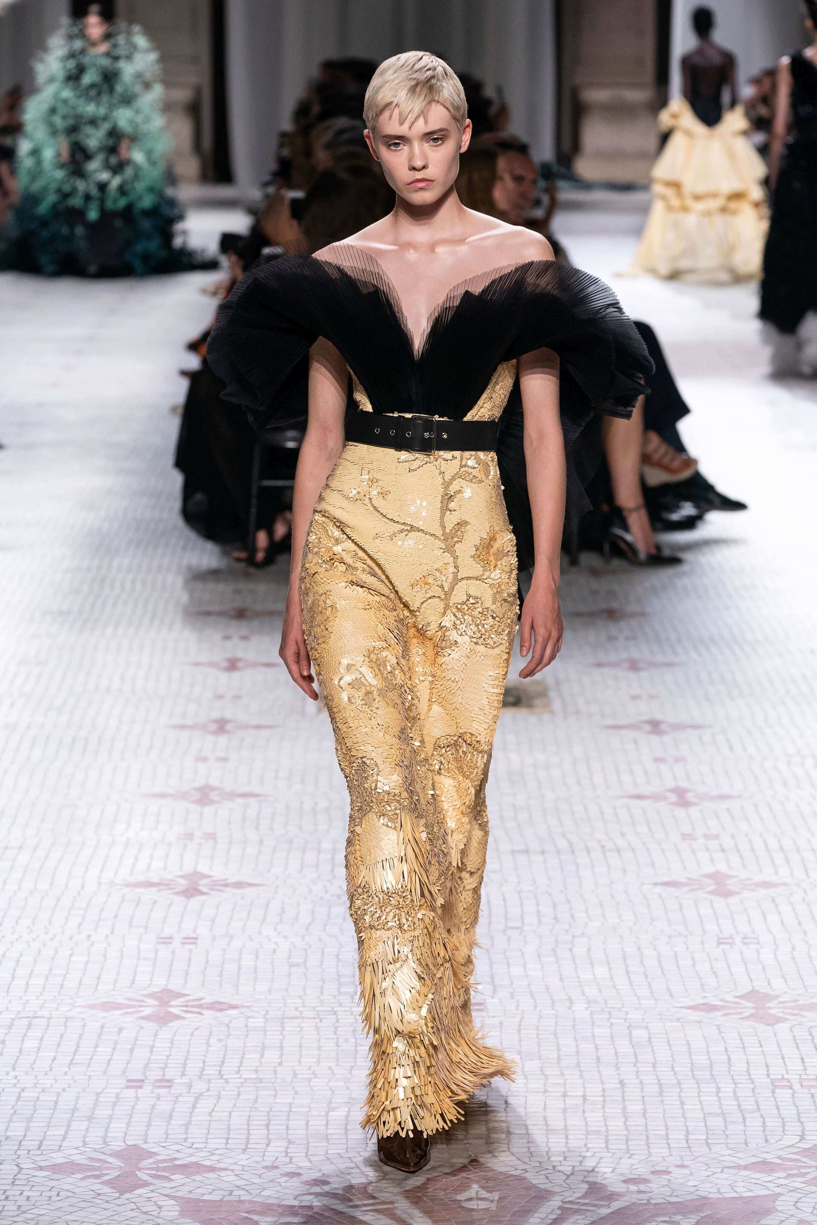 Осенне-зимнюю кутюрную коллекцию Клэр Уэйт Келлер посвятила аристократическому бунтарству. Обозначив дух шоу фразой Noblesse Radicale (в пер. — "радикальная знать"), дизайнер воплотила в нём идею об анархической роскоши, которая выражается в контрастных фактурах и гамме коллекции. Элегантные костюмы и платья в клетку, будто изрезанные в лохмотья, смотрятся утонченно и смело, вечерние наряды нежно-розового оттенка дополняют революционно-черные кейпы и пышные юбки, а в одном из платьев кринолин крепился почти у самых ног модели.