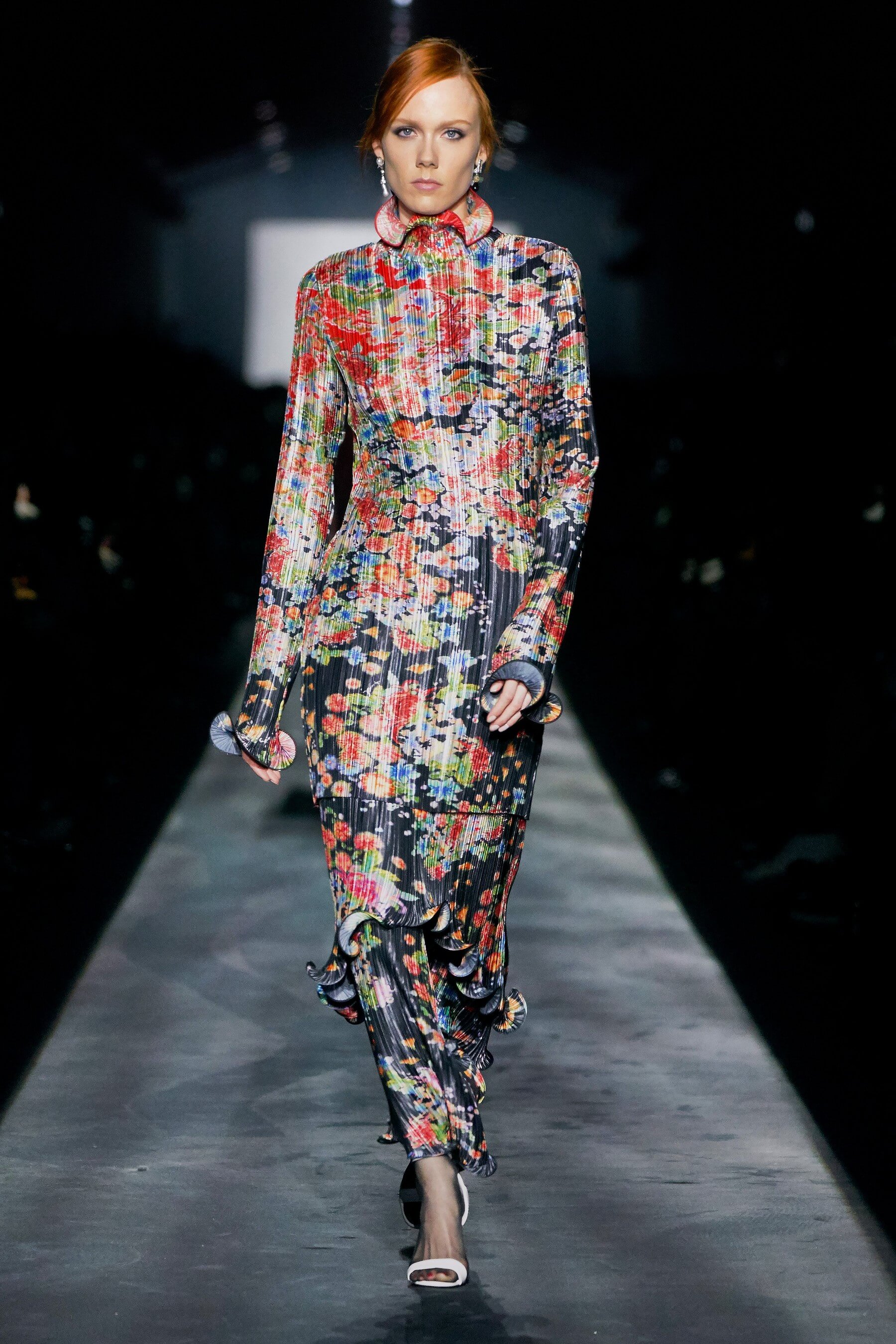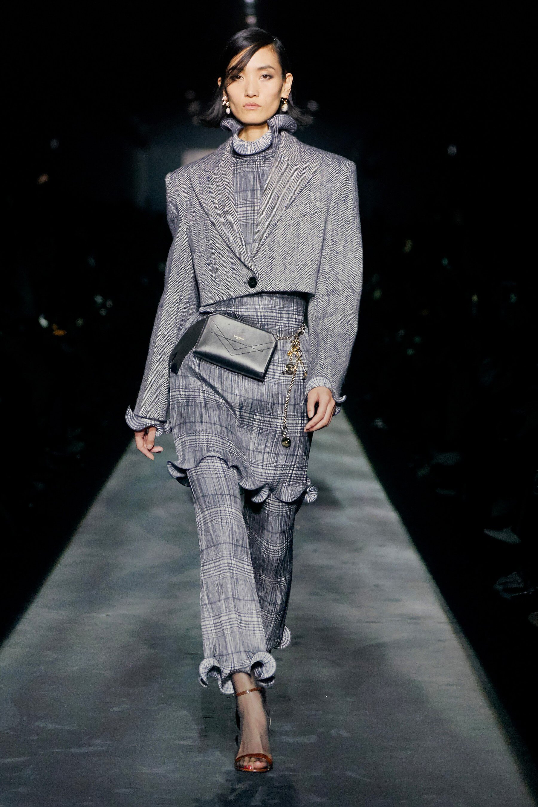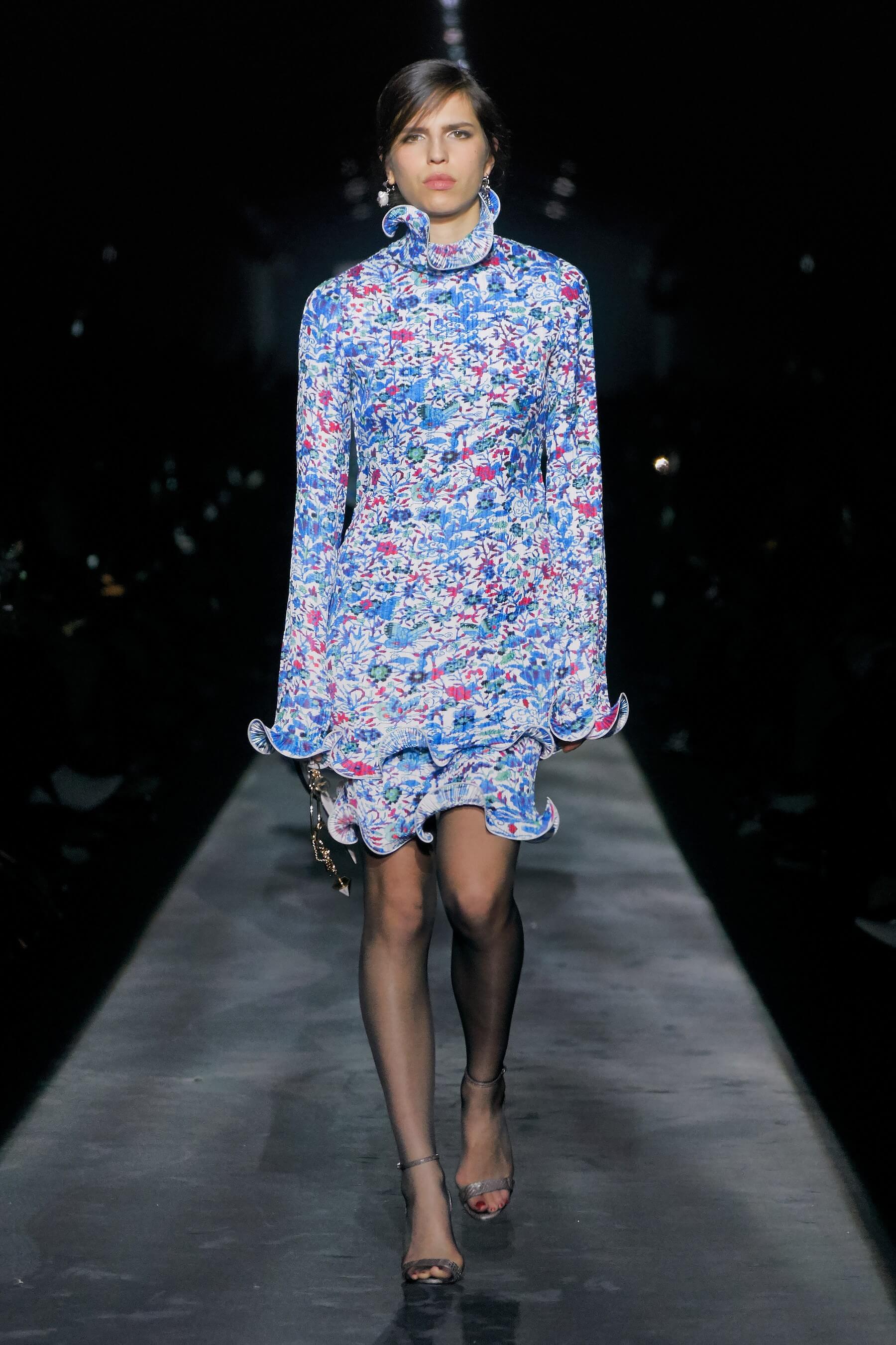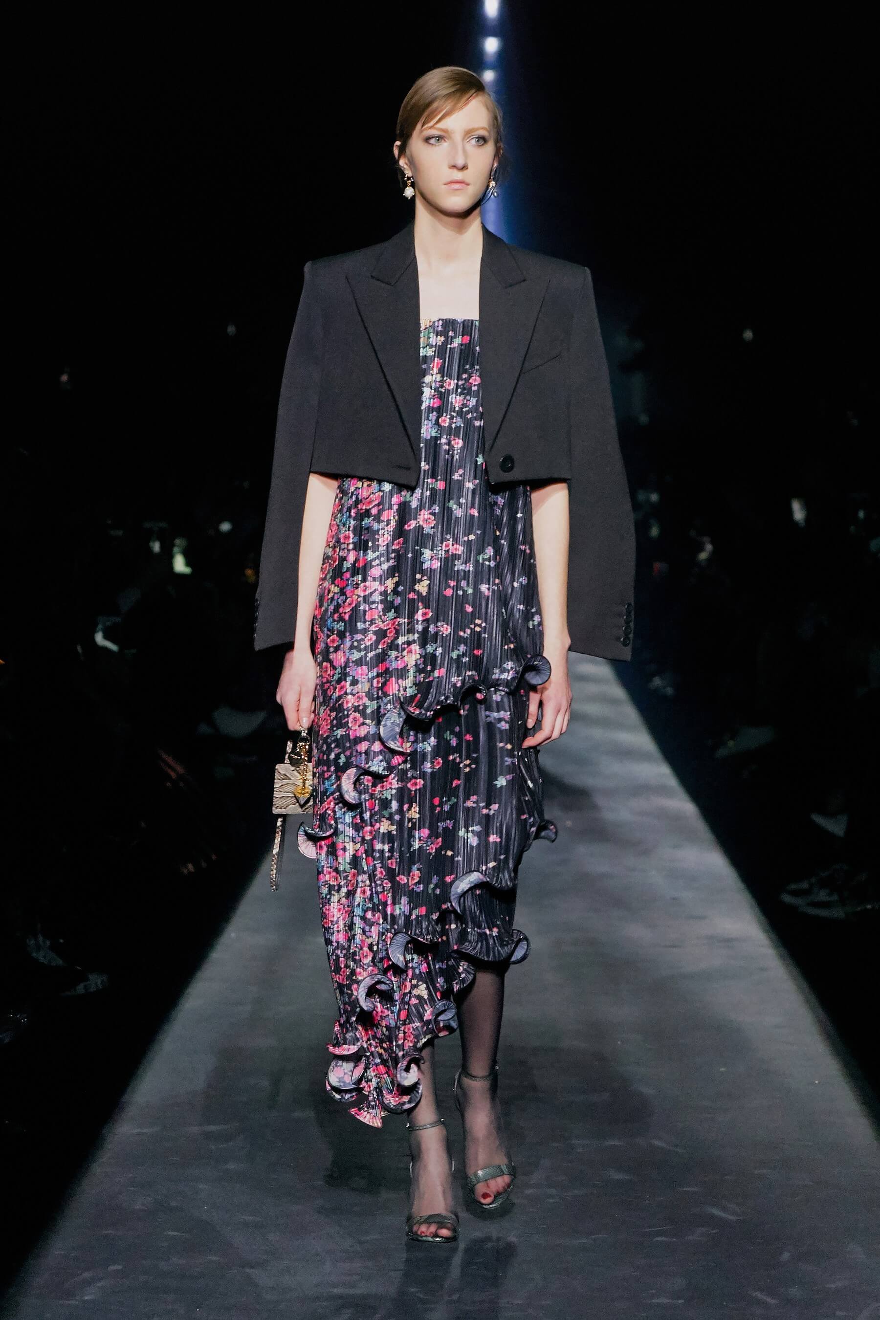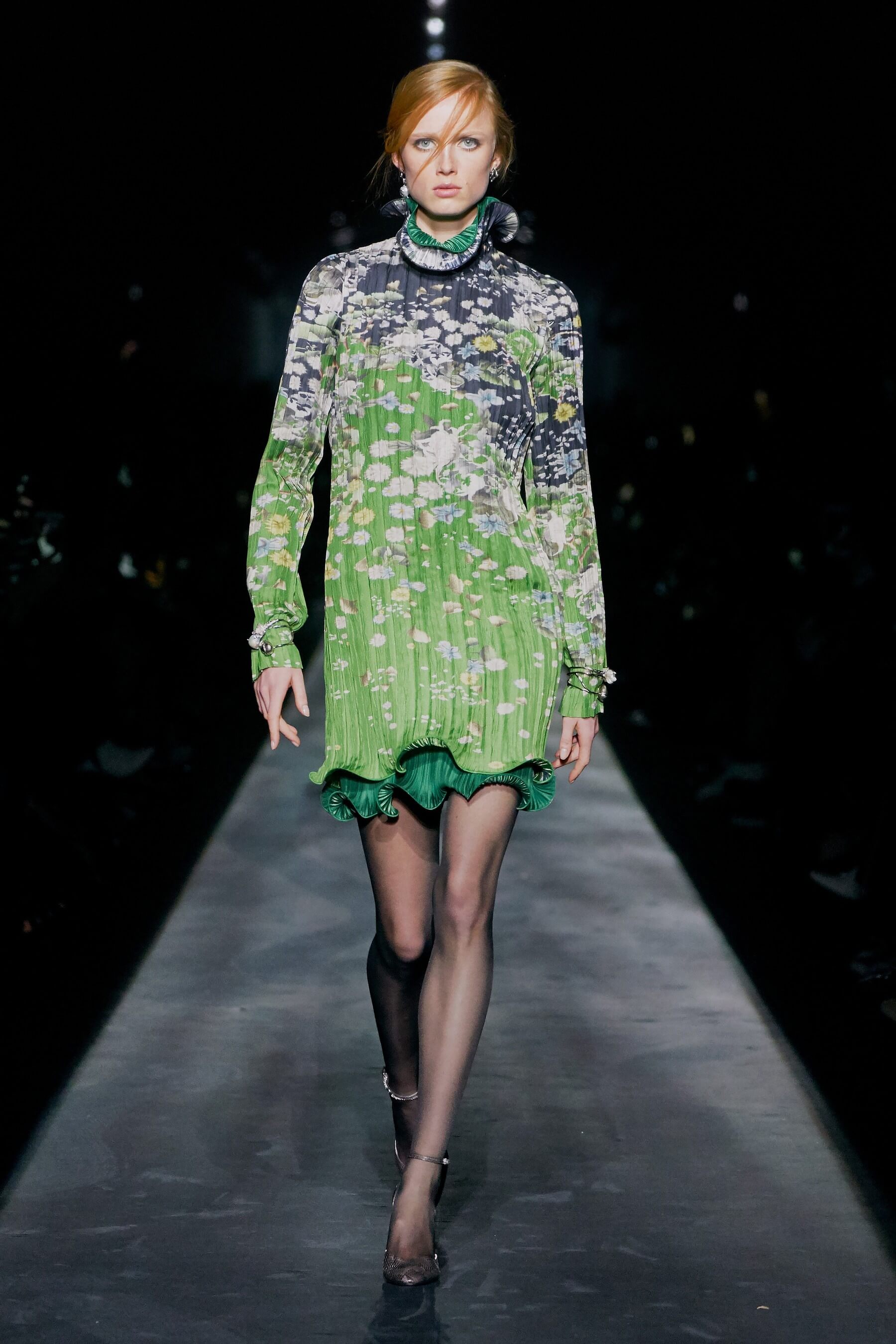 В парижском ботаническом саду прошел показ коллекции Givenchy, которую Клэр Уэйт Келлер назвала "Зима в Эдеме". Дизайнер показала гостям женственные и утонченные платья в цветах, нежные плиссированные костюмы с воротами-оборками, костюмы-двойки сочных цветов и сверхэлегантные пальто необычного кроя с большими и круглыми плечами. Под брючными костюмами в клетку виднелись цветные шелковые блузы, поверх изысканных силуэтных жакетов с юбками были надеты пуховики, а в качестве подвесов модели носили маленькие монетницы со змеиным принтом.