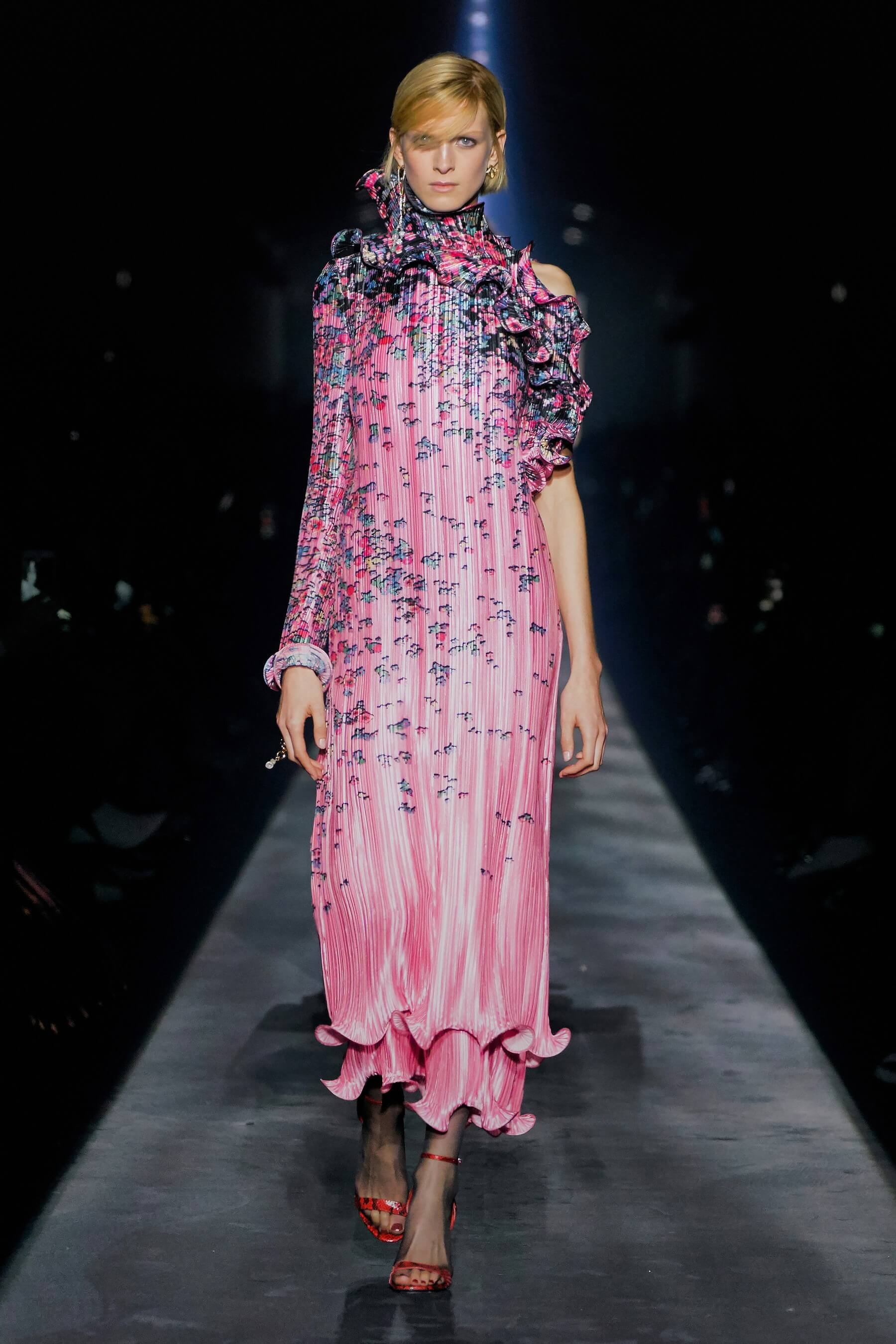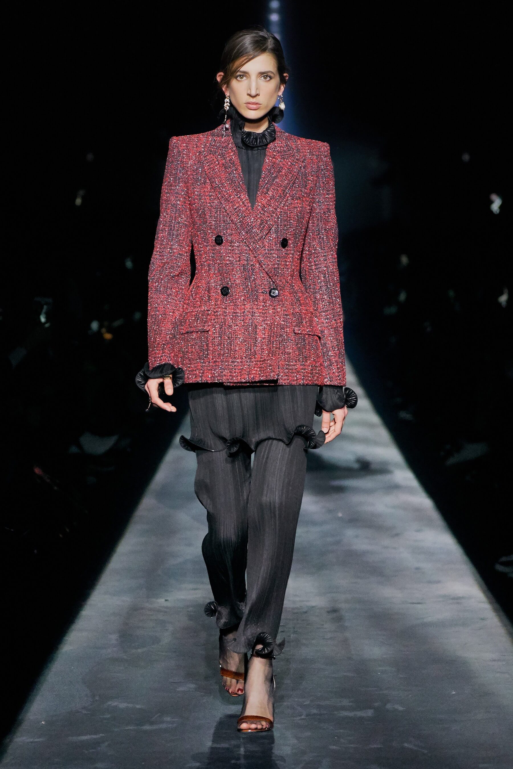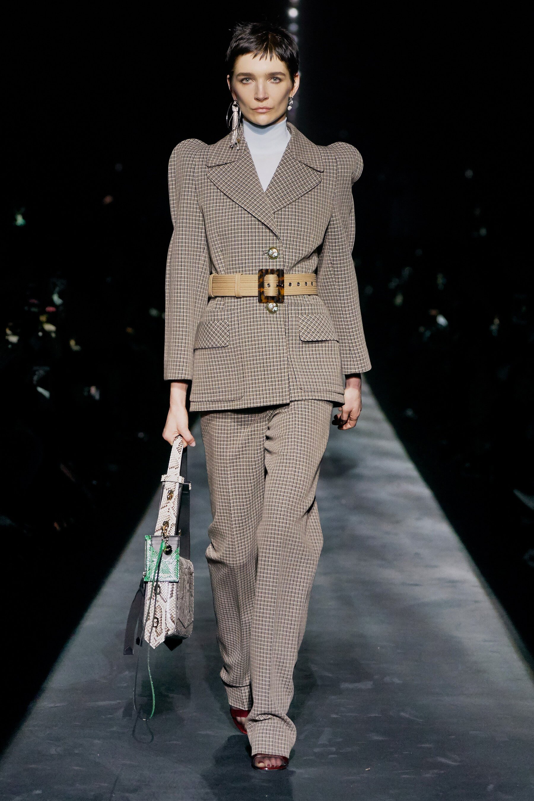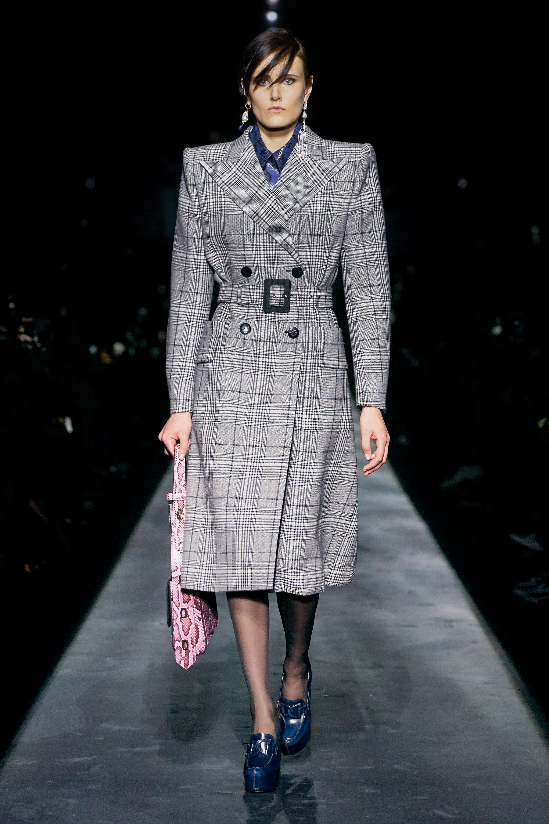 В парижском ботаническом саду прошел показ коллекции Givenchy, которую Клэр Уэйт Келлер назвала "Зима в Эдеме". Дизайнер показала гостям женственные и утонченные платья в цветах, нежные плиссированные костюмы с воротами-оборками, костюмы-двойки сочных цветов и сверхэлегантные пальто необычного кроя с большими и круглыми плечами. Под брючными костюмами в клетку виднелись цветные шелковые блузы, поверх изысканных силуэтных жакетов с юбками были надеты пуховики, а в качестве подвесов модели носили маленькие монетницы со змеиным принтом.