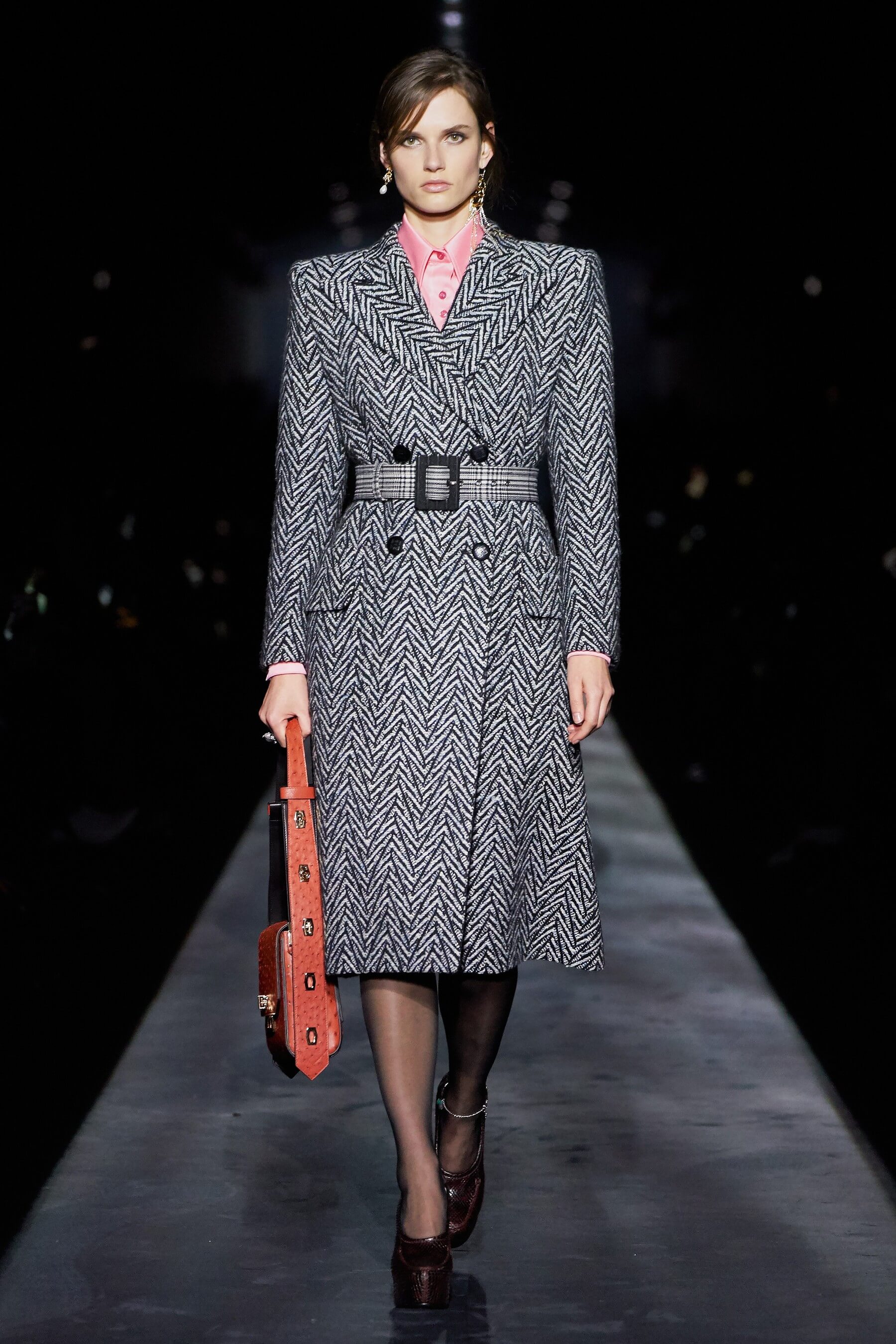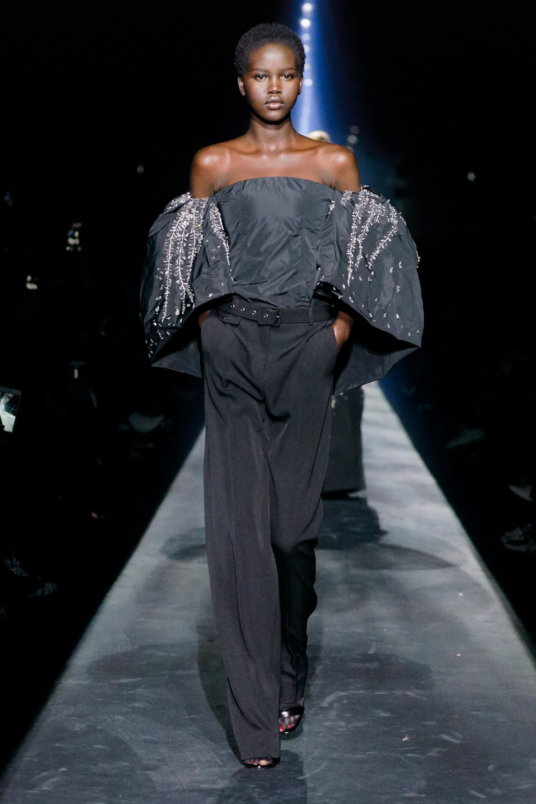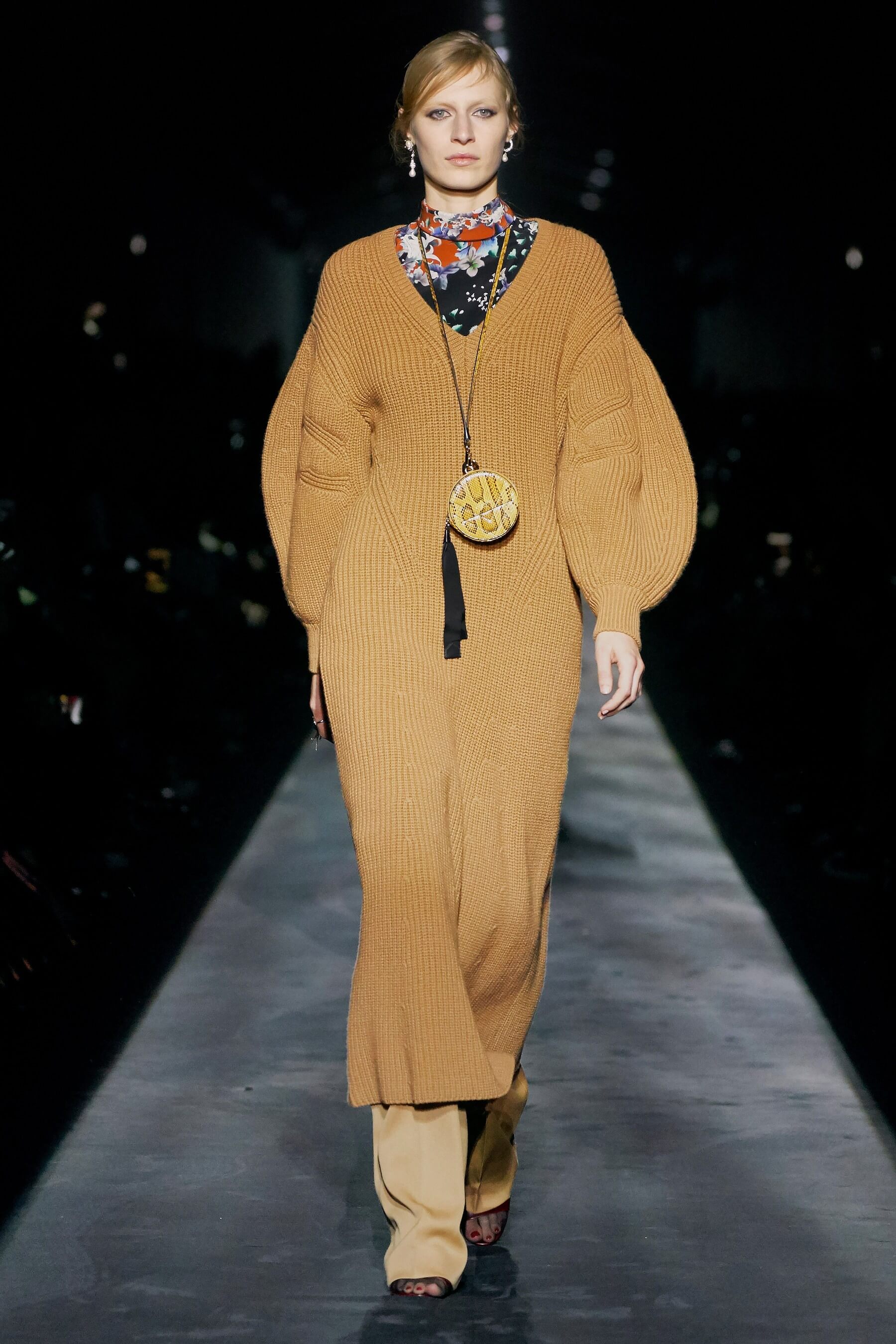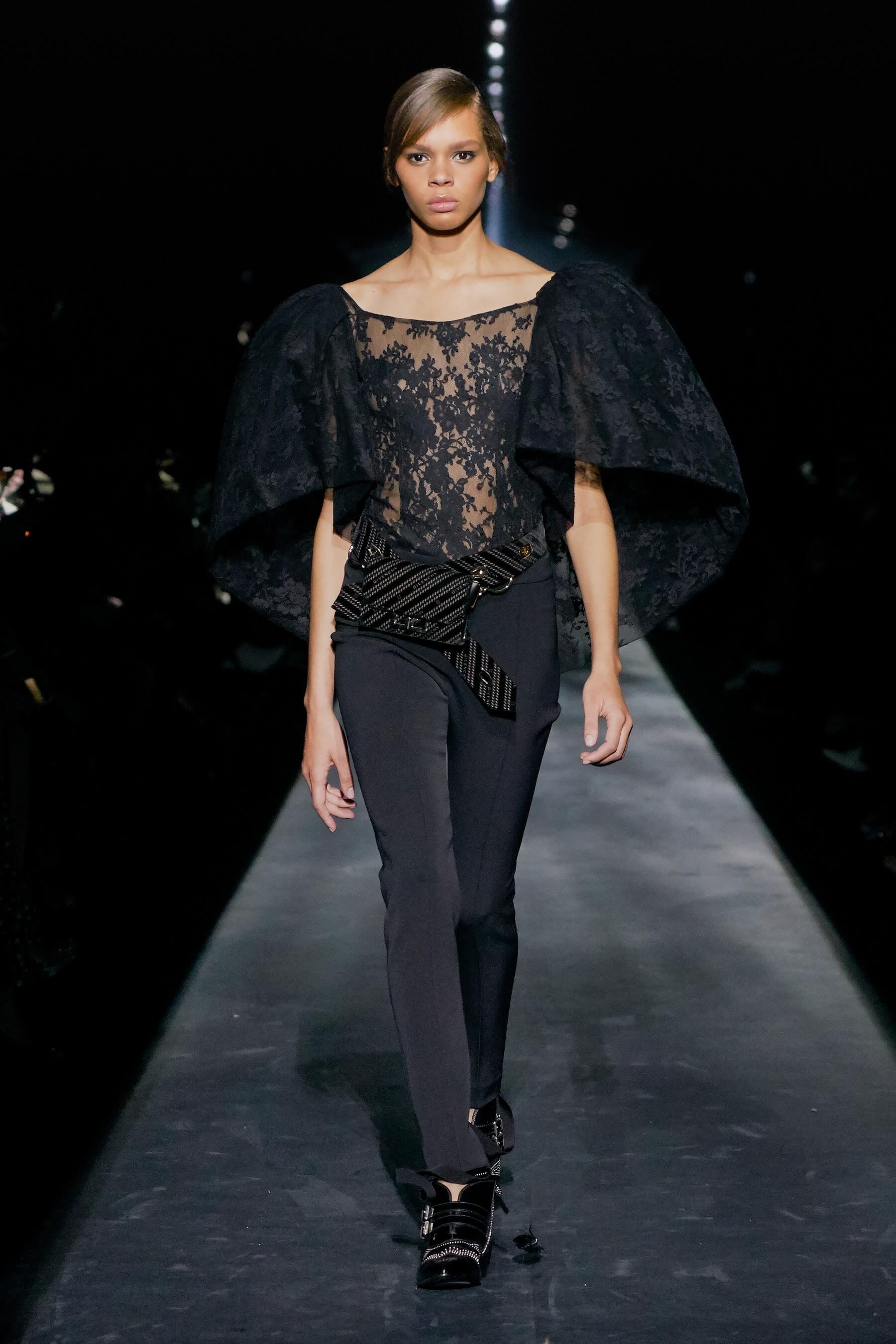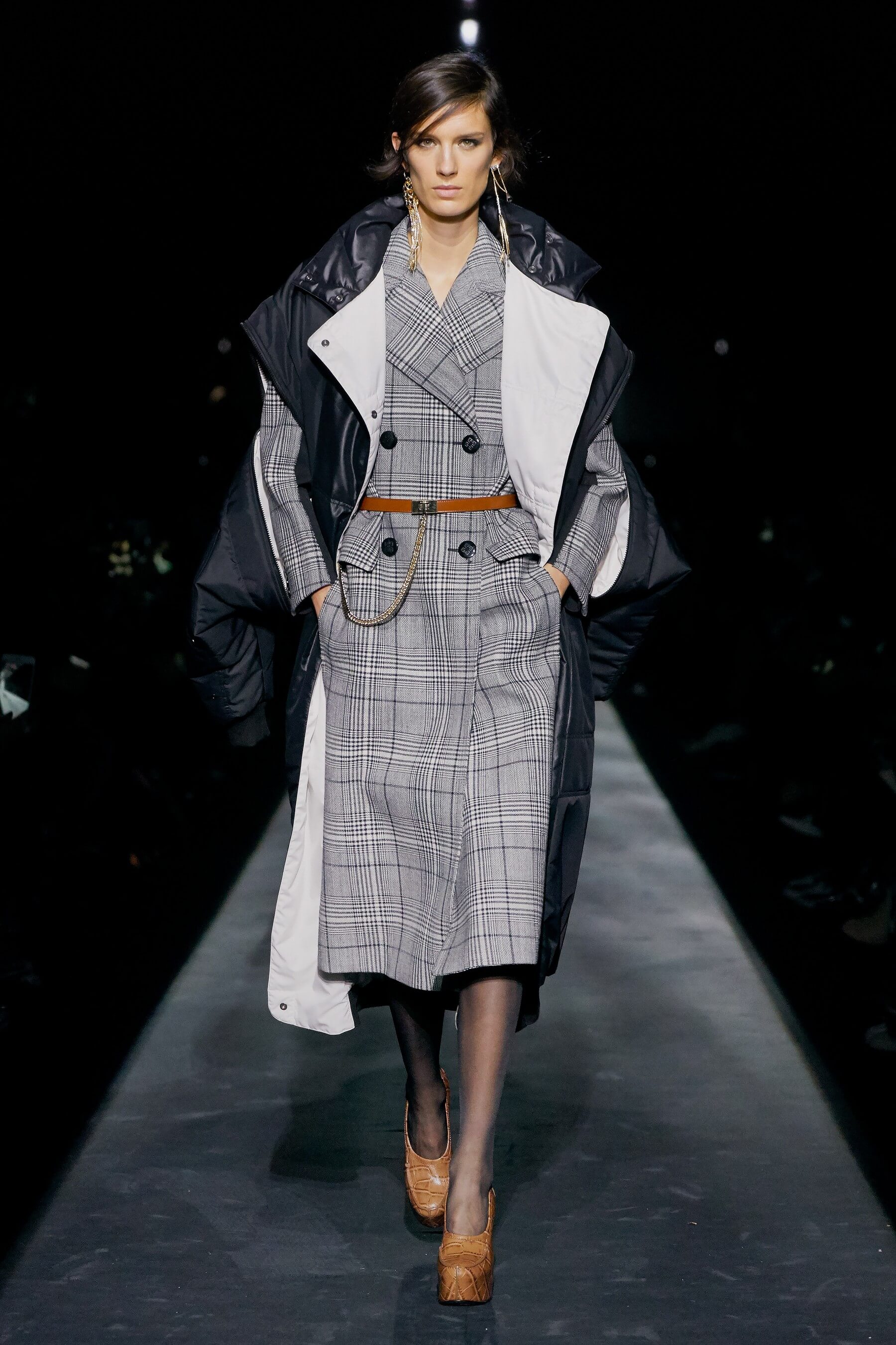 В парижском ботаническом саду прошел показ коллекции Givenchy, которую Клэр Уэйт Келлер назвала "Зима в Эдеме". Дизайнер показала гостям женственные и утонченные платья в цветах, нежные плиссированные костюмы с воротами-оборками, костюмы-двойки сочных цветов и сверхэлегантные пальто необычного кроя с большими и круглыми плечами. Под брючными костюмами в клетку виднелись цветные шелковые блузы, поверх изысканных силуэтных жакетов с юбками были надеты пуховики, а в качестве подвесов модели носили маленькие монетницы со змеиным принтом.
