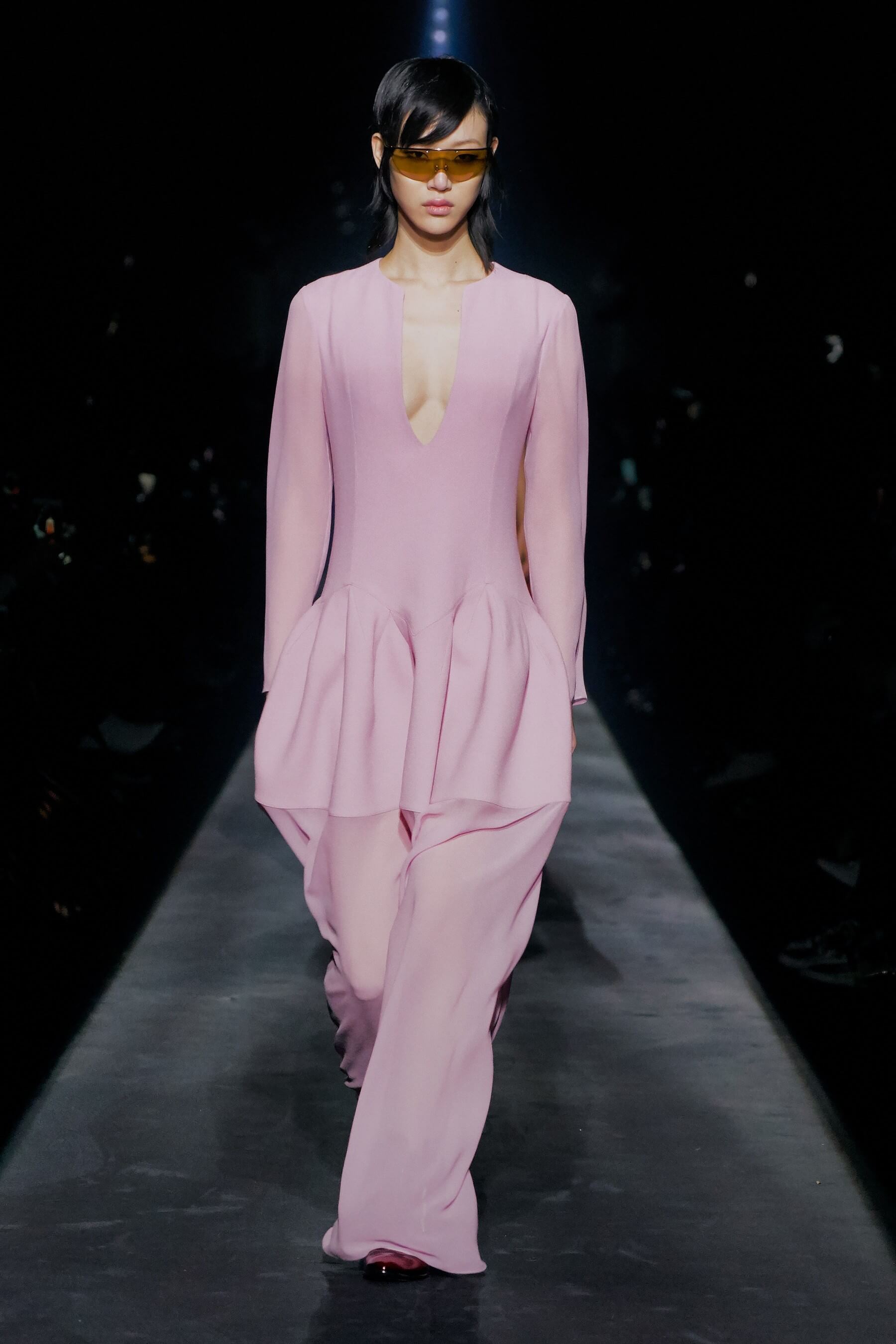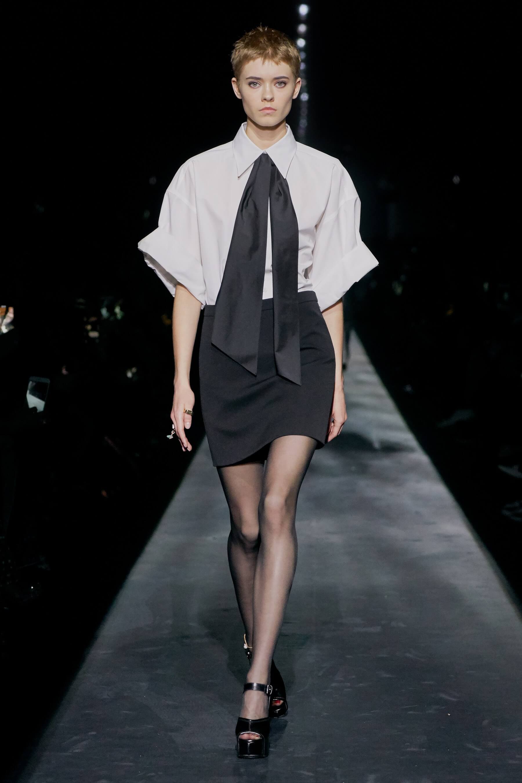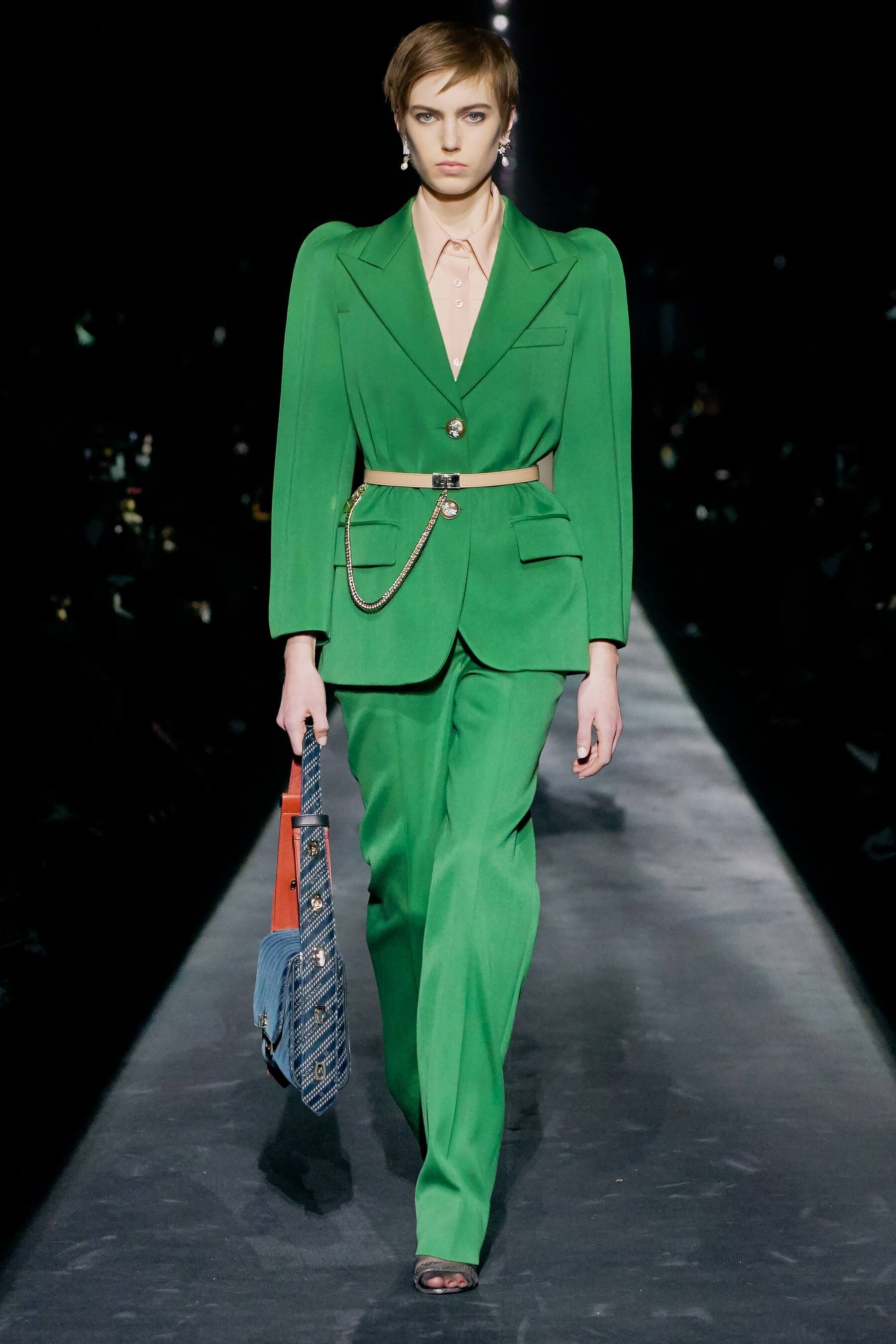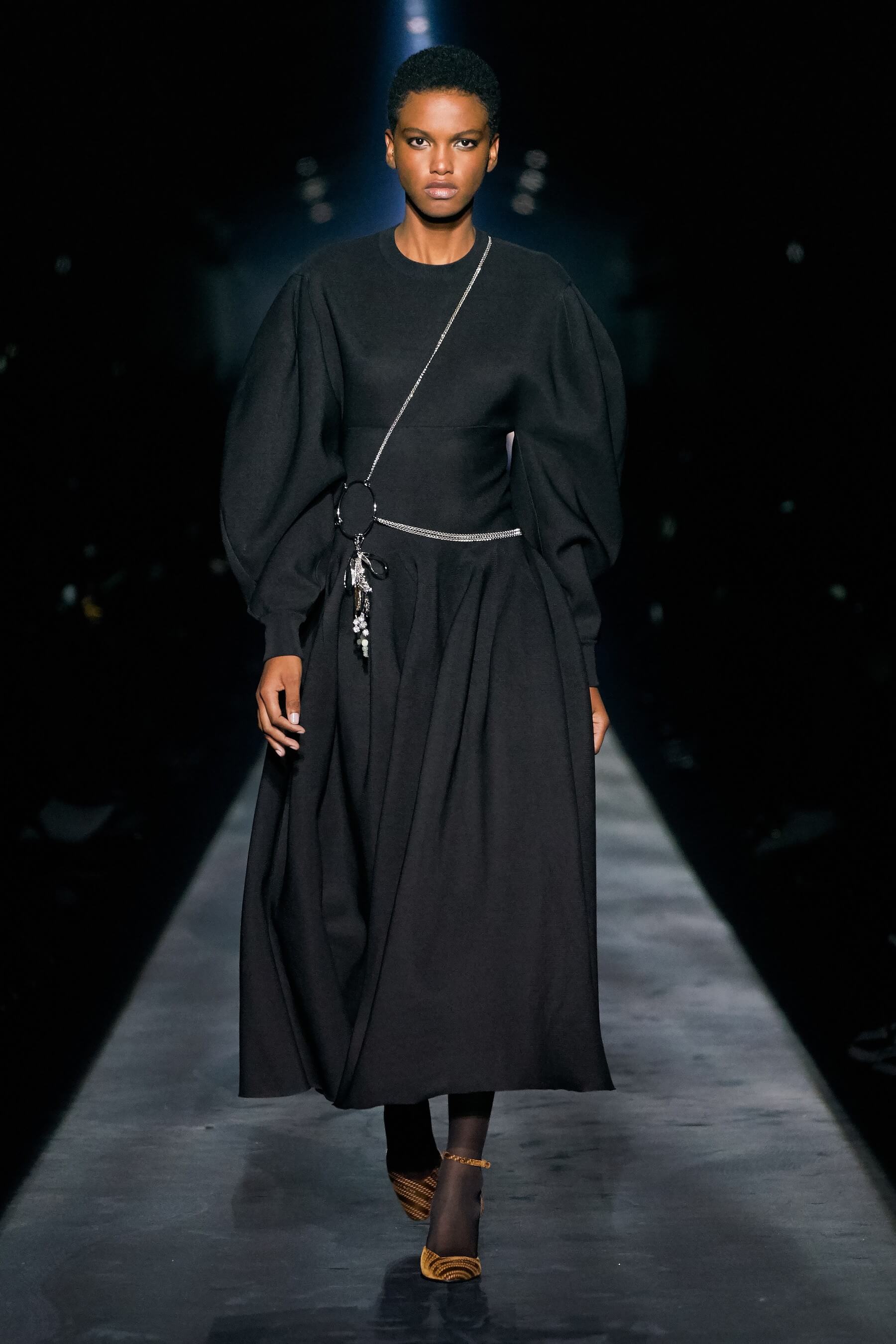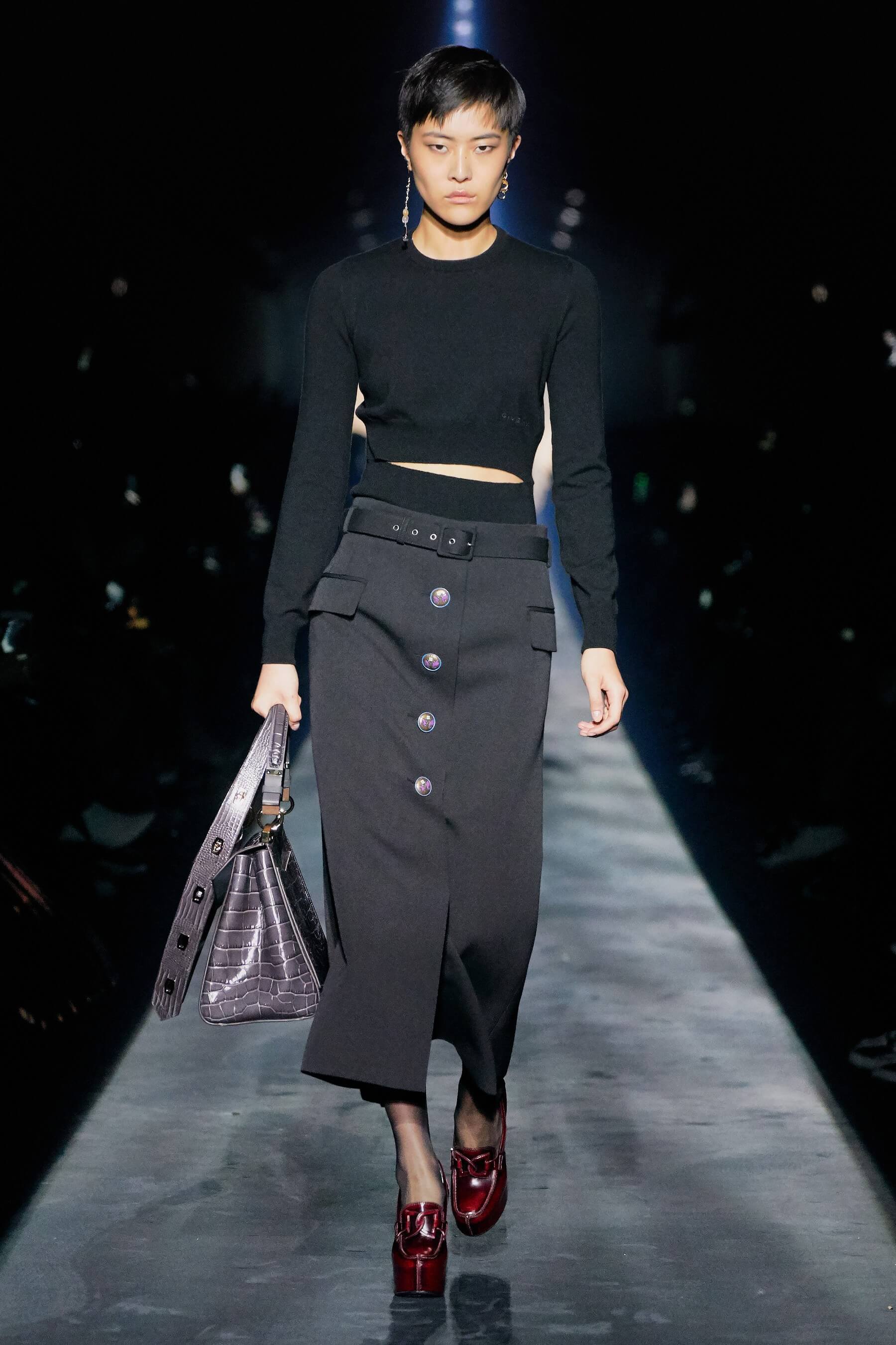 В парижском ботаническом саду прошел показ коллекции Givenchy, которую Клэр Уэйт Келлер назвала "Зима в Эдеме". Дизайнер показала гостям женственные и утонченные платья в цветах, нежные плиссированные костюмы с воротами-оборками, костюмы-двойки сочных цветов и сверхэлегантные пальто необычного кроя с большими и круглыми плечами. Под брючными костюмами в клетку виднелись цветные шелковые блузы, поверх изысканных силуэтных жакетов с юбками были надеты пуховики, а в качестве подвесов модели носили маленькие монетницы со змеиным принтом.