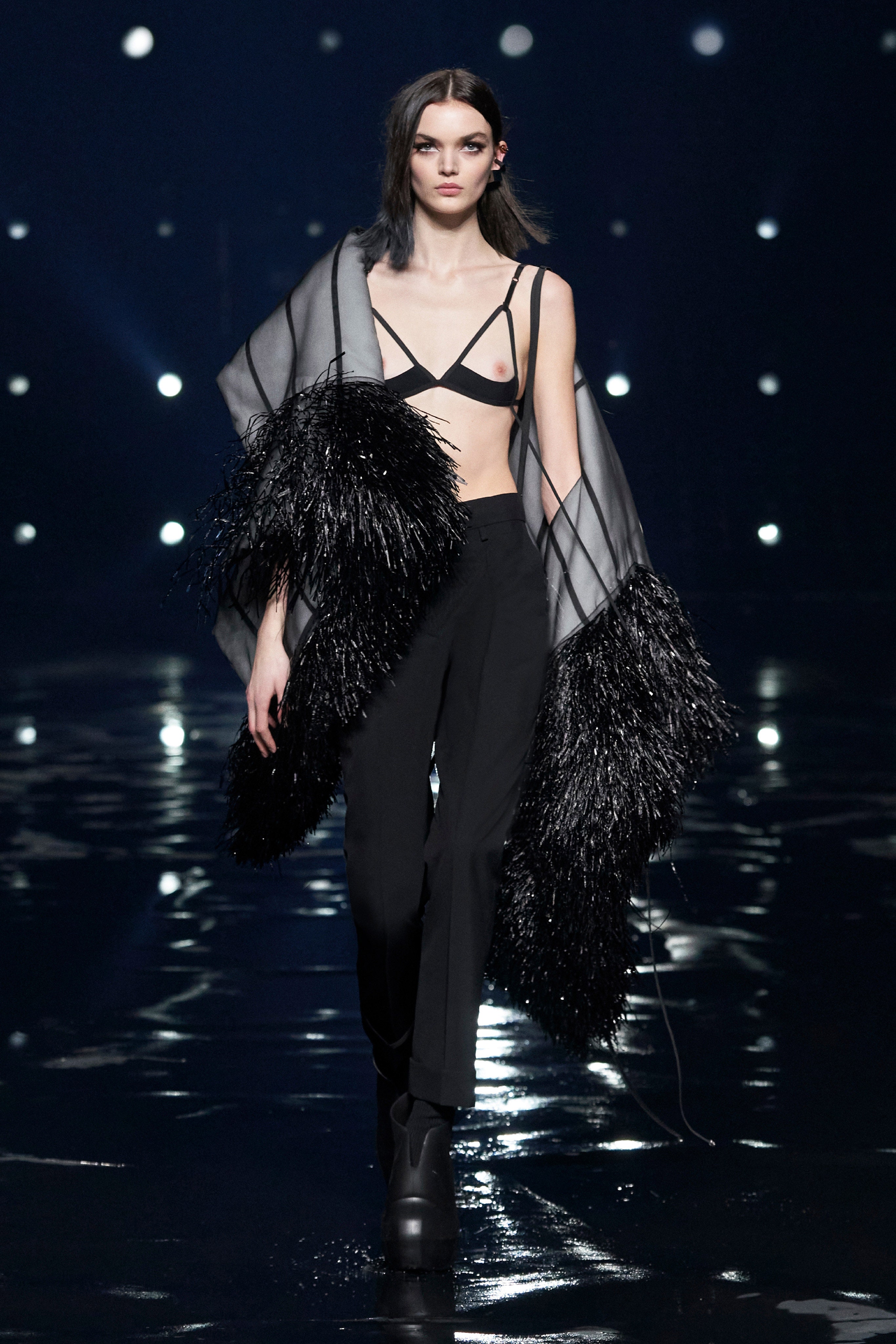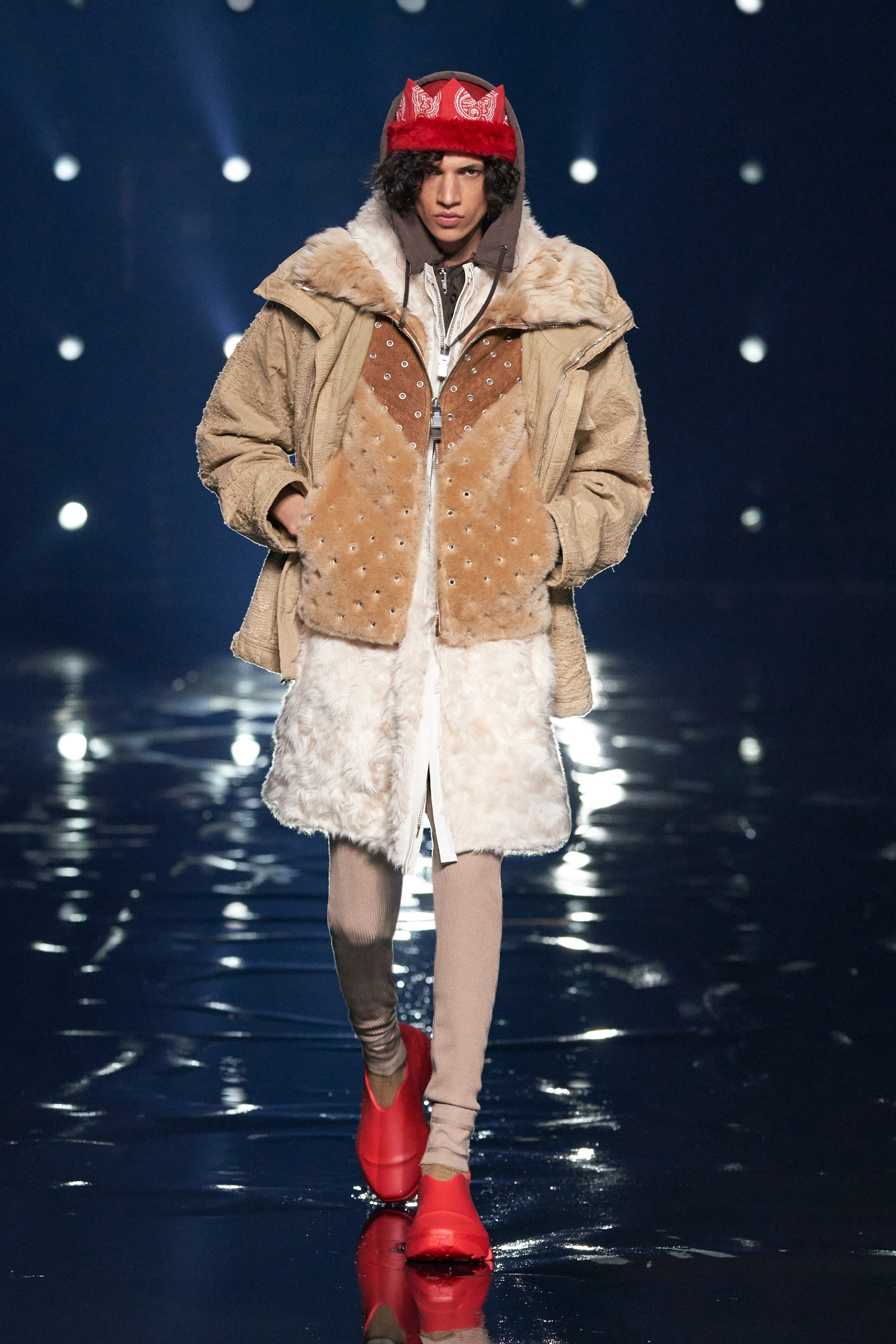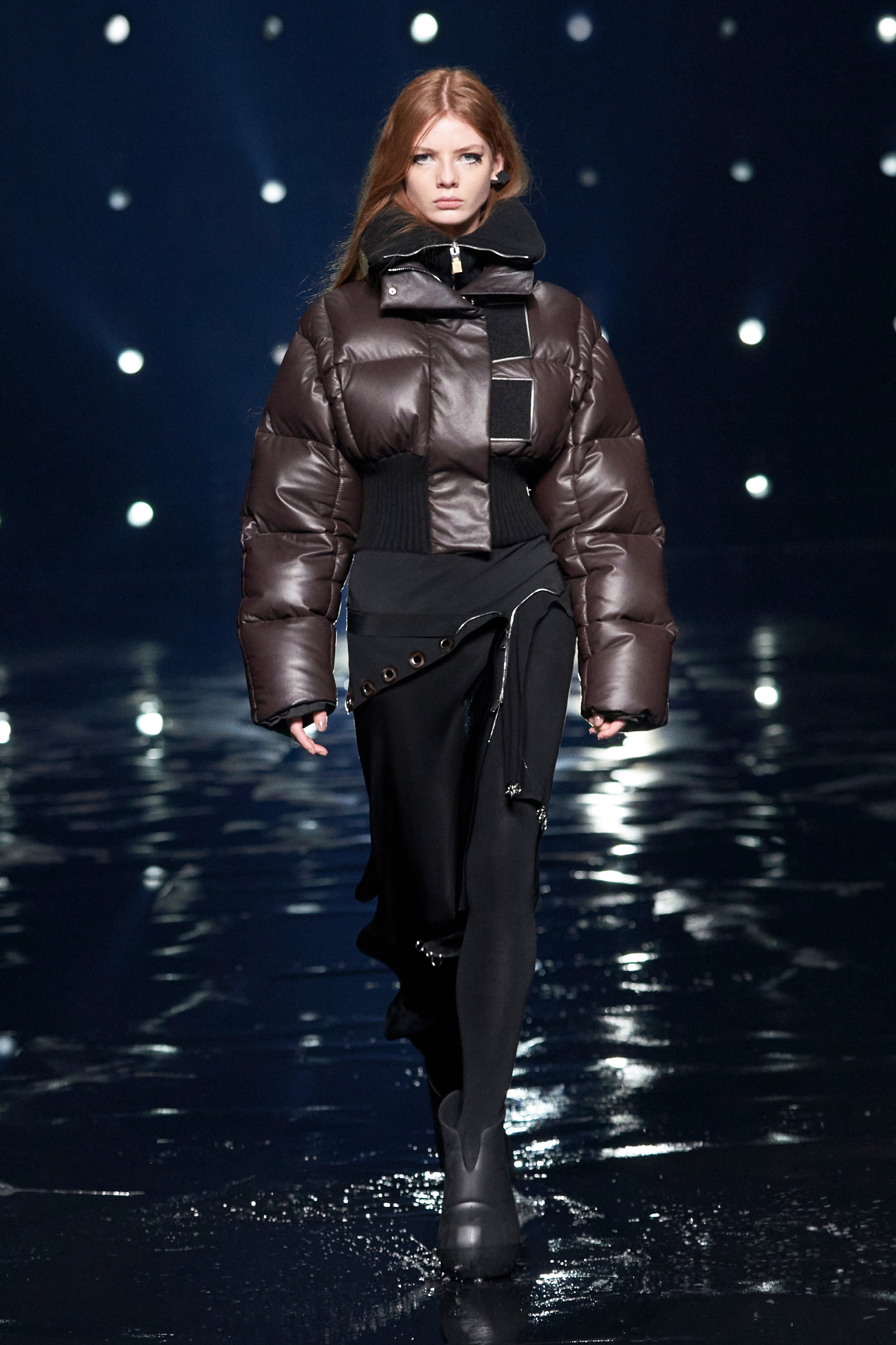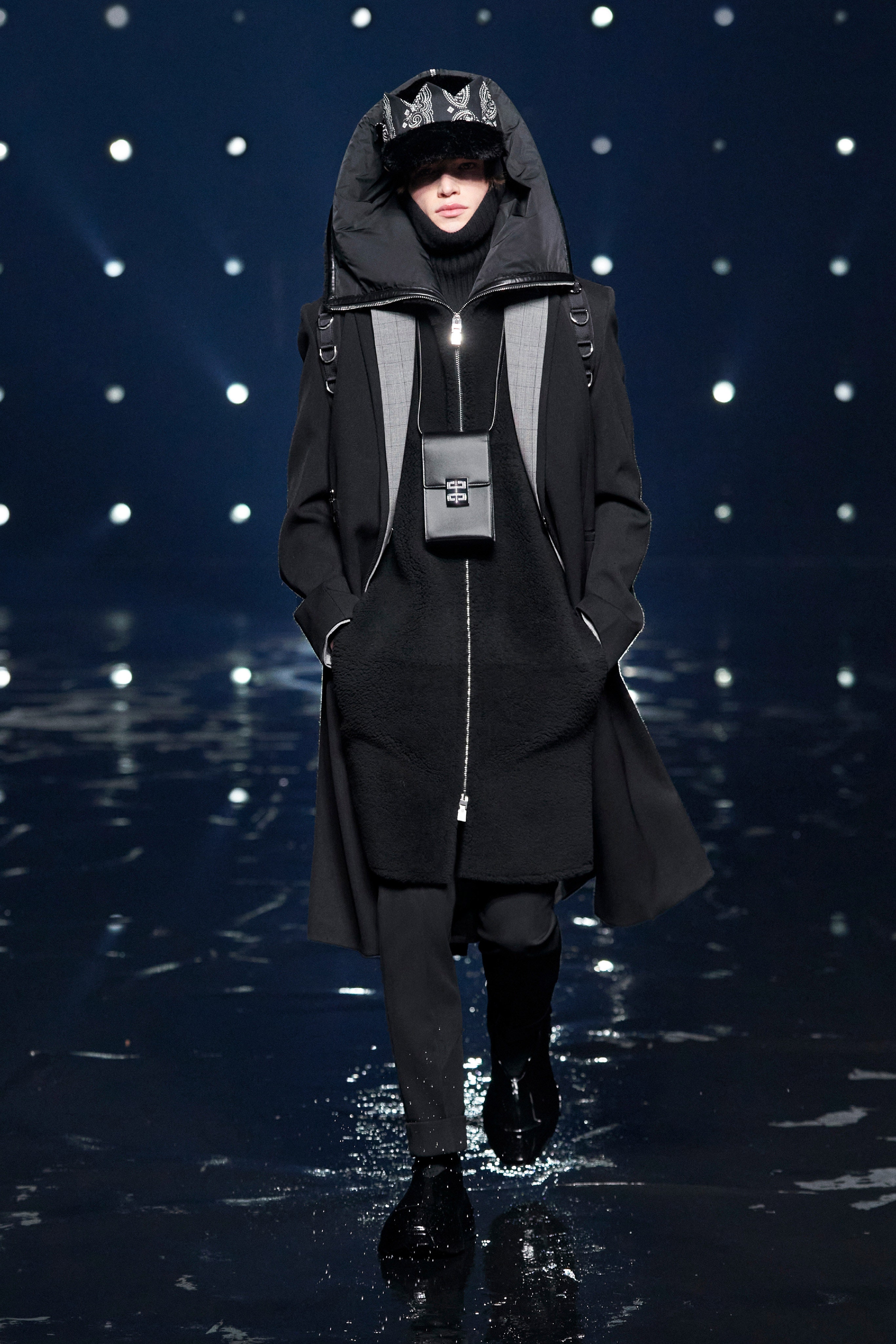 Если представить, что в период позднего палеолита, смещенного в будущее, будет мода, она наверняка будет включать в себя пушистые шапки и варежки, созданные Мэтью Уильямсоном в дополнение к полупрозрачным комбинезонам, покрытым логотипами Givenchy, и соблазнительным, инстинктивным бра с открытой грудью. Дикие фактуры плетеных топов и платьев усиливают нарочито громоздкие шубы и дубленки, а все материалы созданы визуально тактильными, способными вызвать желание потрогать их. В новом сезоне дизайнер сохраняет привычные "варварские" элементы вроде рогов на шлемах или агрессивных "вулканических" узоров, полученных путем окрашивания ткани.