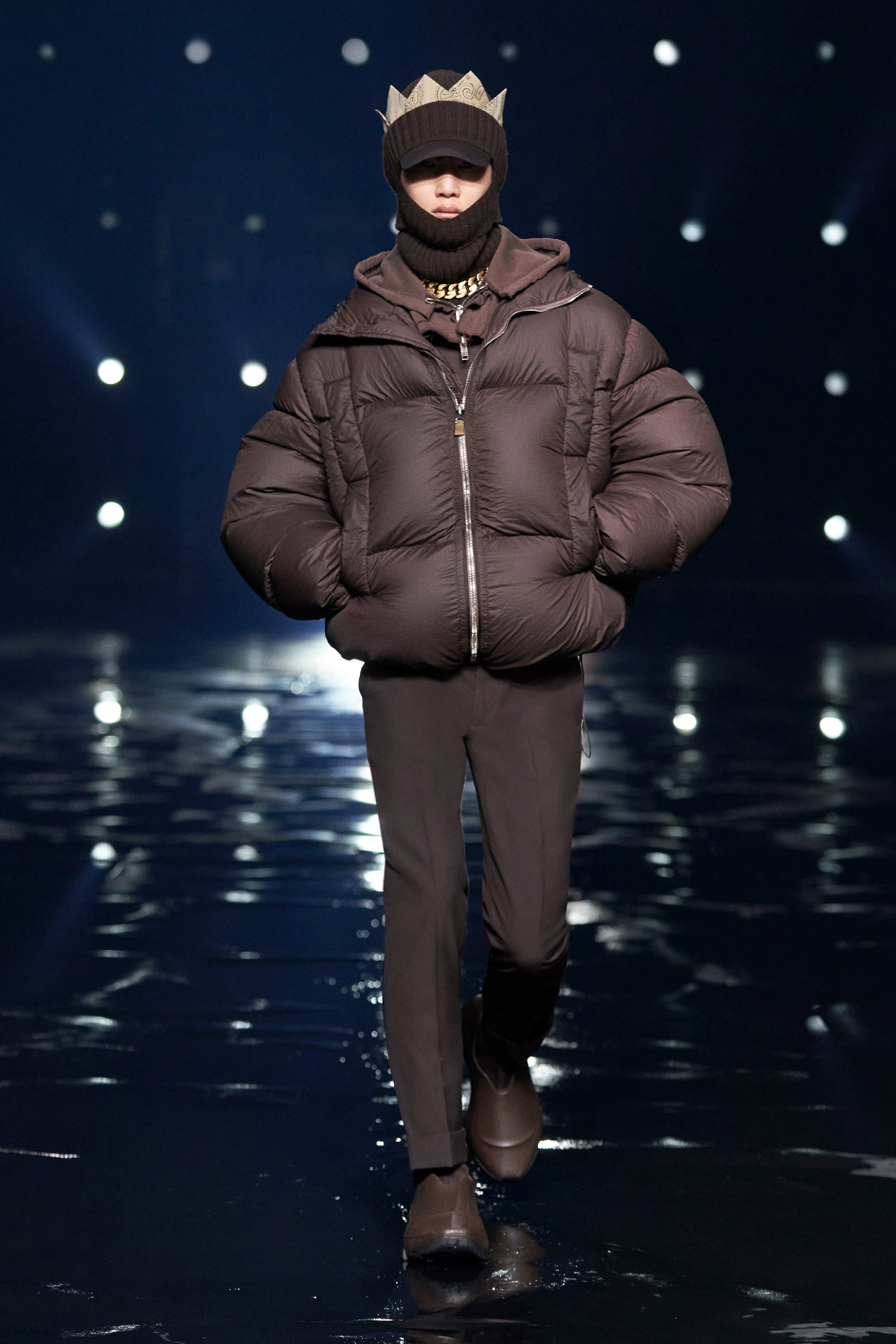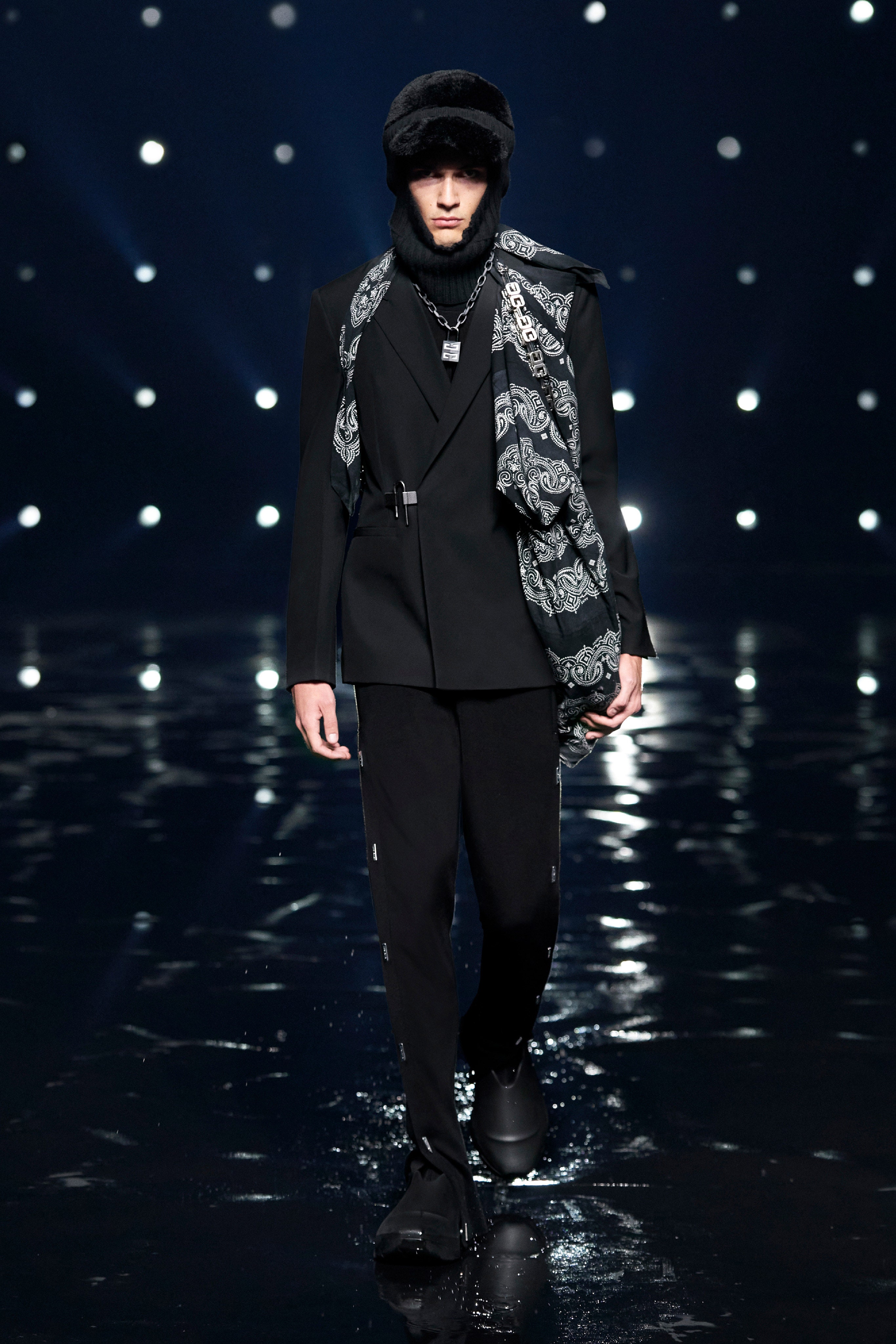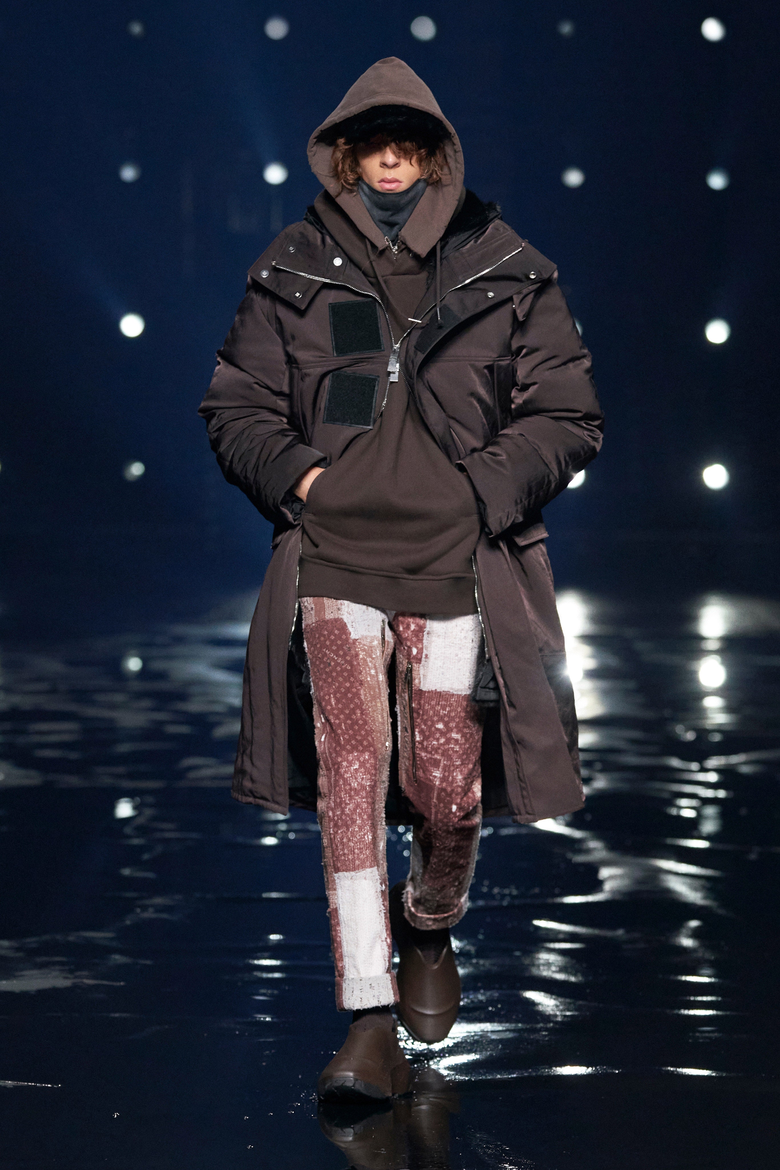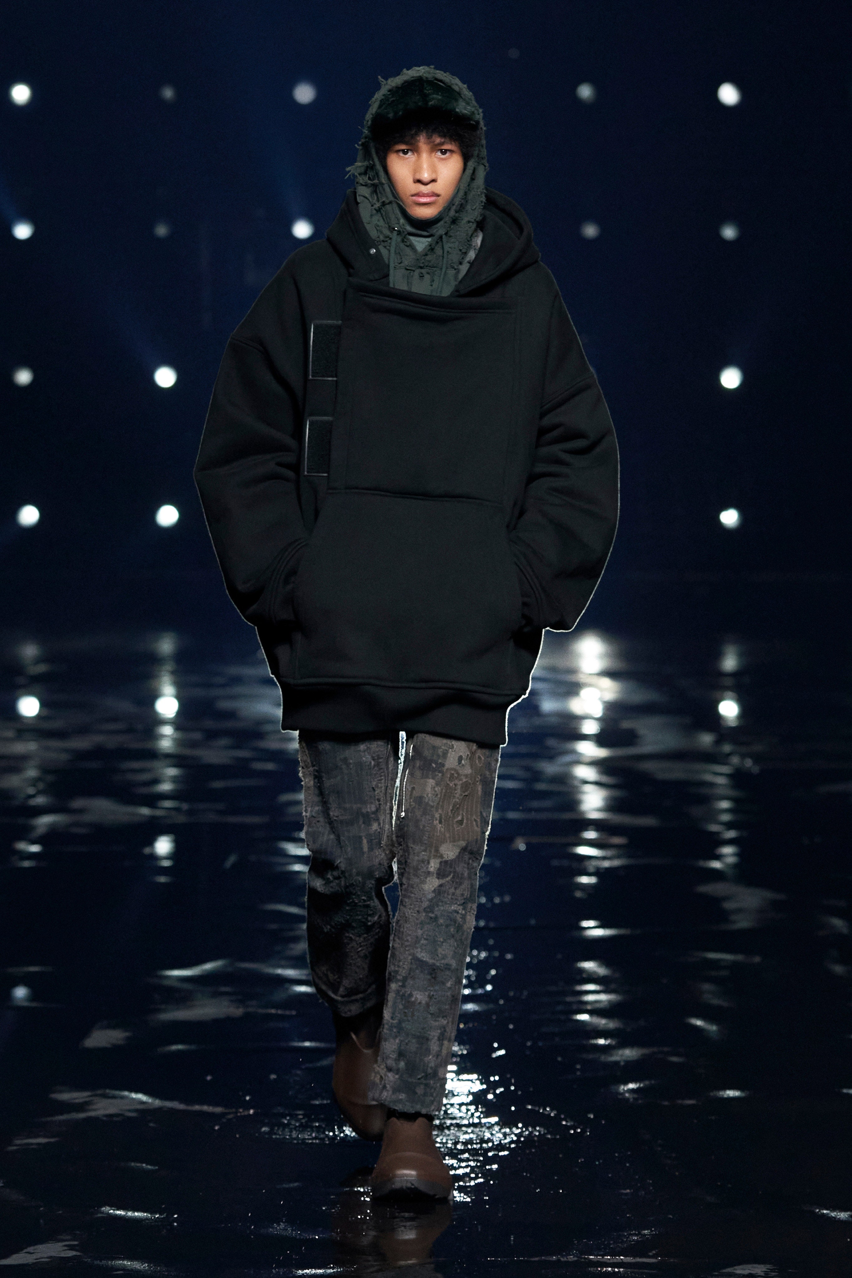 Если представить, что в период позднего палеолита, смещенного в будущее, будет мода, она наверняка будет включать в себя пушистые шапки и варежки, созданные Мэтью Уильямсоном в дополнение к полупрозрачным комбинезонам, покрытым логотипами Givenchy, и соблазнительным, инстинктивным бра с открытой грудью. Дикие фактуры плетеных топов и платьев усиливают нарочито громоздкие шубы и дубленки, а все материалы созданы визуально тактильными, способными вызвать желание потрогать их. В новом сезоне дизайнер сохраняет привычные "варварские" элементы вроде рогов на шлемах или агрессивных "вулканических" узоров, полученных путем окрашивания ткани.