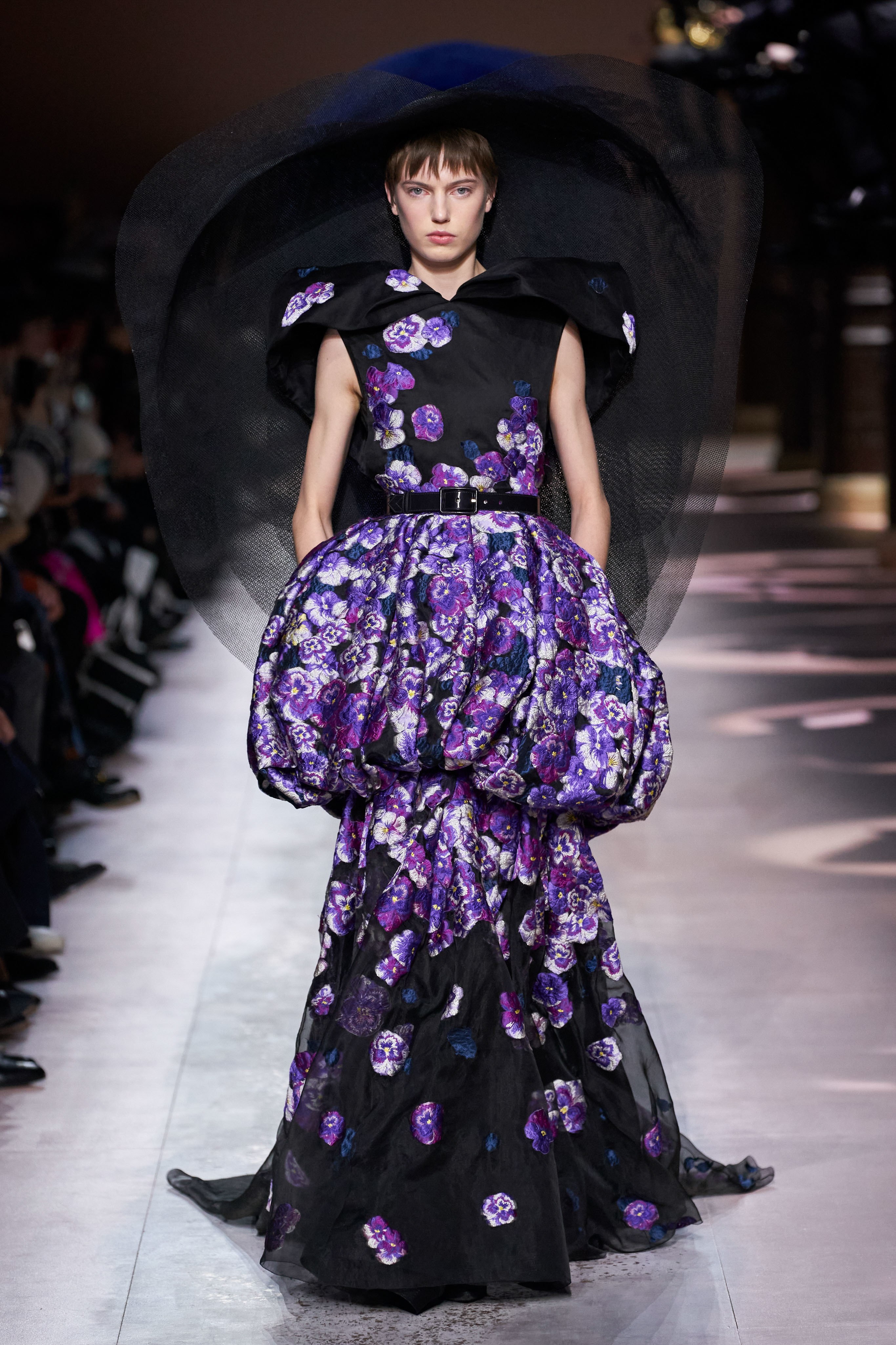 Цвет: Сам Юбер увлекался садоводством и дизайном сада, поэтому черно-белую сдержанную гамму Келлер разбавила оттенками садовых цветов: желтым, сиреневым, пастельно-розовым, персиковым и голубым. А сами наряды украшали цветочные аппликации.
