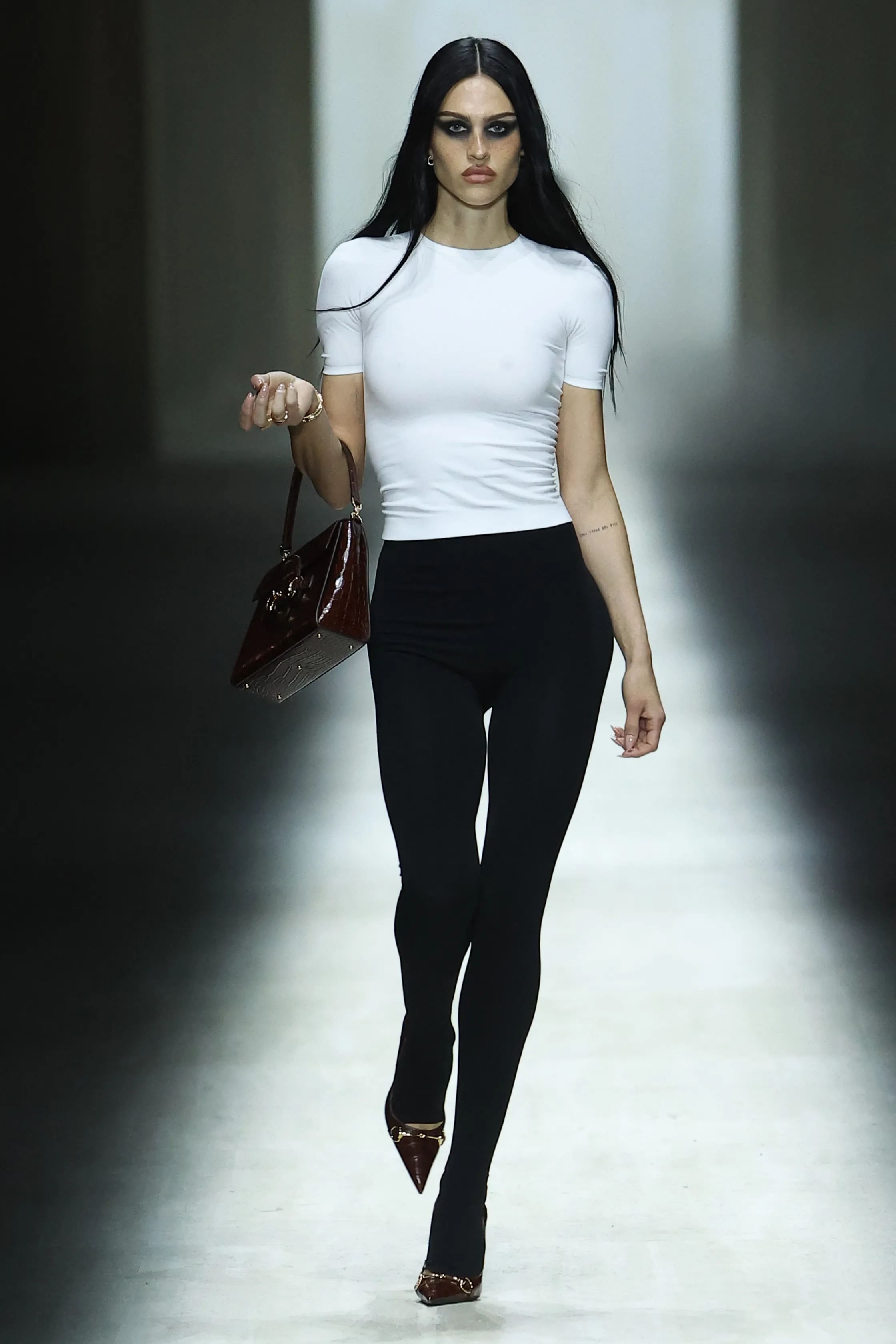 Одним з найочікуваніших показів міланського Тижня моди стало шоу Gucci. Це був перший показ, який Демна представив на посаді креативного директора італійського Дому. Його нова колекція вирізнилась нарочитою сексуальністю та цитуванням культових образів авторства Тома Форда за часи роботи в Gucci. Більше про сценографію шоу сезону сезону fall-winter — 2026 та подіумні образи розповідає редакція L’Officiel Online нижче.