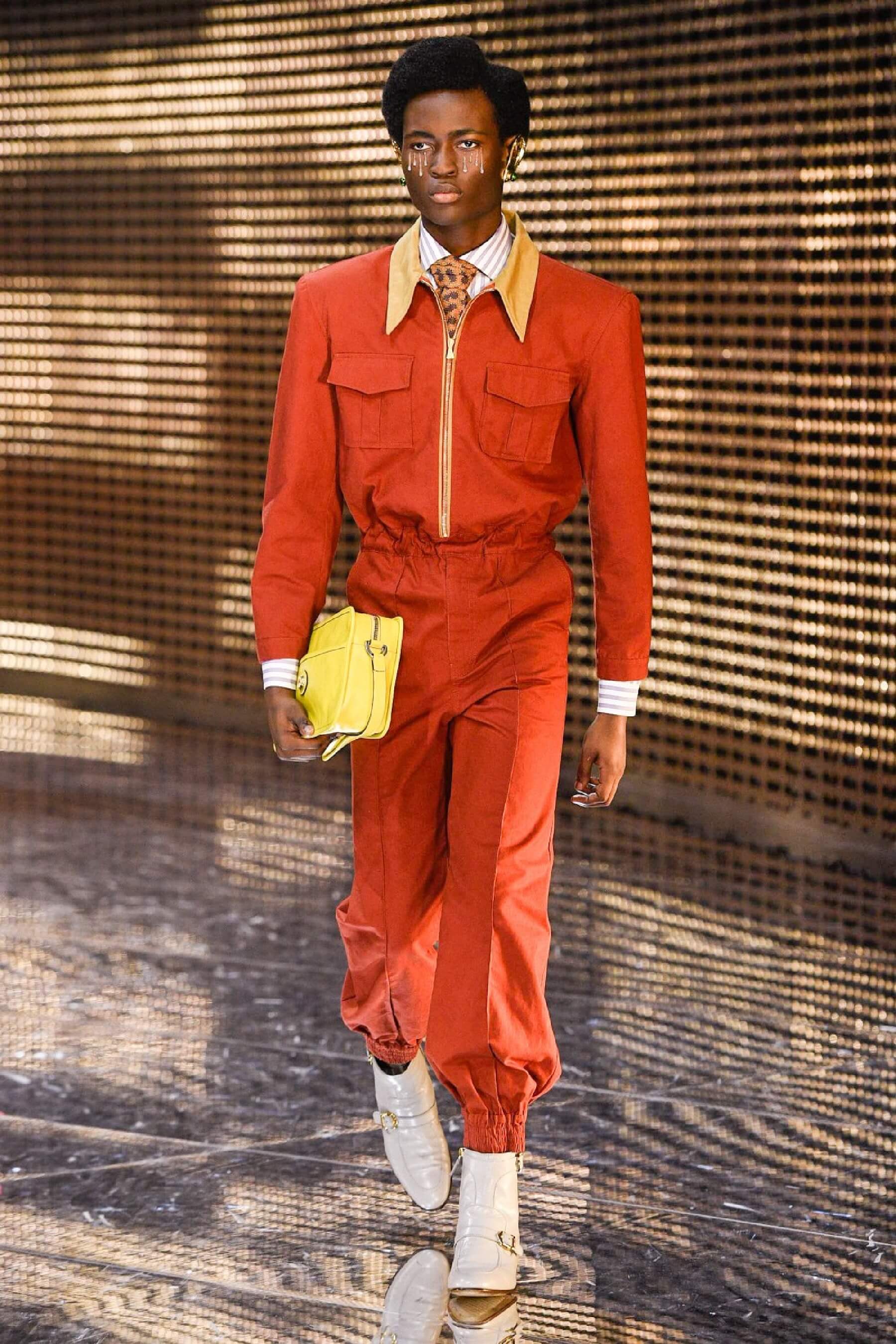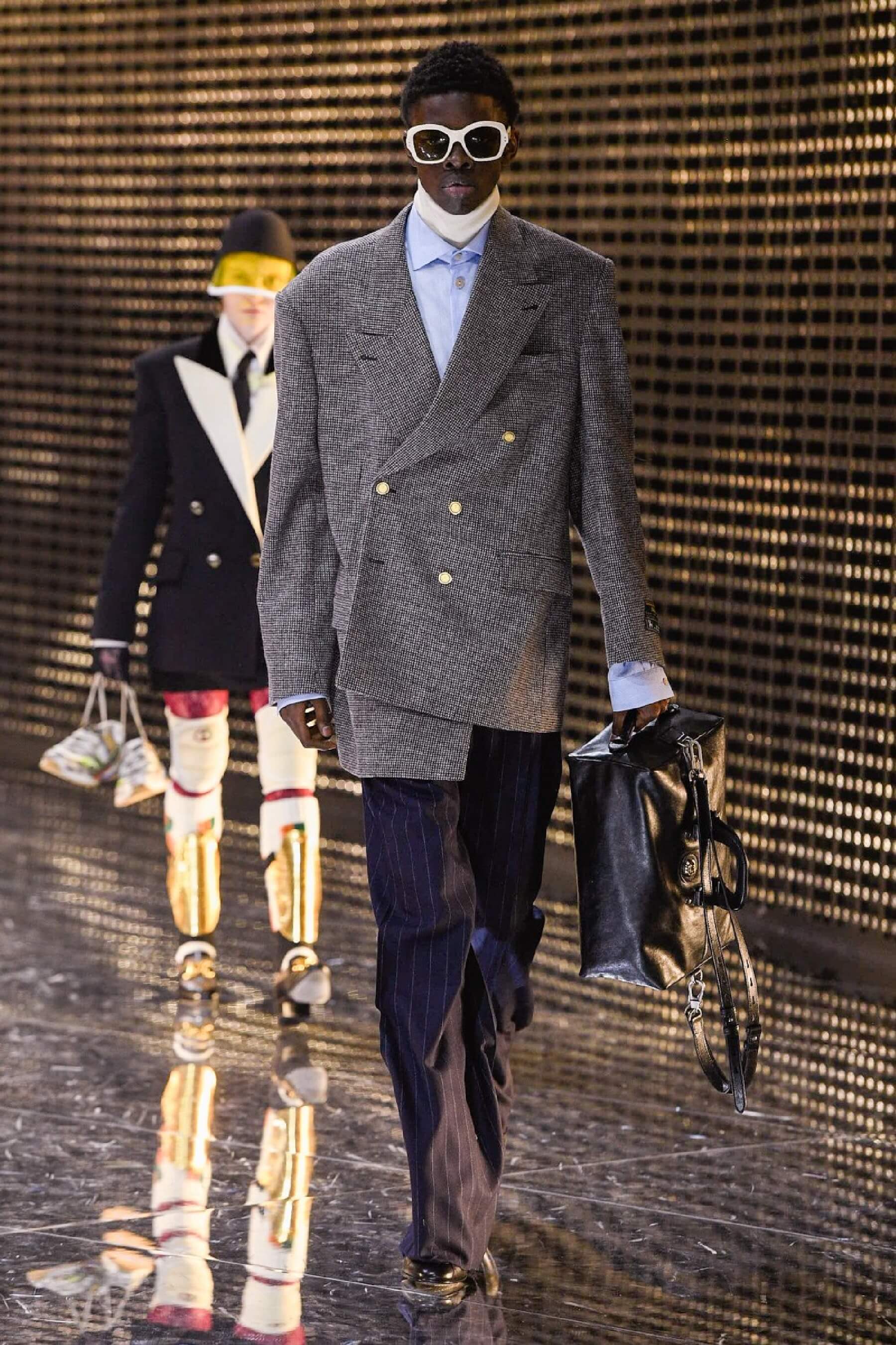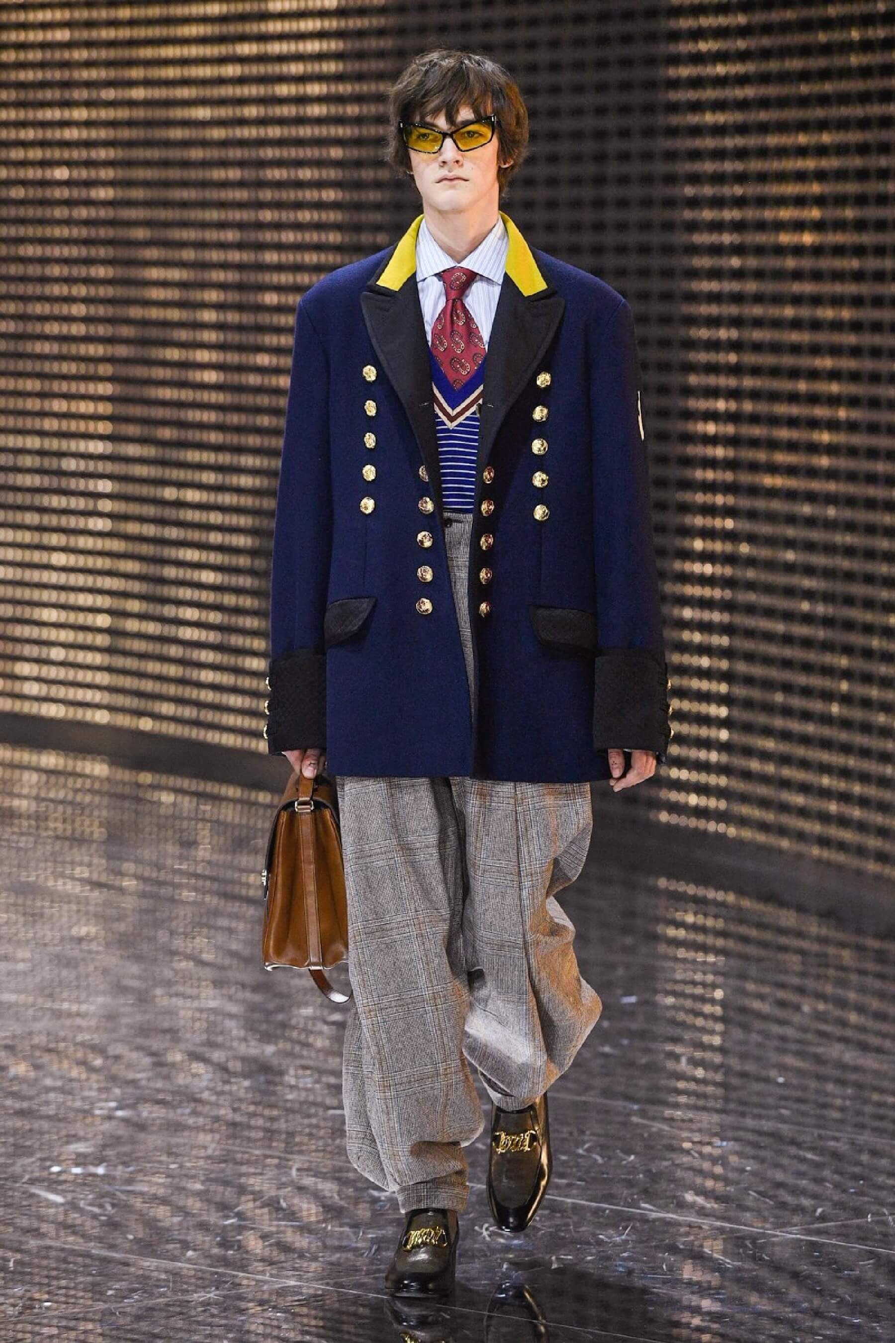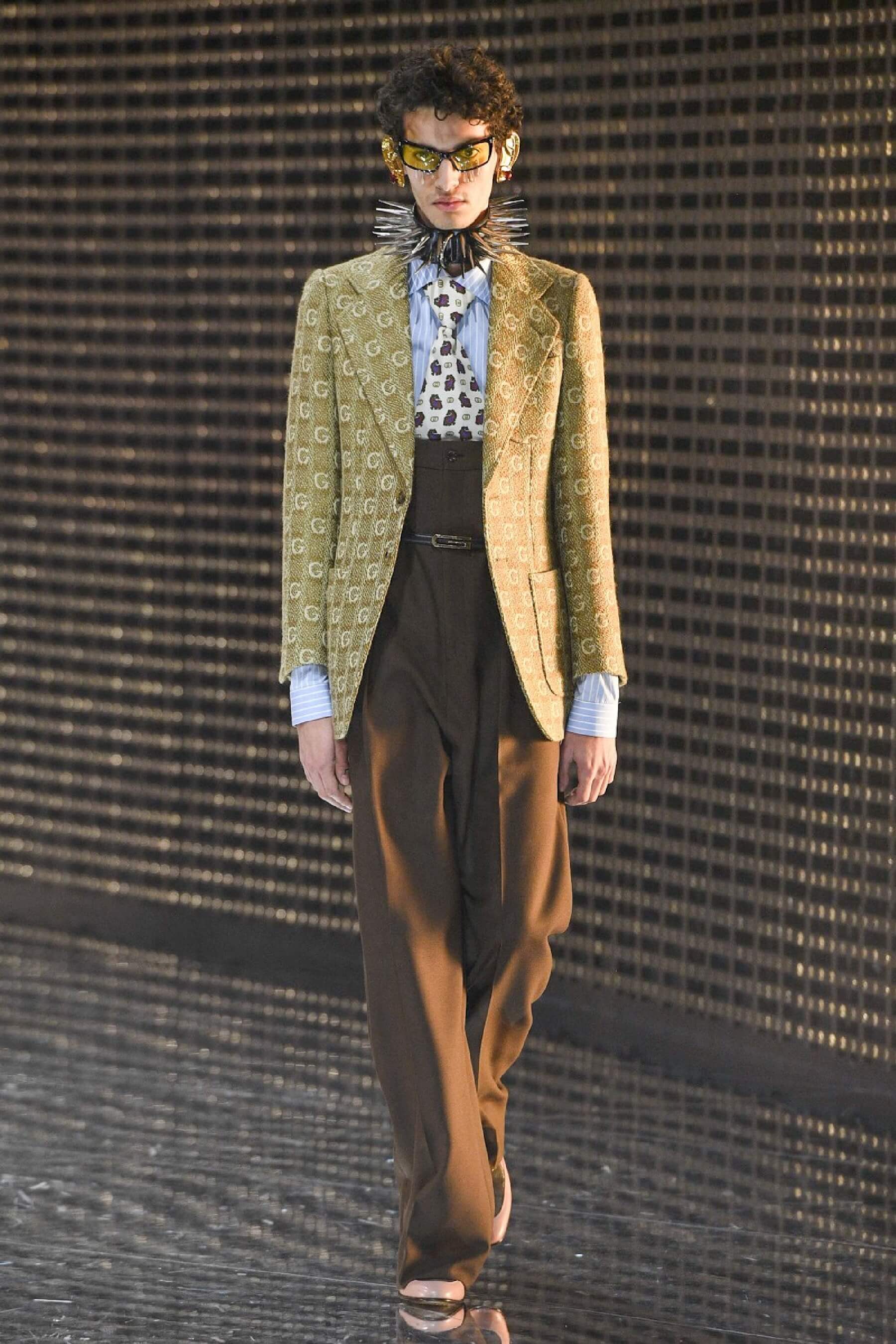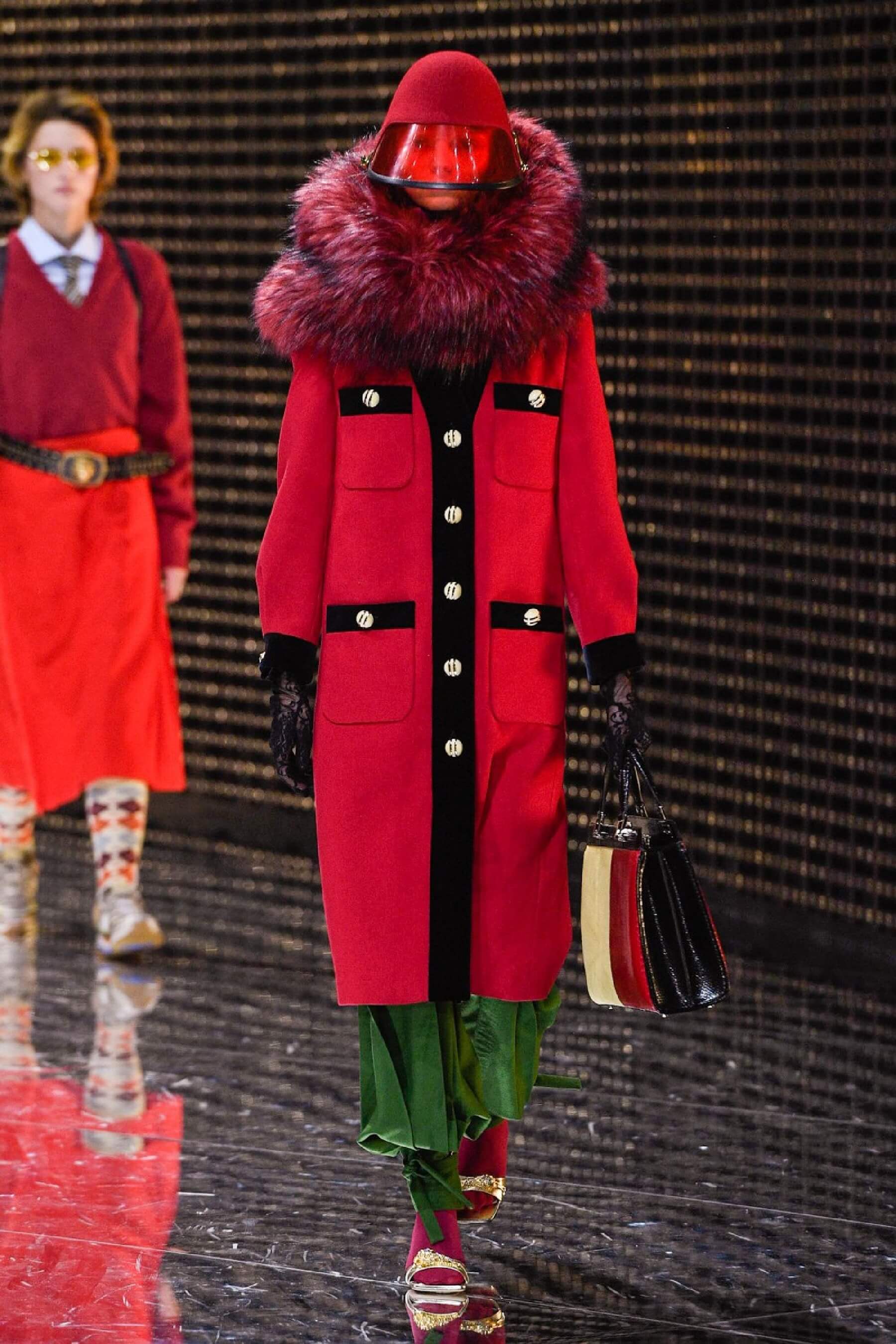 Свою новую (весьма скромную – 87 образов вместо привычных 120) коллекцию для Gucci Алессандро Микеле посвятил античной красоте, фетишизму и маскам, которые олицетворяют дуальность человеческой природы согласно философии Ханны Арендт, чьё мнение созвучно с восприятием самого дизайнера.