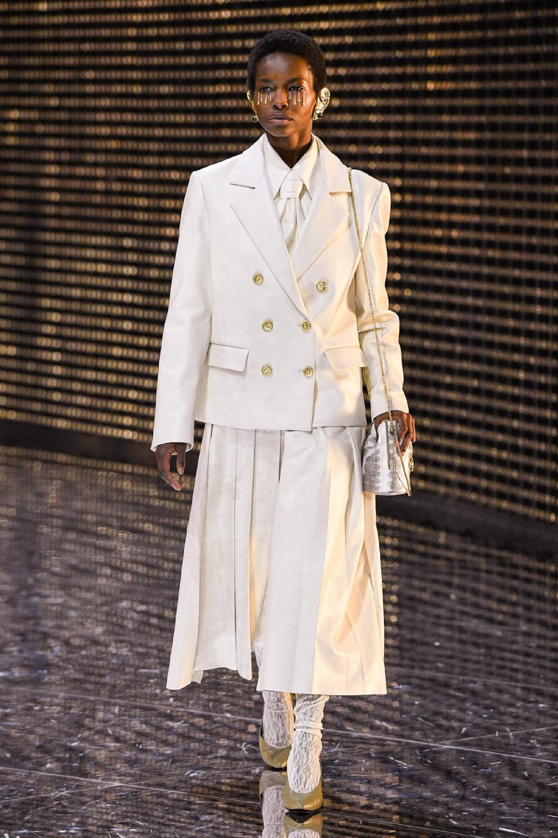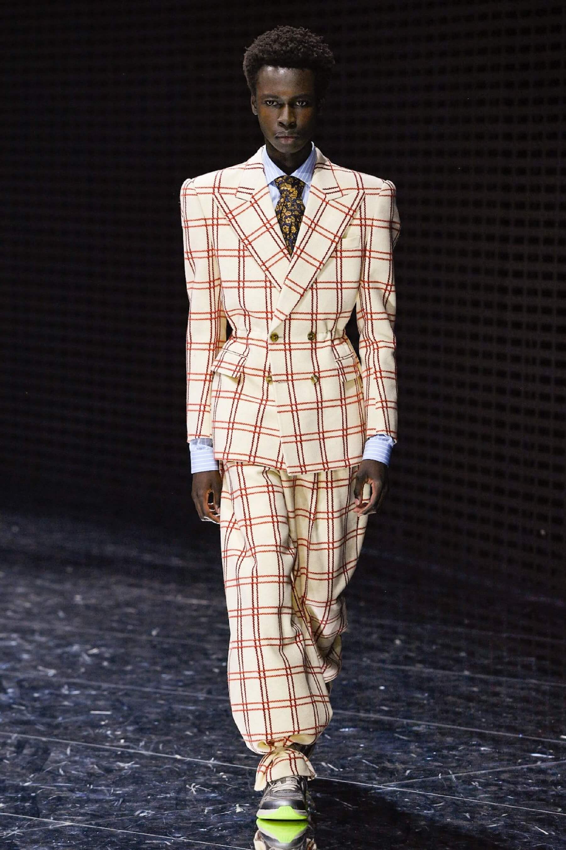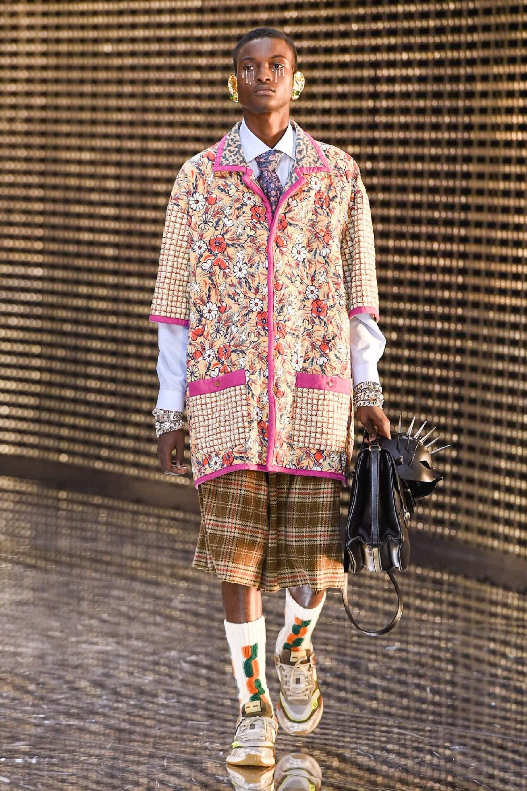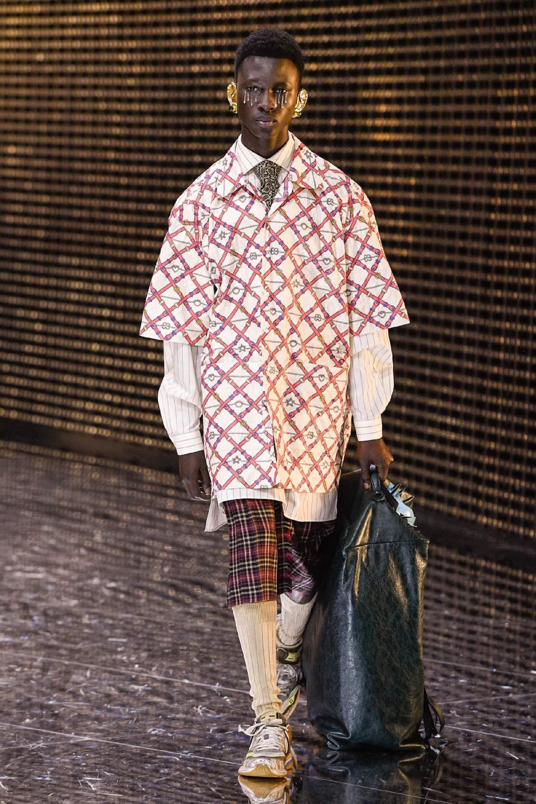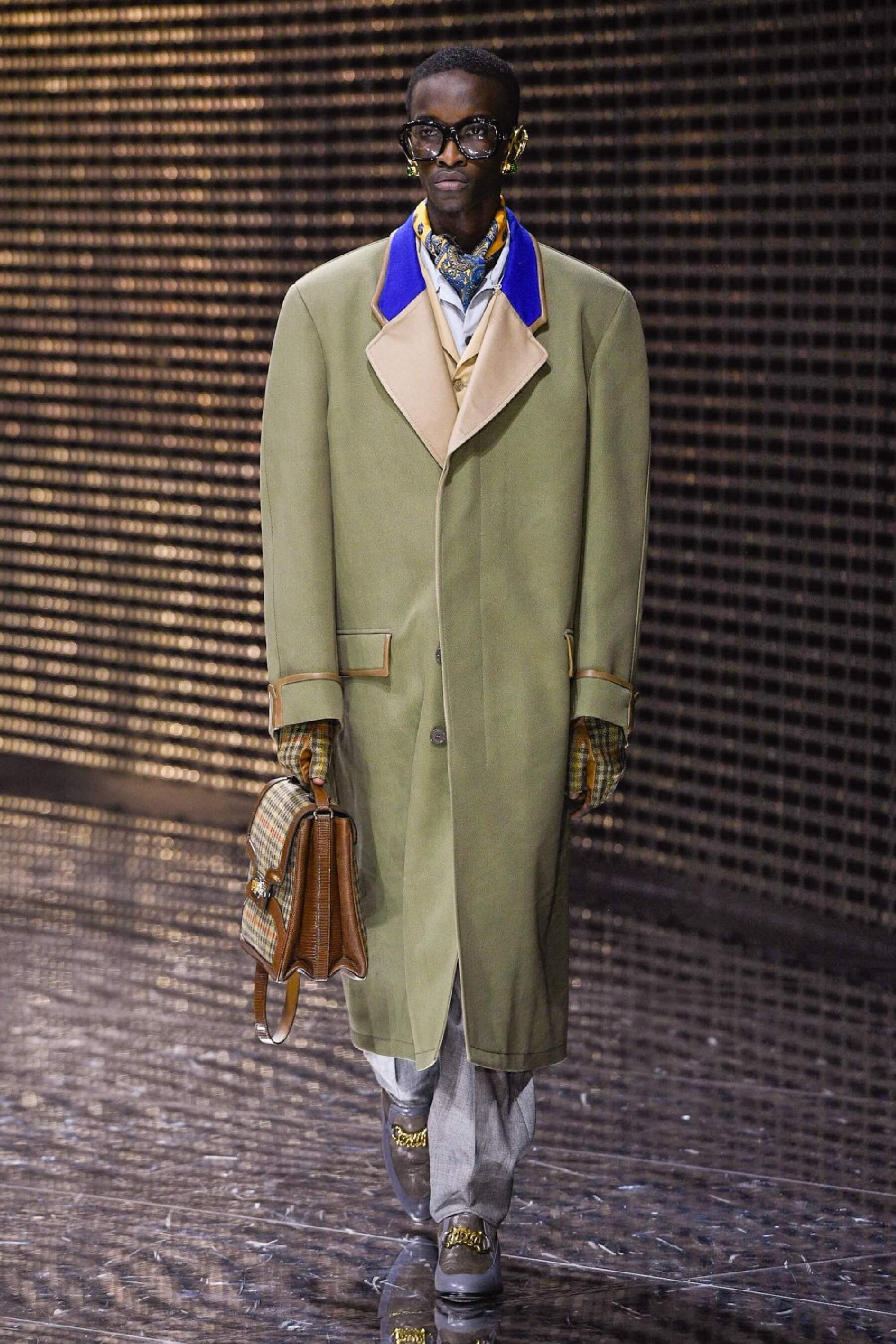 Свою новую (весьма скромную – 87 образов вместо привычных 120) коллекцию для Gucci Алессандро Микеле посвятил античной красоте, фетишизму и маскам, которые олицетворяют дуальность человеческой природы согласно философии Ханны Арендт, чьё мнение созвучно с восприятием самого дизайнера.