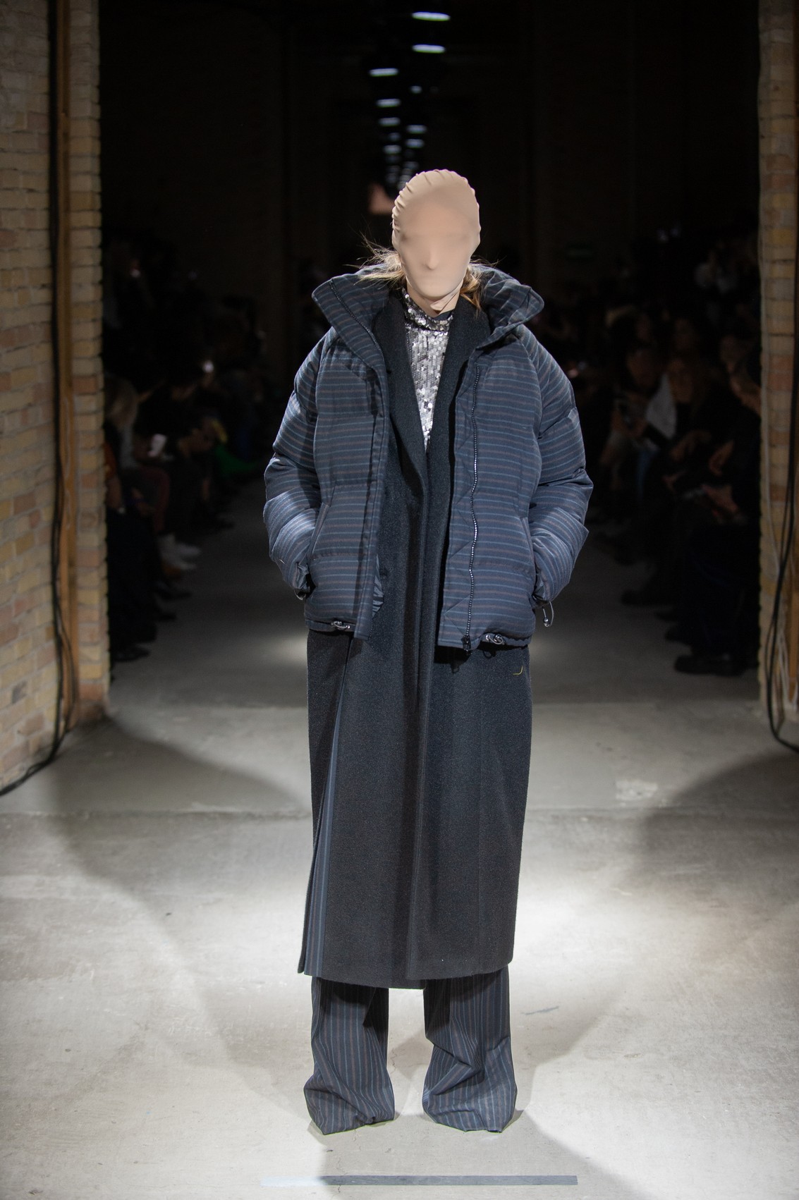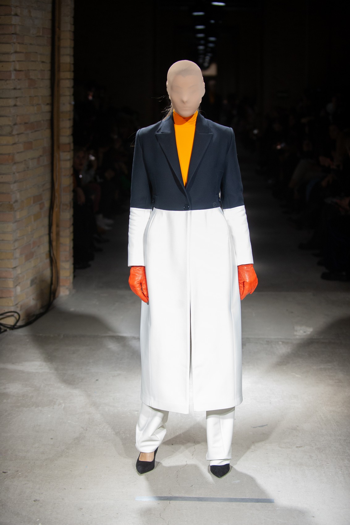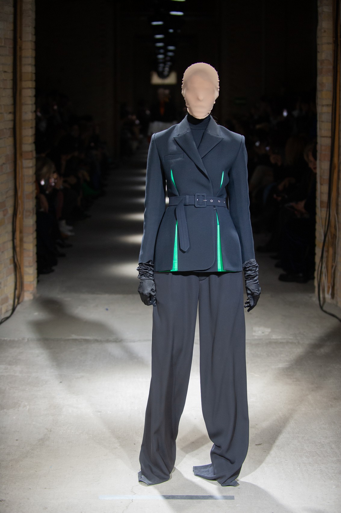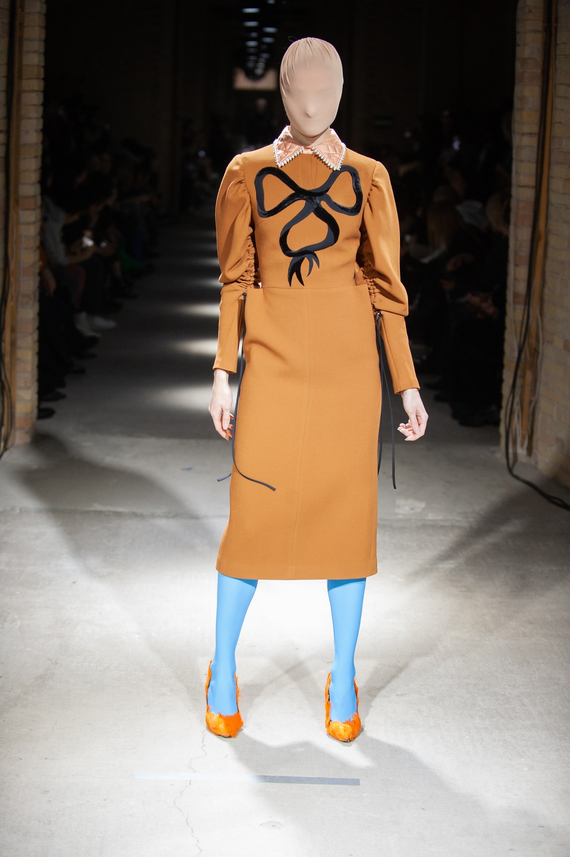 Модели в образах "безликих" шагали по подиуму в лодочках, покрытых перьями, плащах-кейпах и экошубах, а сюрпризом для поклонников бренда стал сверкающий монокостюм.