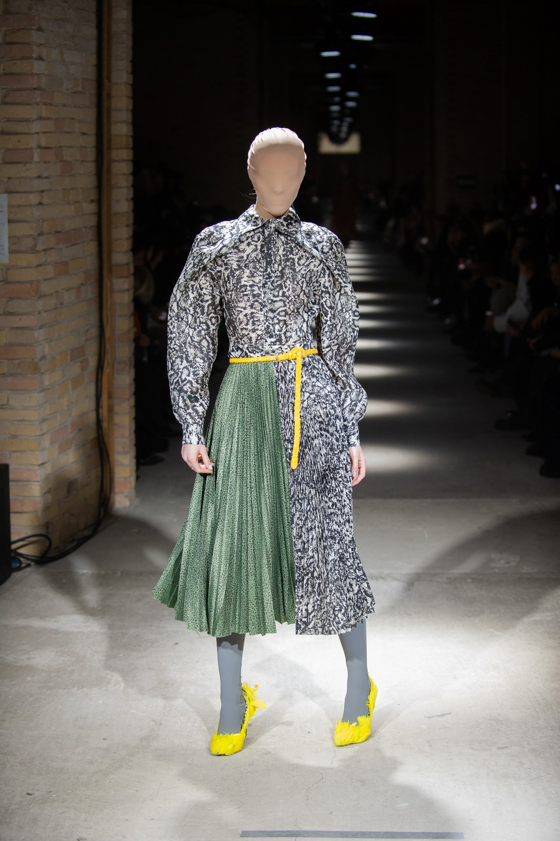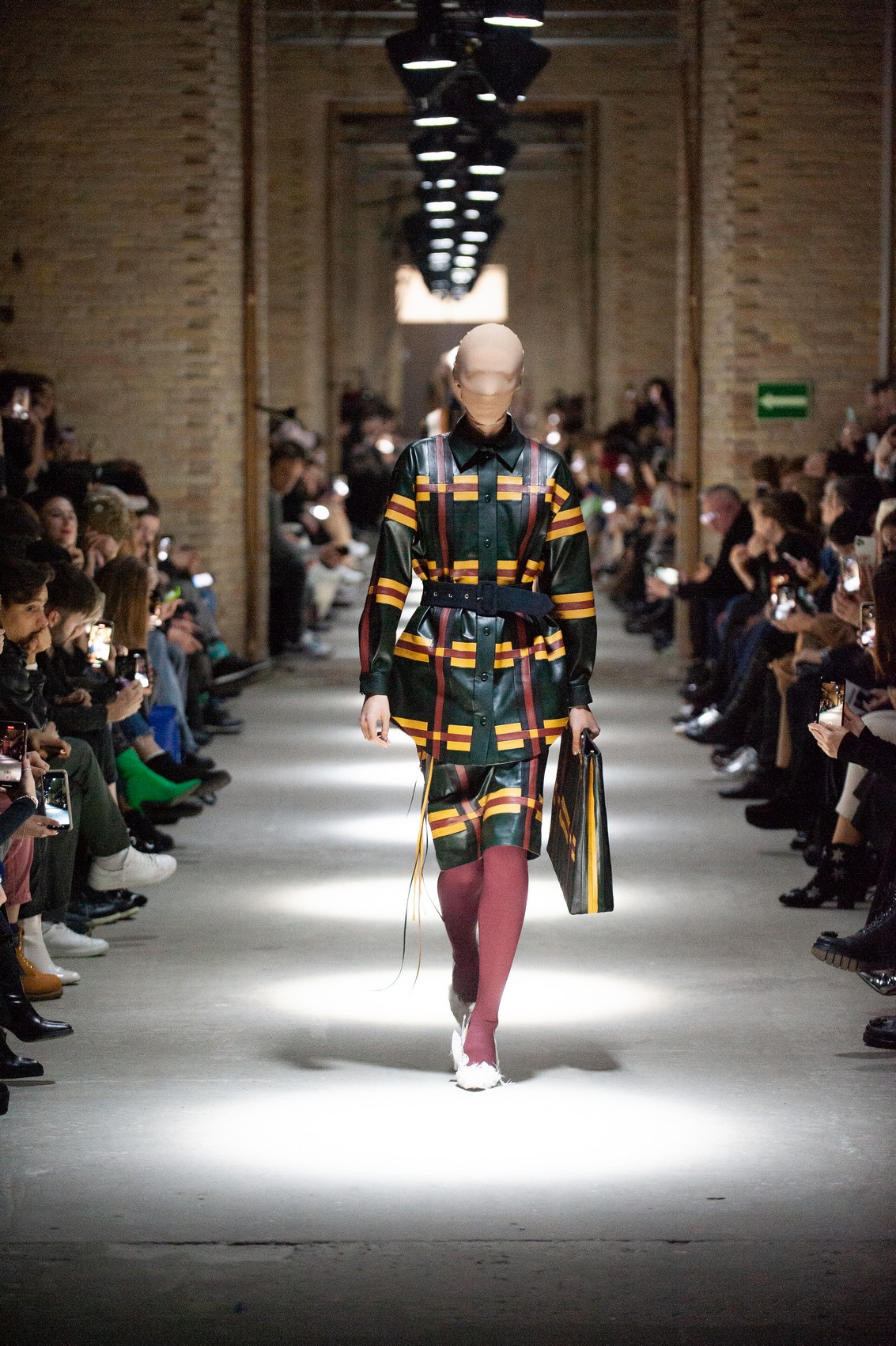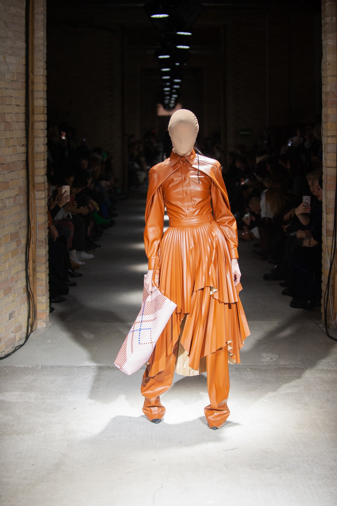 В первый день украинской Недели моды прошел показ бренда Gudu. Знаковые образы-тени дизайнера Лаши Мдинарадзе из осенне-зимней коллекции выдержаны в духе 70-80-х годов: кожаные платья и куртки-фраки с плиссированными оборками, милитаристские жакеты с накладными карманами, платья поверх брюк клеш и огромные плетеные сумки.