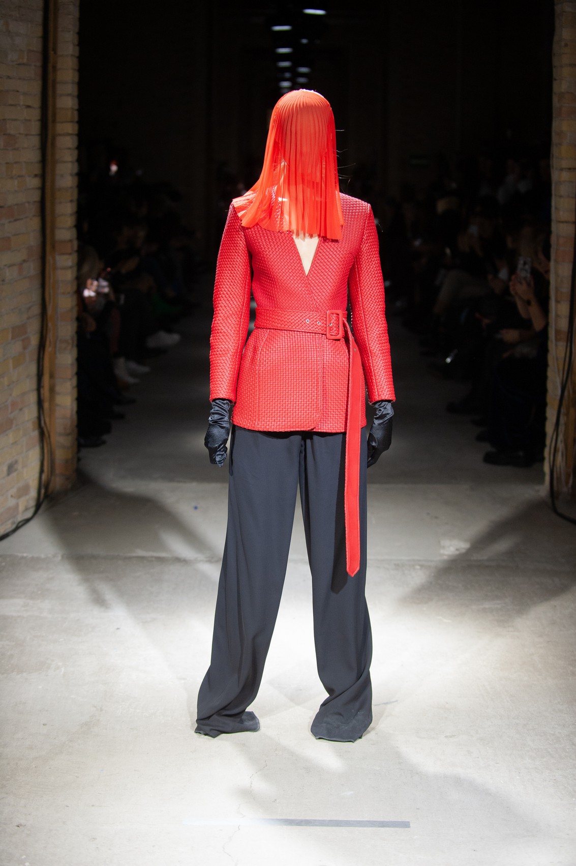 Целостность коллекции поддерживали монохромные образы, выполненные в сочных фруктовых оттенках, а куртки мелкого плетения тромплей стали необычной и эффектной деталью показа.