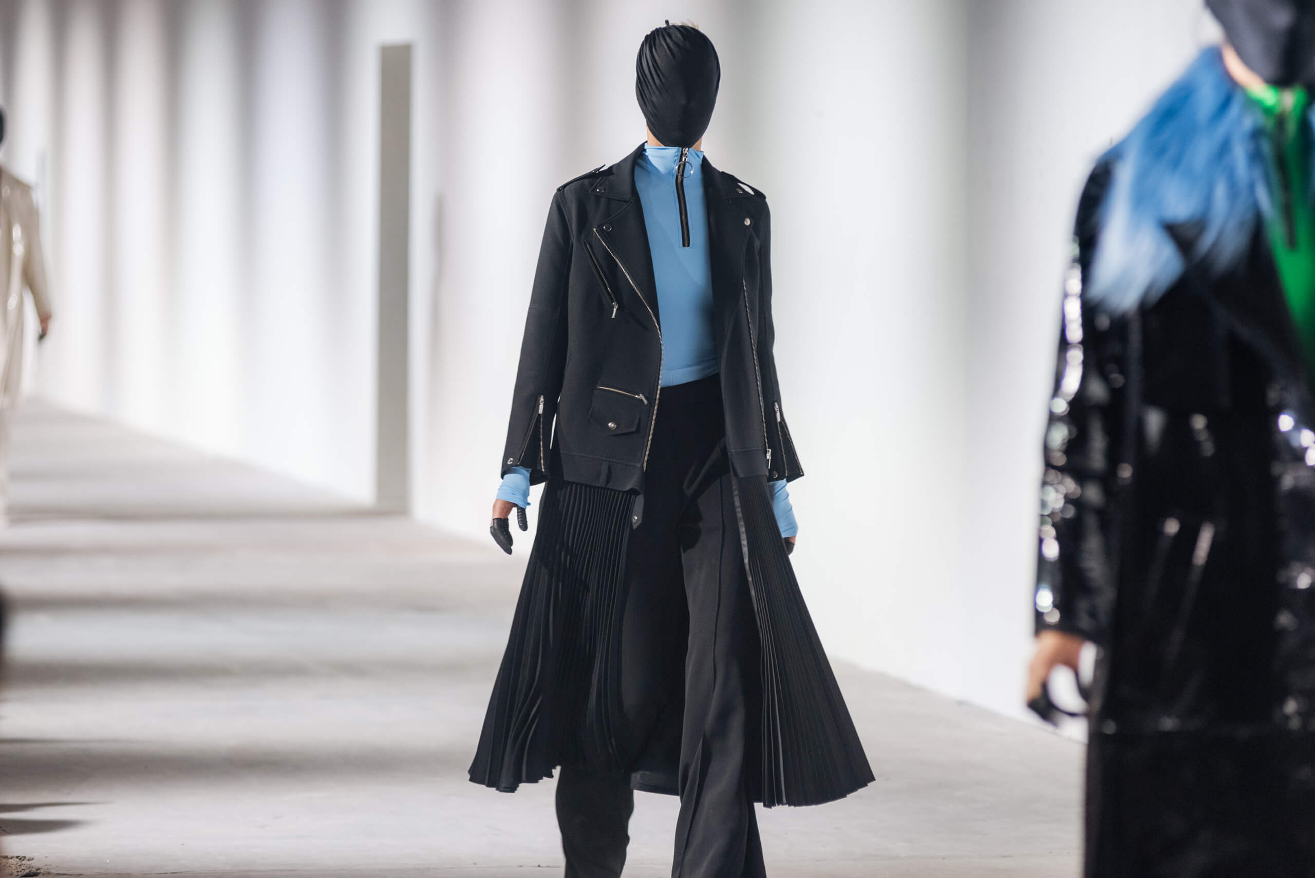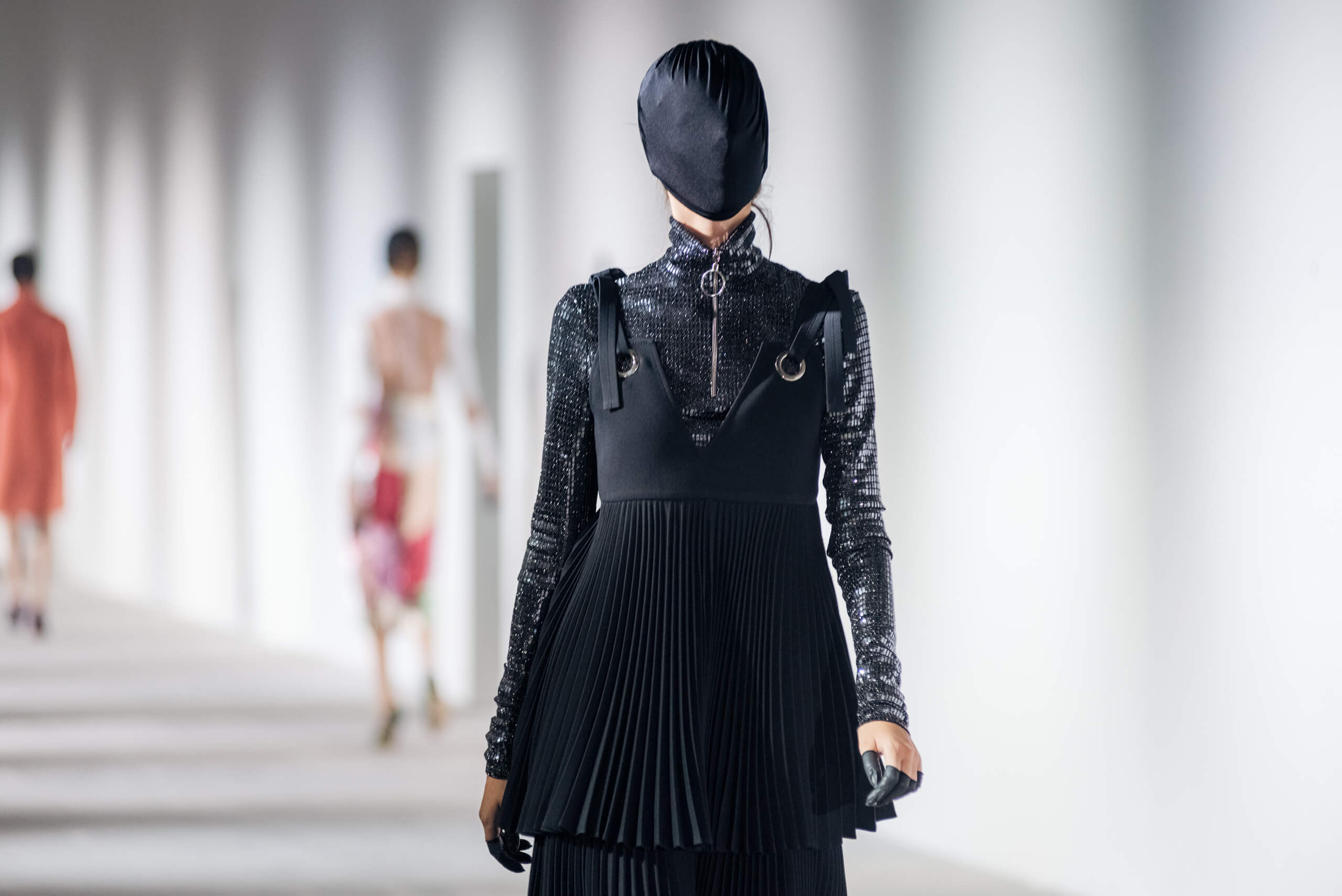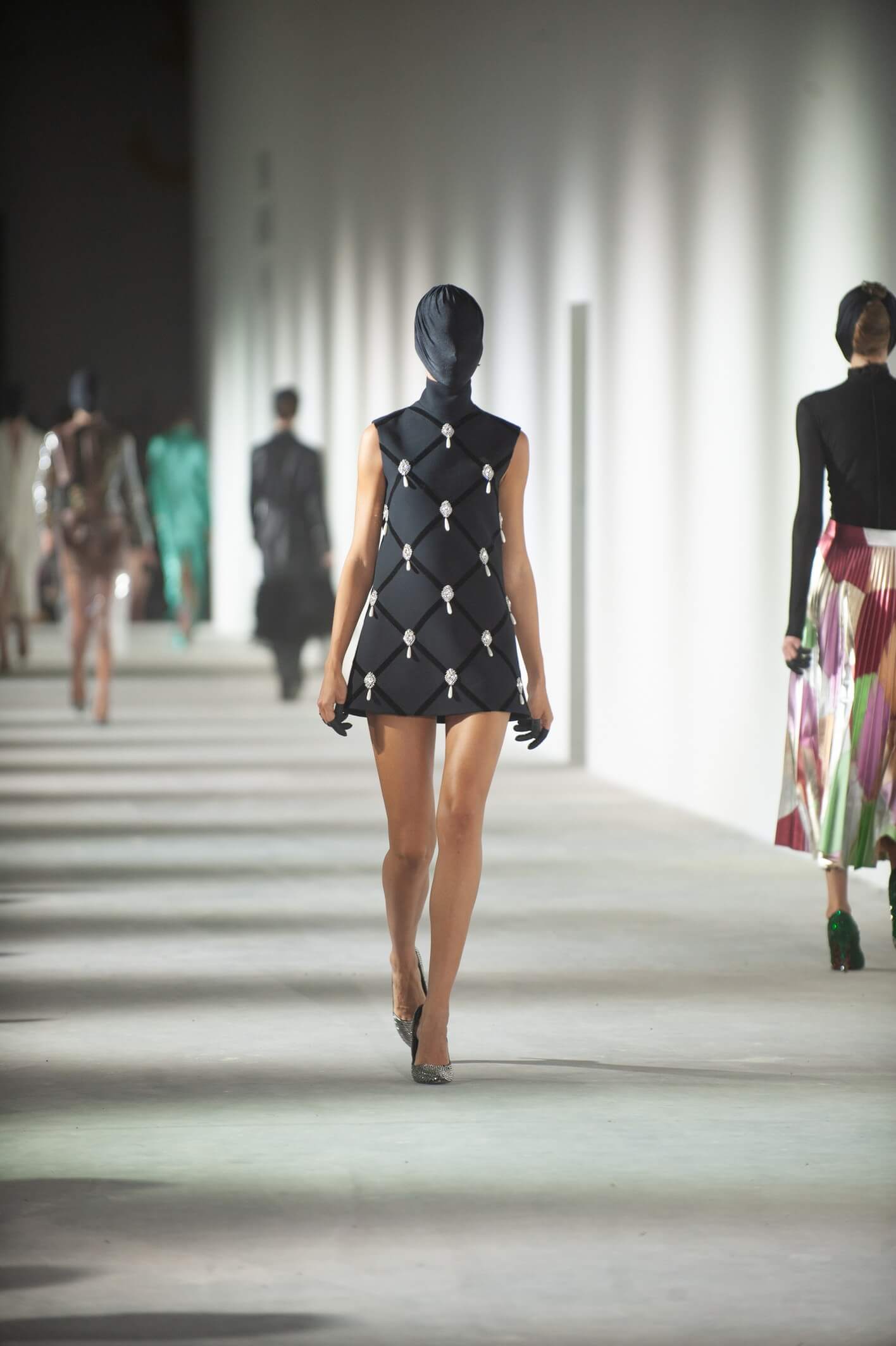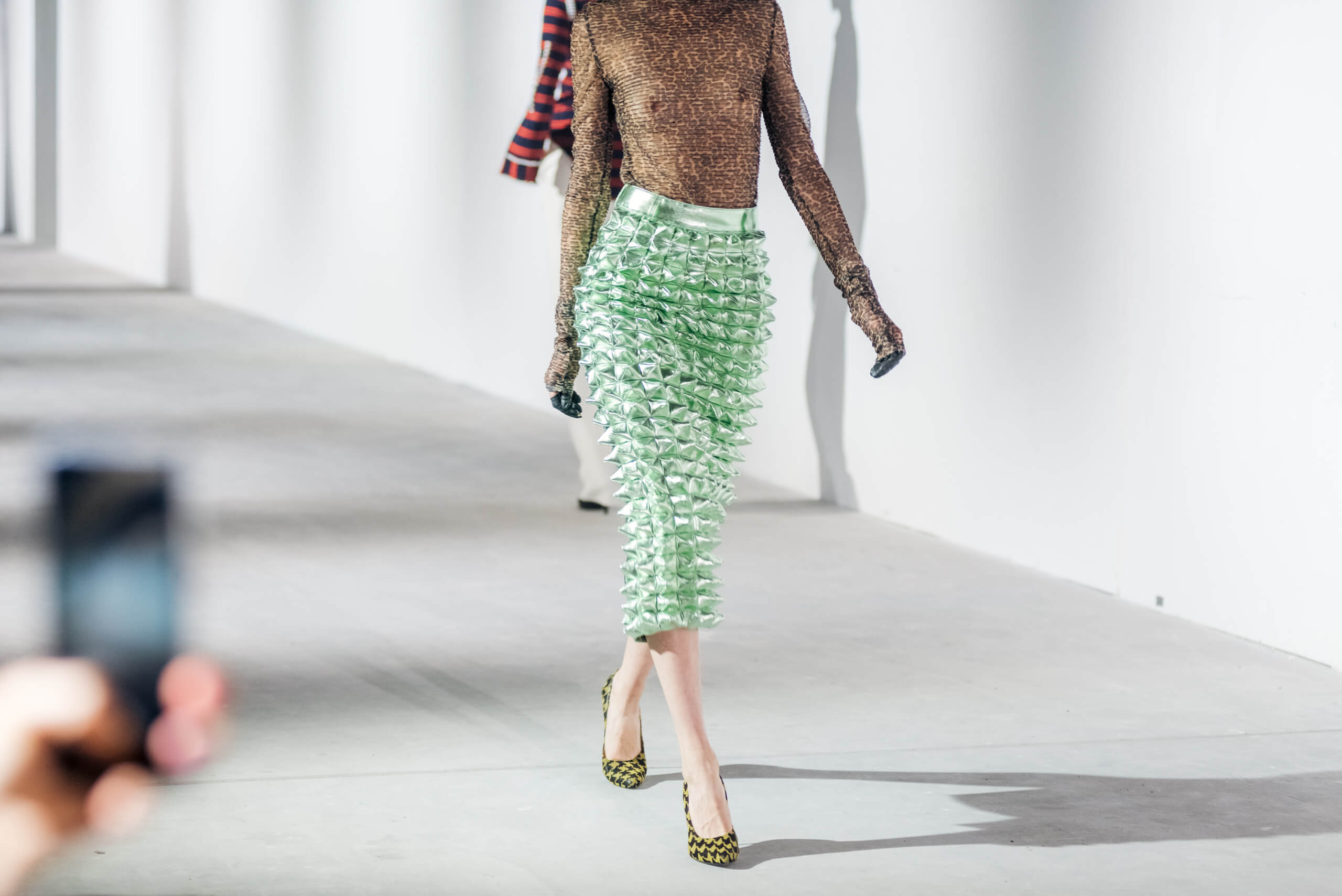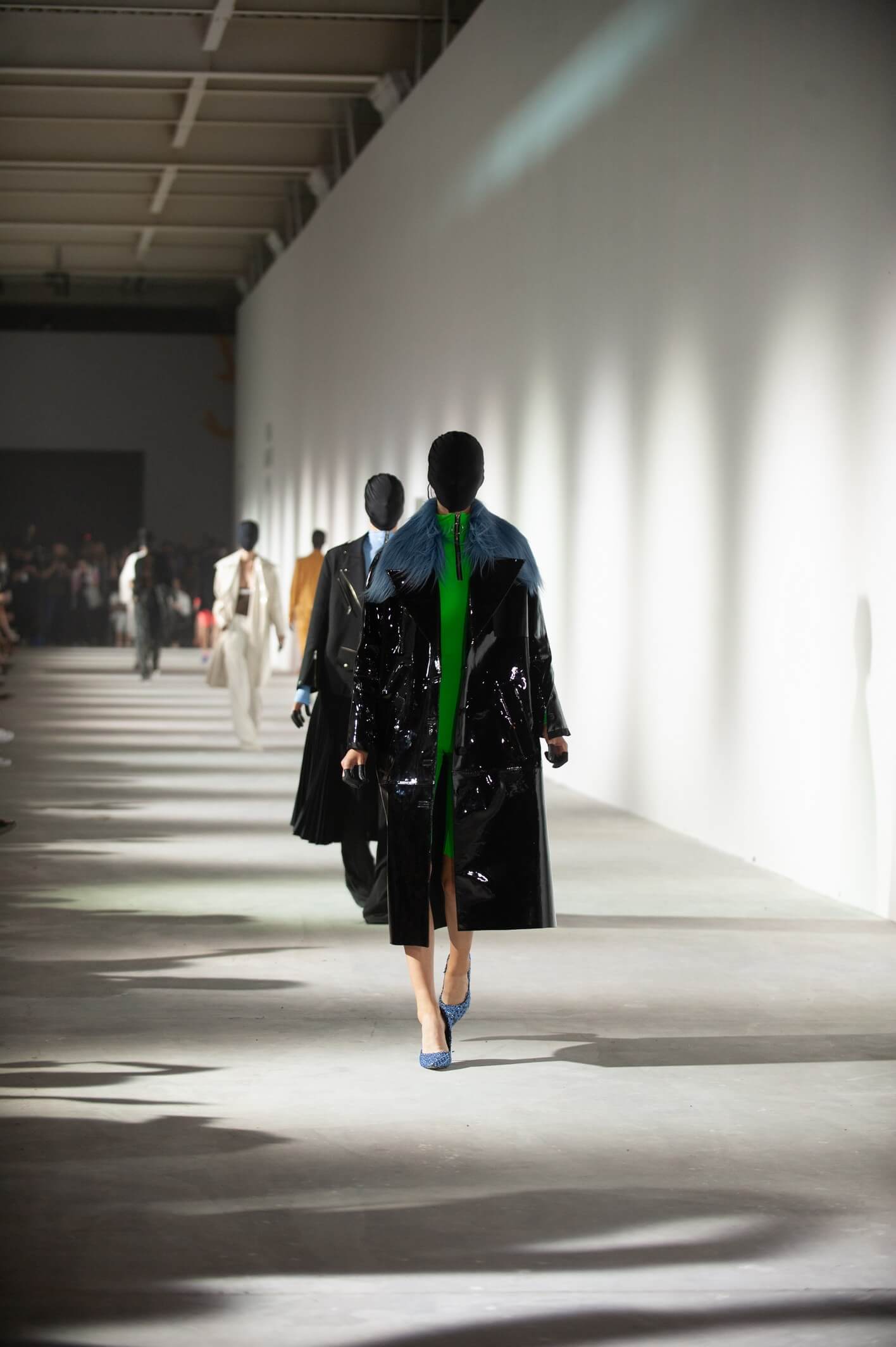 Грузинский дизайнер Лаша Мдинарадзе вот уже почти 5 лет проповедует эстетику модного сюрреализма. Настоящим символом бренда Gudu стала антропоморфная фигура модели с полностью закрытым лицом - как-будто фантазия об оживающих в ночных витринах манекенах. Потусторонние персонажи, будто тени сновали по подиуму и в этот раз. На загадочных созданиях-моделях были юбки-миди из плиссированной блестящей эко-кожи, лаковые тренчи с контрастным декором из перьев, объёмные твидовые жакеты в духе Джеки Кеннеди и силуэтные костюмы, ставшие знаковыми для коллекций дизайнера.