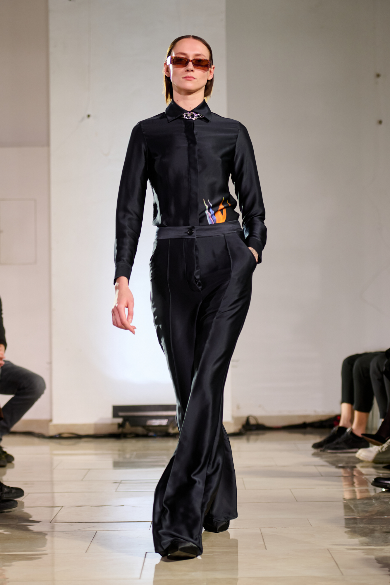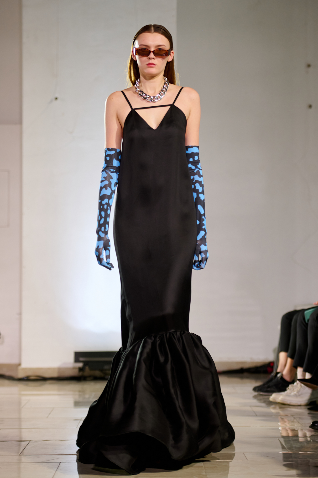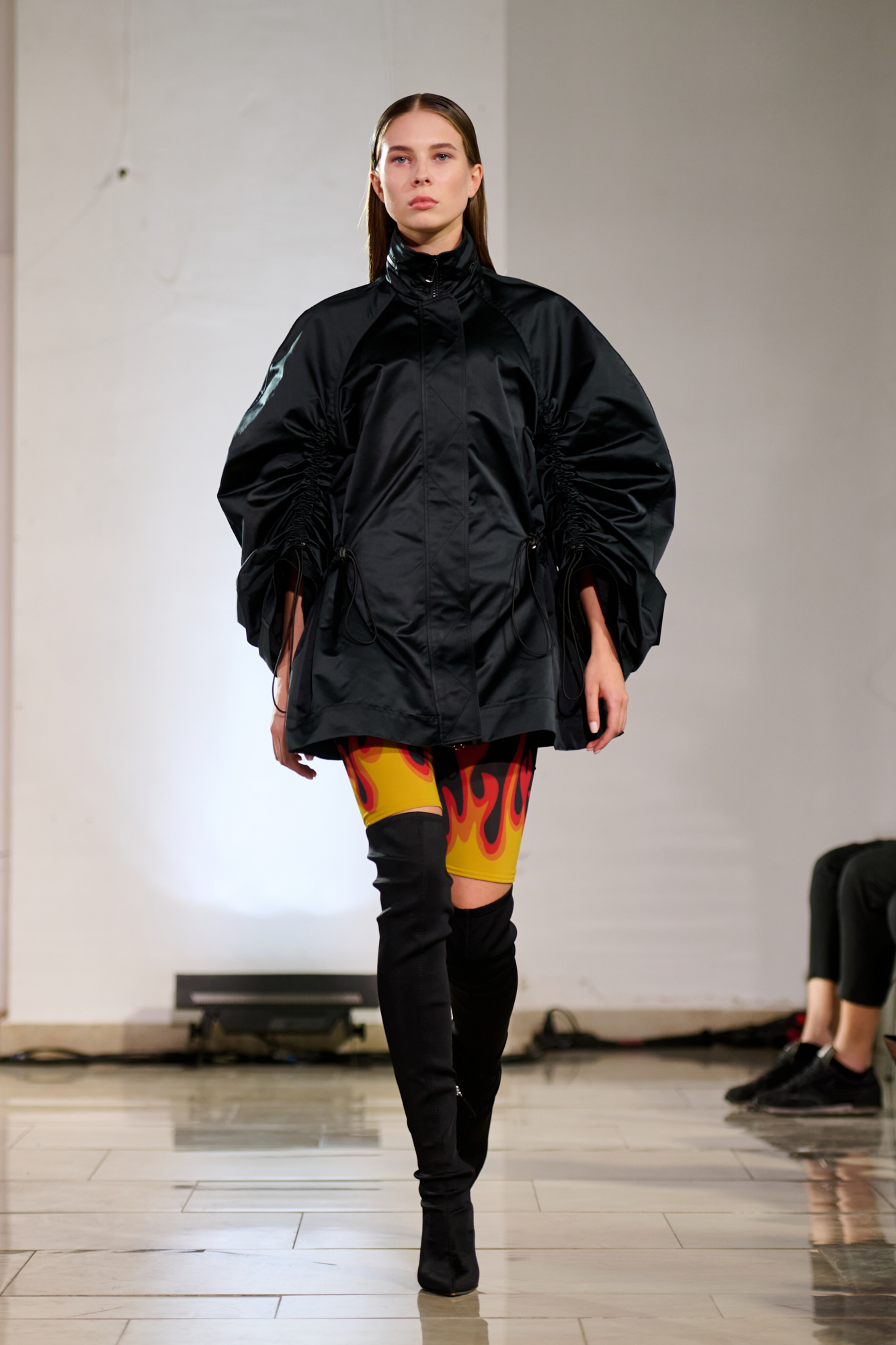 В свой день рождения на "Кирилловской" Лаша Мдинарадзе впервые увидел диджея Гаэль Абакарову. Она стала лицом коллекции и вдохновила дизайнера впервые не скрывать лица моделей, а подчеркивать их индивидуальность. Так мода здесь соединилась с музыкой. На арт-составляющую коллекции повлиял важный в истории Киева человек – Казимир Малевич. Он родился здесь более ста лет назад, но его работы абсолютно не потеряли актуальности. По словам Мдинарадзе, ему близок подход художника, который сильное визуальное наполнение сочетал с простыми, но выверенными формами. Его влияние можно заметить в принтах новой коллекции и использовании пэтчворка.