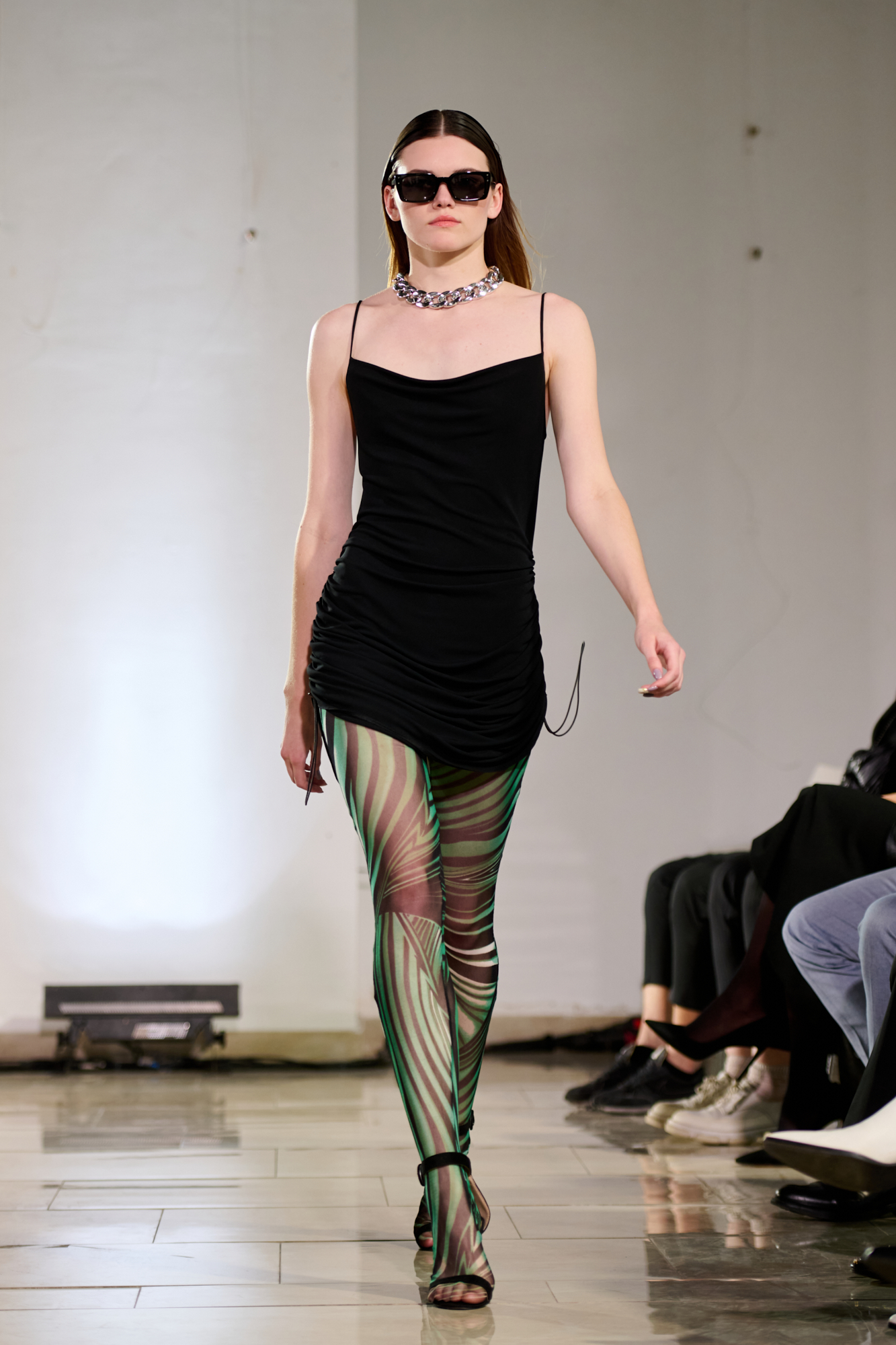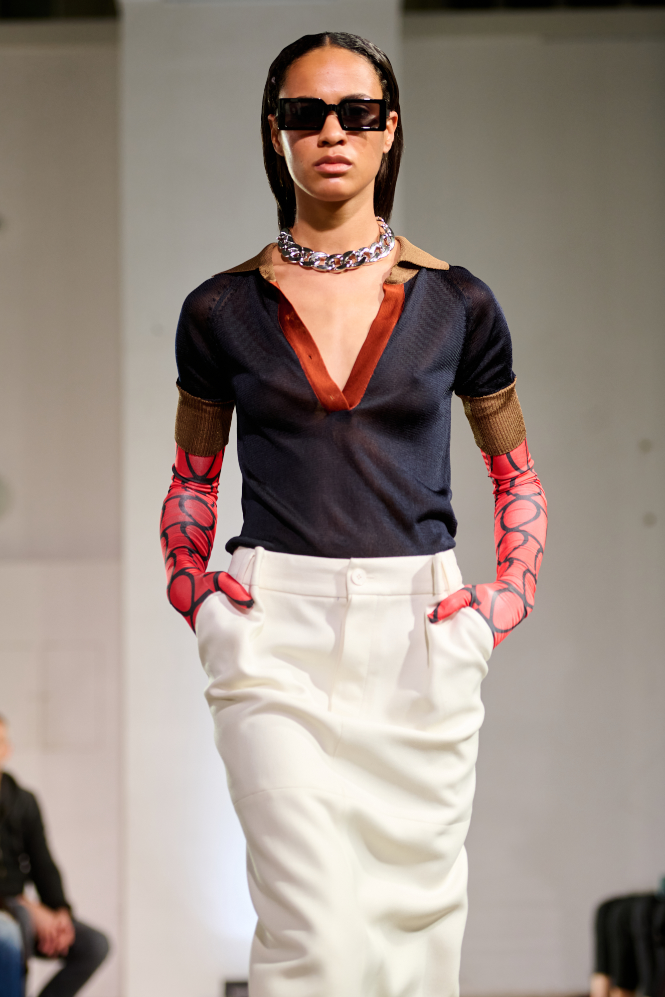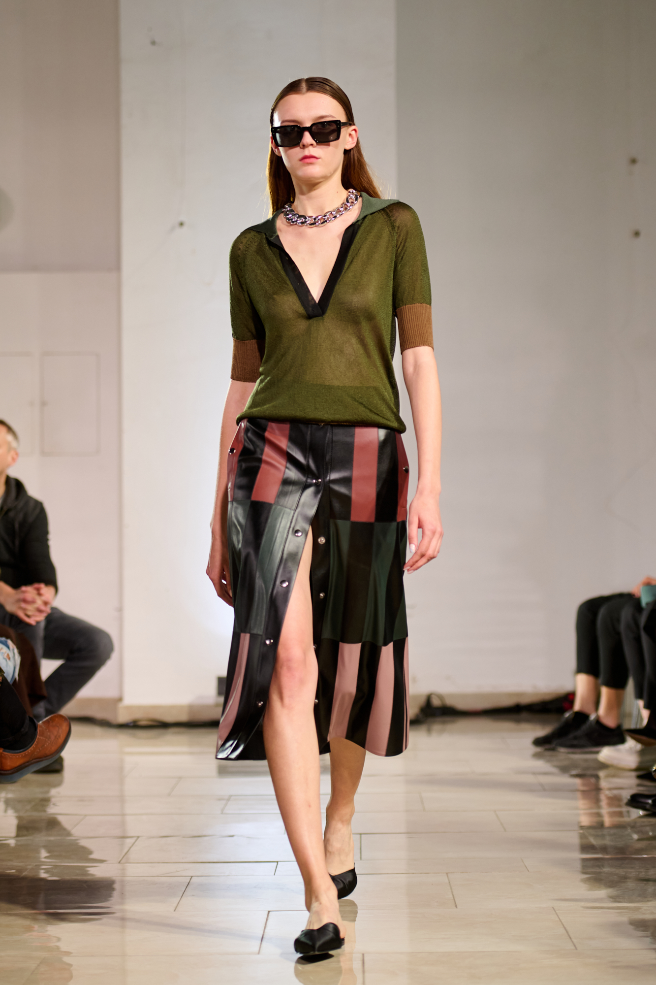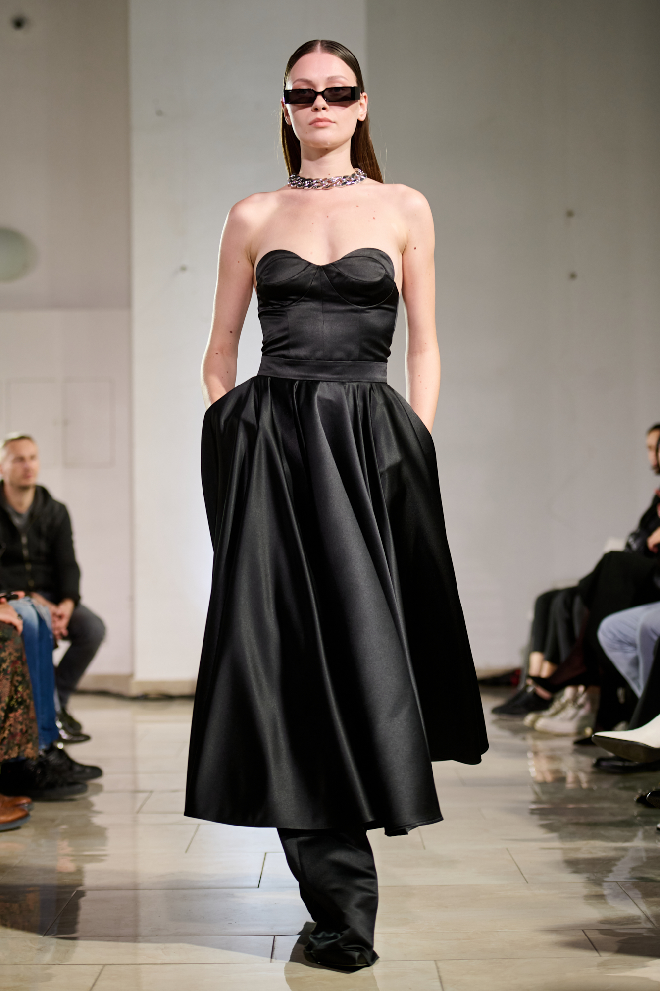 В свой день рождения на "Кирилловской" Лаша Мдинарадзе впервые увидел диджея Гаэль Абакарову. Она стала лицом коллекции и вдохновила дизайнера впервые не скрывать лица моделей, а подчеркивать их индивидуальность. Так мода здесь соединилась с музыкой. На арт-составляющую коллекции повлиял важный в истории Киева человек – Казимир Малевич. Он родился здесь более ста лет назад, но его работы абсолютно не потеряли актуальности. По словам Мдинарадзе, ему близок подход художника, который сильное визуальное наполнение сочетал с простыми, но выверенными формами. Его влияние можно заметить в принтах новой коллекции и использовании пэтчворка.