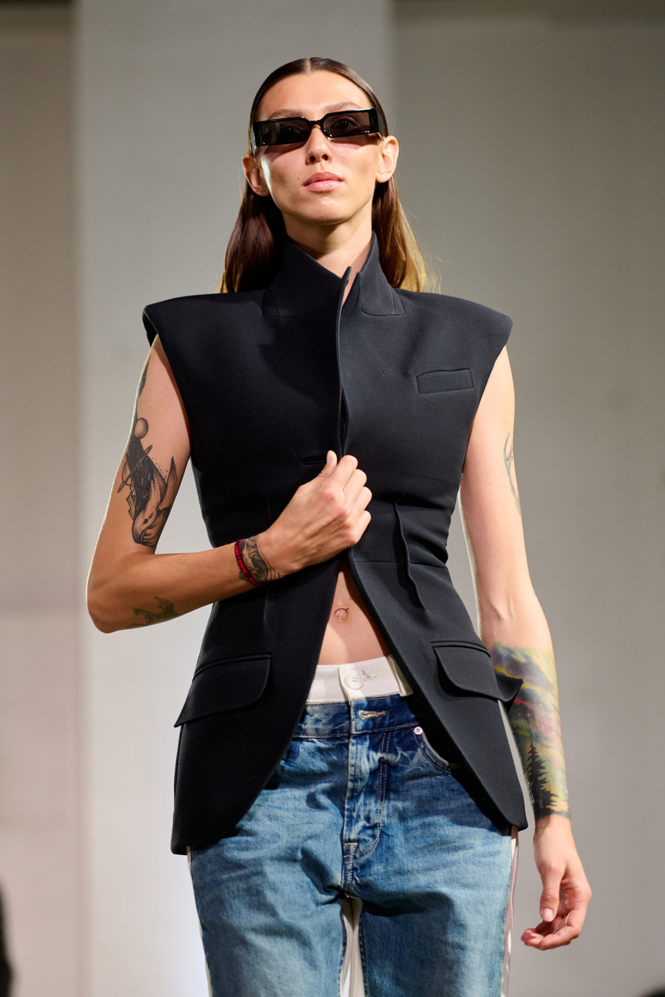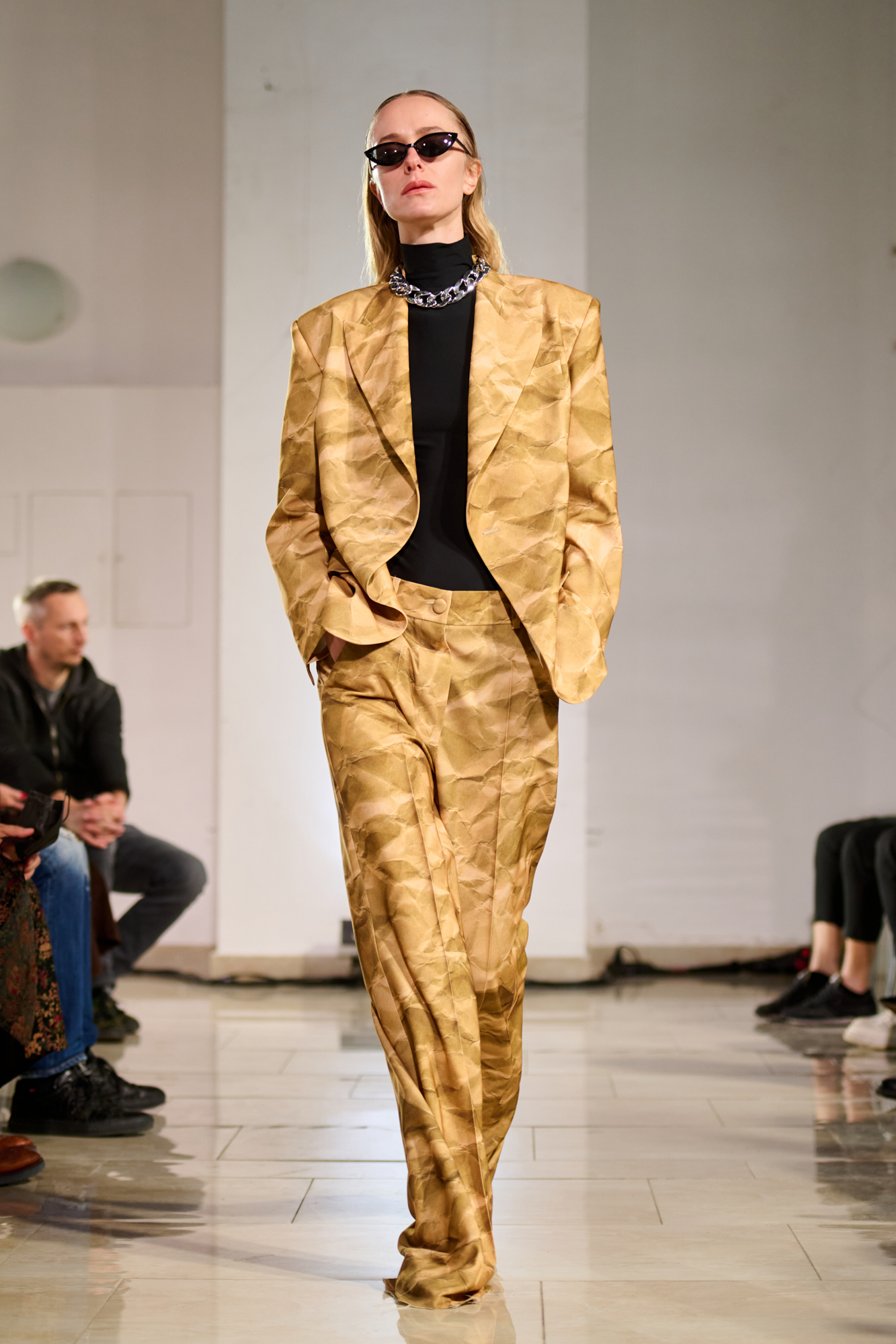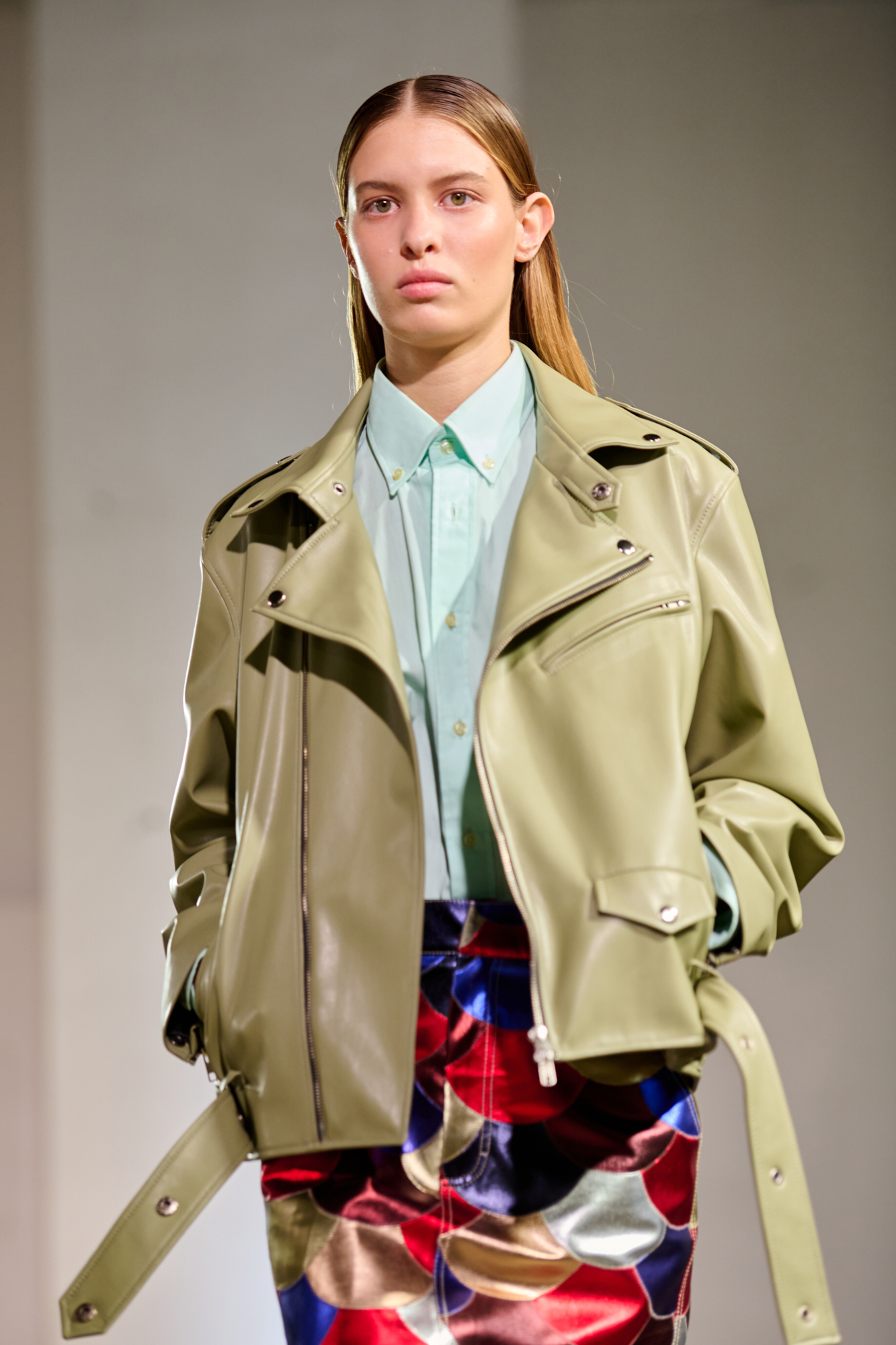 Участником коллекции также стала улица, с ее одновременным хаосом и порядком, серостью и разнообразием, отражающими лицо и душу этого города. Уличное влияние здесь выражено винтажным денимом, с которым бренд работает впервые, практичными силуэтами и миксом цветов и фактур, ведь настоящая улица не может быть однородной и идеально выверенной.